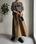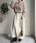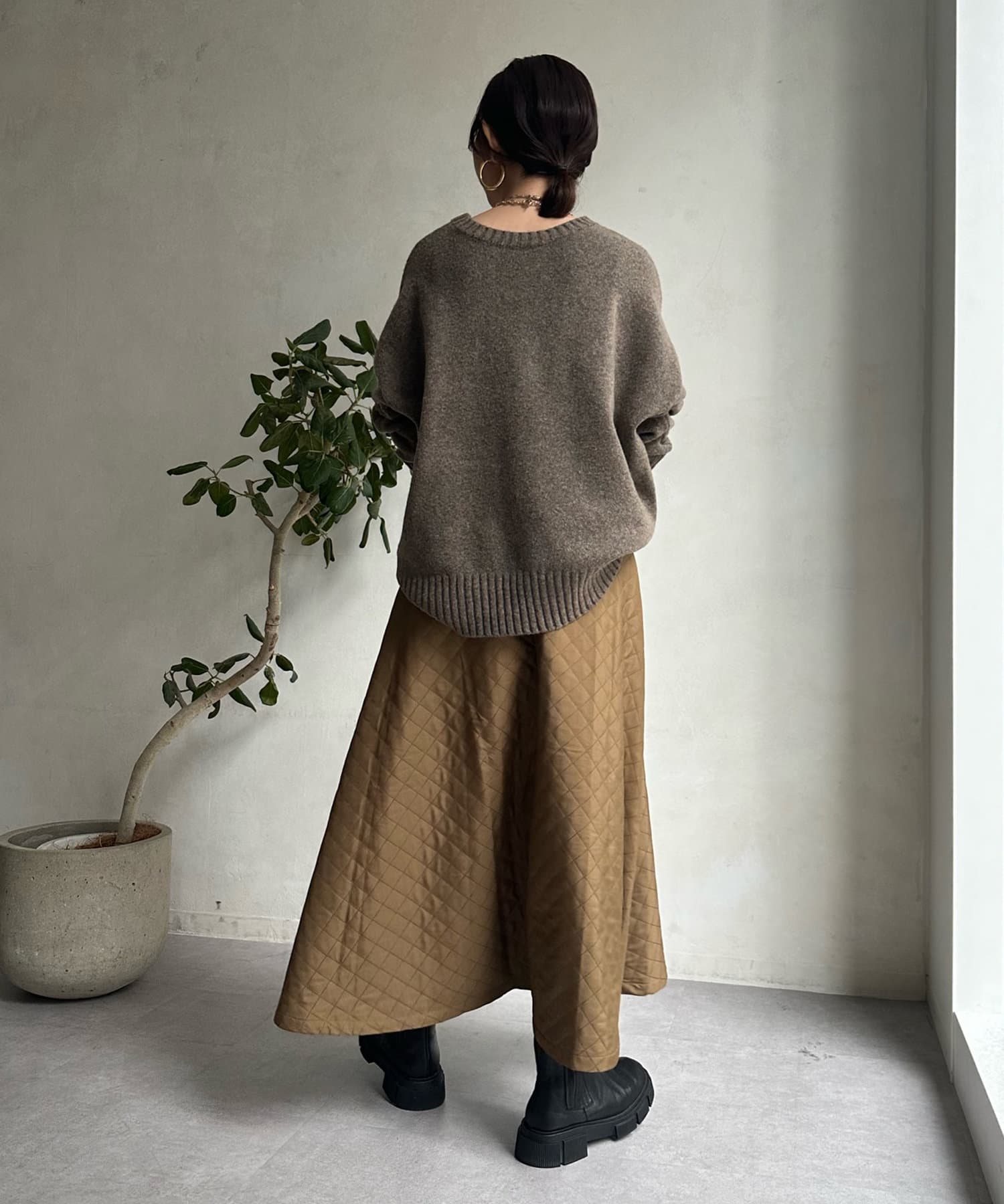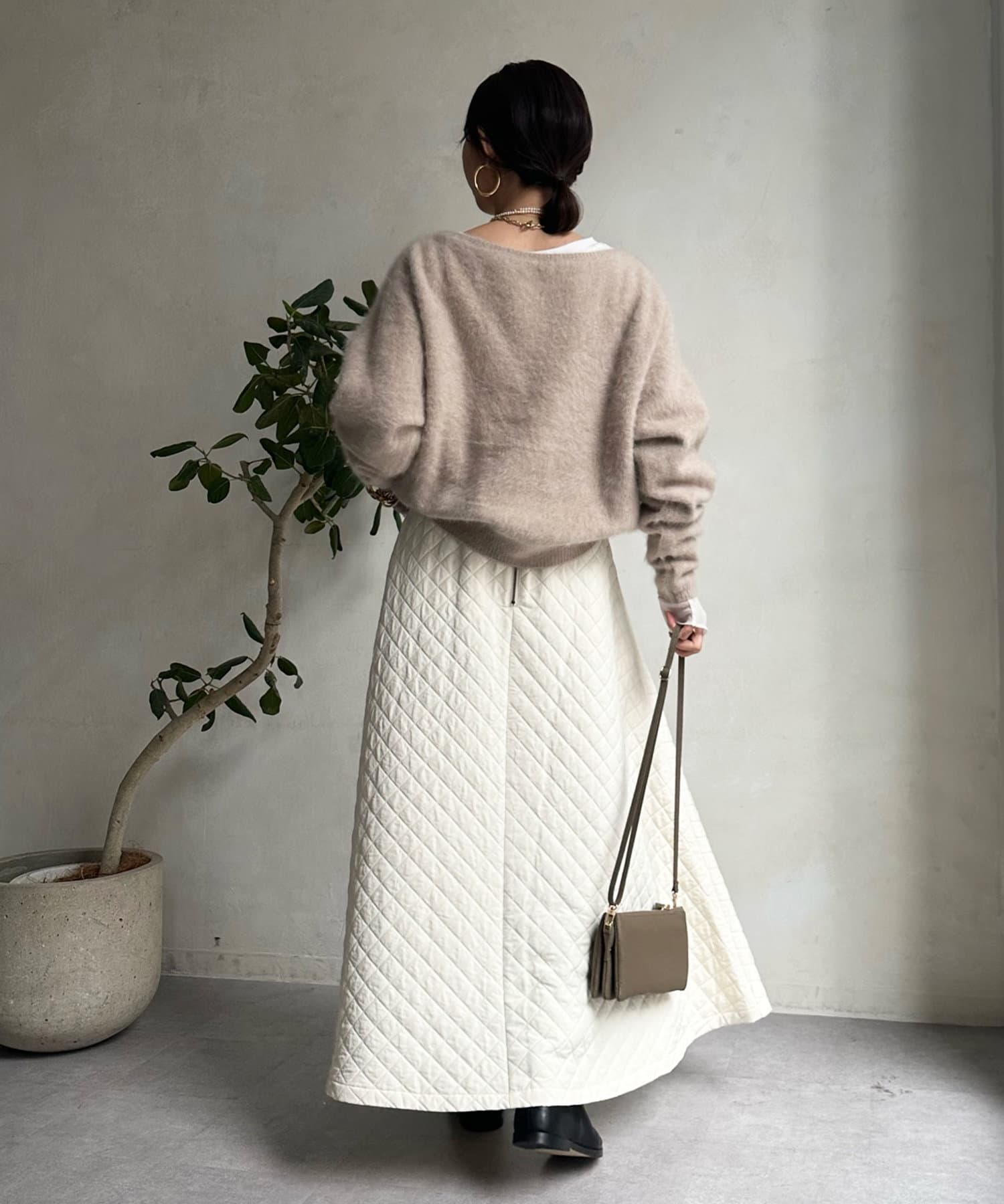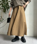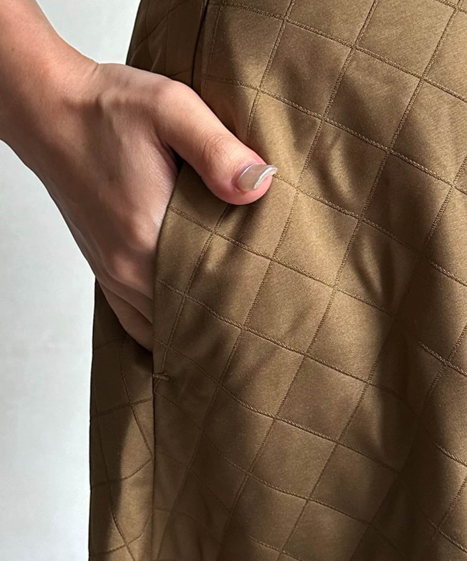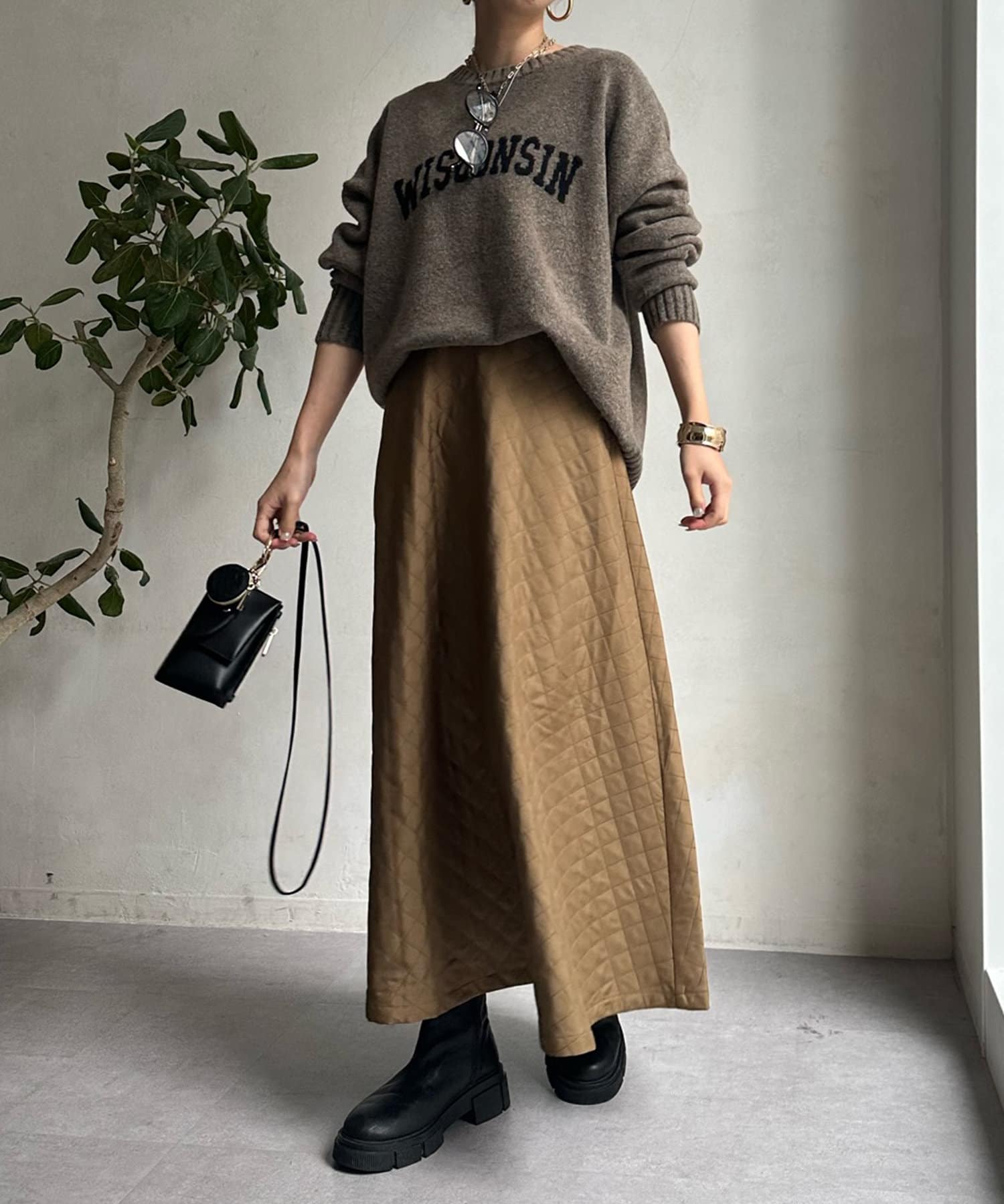 キルティング生地をふんだんに使用し、たっぷりとしたシルエットが特徴のスカート。