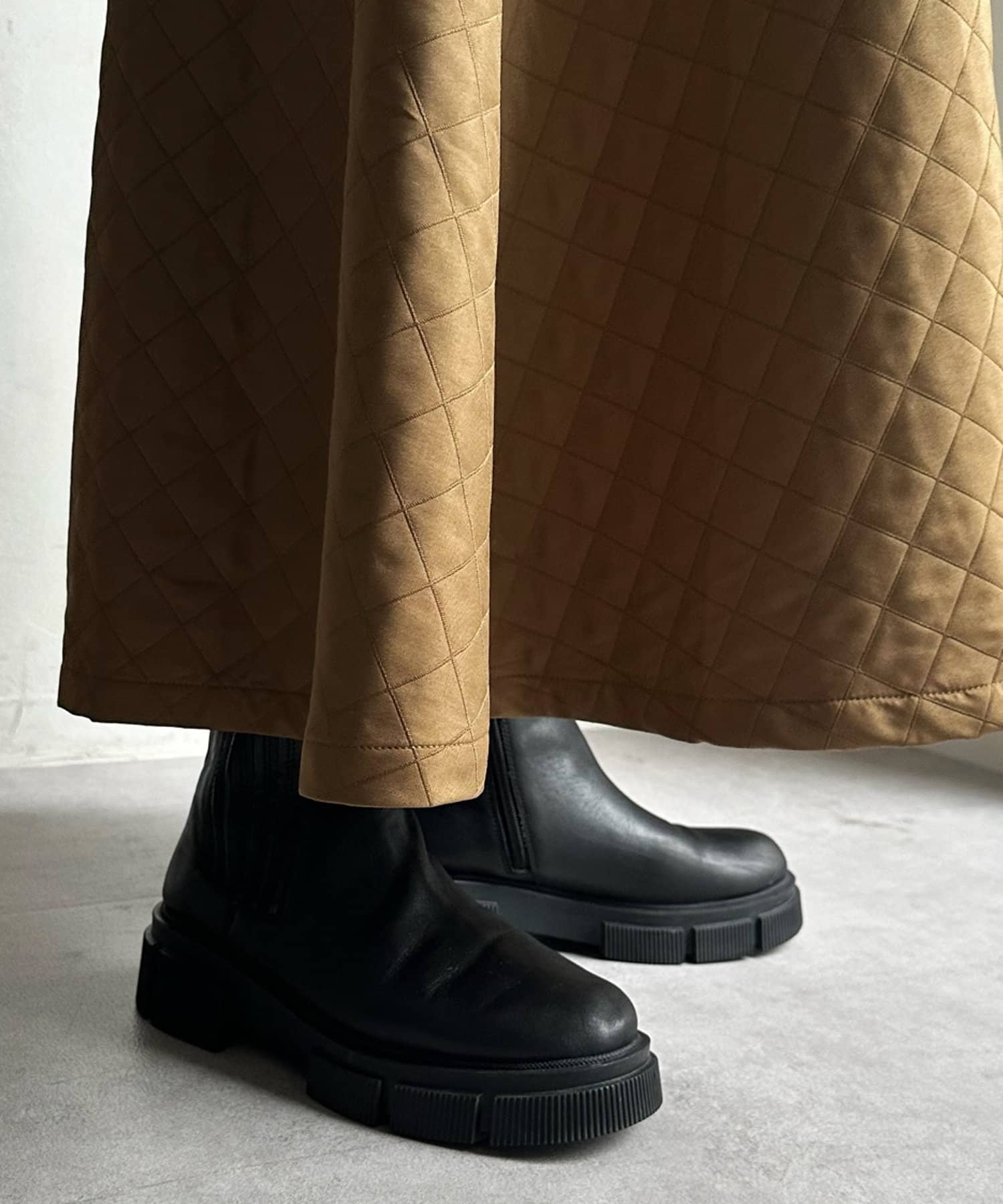 足元にショートブーツや、トレンドの重ためブーツを合わせると、より洗練された着こなしに仕上がりますよ。