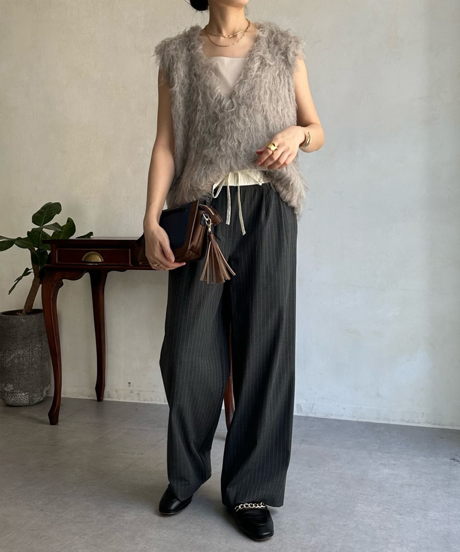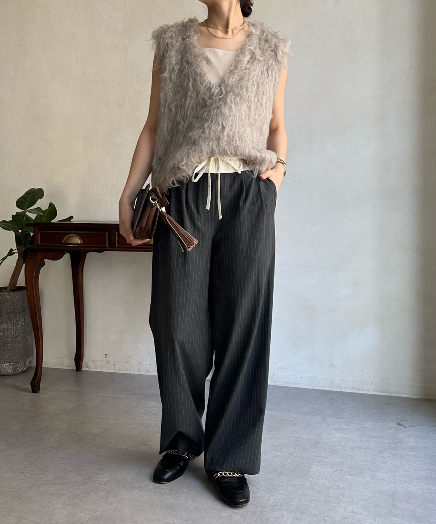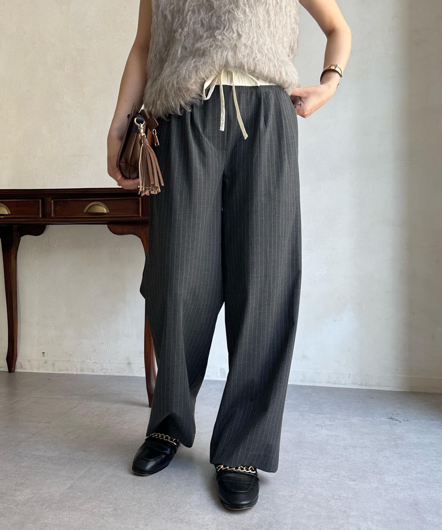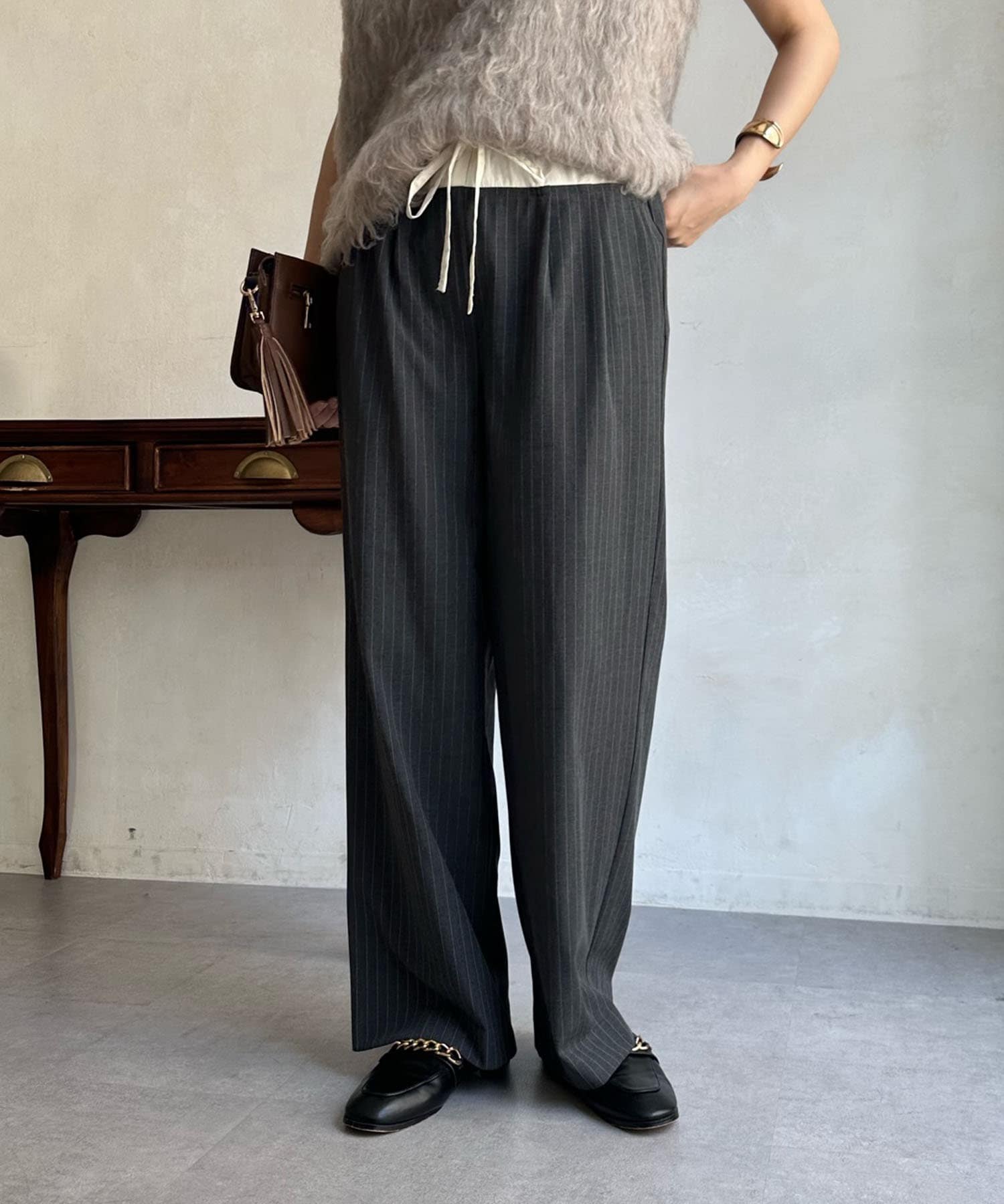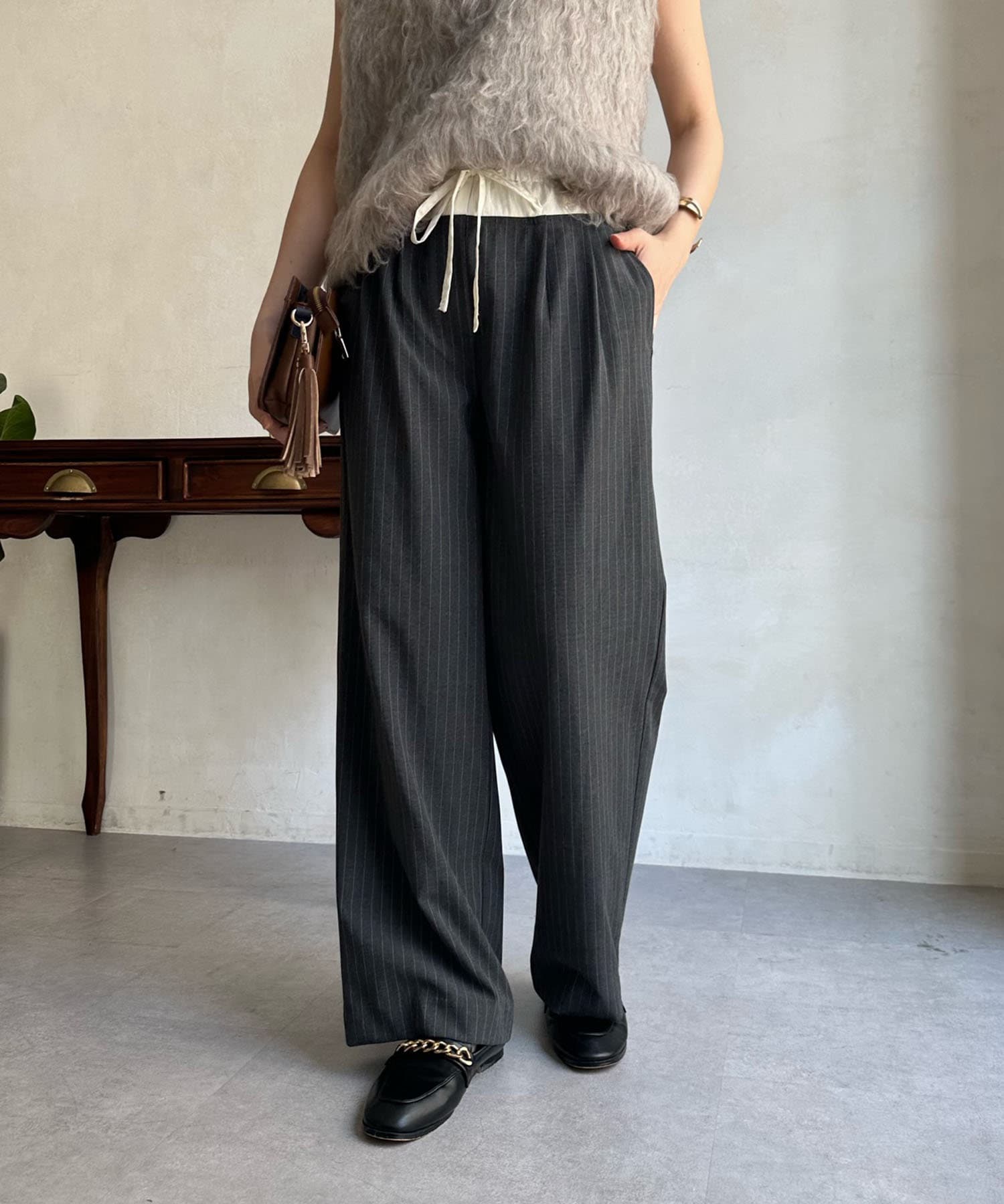 【WEB限定】 ピンストライプウエスト切替パンツ