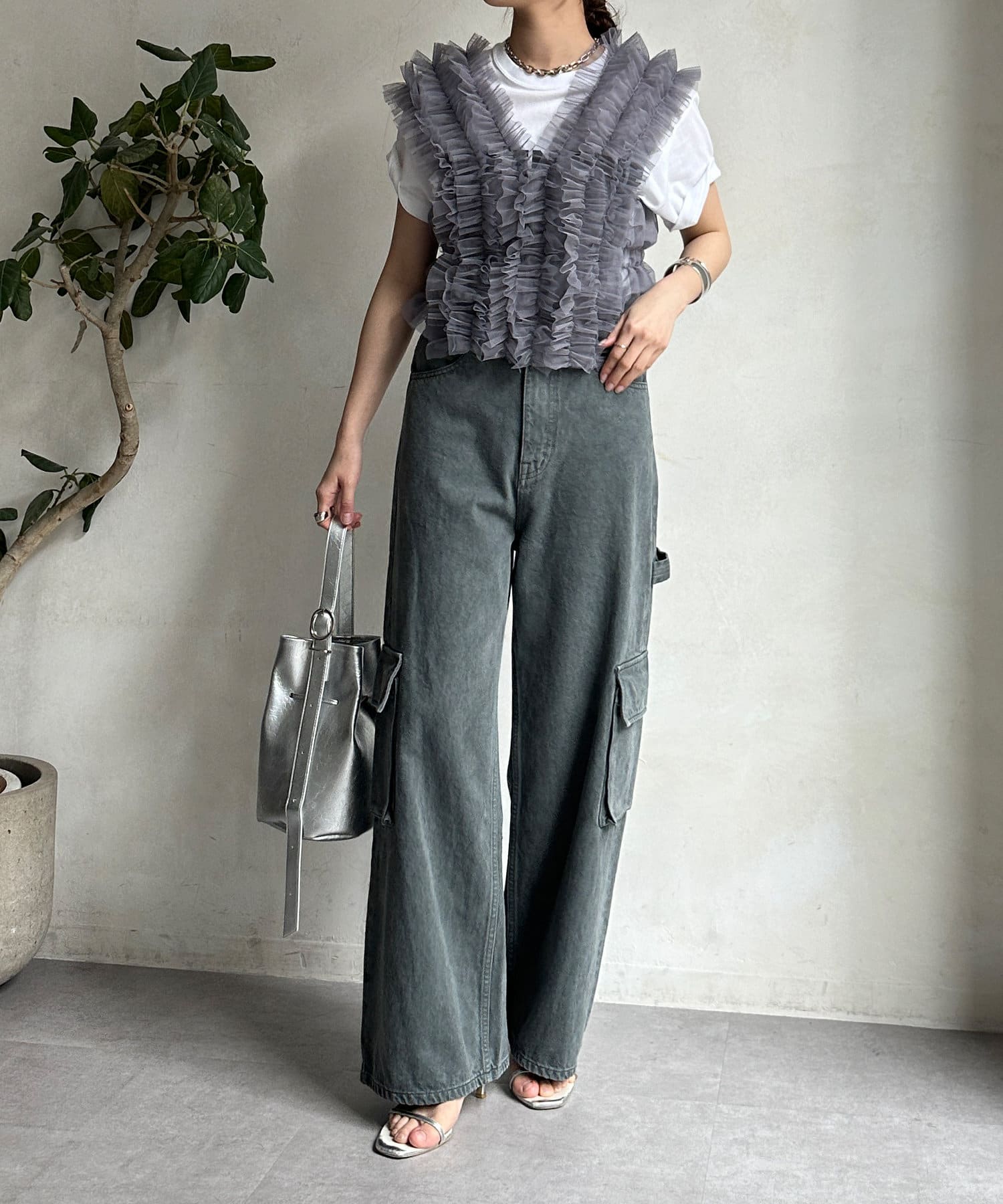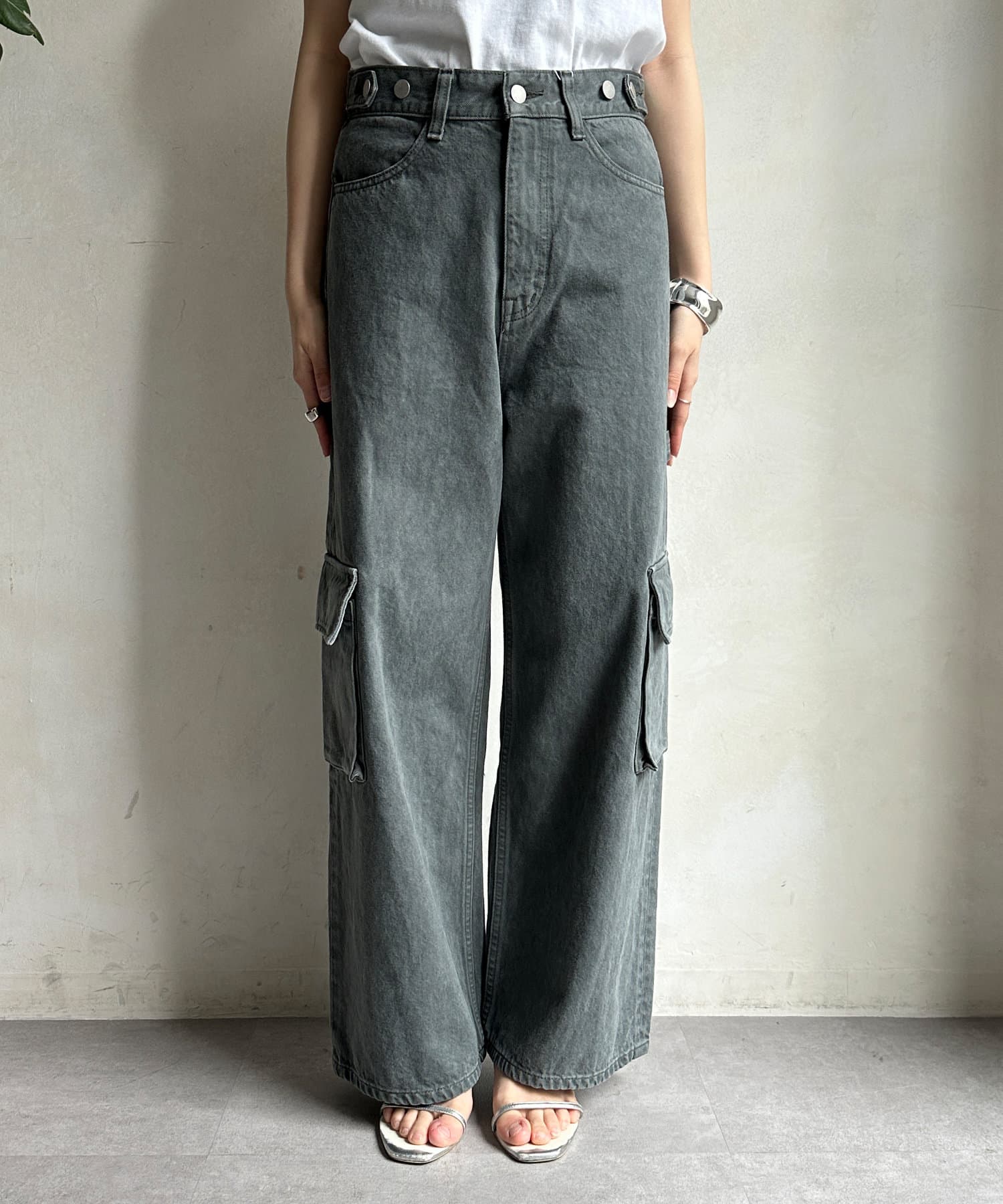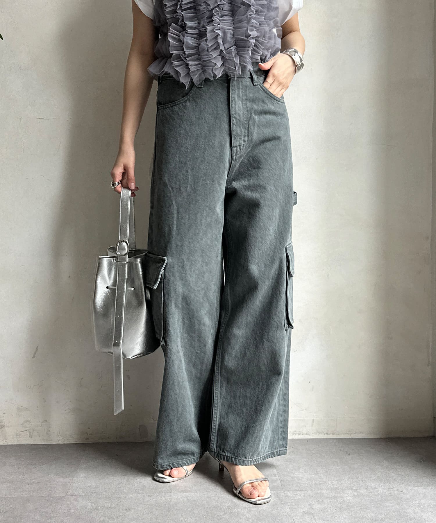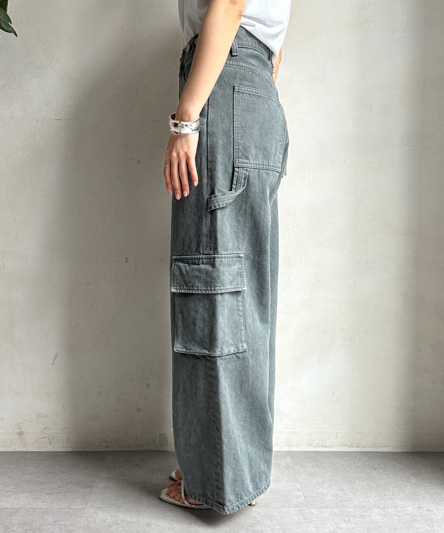 ペインターパンツ特有のカジュアル感が出すぎないよう、ハイウエスト、ワイドシルエットで綺麗めなシルエットに仕上げています。美脚みえも叶い女性らしいスタイリングにも相性抜群です。