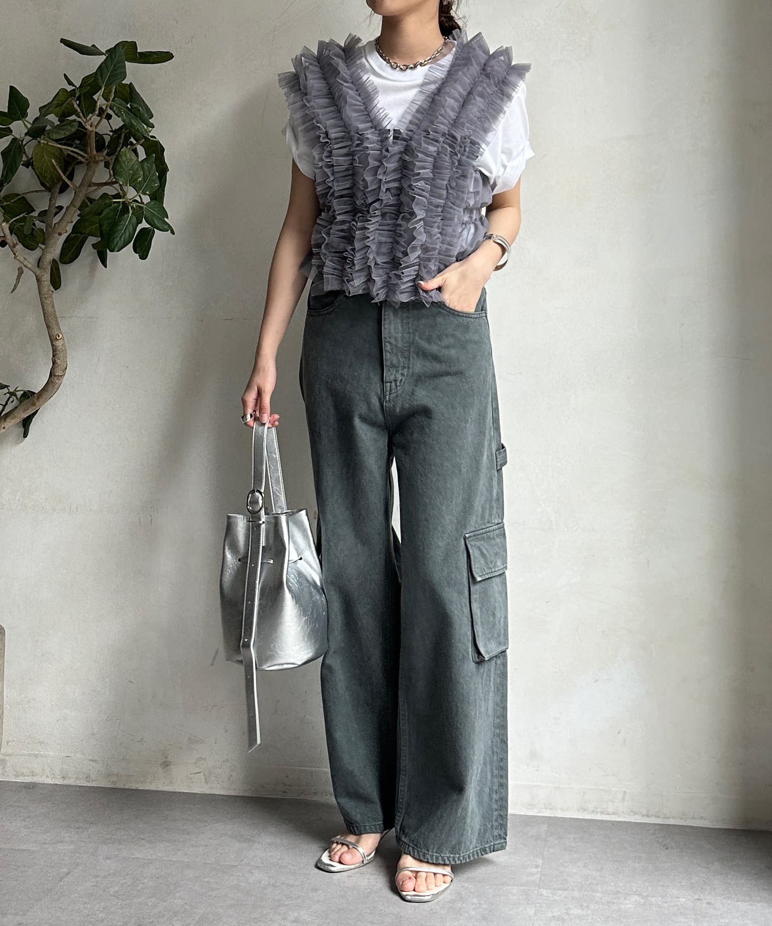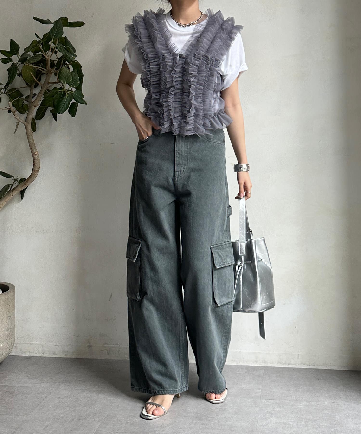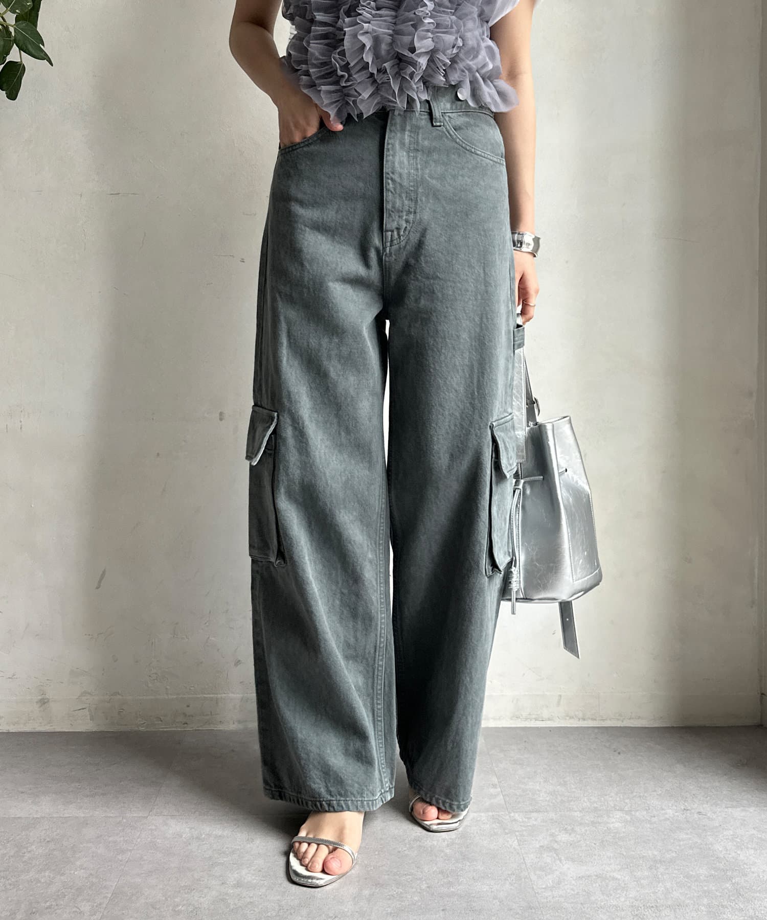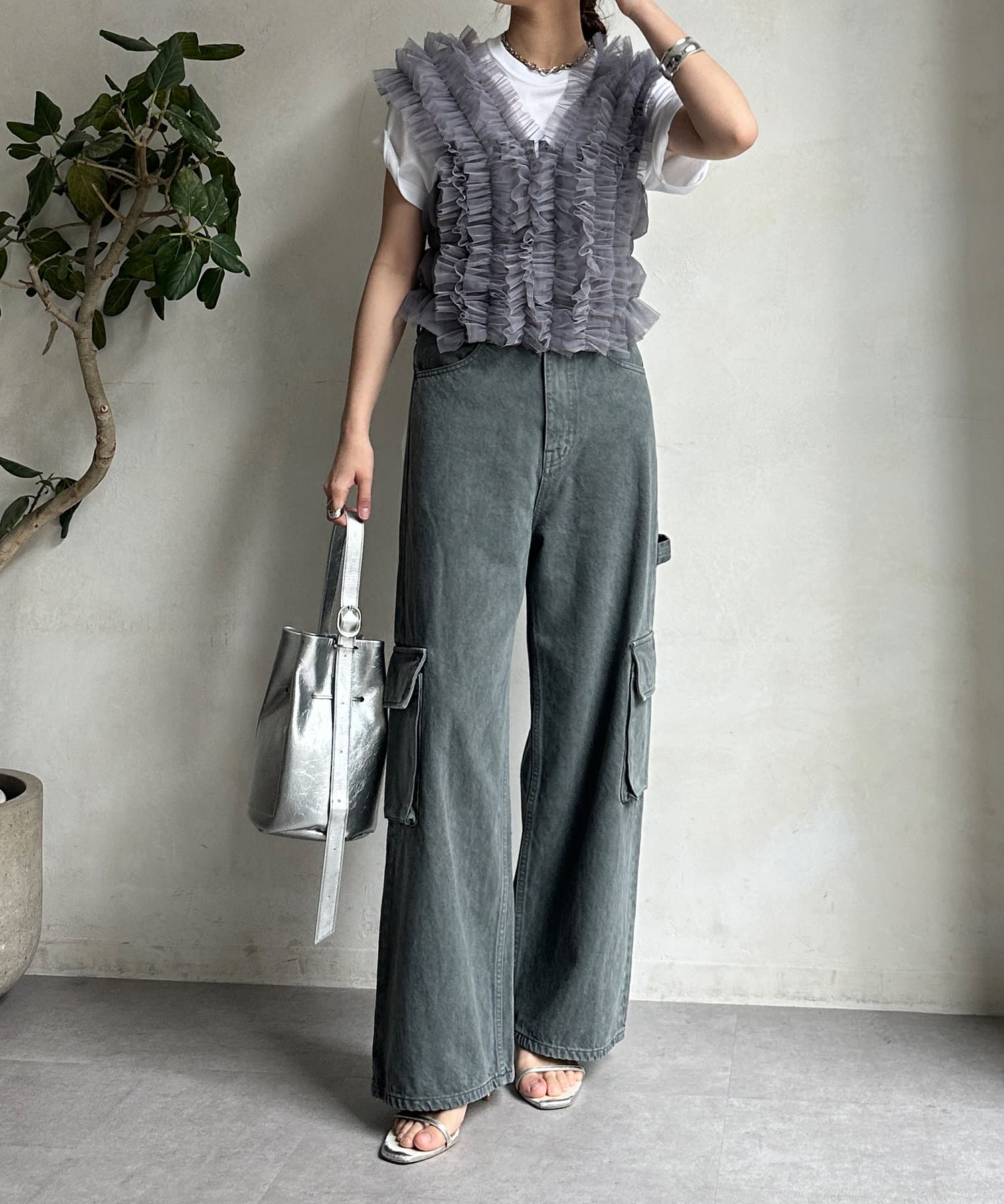 ペインターパンツ特有のカジュアル感が出すぎないよう、ハイウエスト、ワイドシルエットで綺麗めなシルエットに仕上げています。美脚みえも叶い女性らしいスタイリングにも相性抜群です。