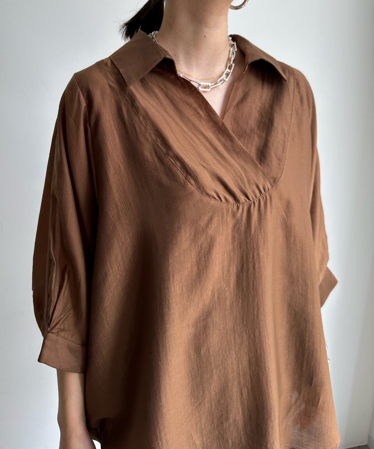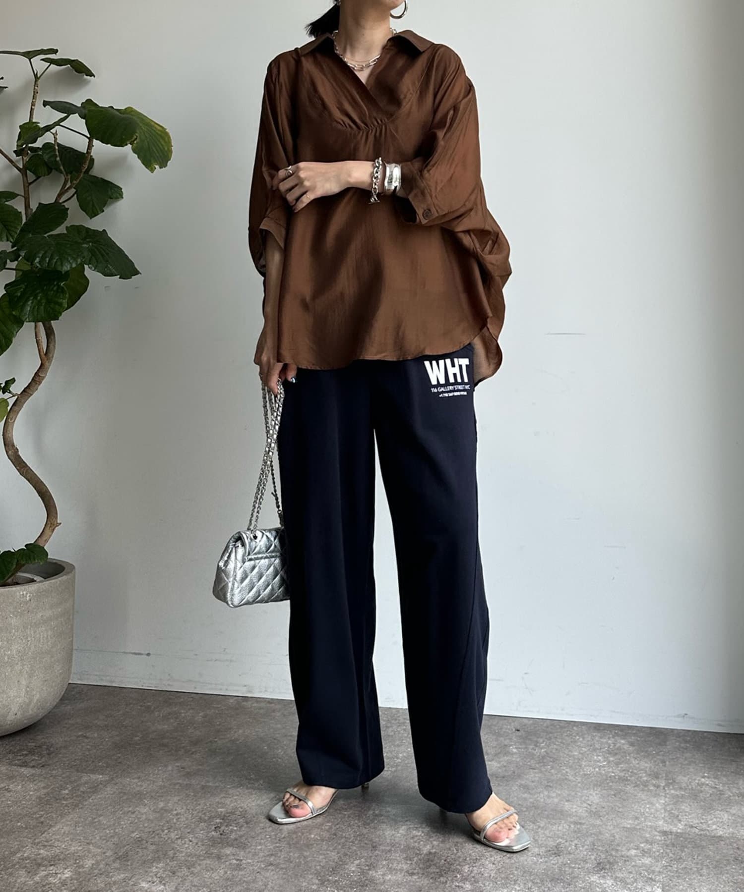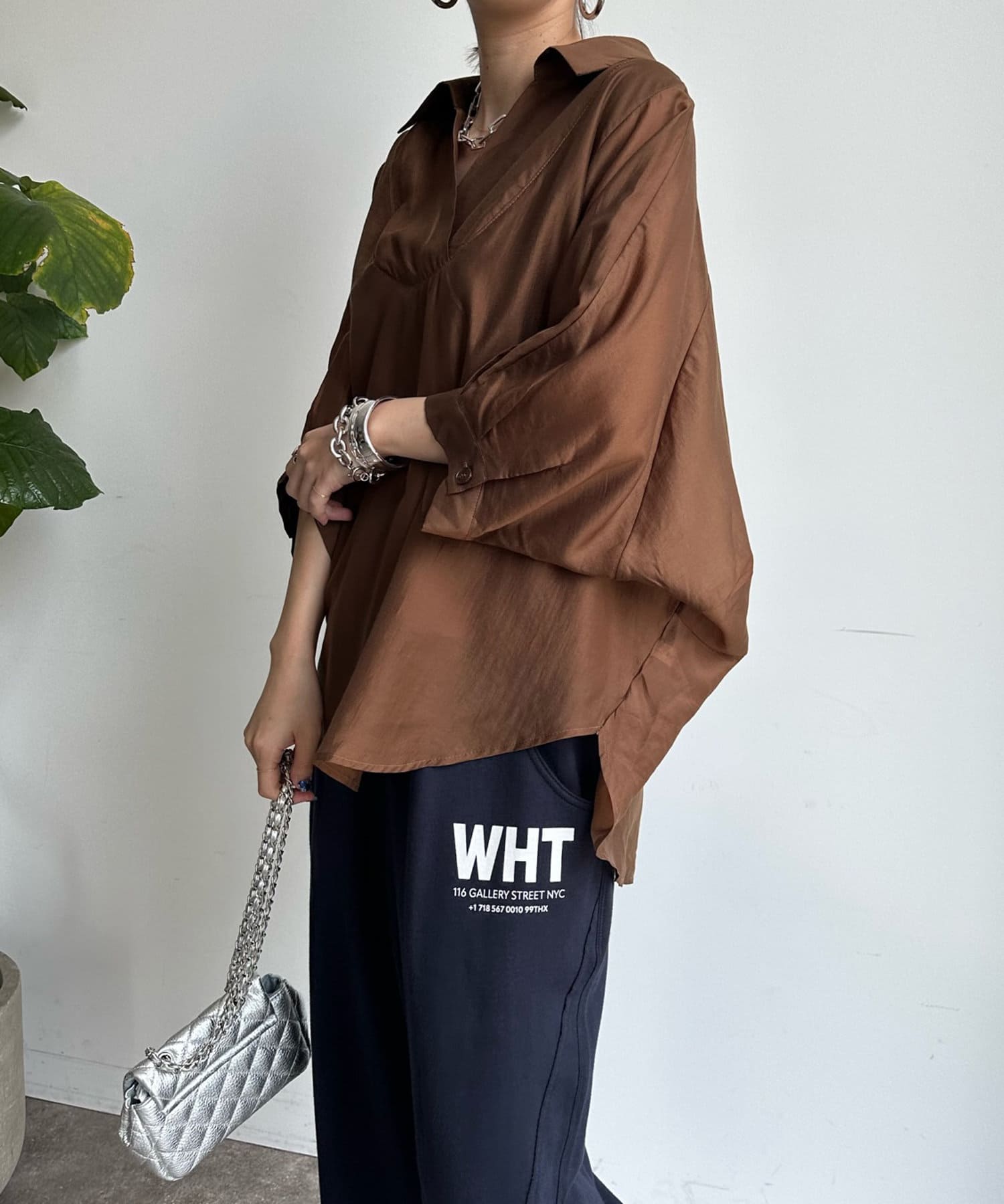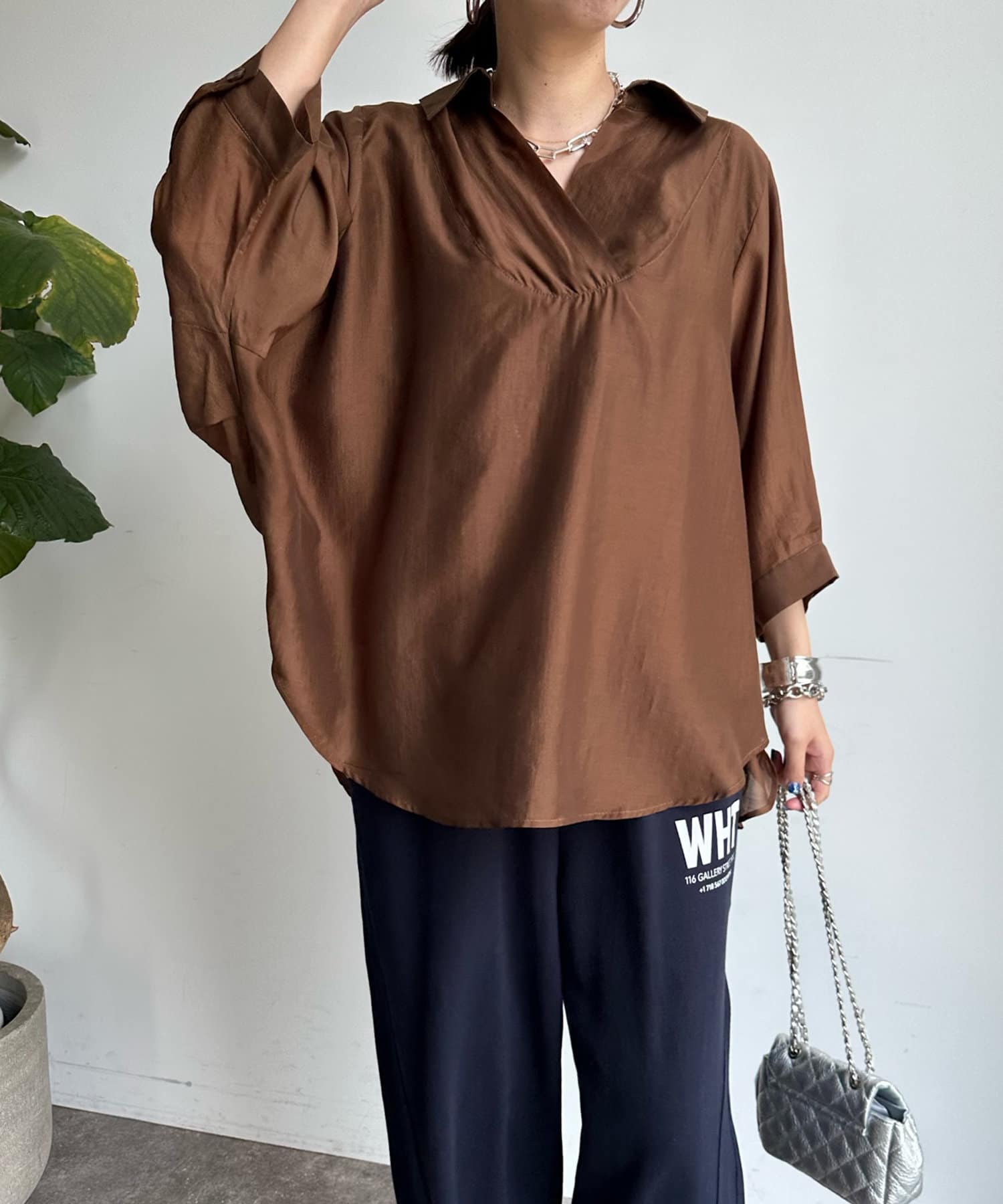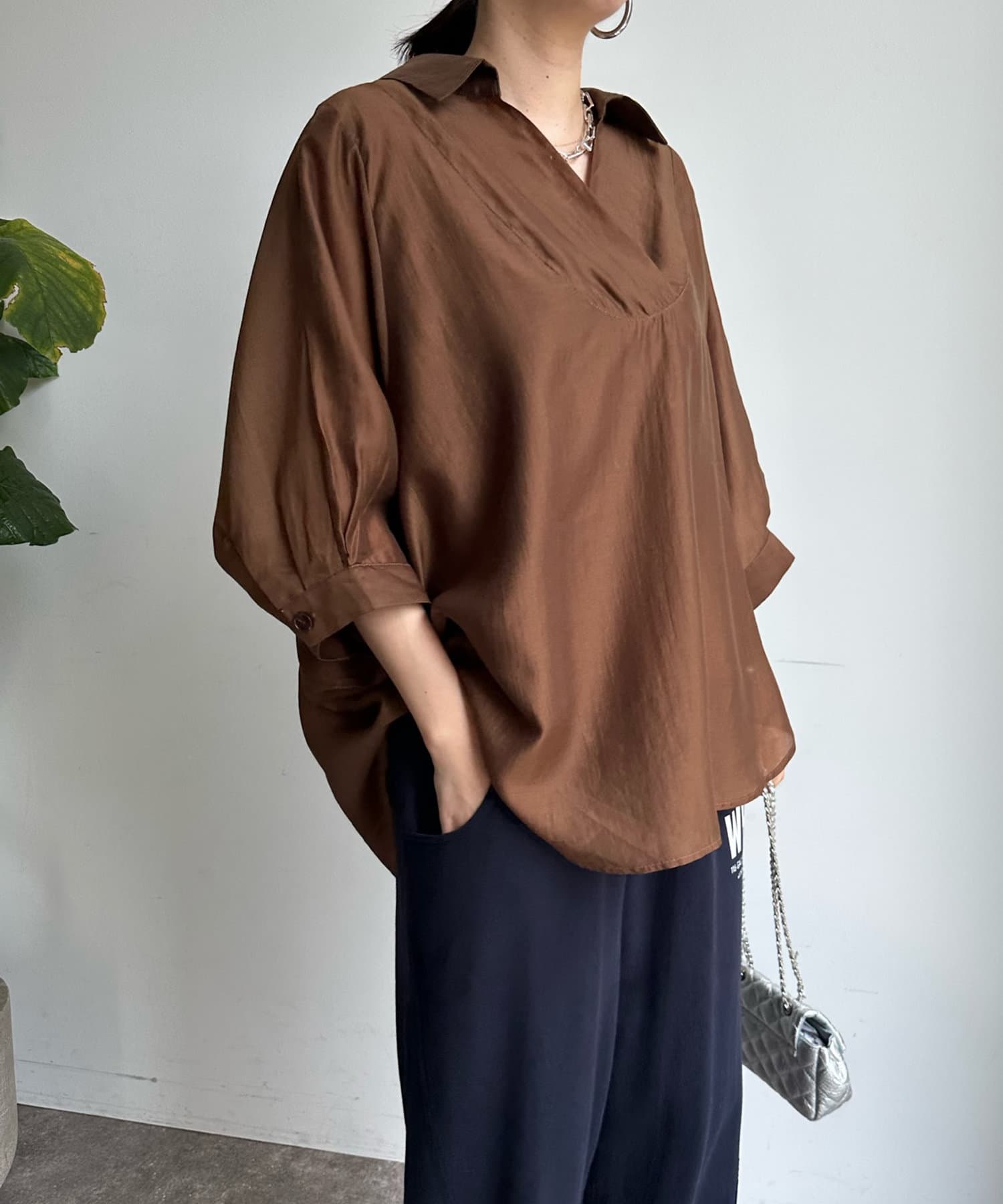 首元はスキッパーデザインに、身幅をたっぷりと取ったドルマンスリーブが