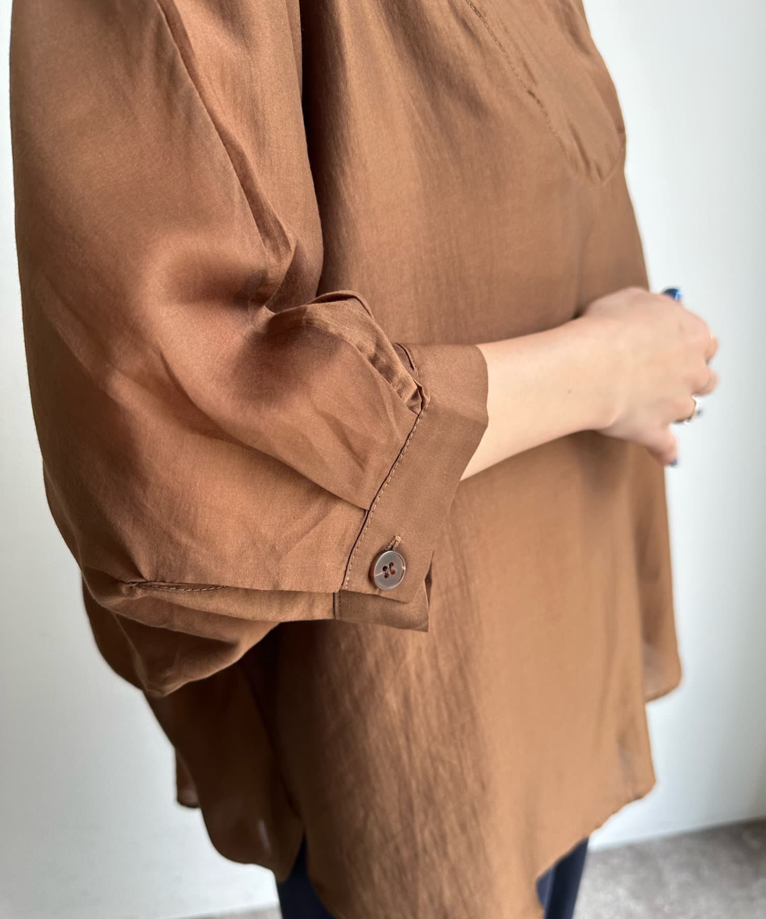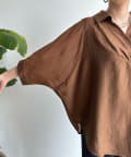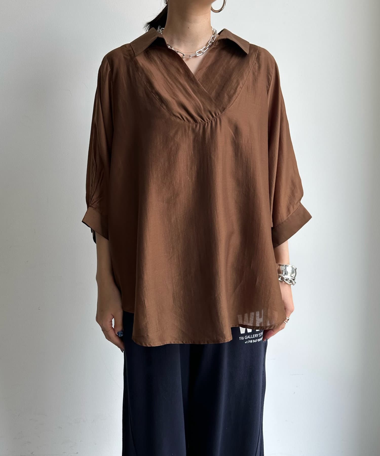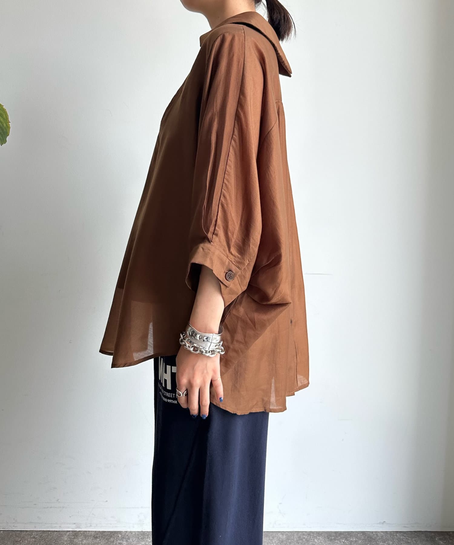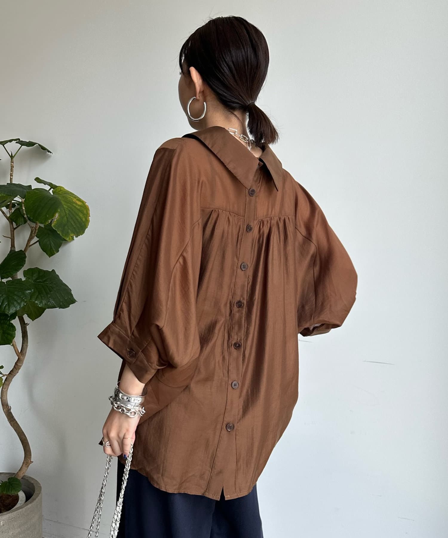 首元はスキッパーデザインに、身幅をたっぷりと取ったドルマンスリーブが