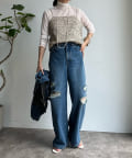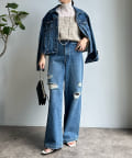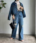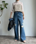 カジュアルなボトムを選んで、テイストミックスなバランスで合わせるのがおすすめです。