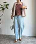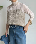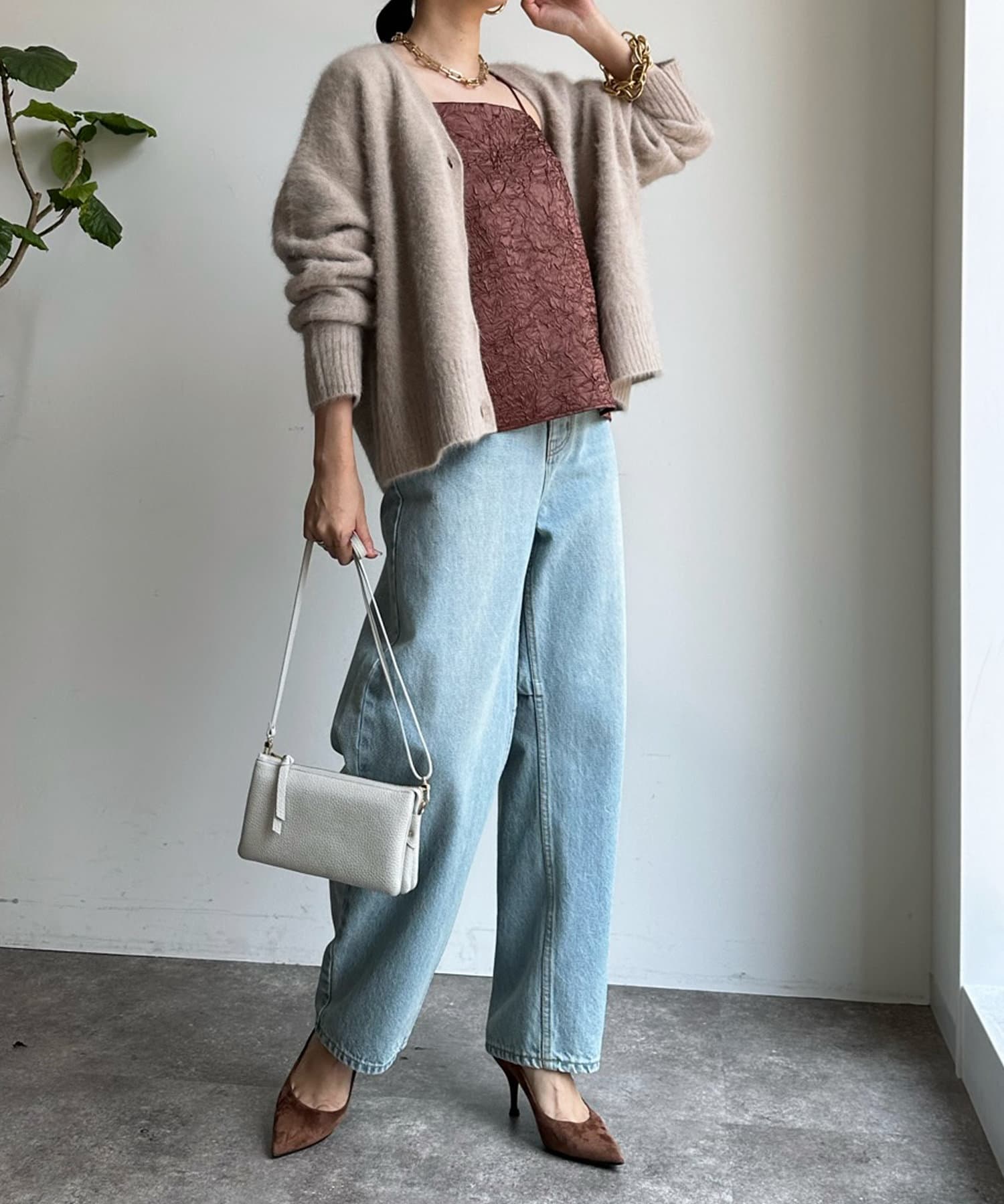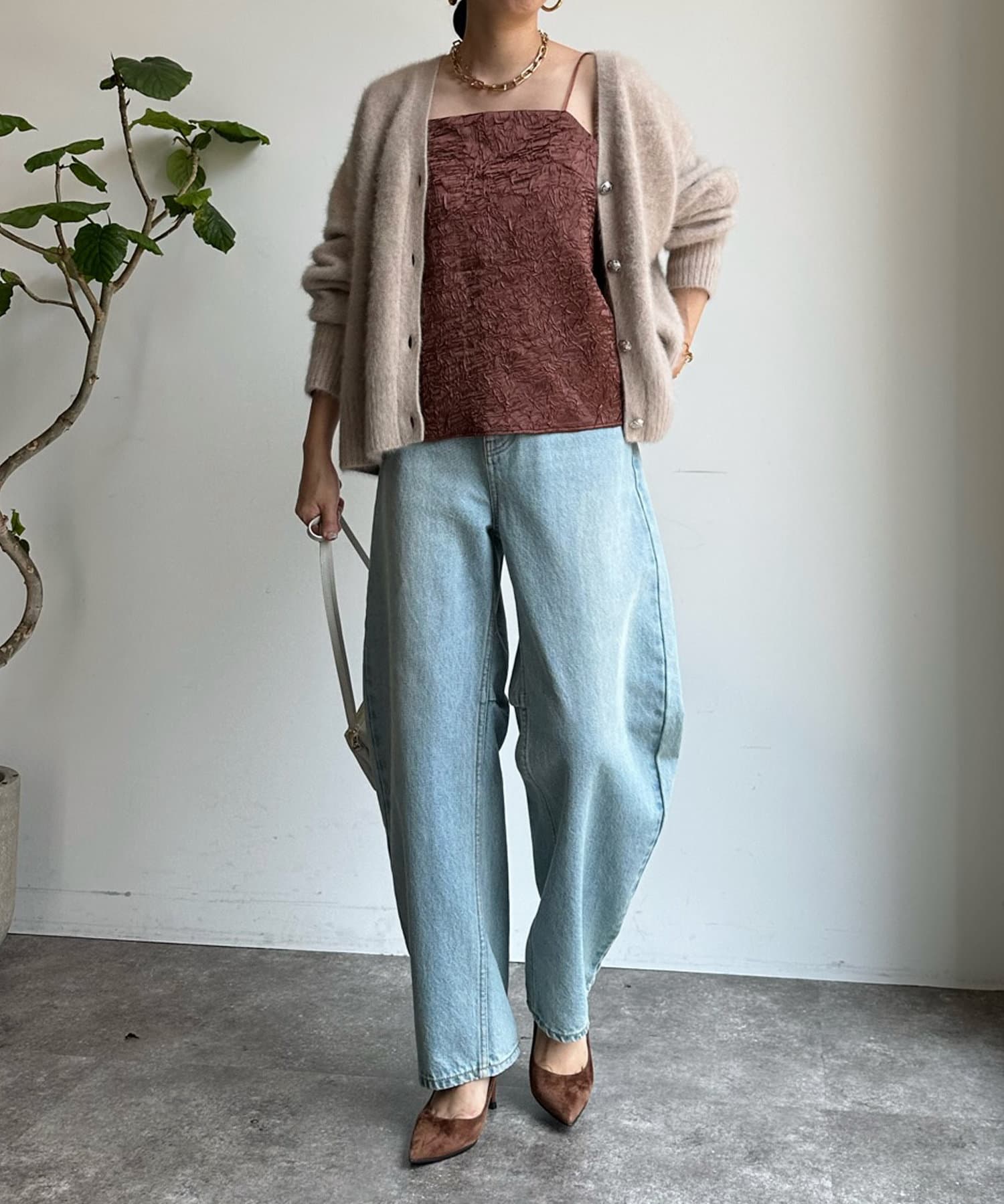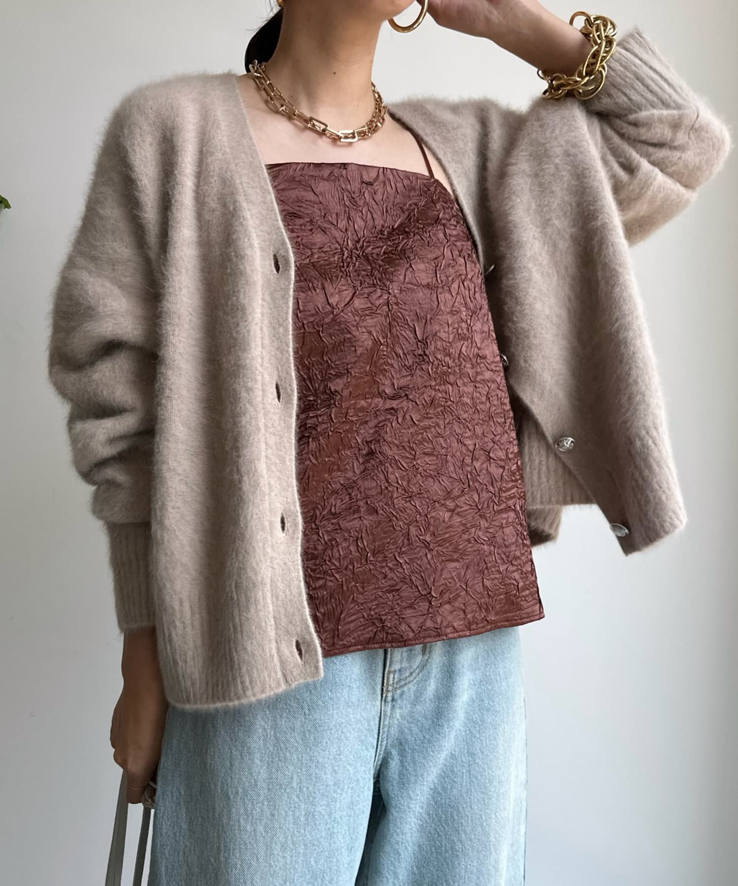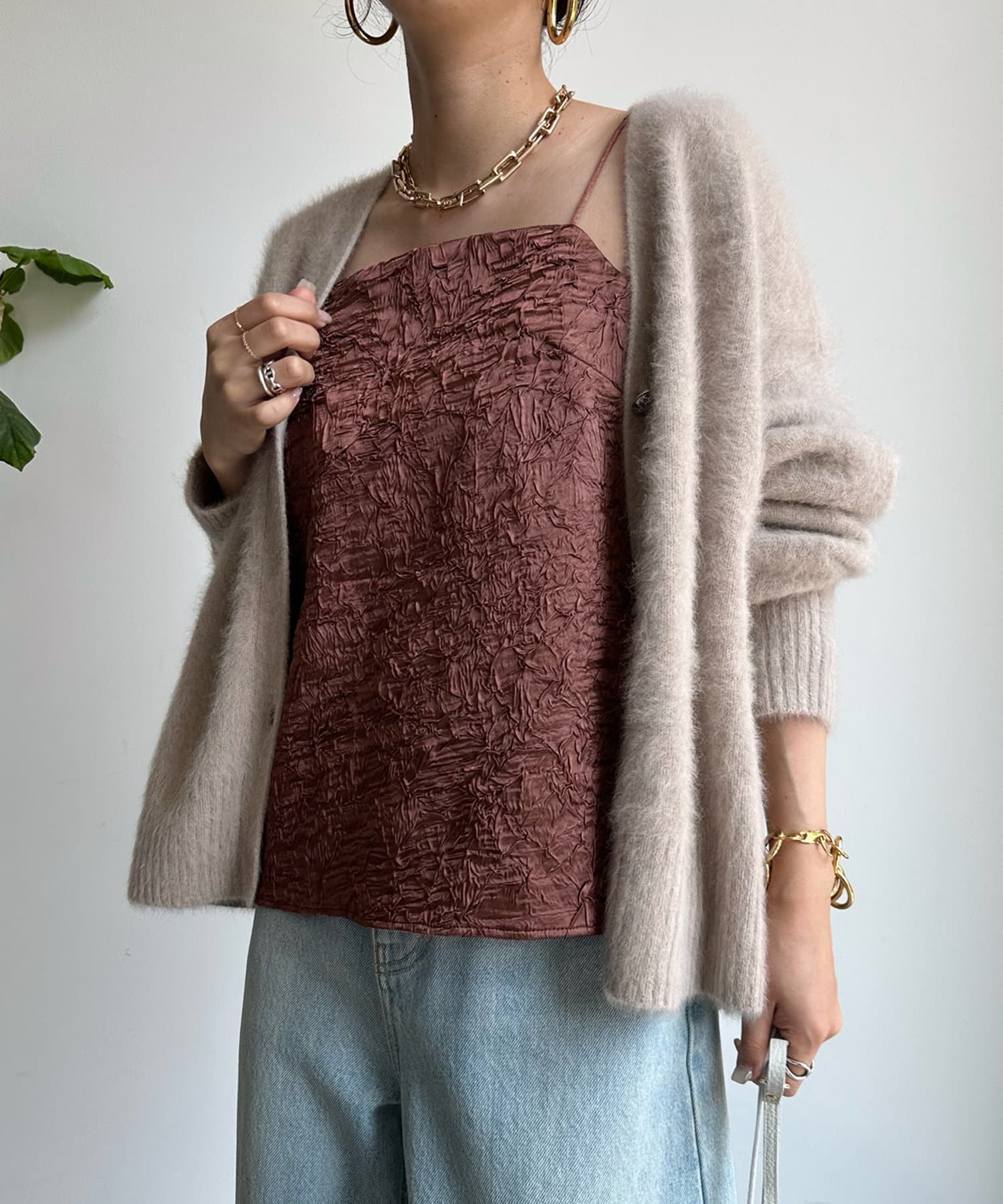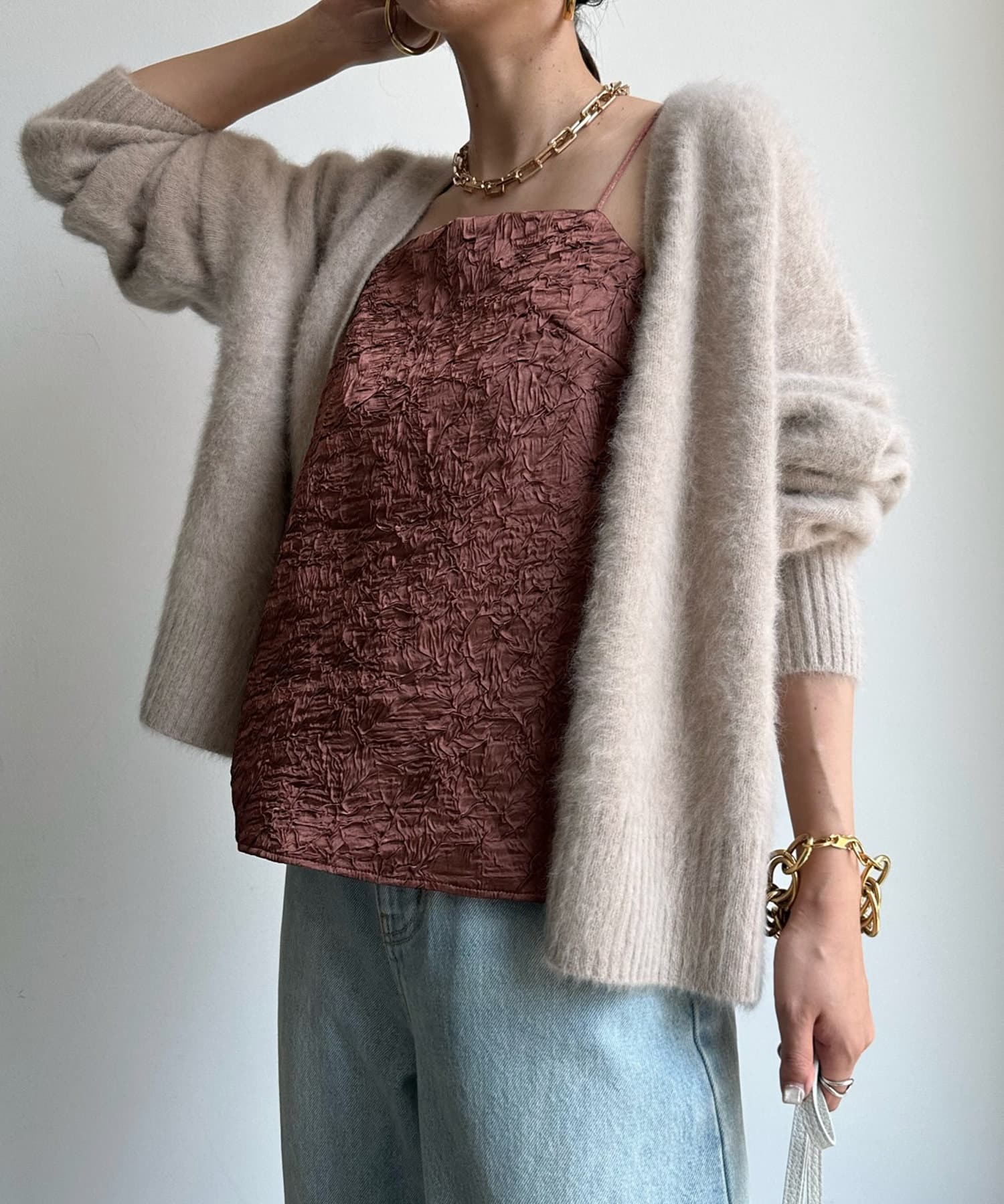 カットソーに合わせてビスチェとして着るのも、毛足のあるカーディガンのインナーとして着るのも◎