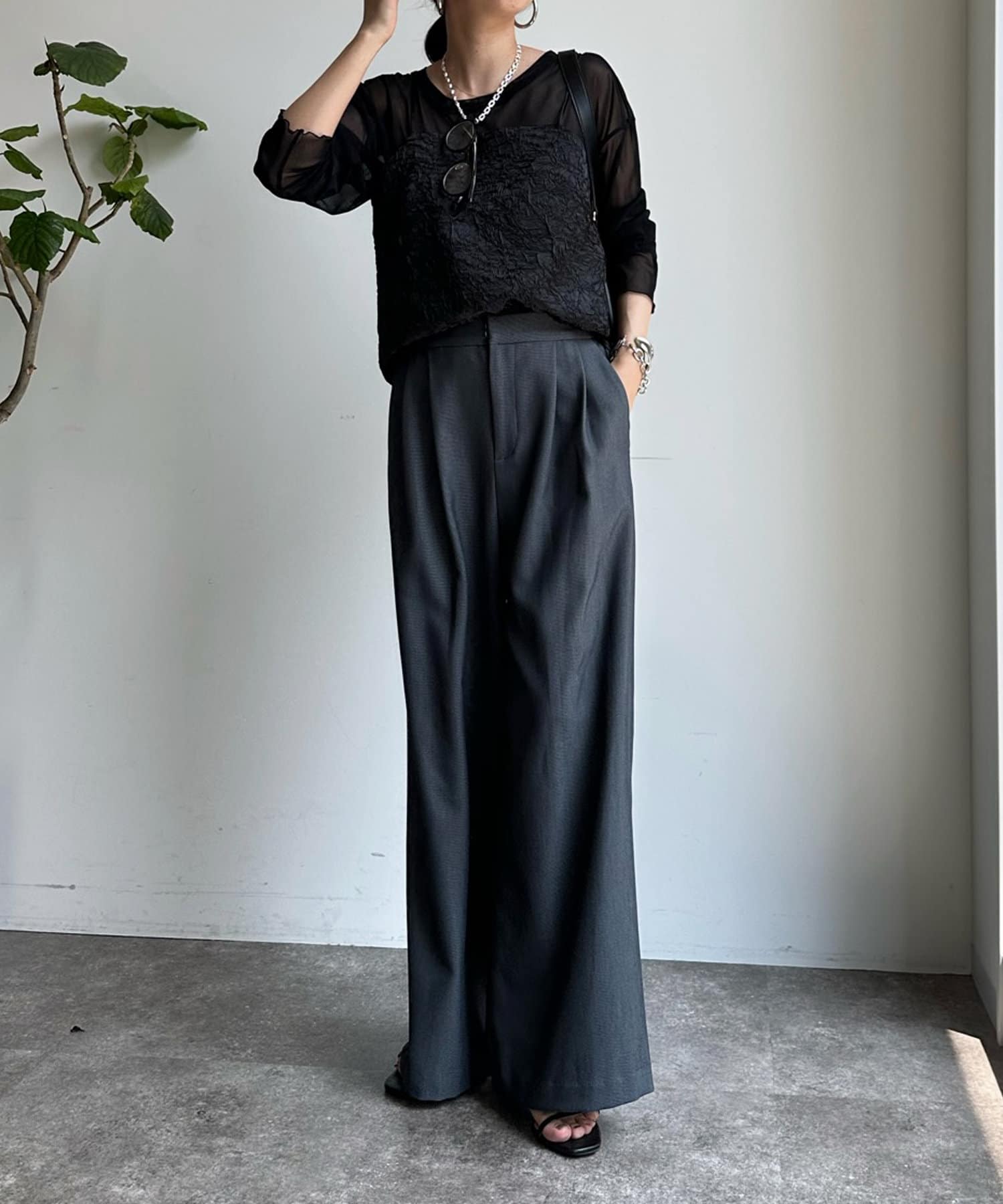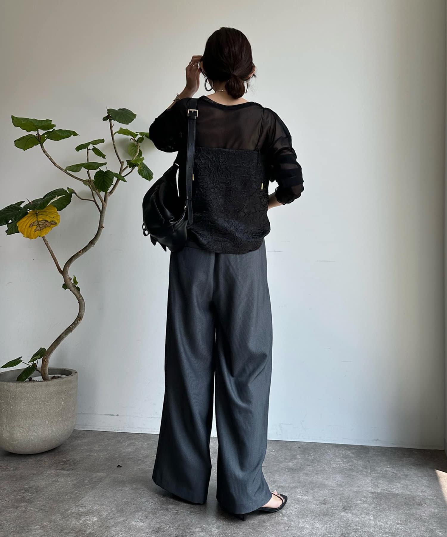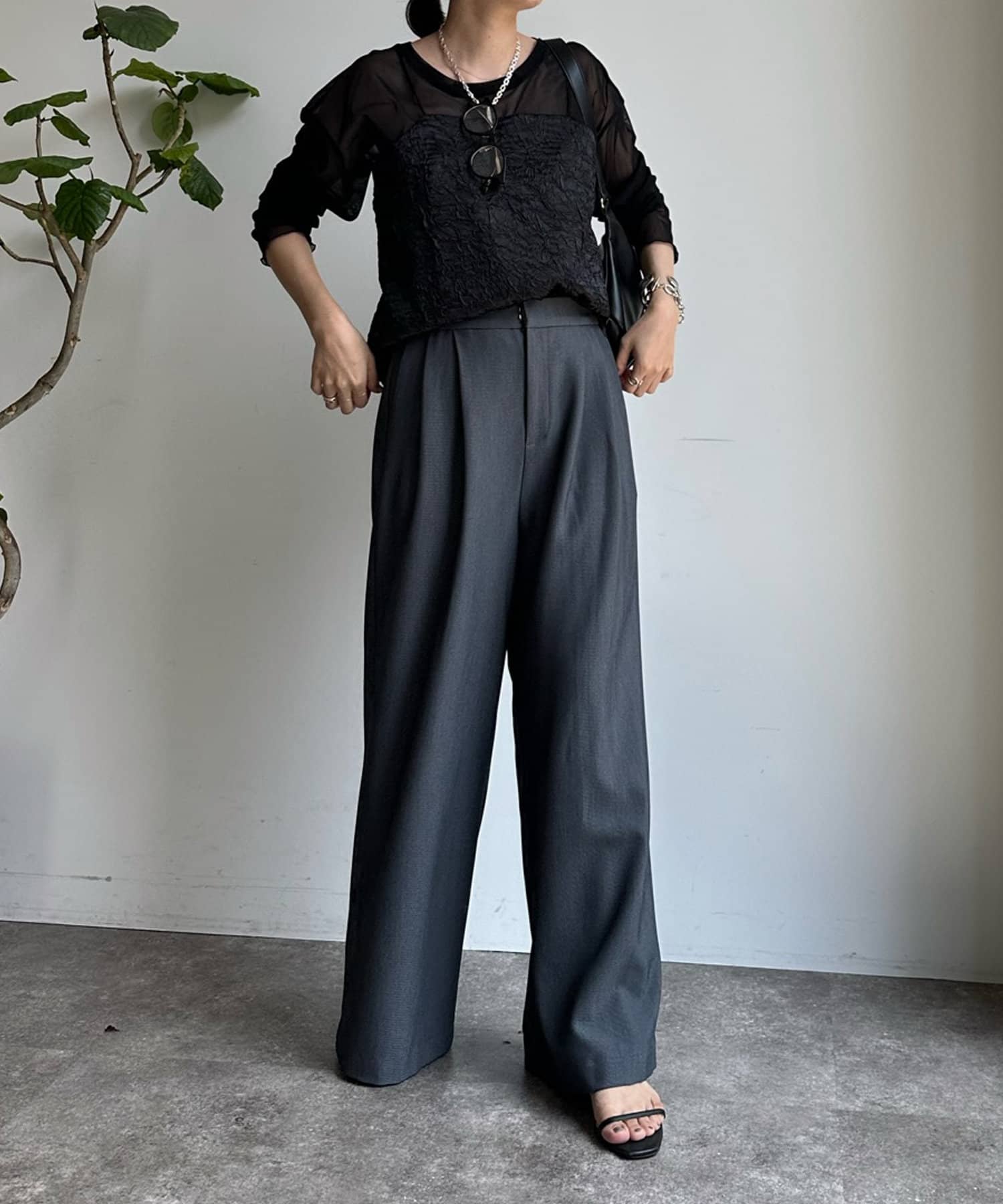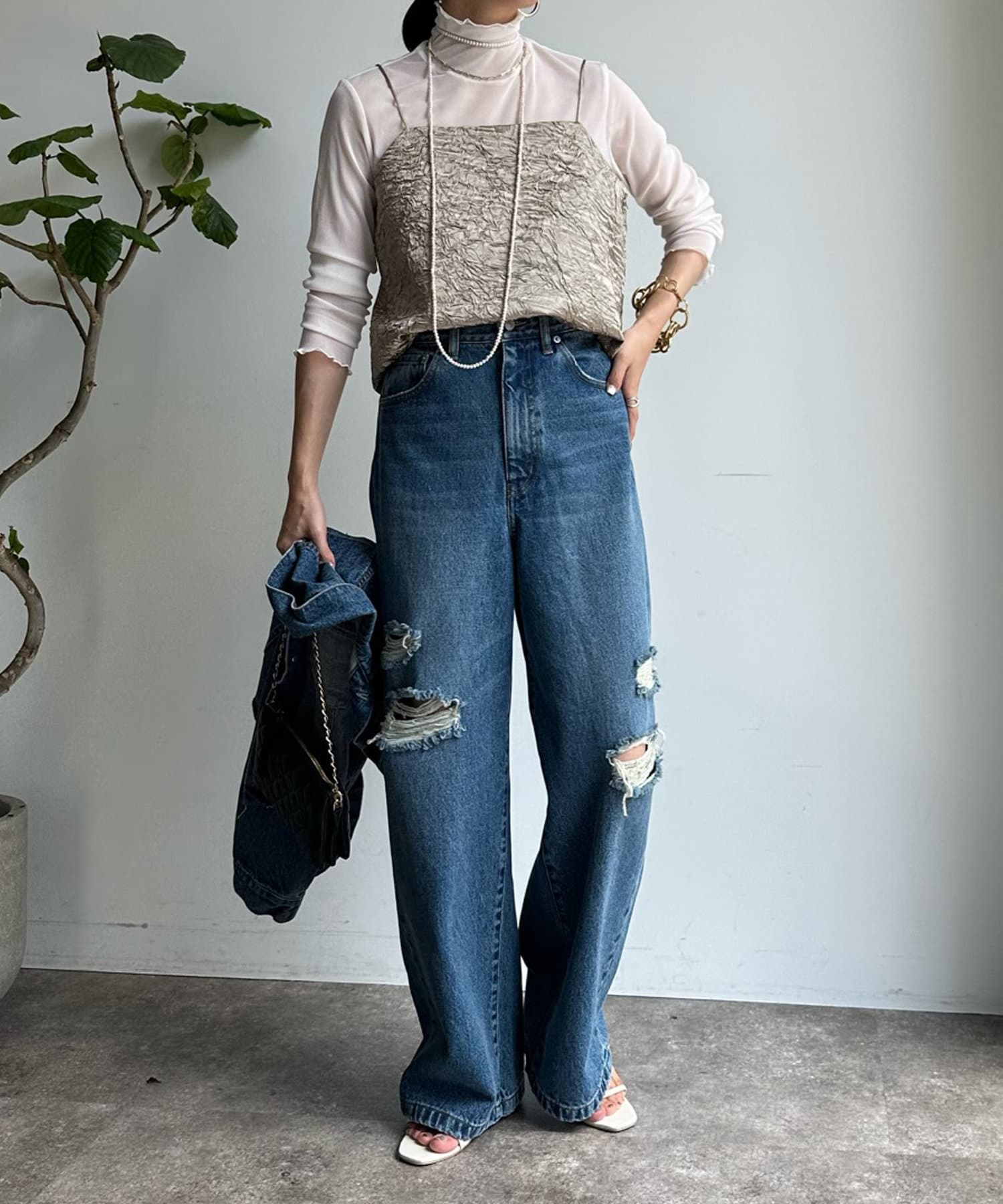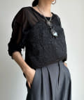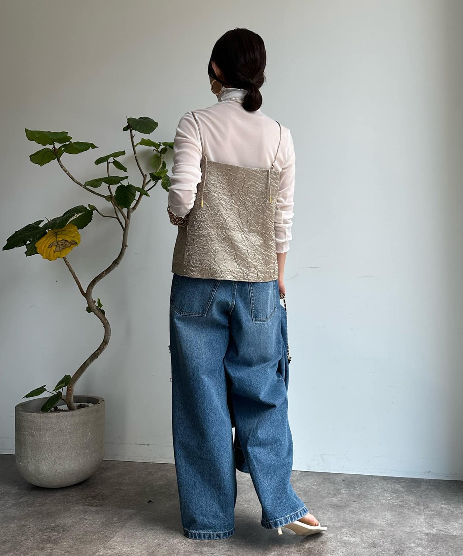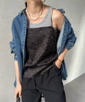 カットソーに合わせてビスチェとして着るのも、毛足のあるカーディガンのインナーとして着るのも◎