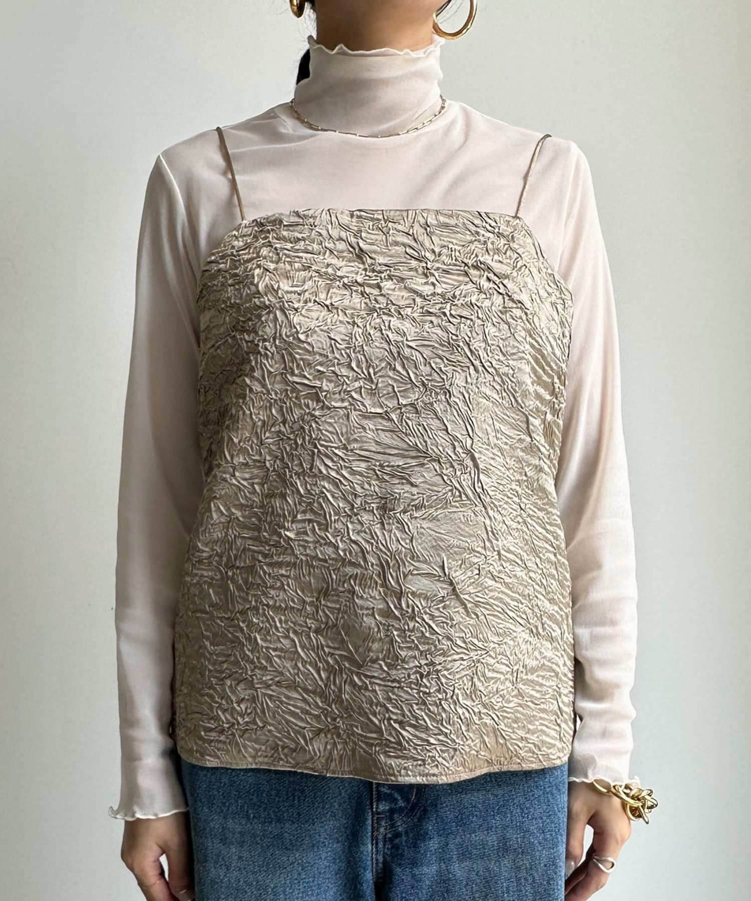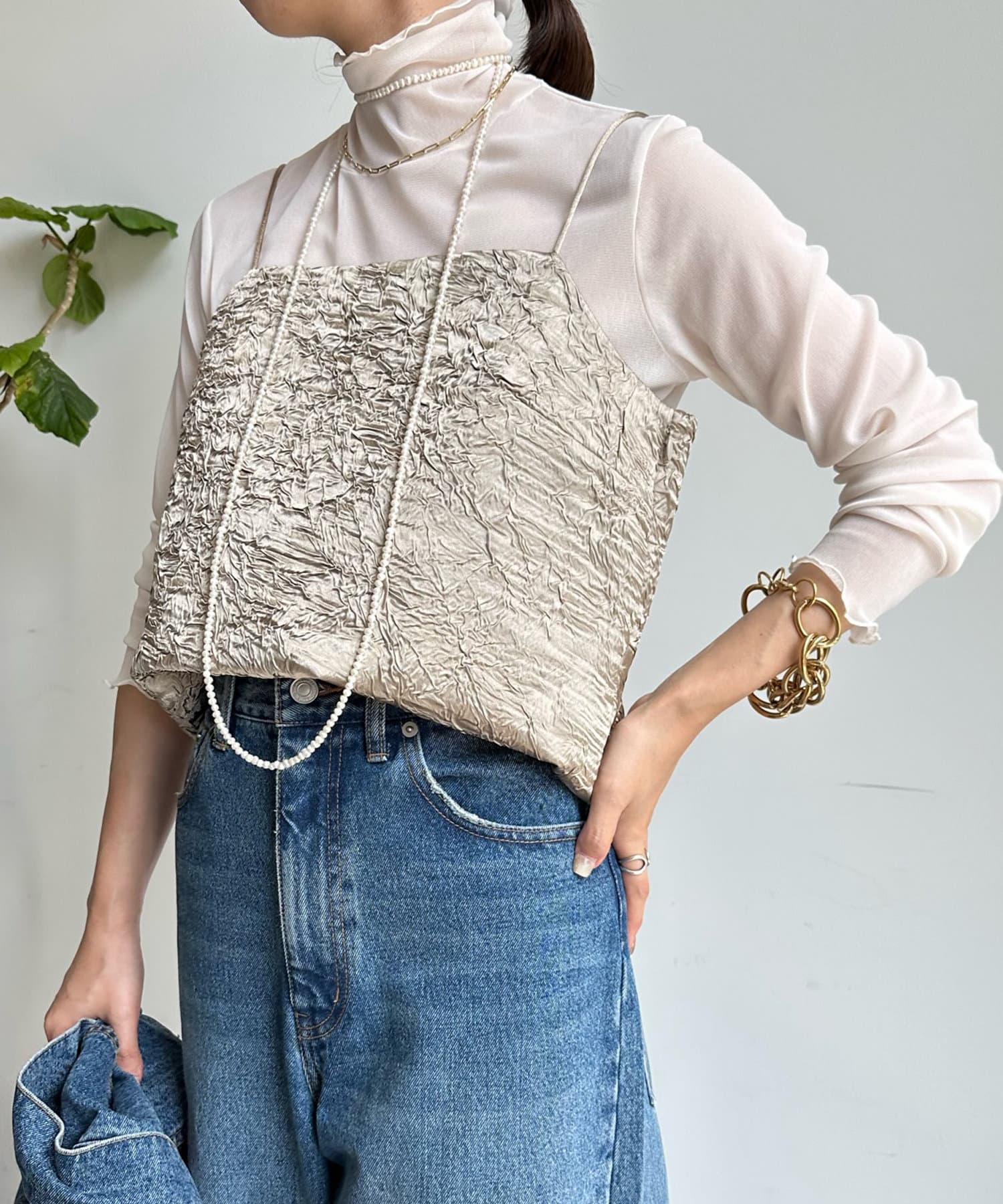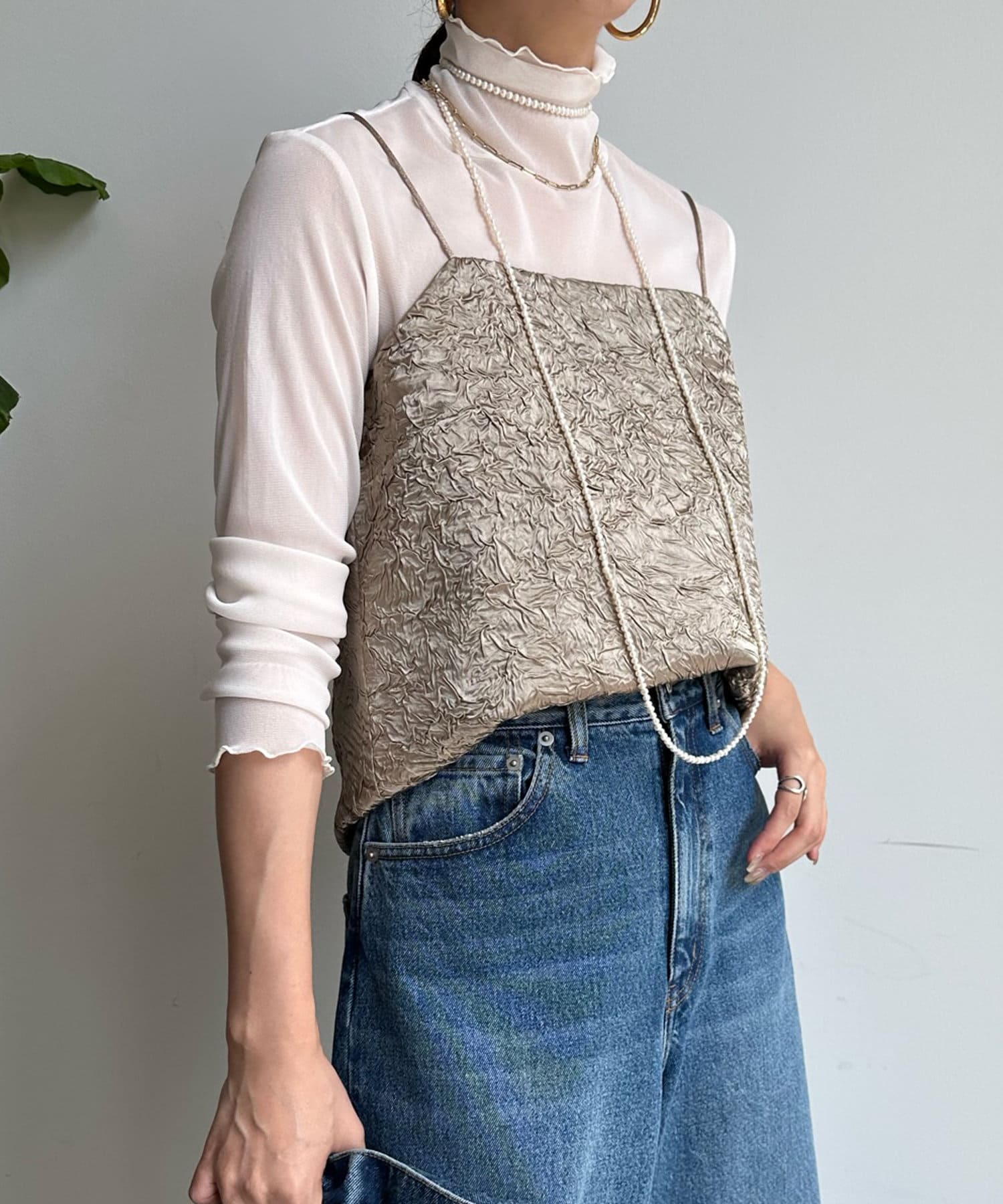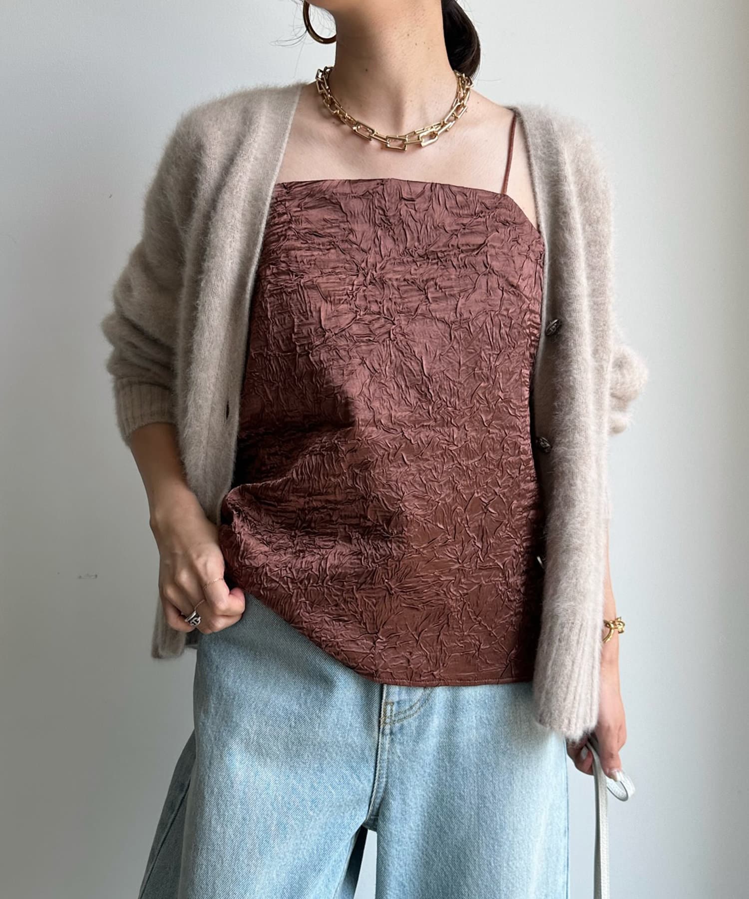 トレンドの凸凹感があるフクレジャガードの素材を使用したキャミソール。