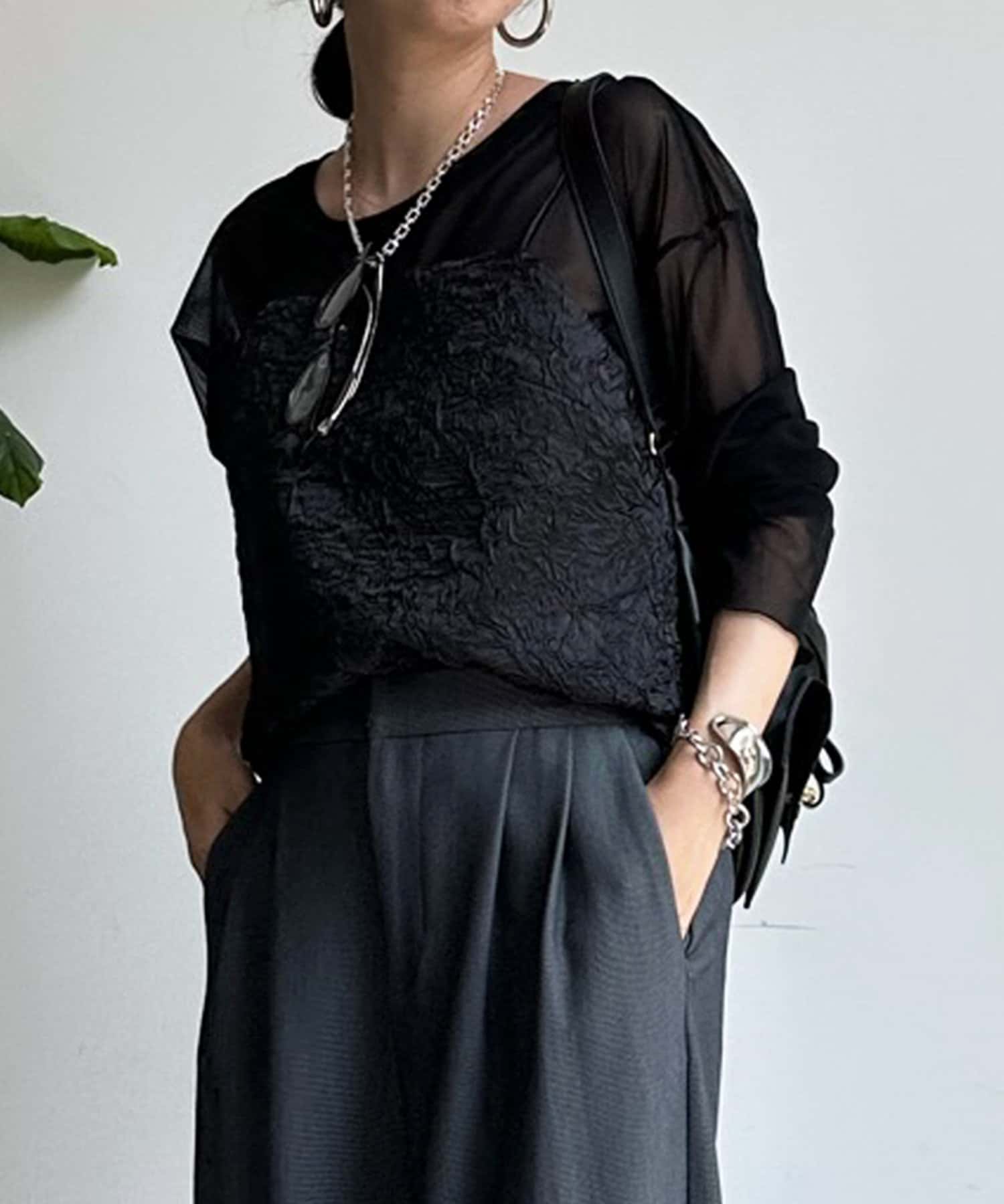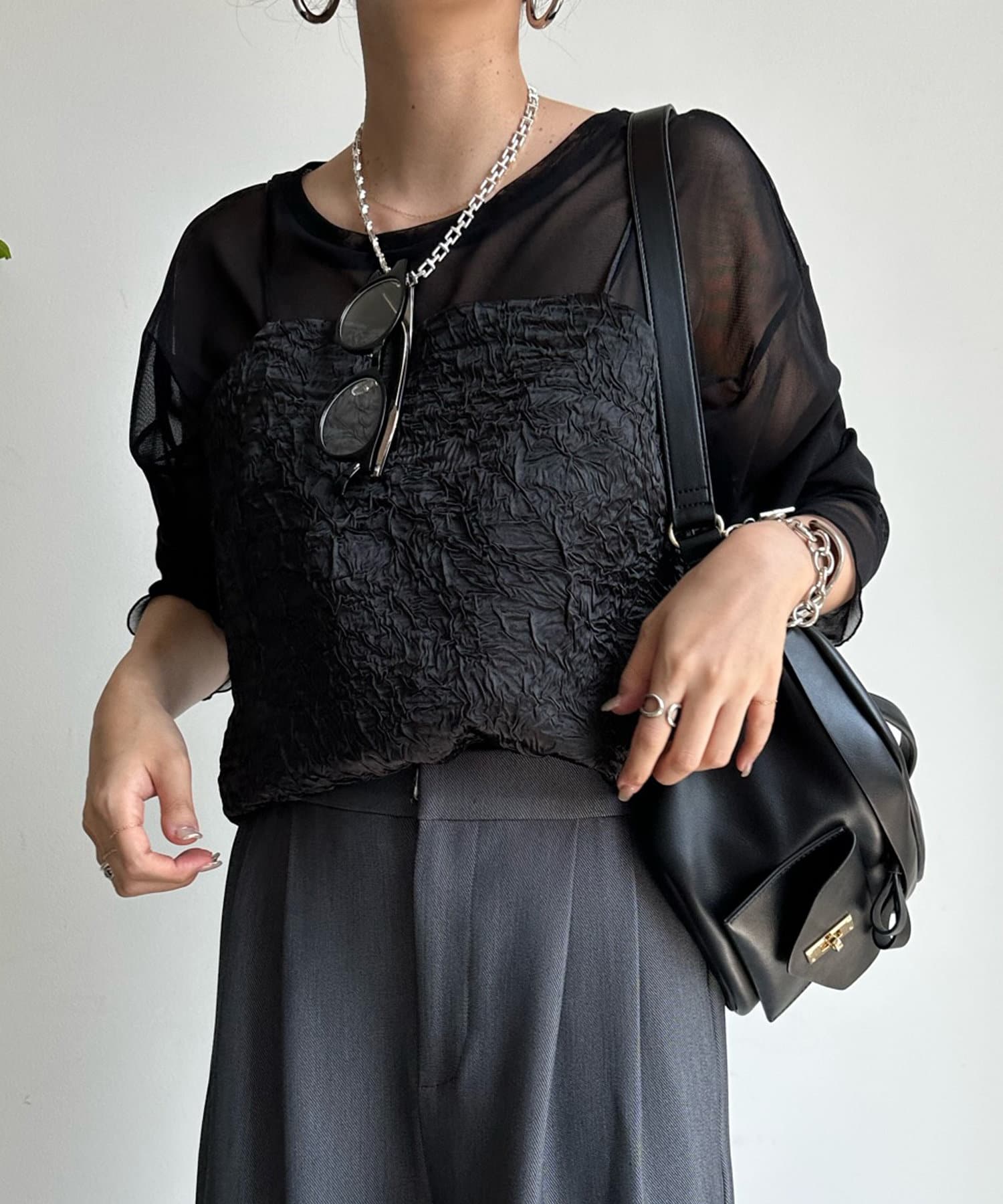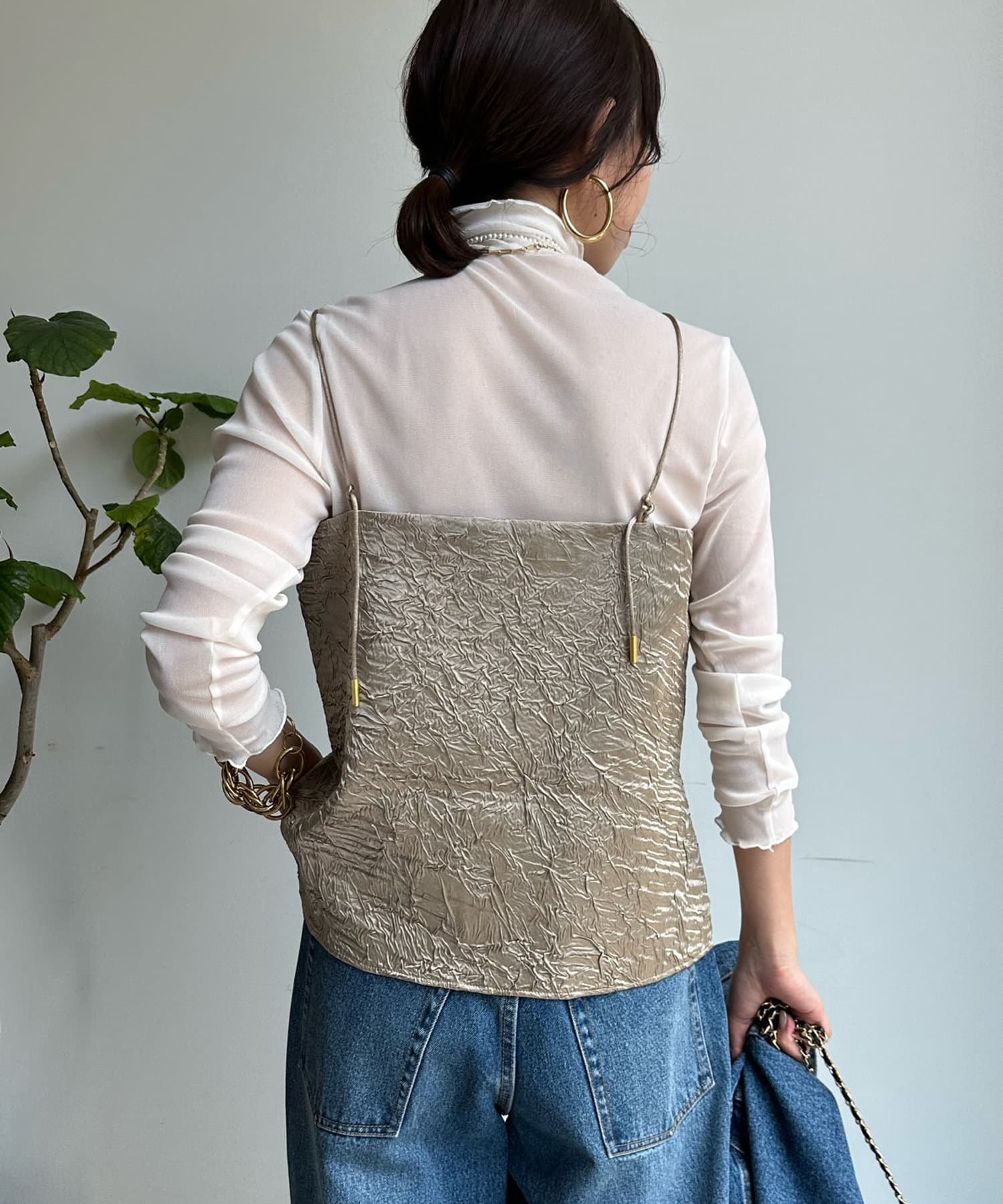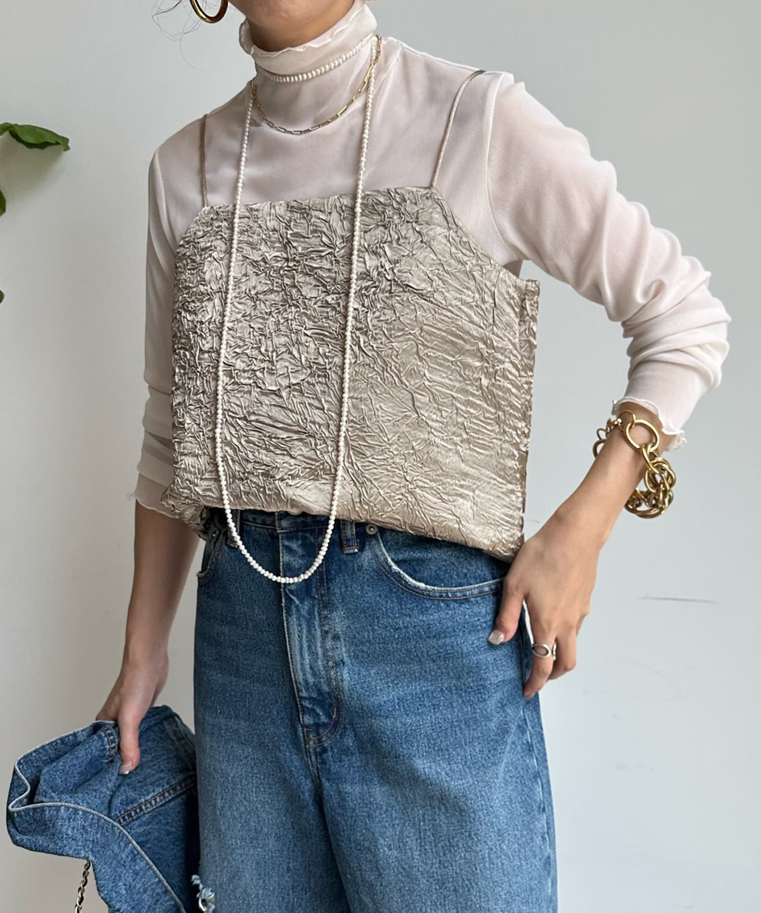 トレンドの凸凹感があるフクレジャガードの素材を使用したキャミソール。