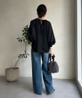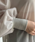 袖口は手首にきゅっと沿う柔らかなリブ素材に切り替え、ふんわりとボリューム感のでる袖シルエットづくりをサポート。