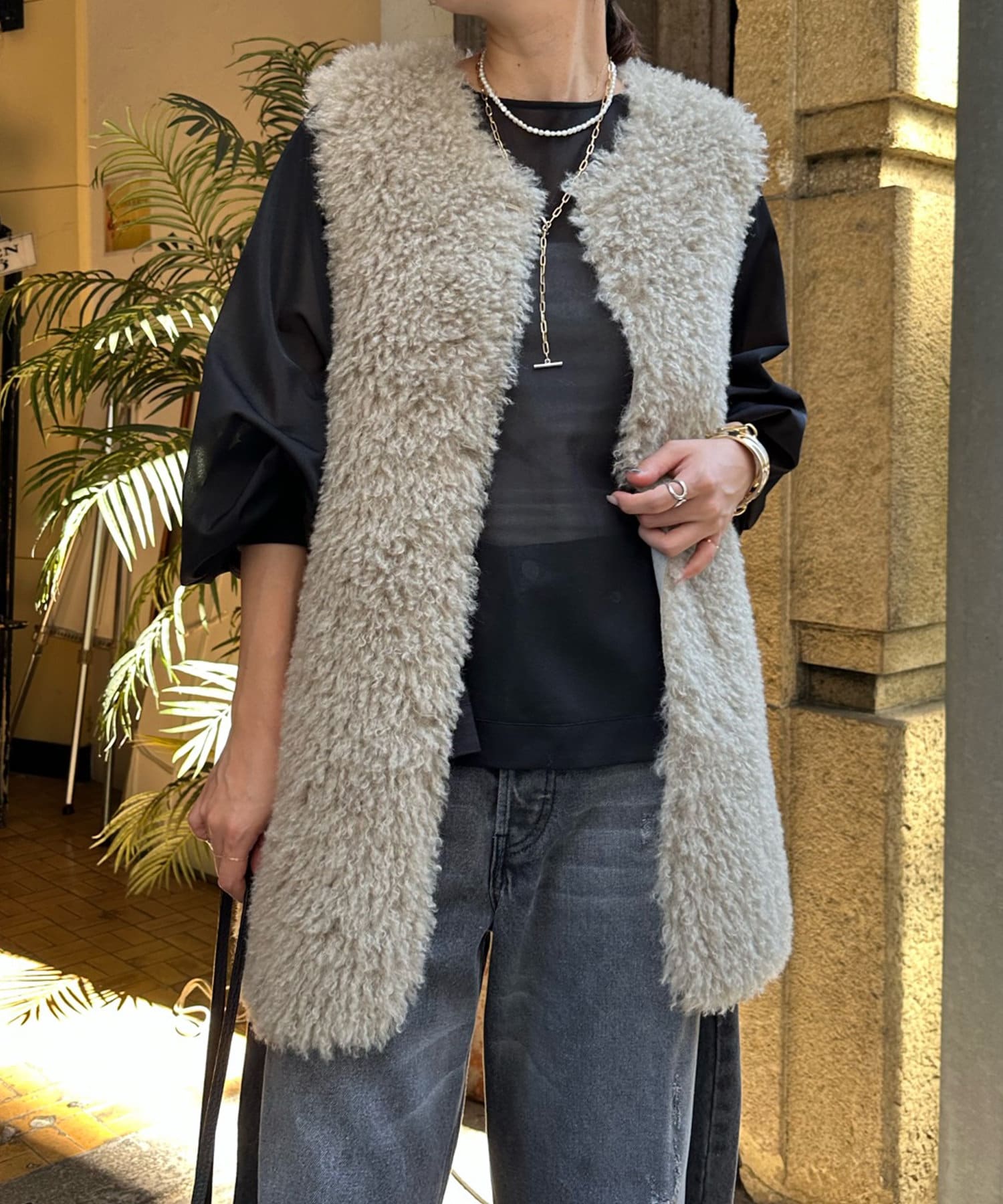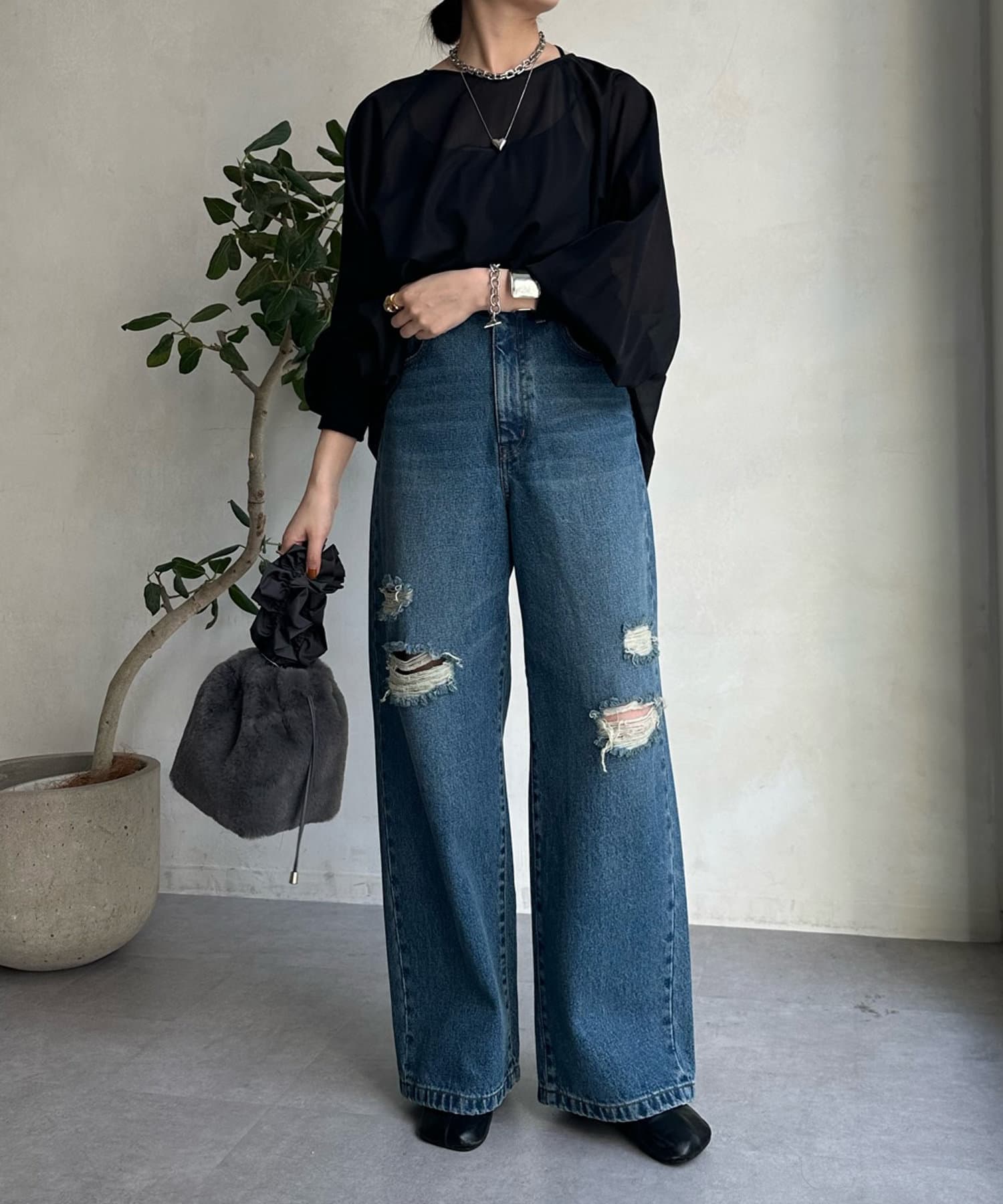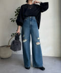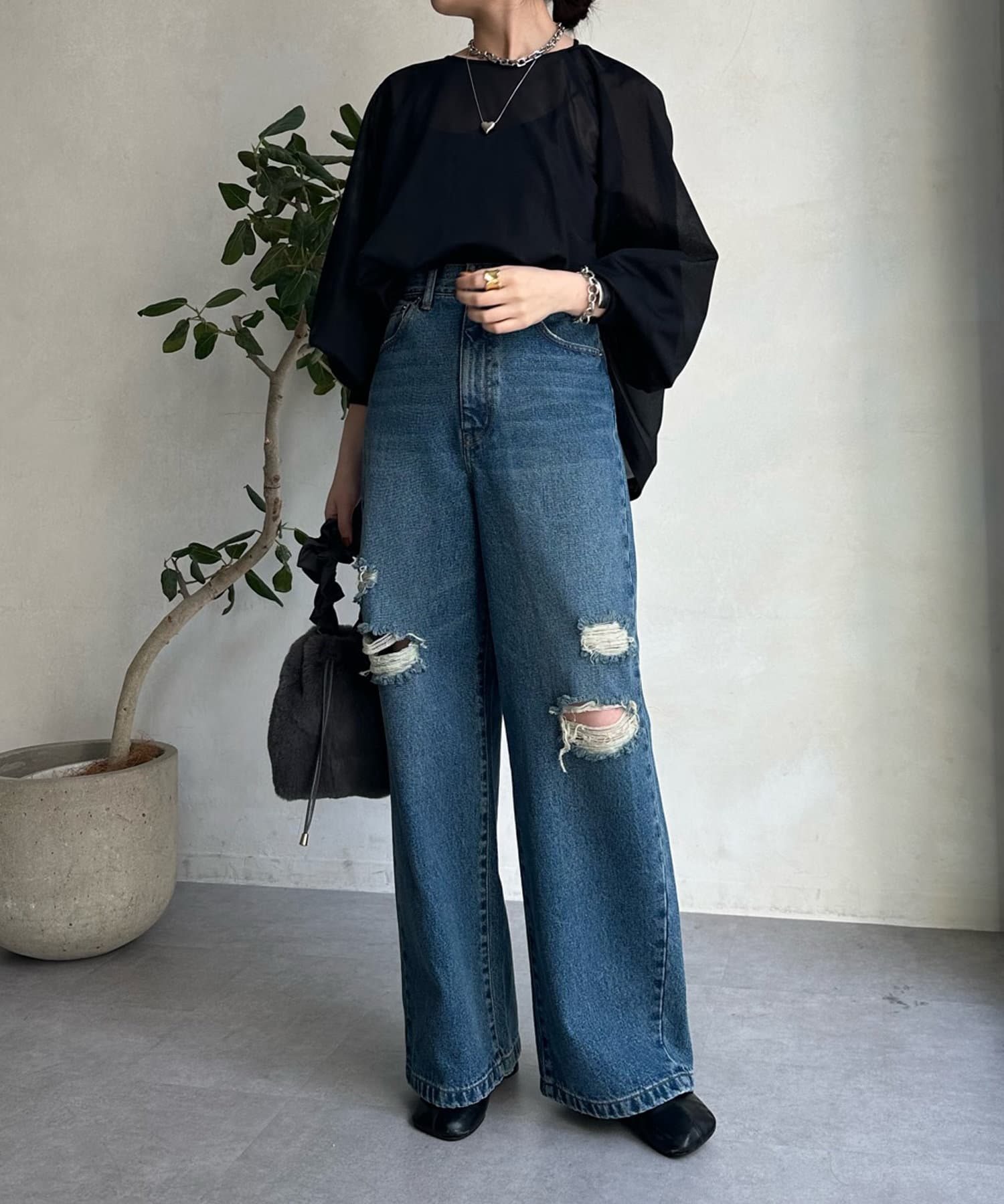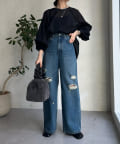 デニムやワイドパンツなどカジュアル感のあるアイテムとMIXしてスタイリングすると今らしく決まりますよ。