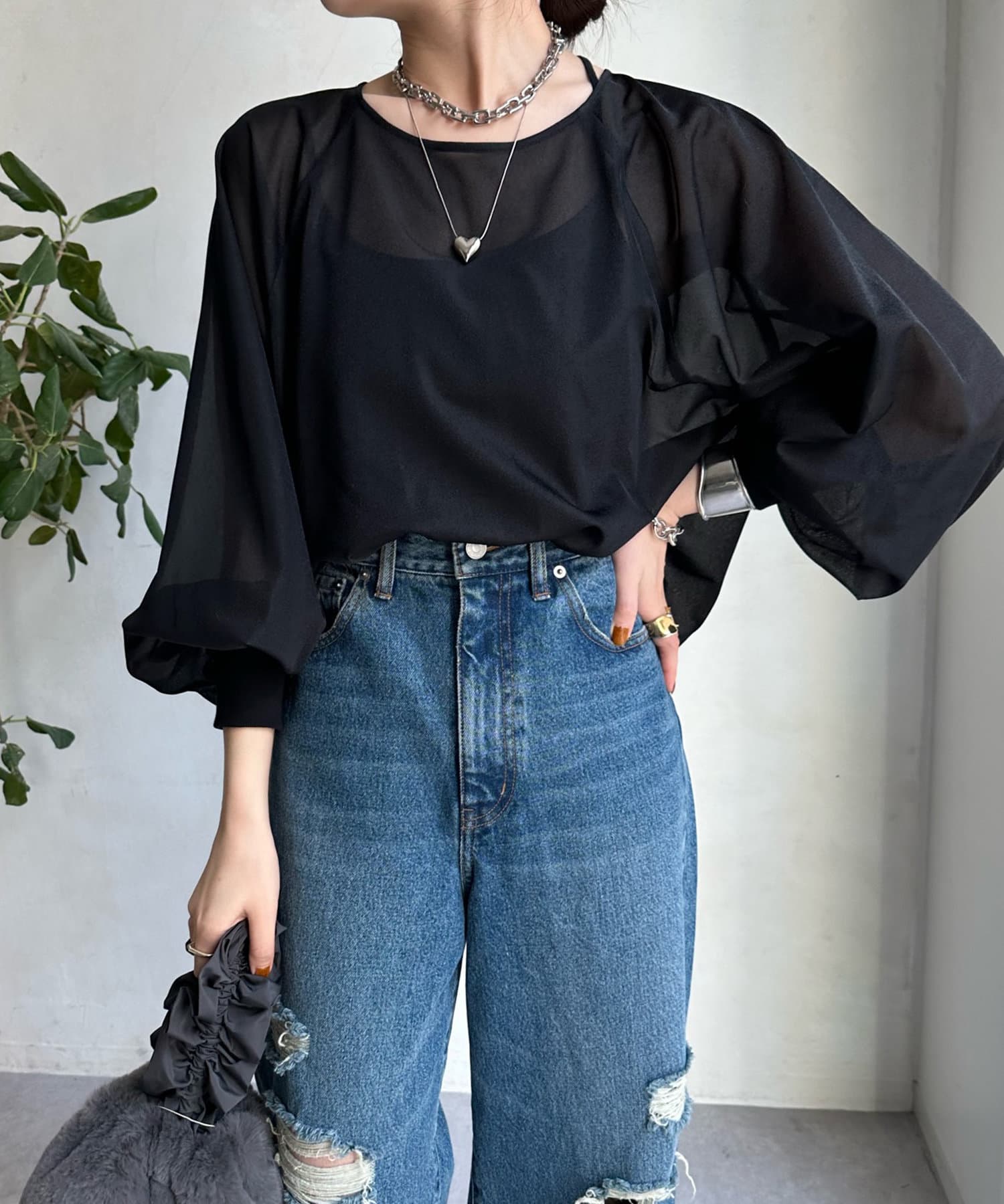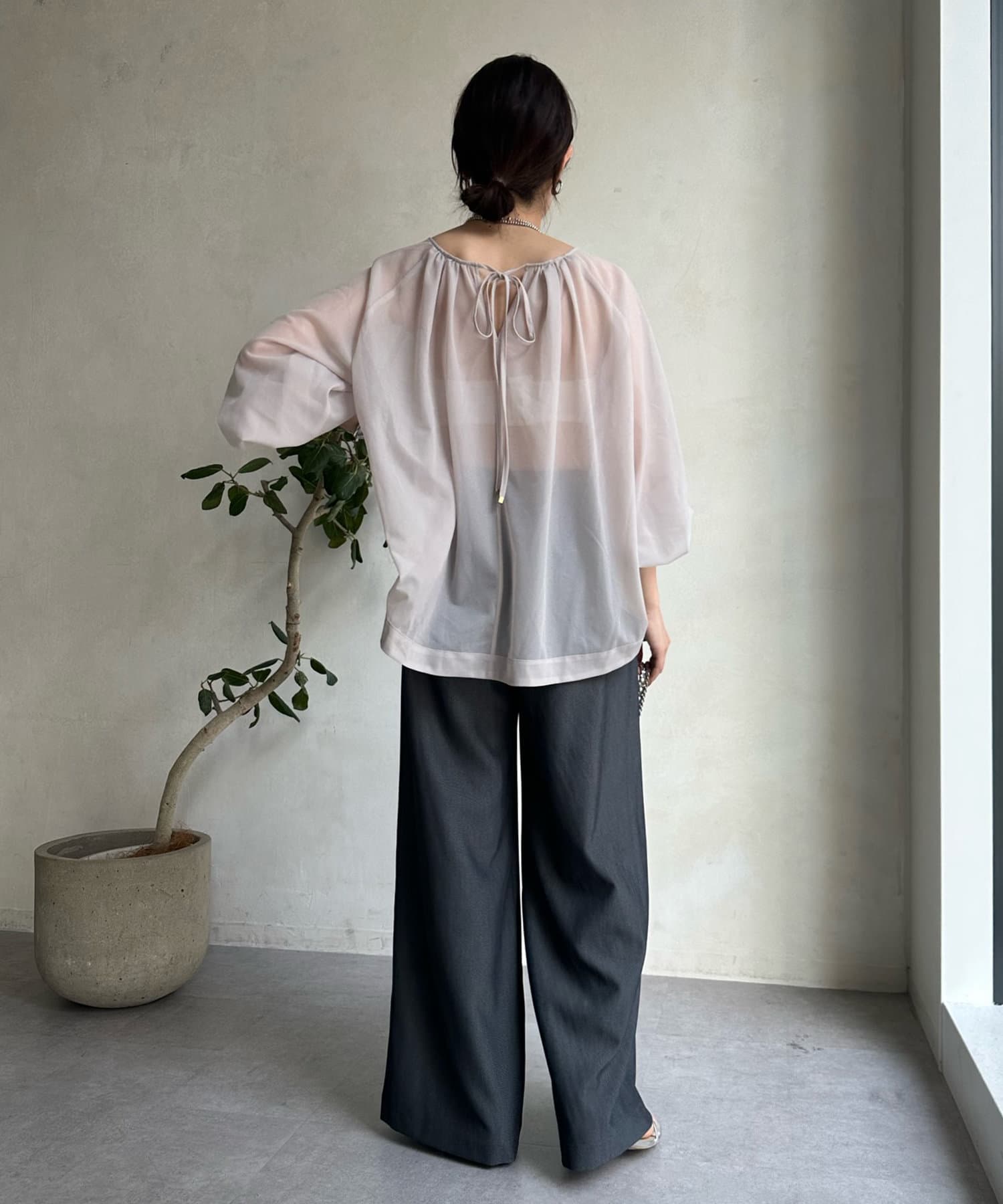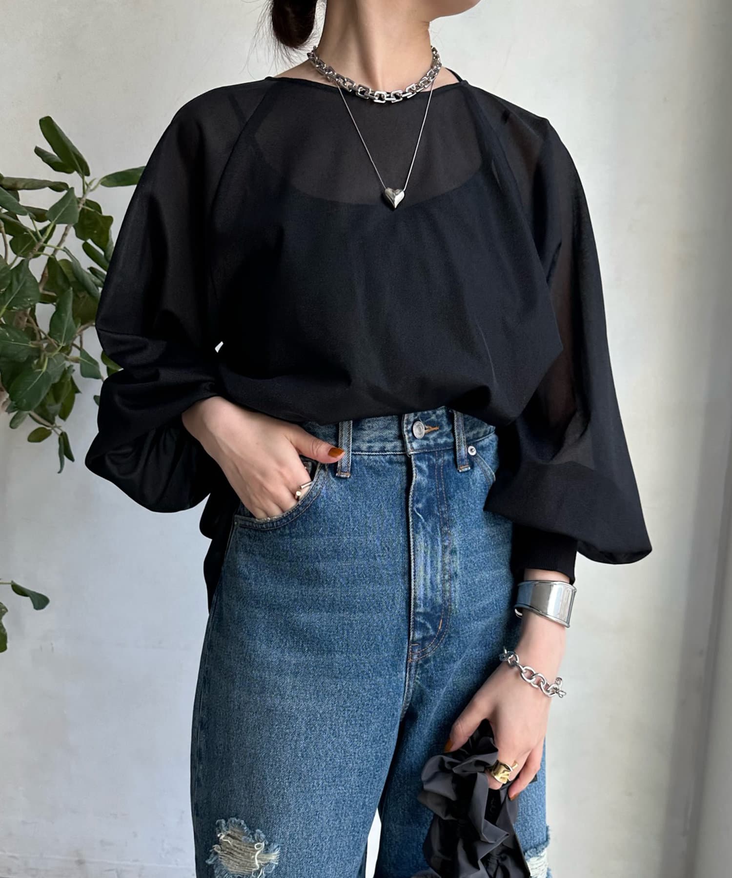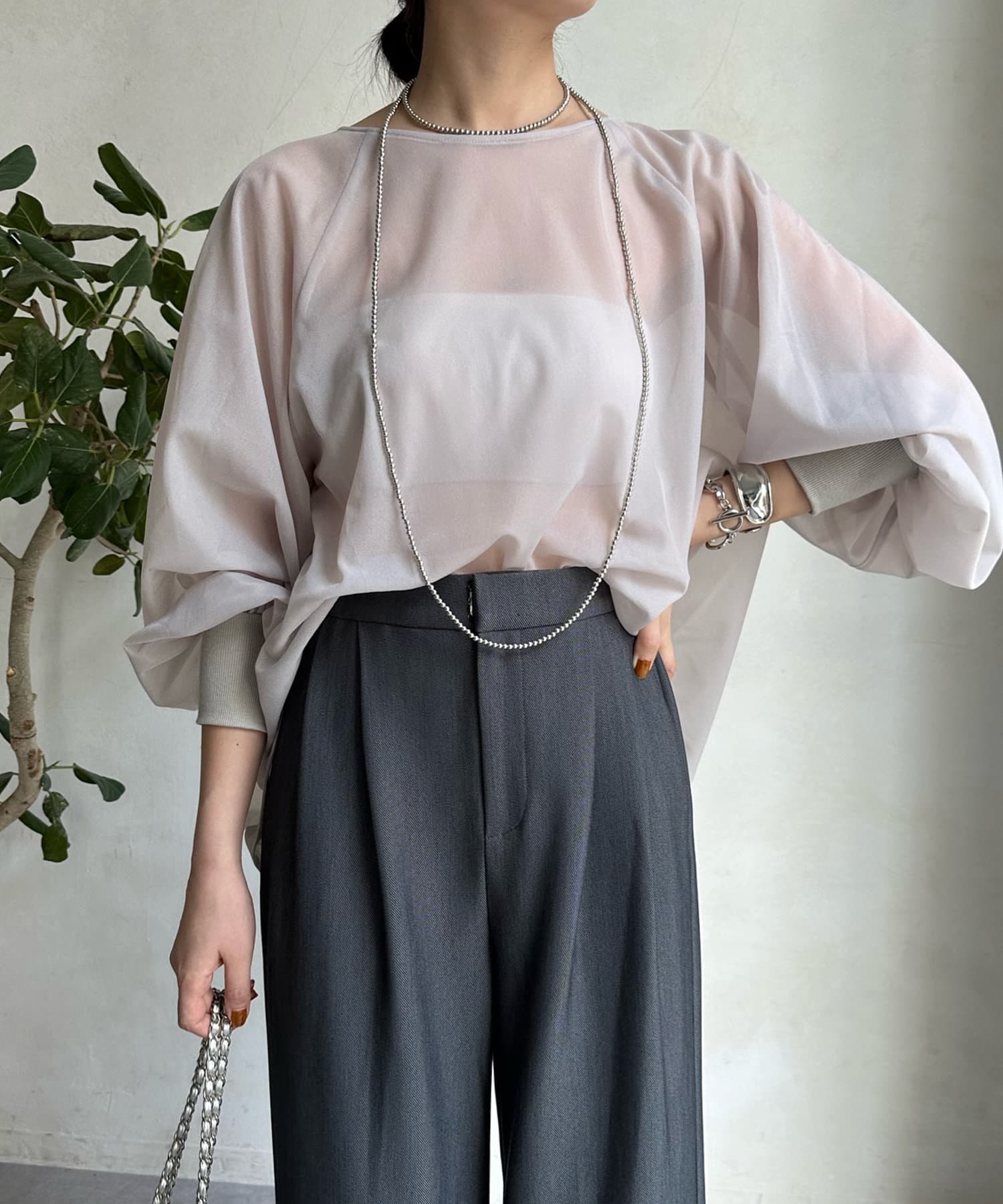 透け感のある上品な素材で仕上げ、スタイリングに程よい抜け感を与える1着として活躍してくれます。