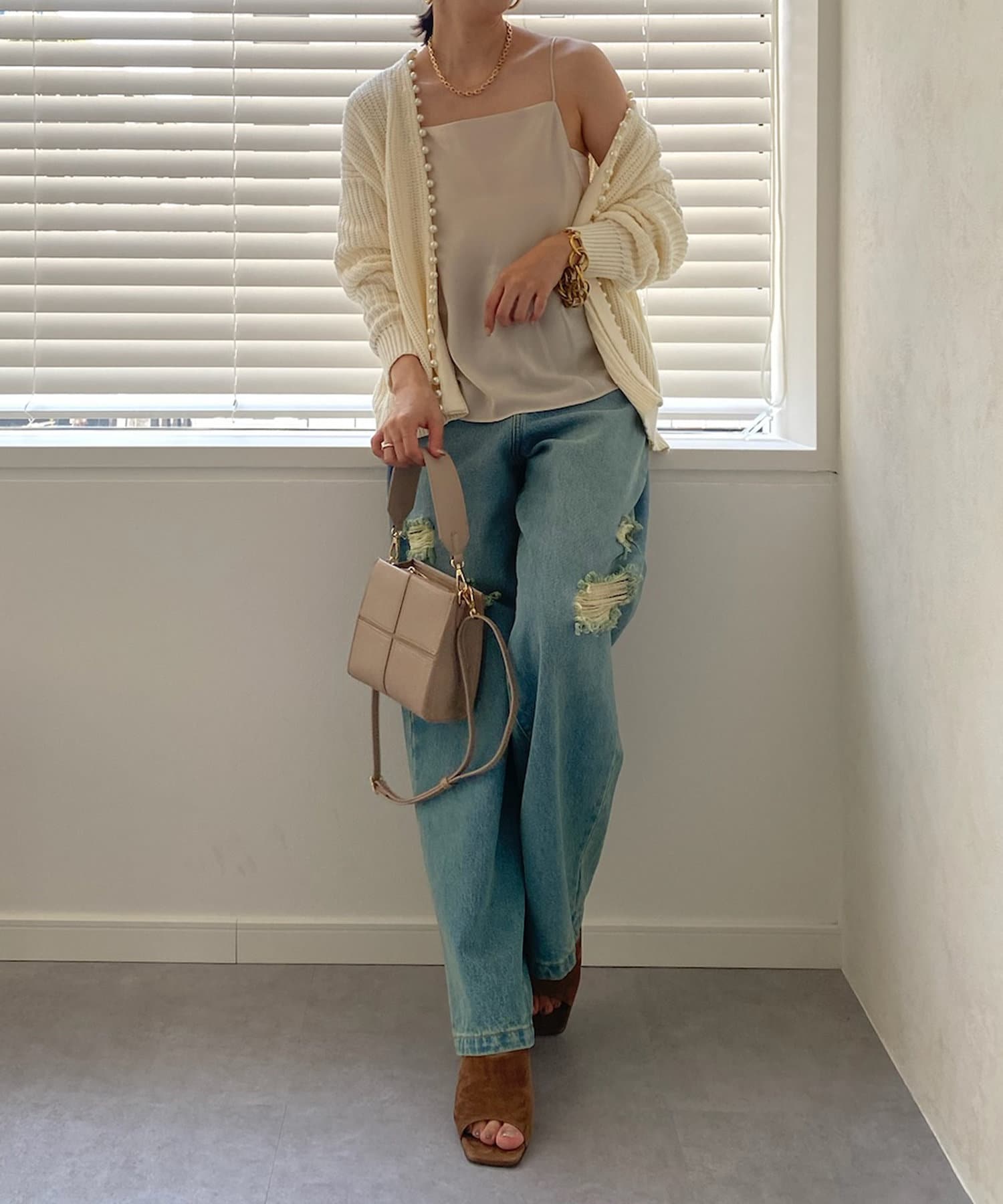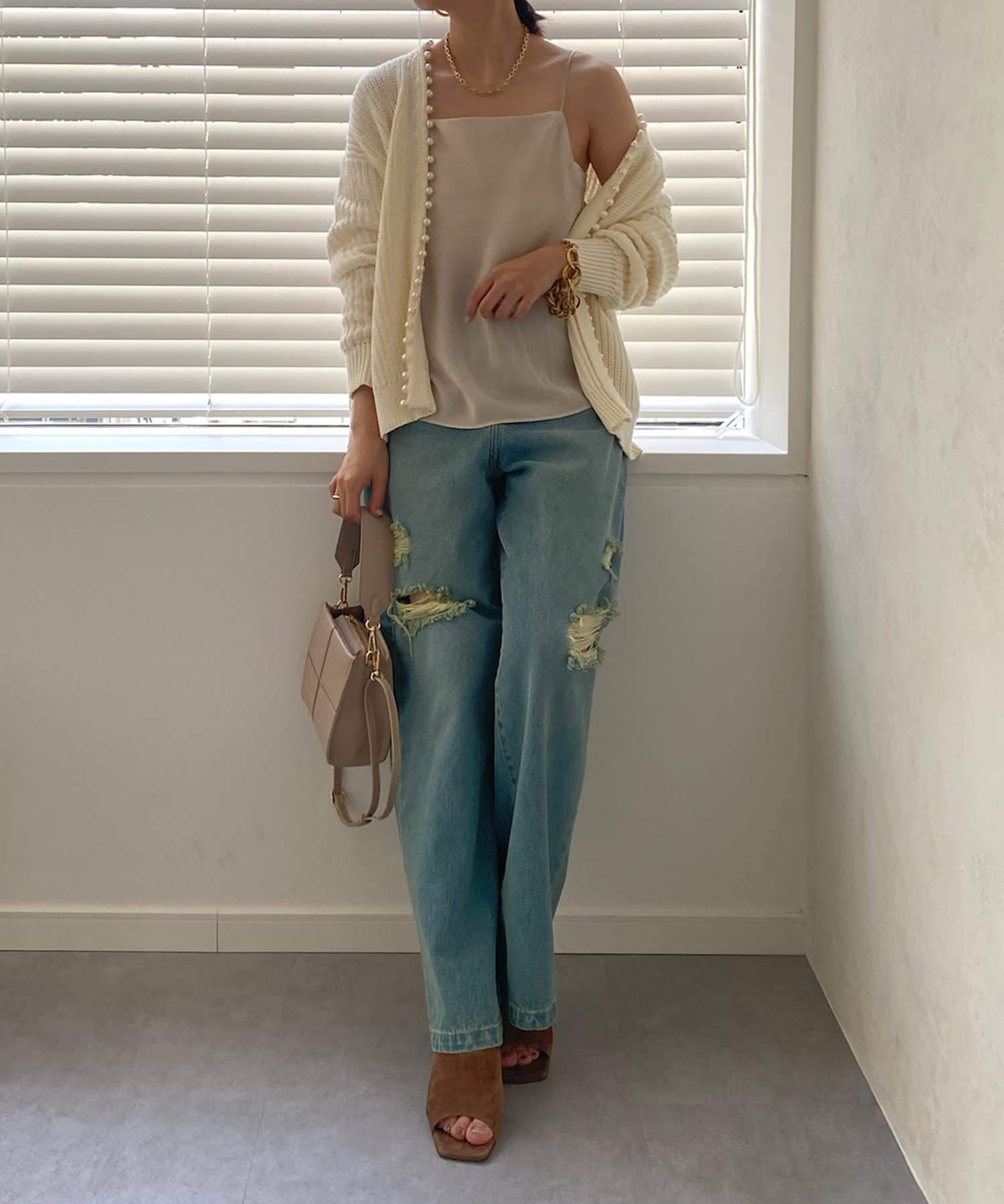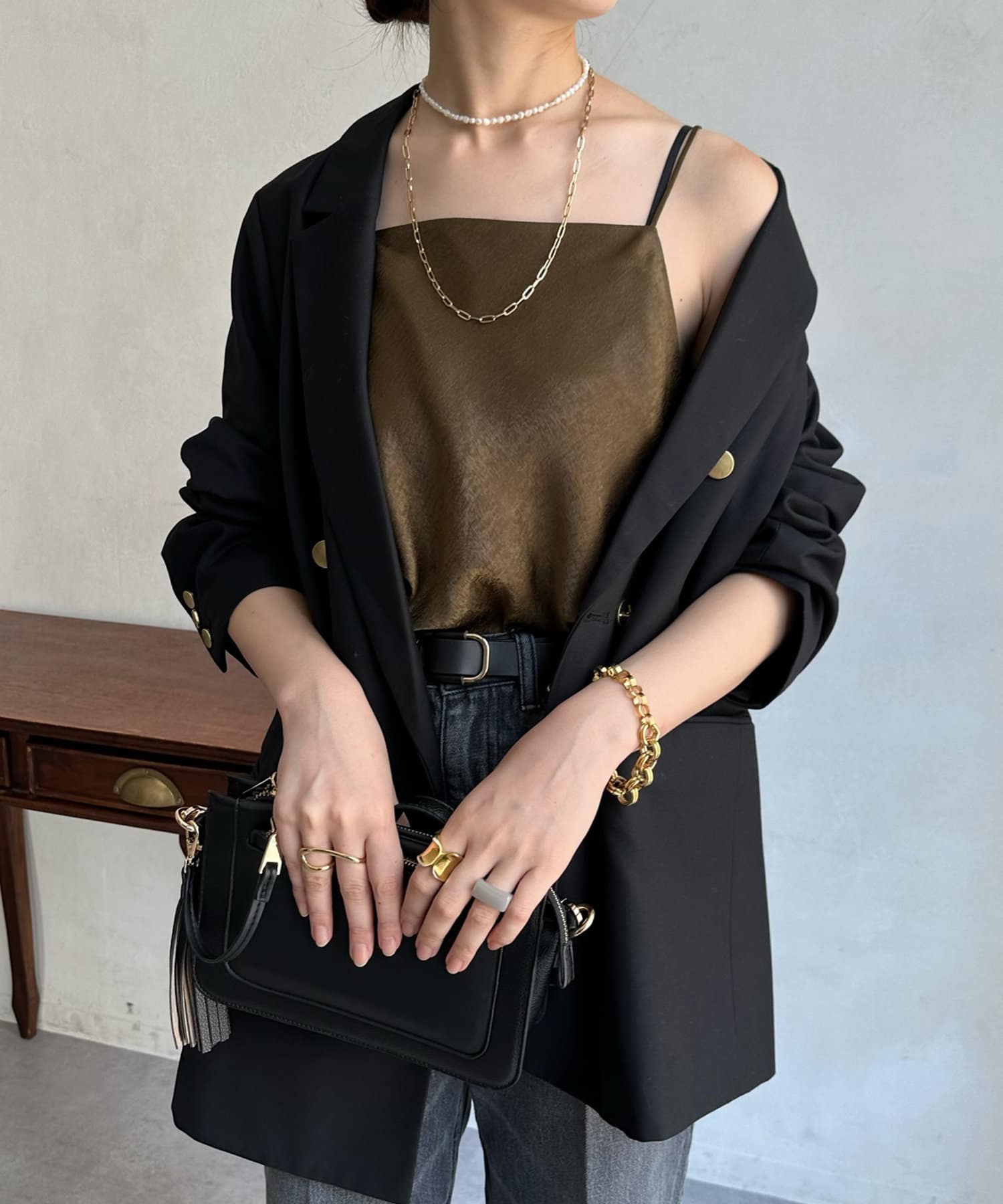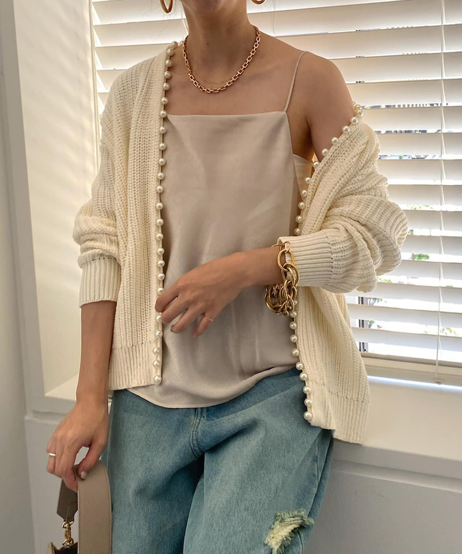 華奢な肩紐で、レディライクな抜け感をプラス。