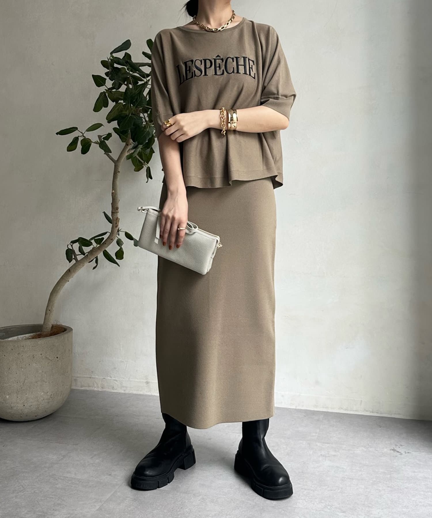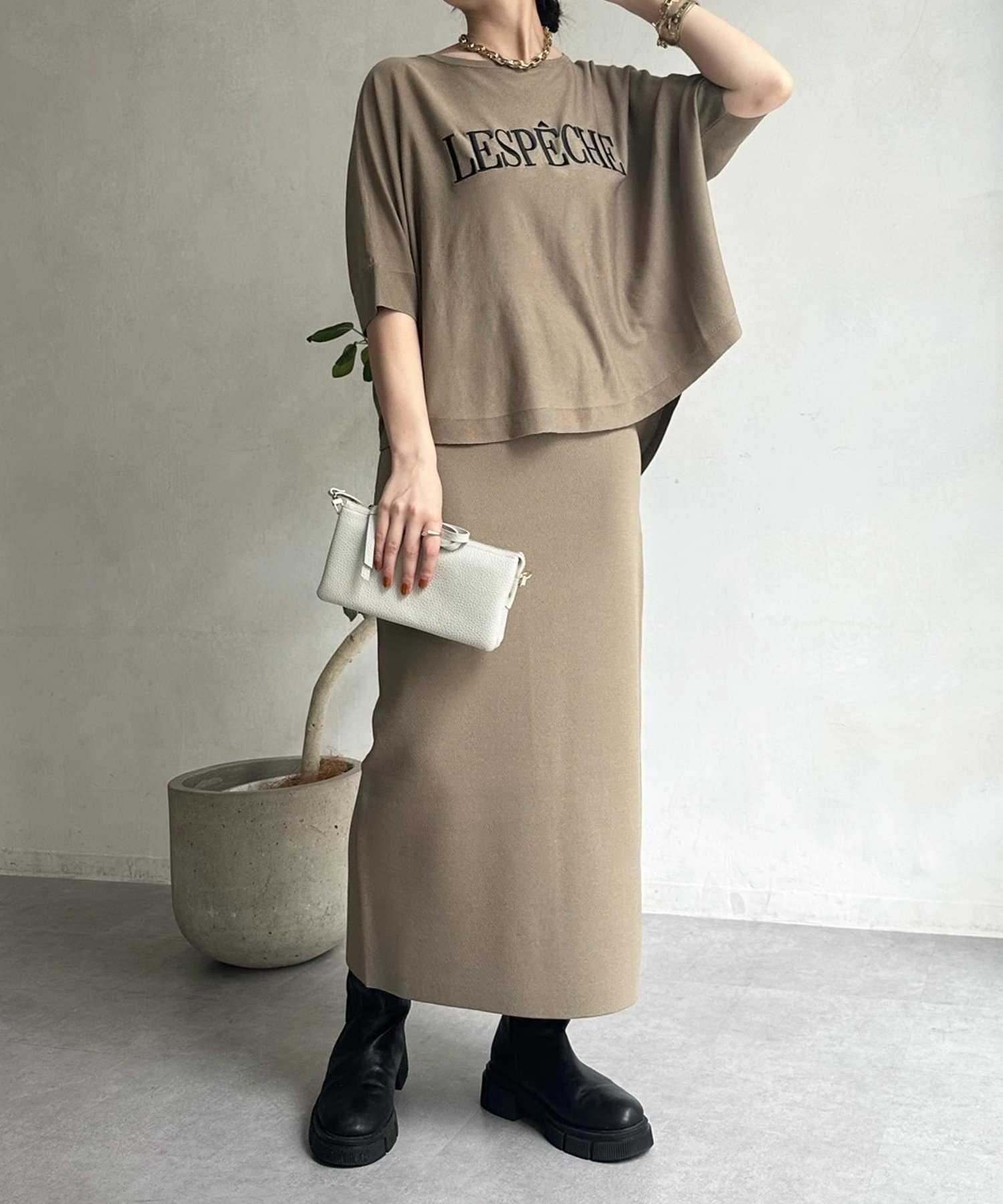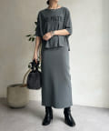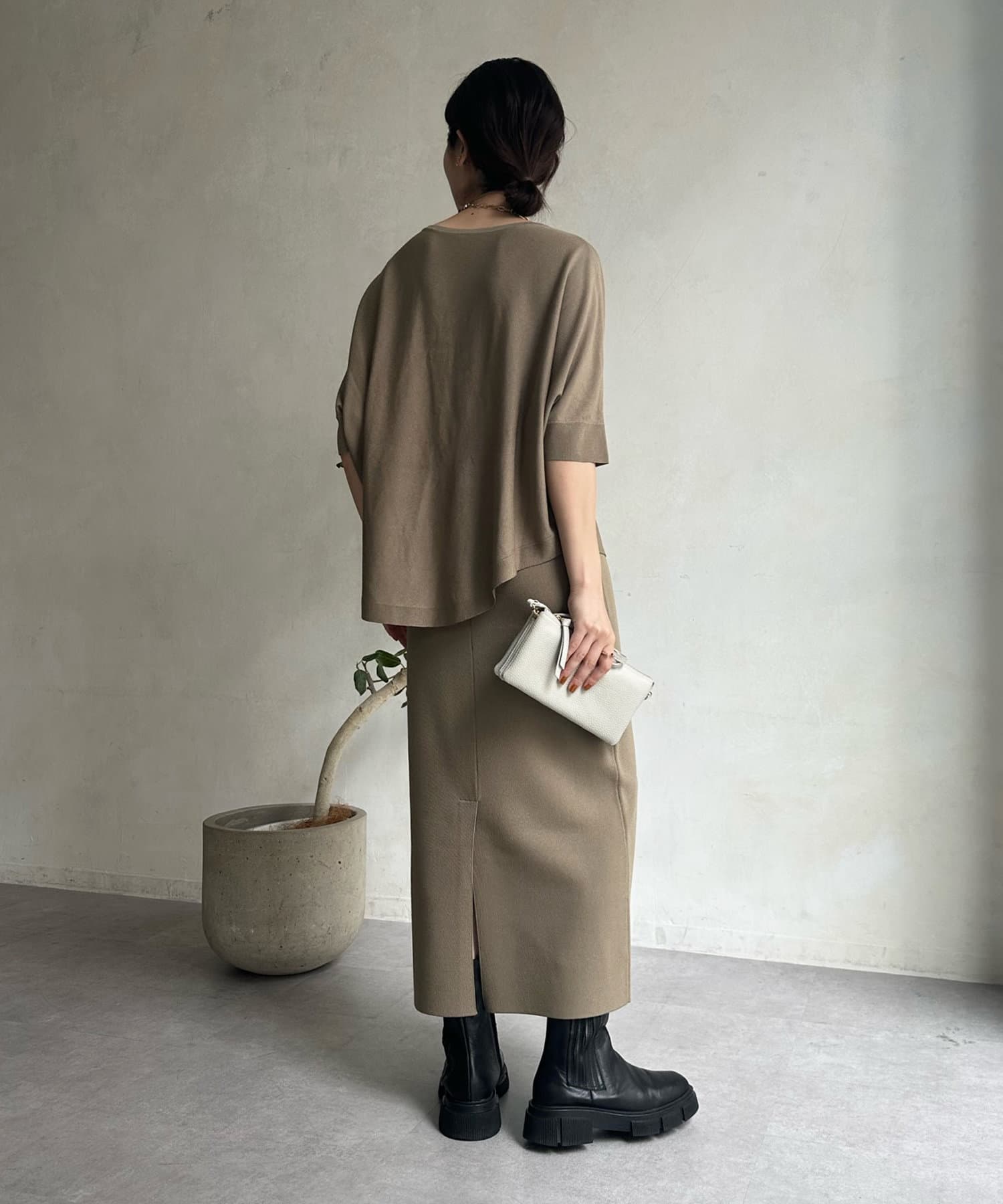 同色の、ダブルジャガードタイトスカート とセットアップとして着るとさらにおしゃれ感アップ。