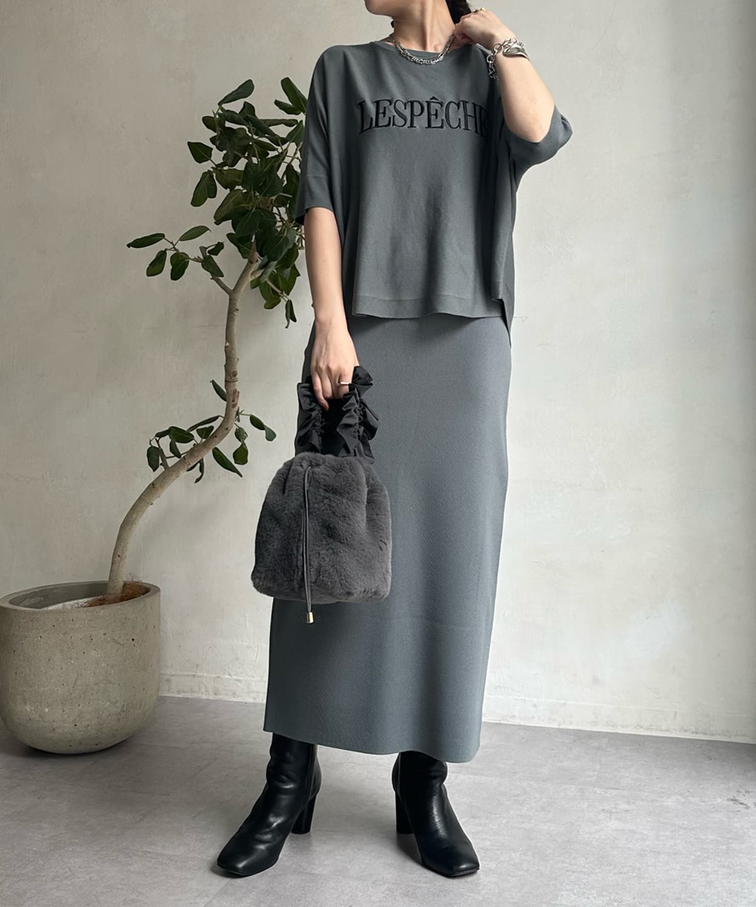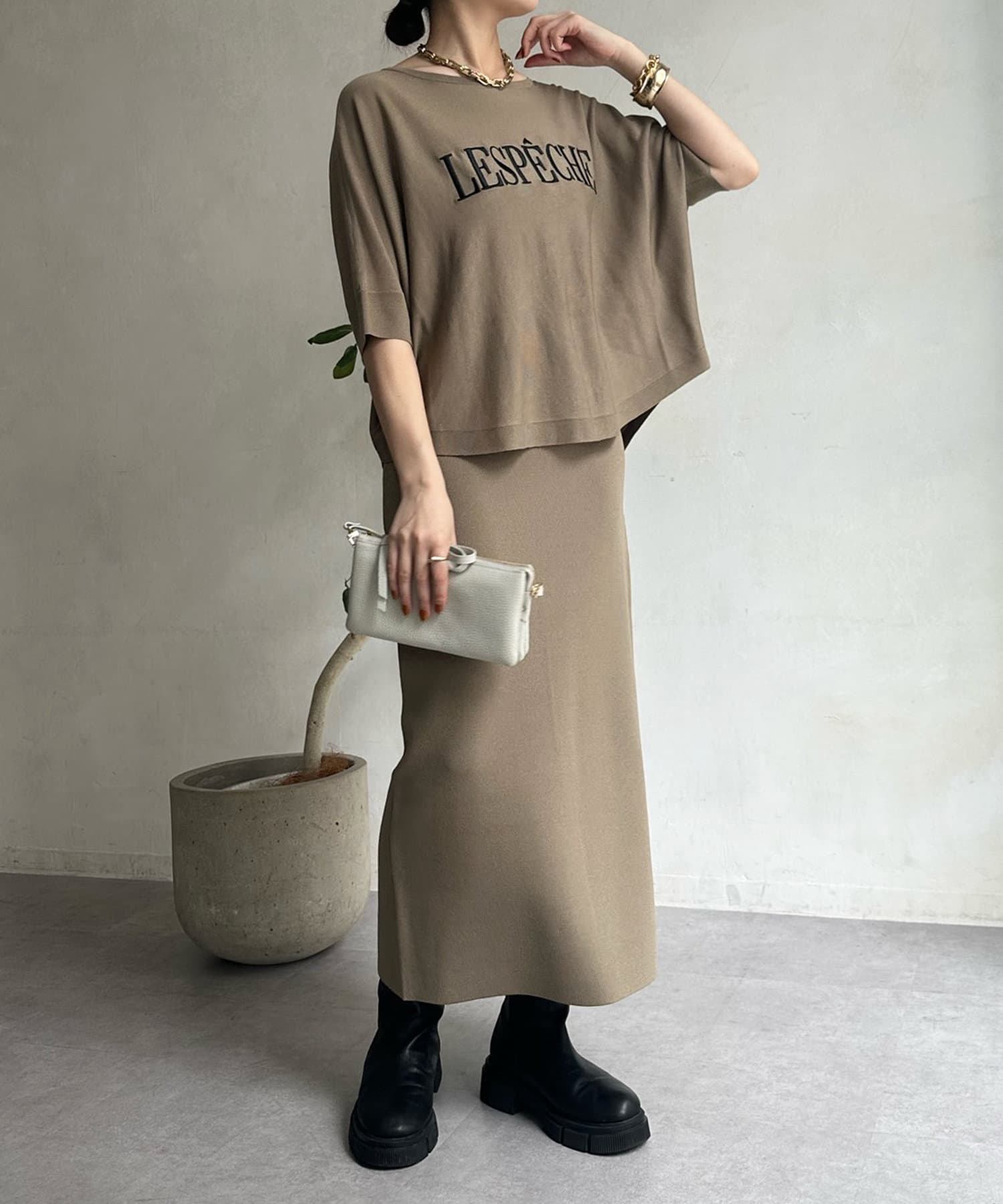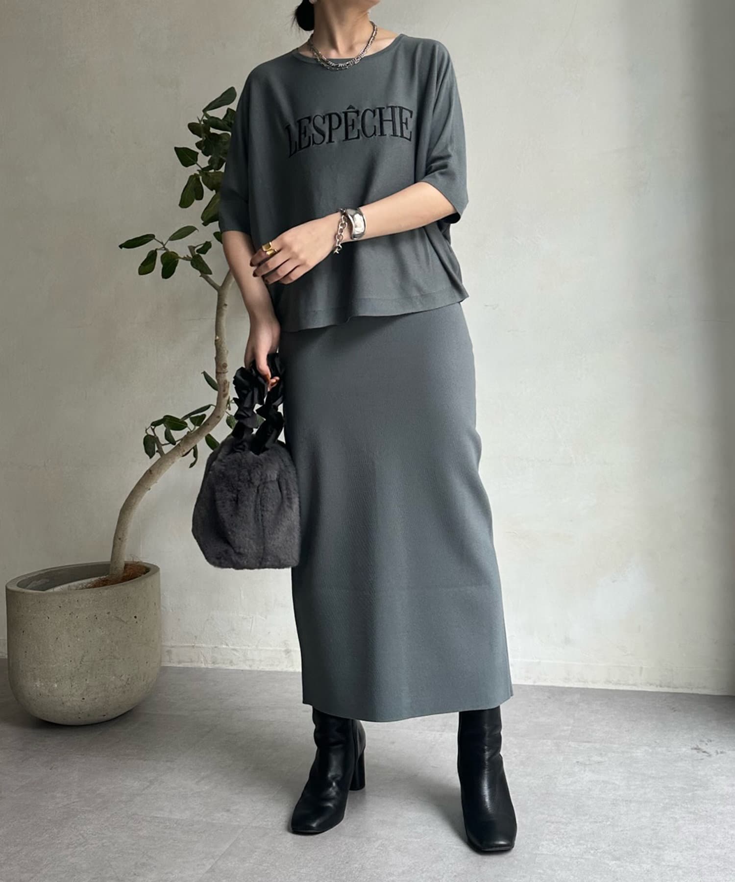 同色の、ダブルジャガードタイトスカート とセットアップとして着るとさらにおしゃれ感アップ。