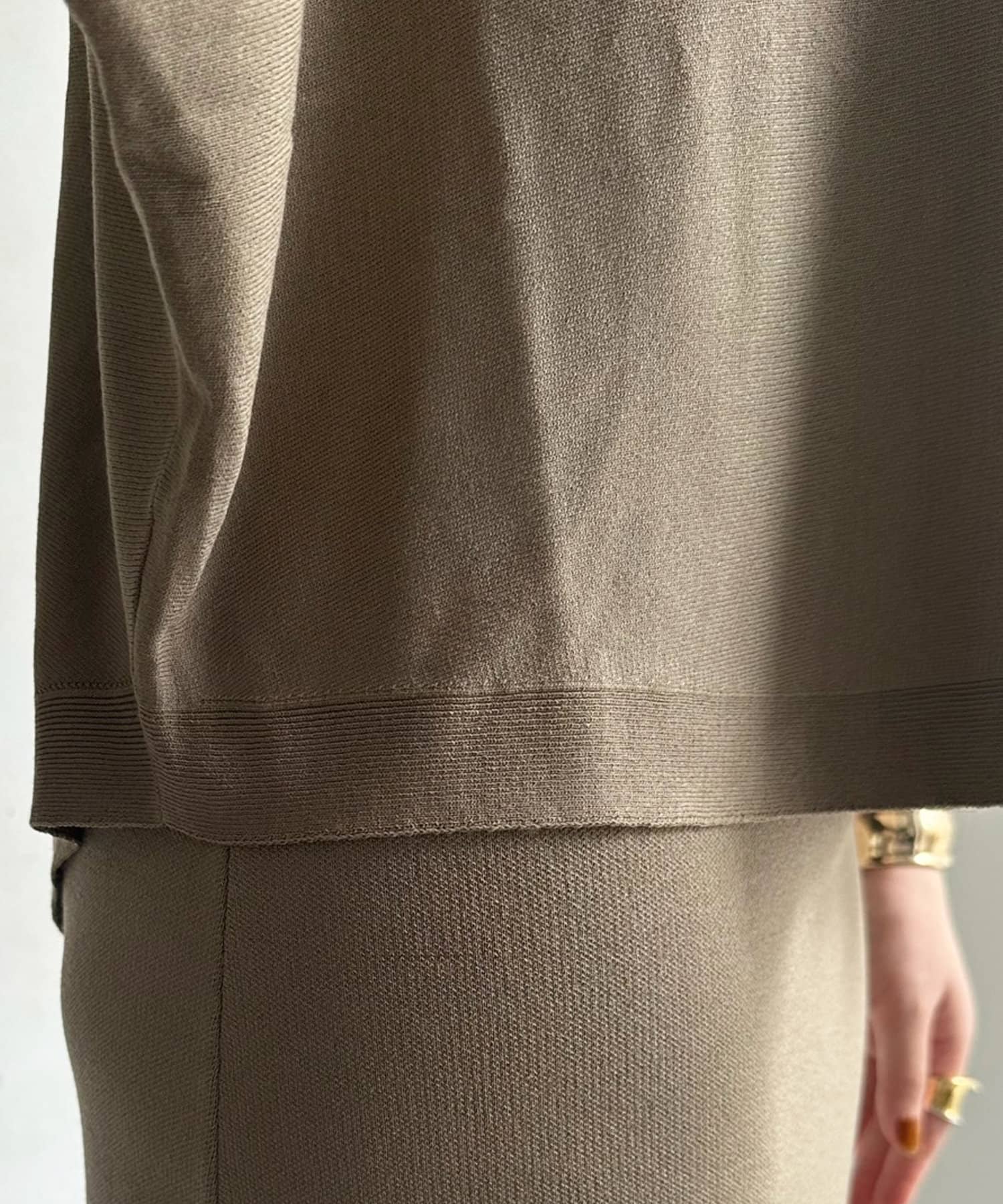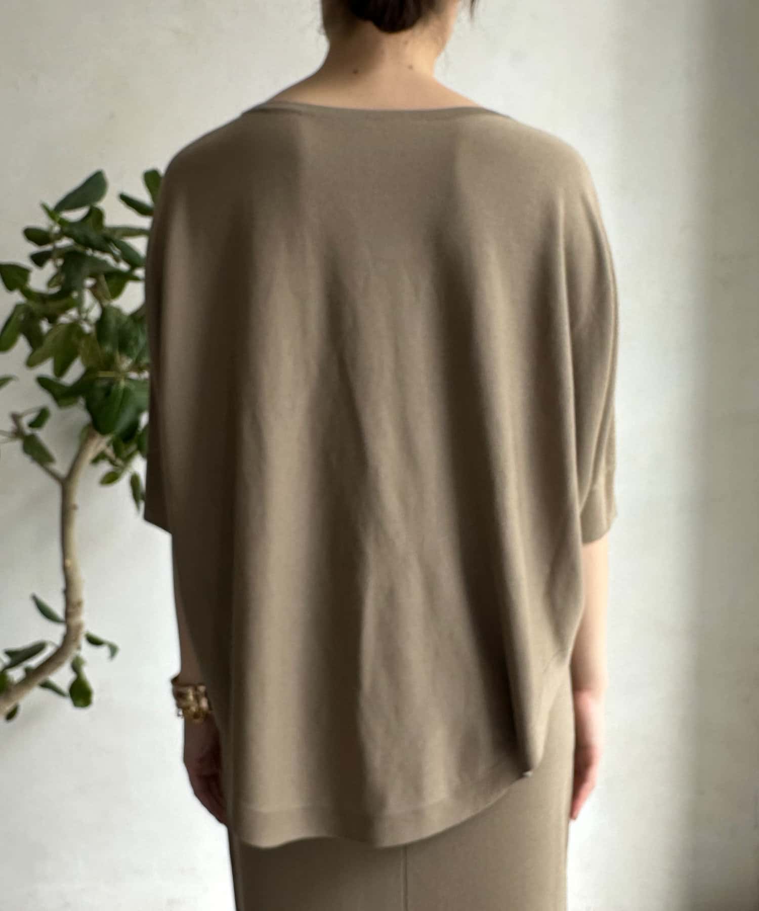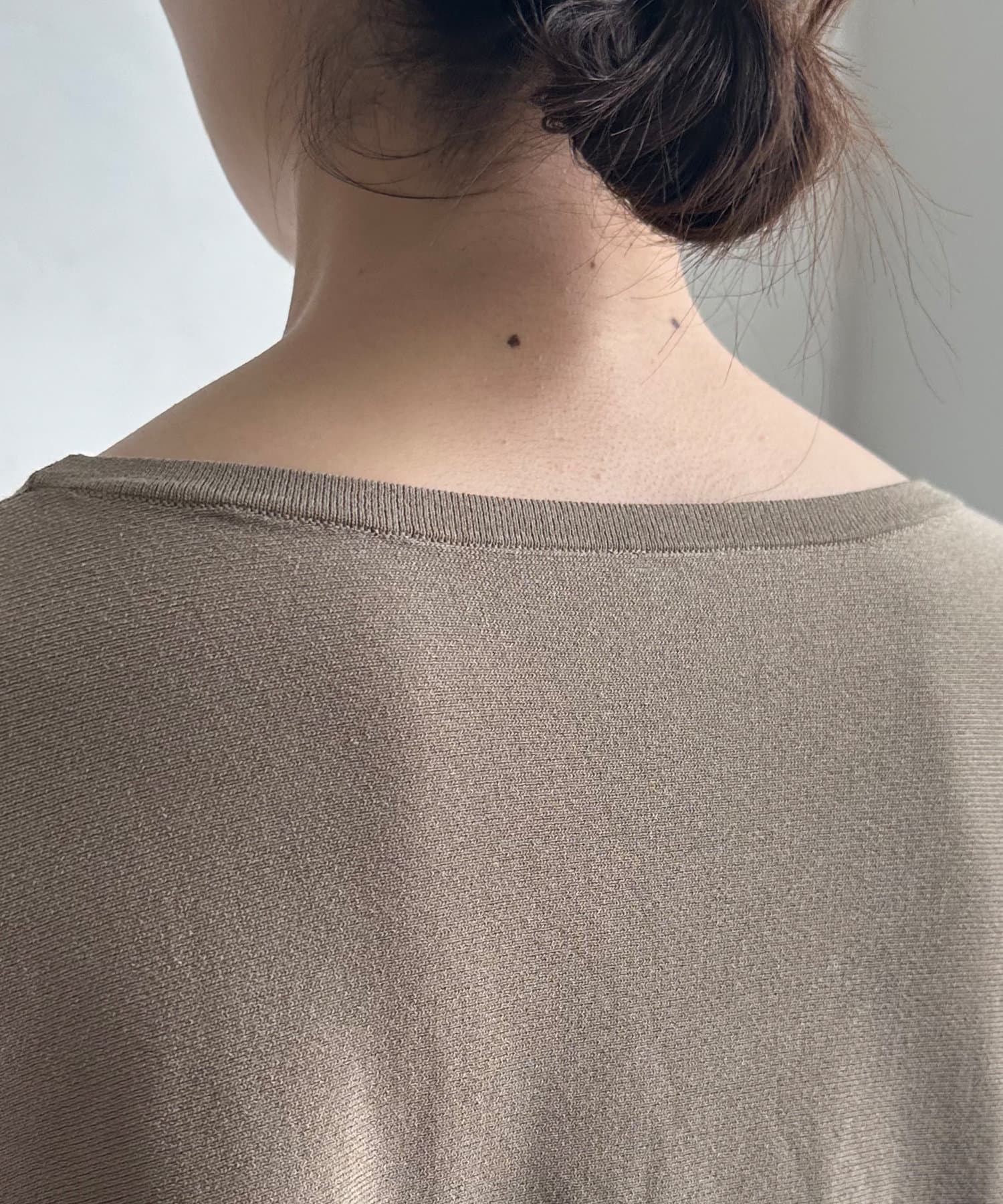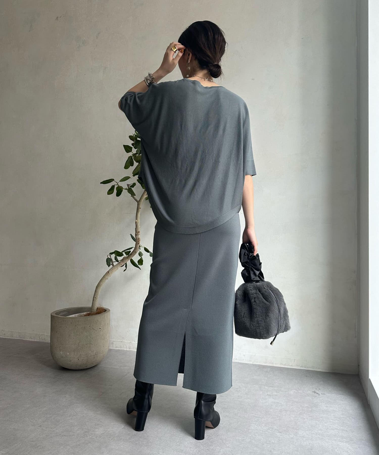 身体のラインを拾いにくい肉感もポイントで、ドルマン袖が気になる腕のラインもカバー。