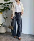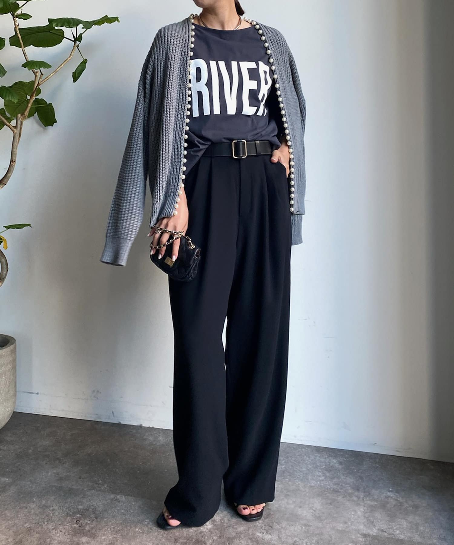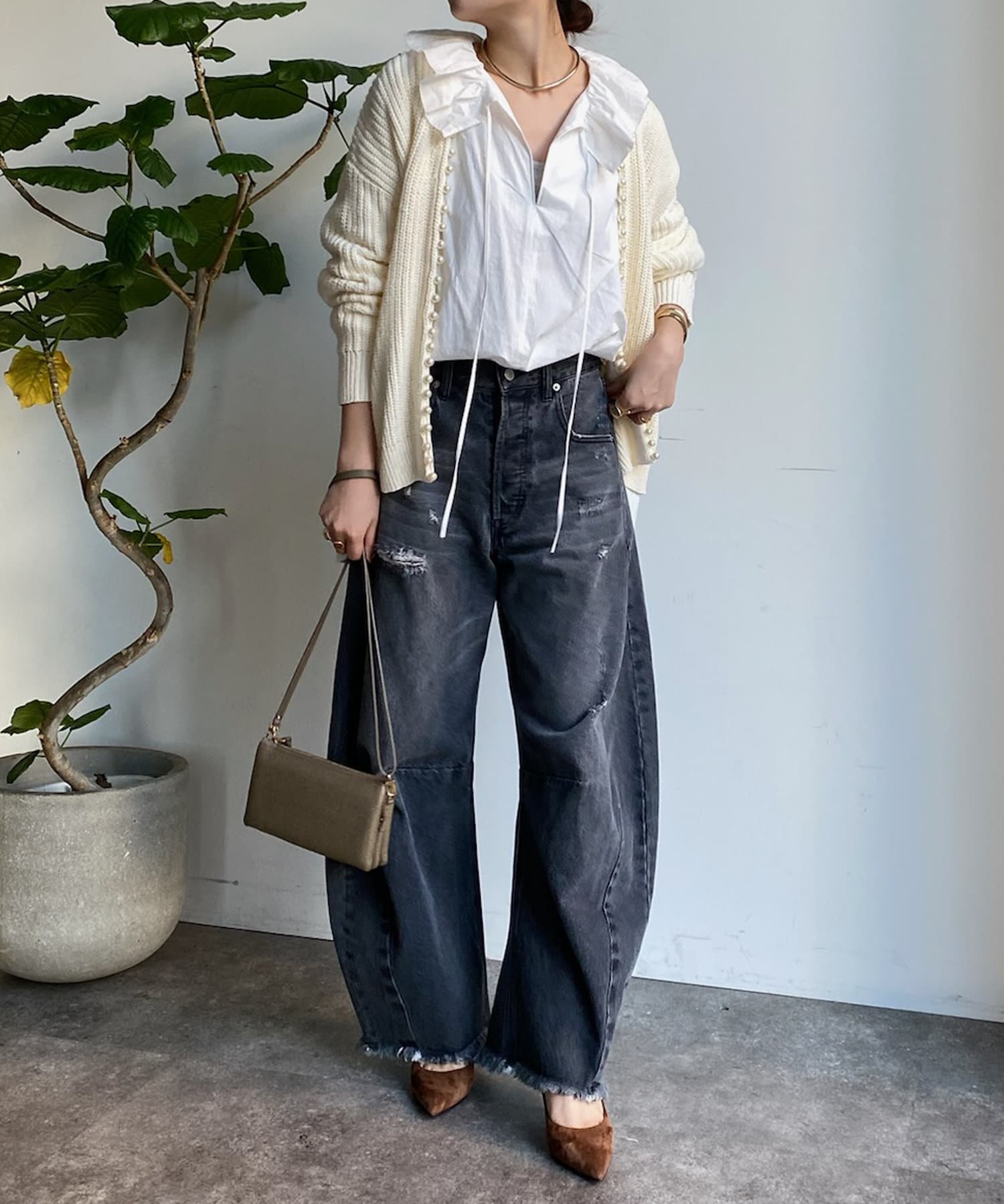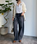 スカートでもパンツでもボトムスを選ばず、バランス良く決まりますよ。