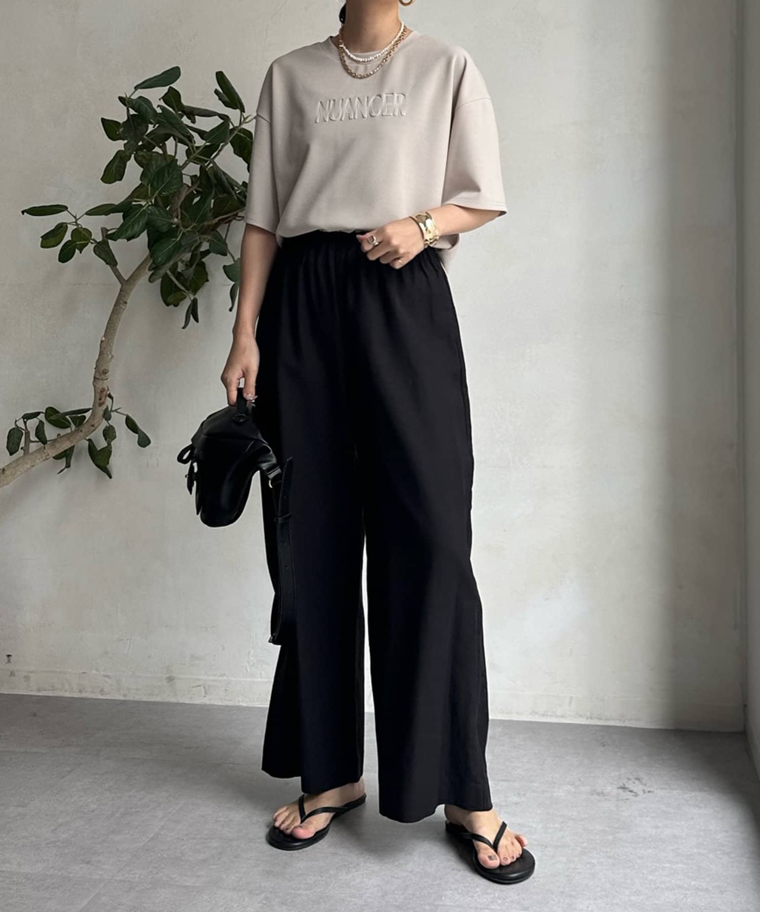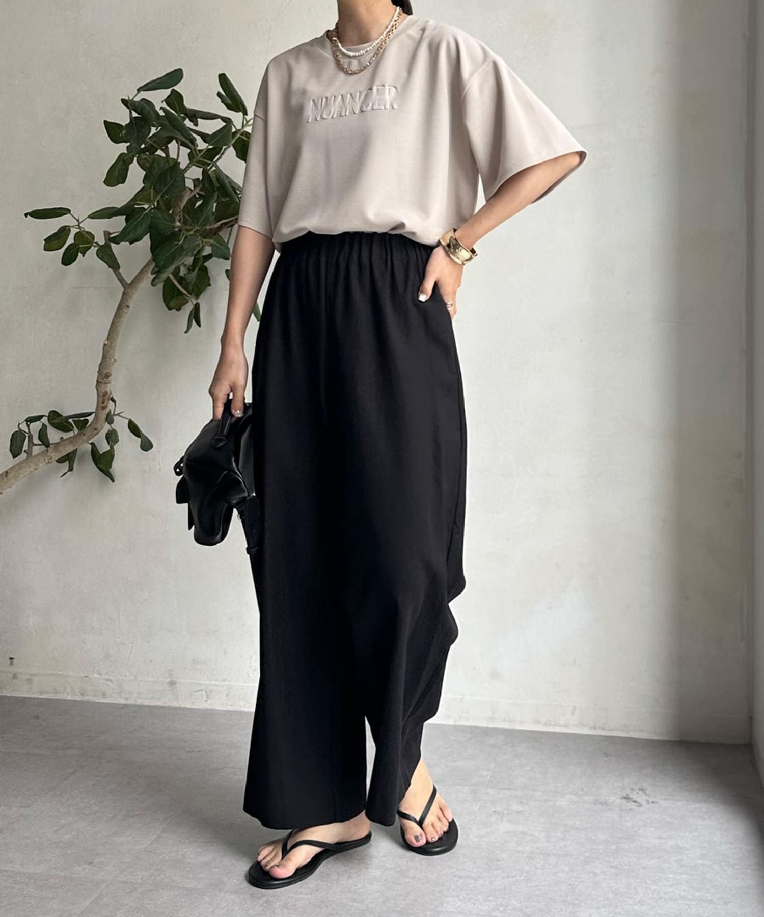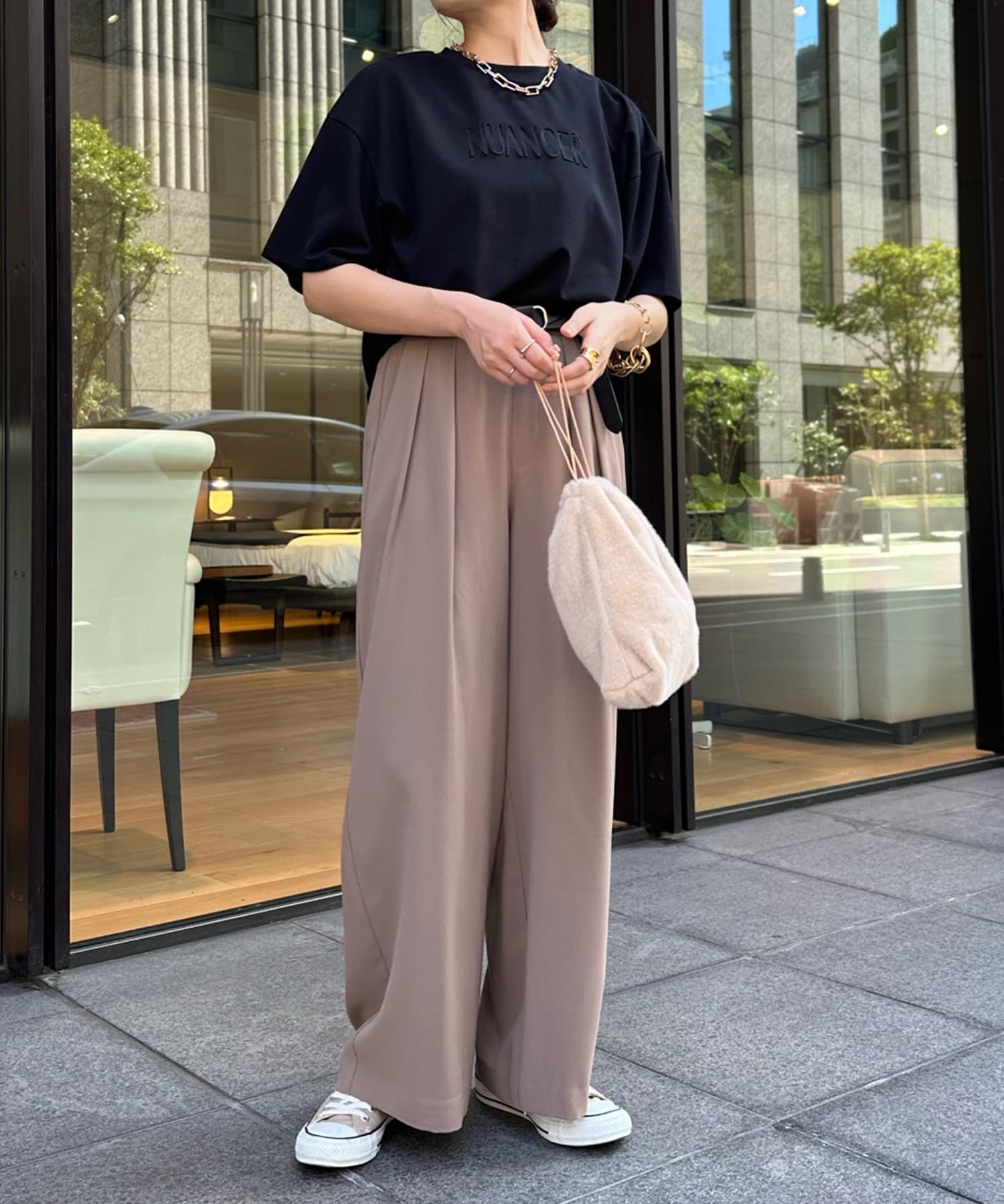 インでもアウトでも使えるシンプルなデザインは、いろんなボトムスコーデと相性抜群ですよ!
