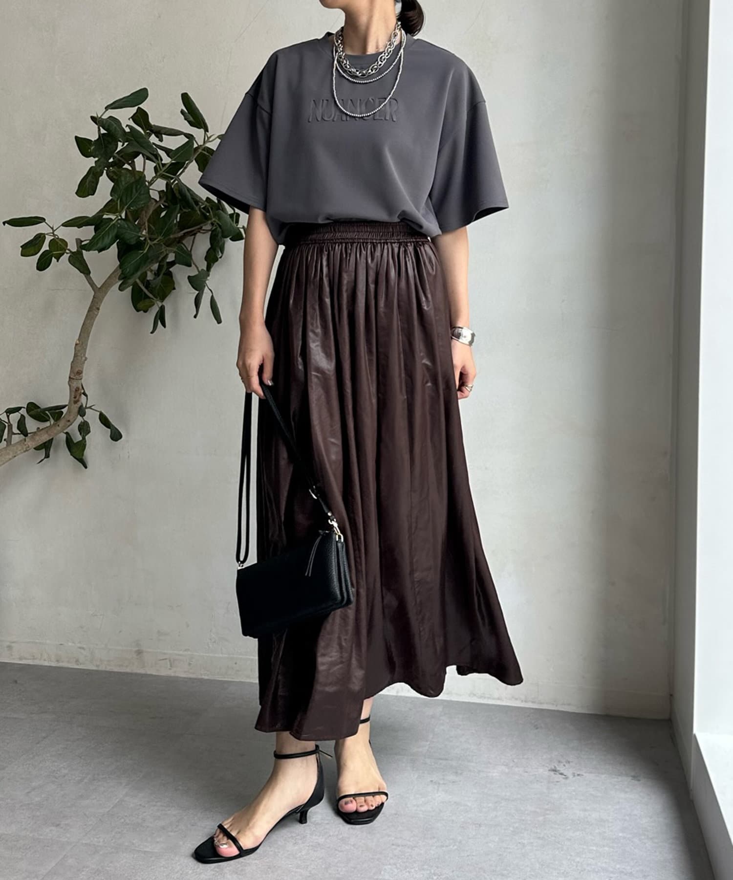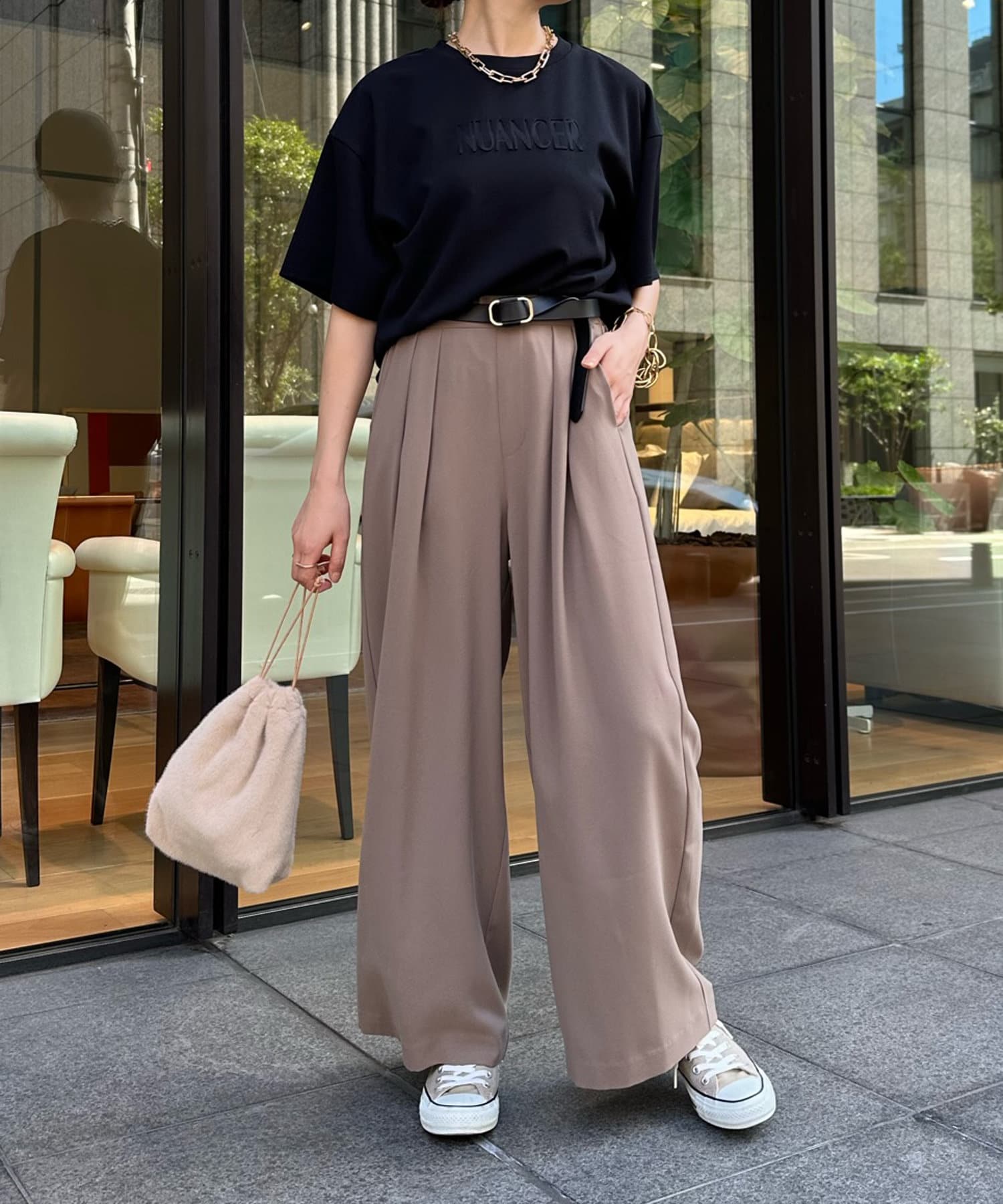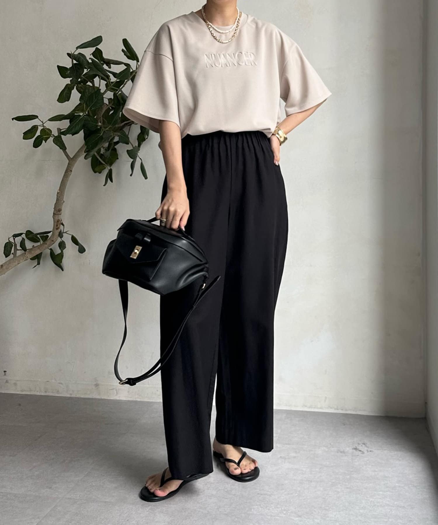 インでもアウトでも使えるシンプルなデザインは、いろんなボトムスコーデと相性抜群ですよ!
