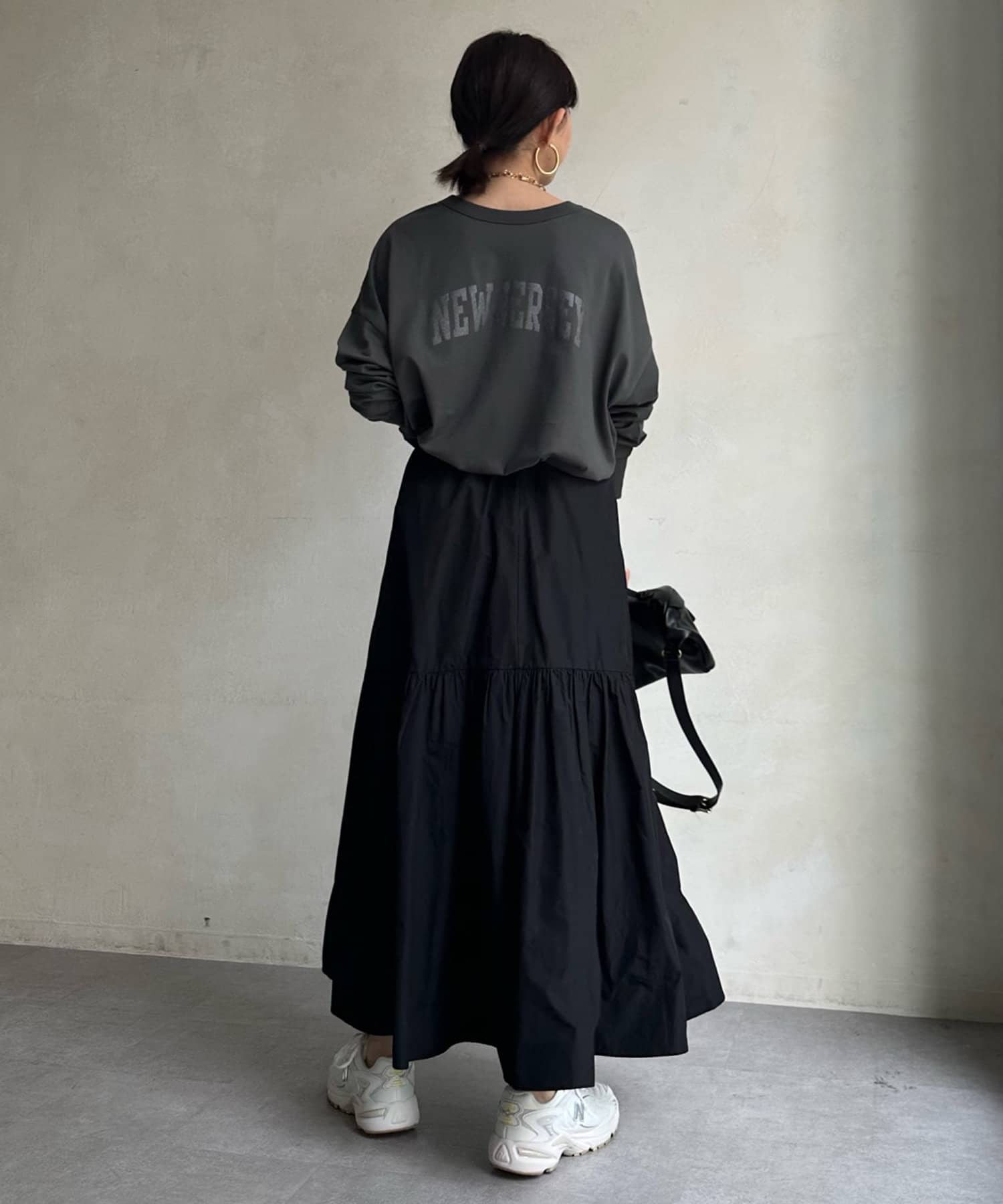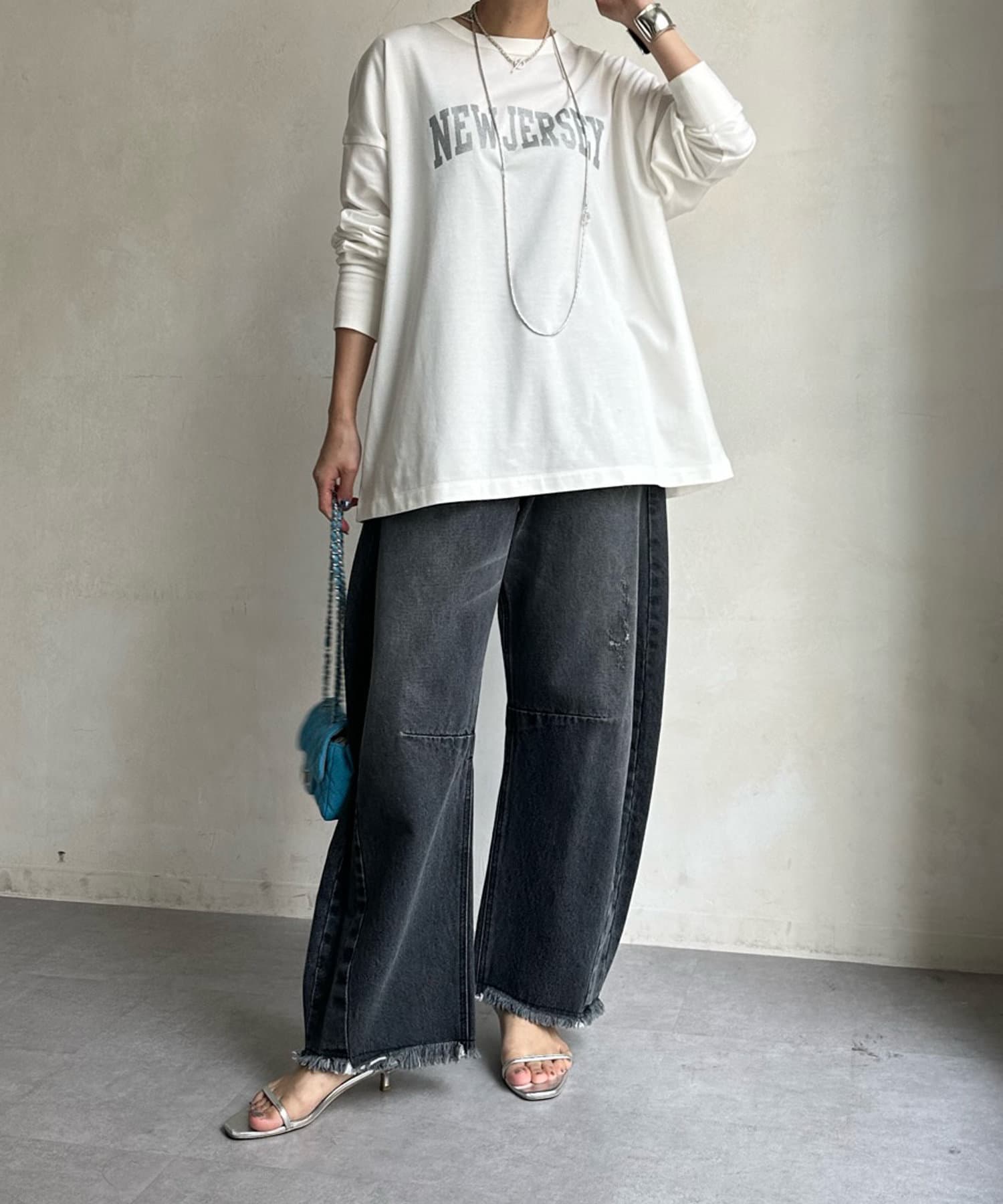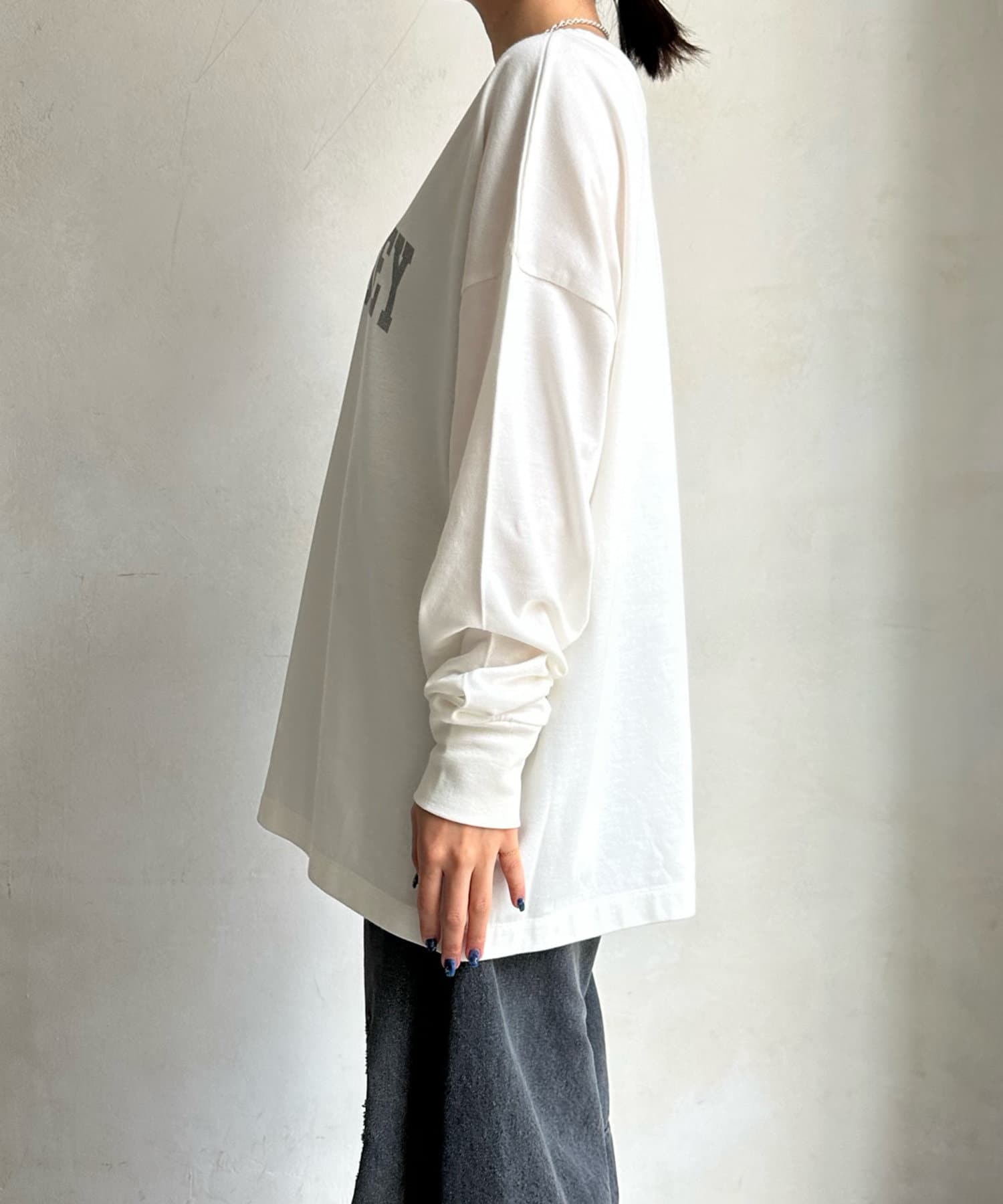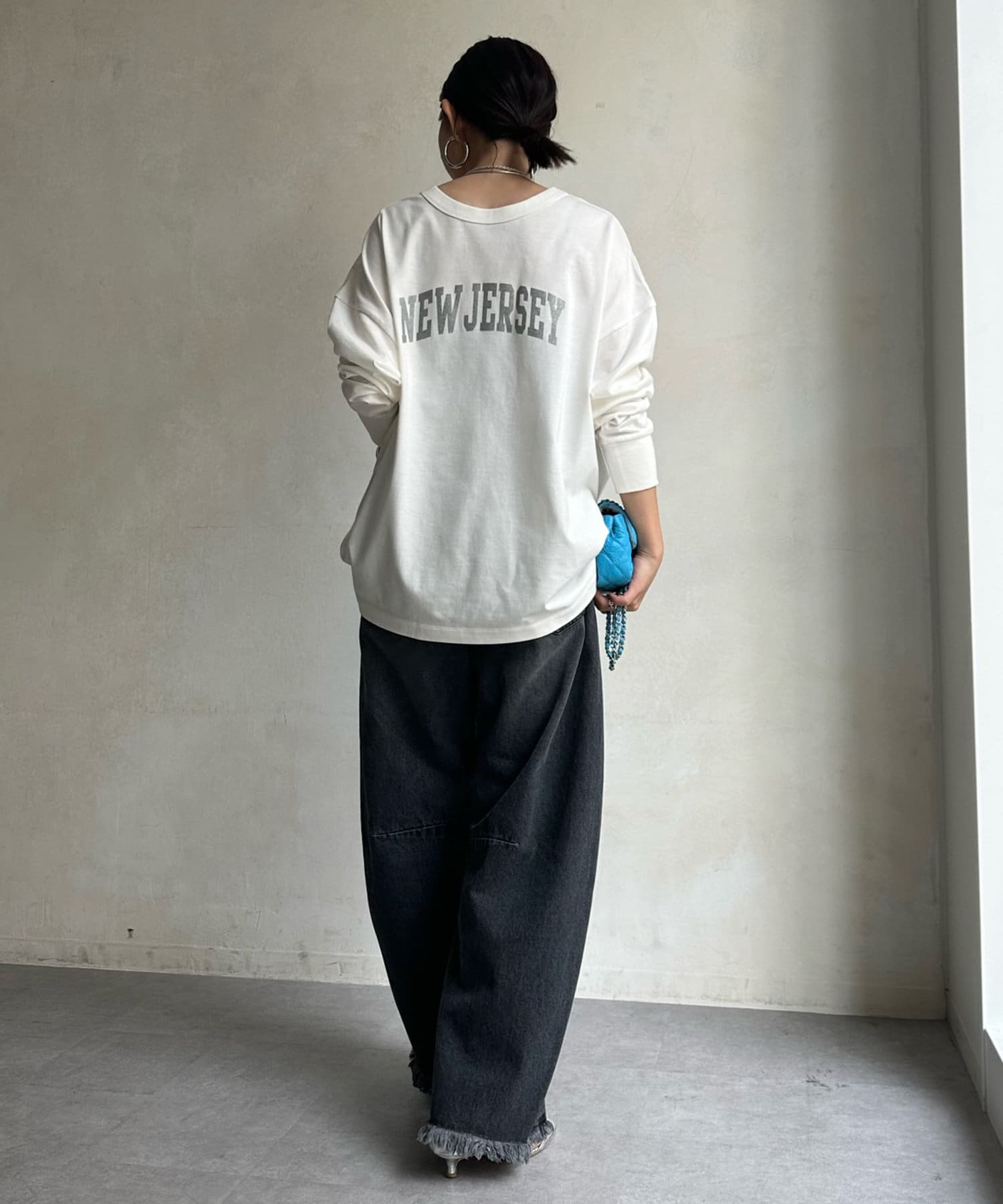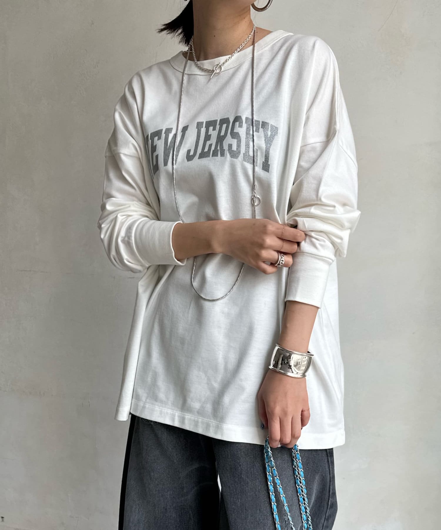 前後2wayで着られる、ラメのロゴプリントがポイントのロンTEE。