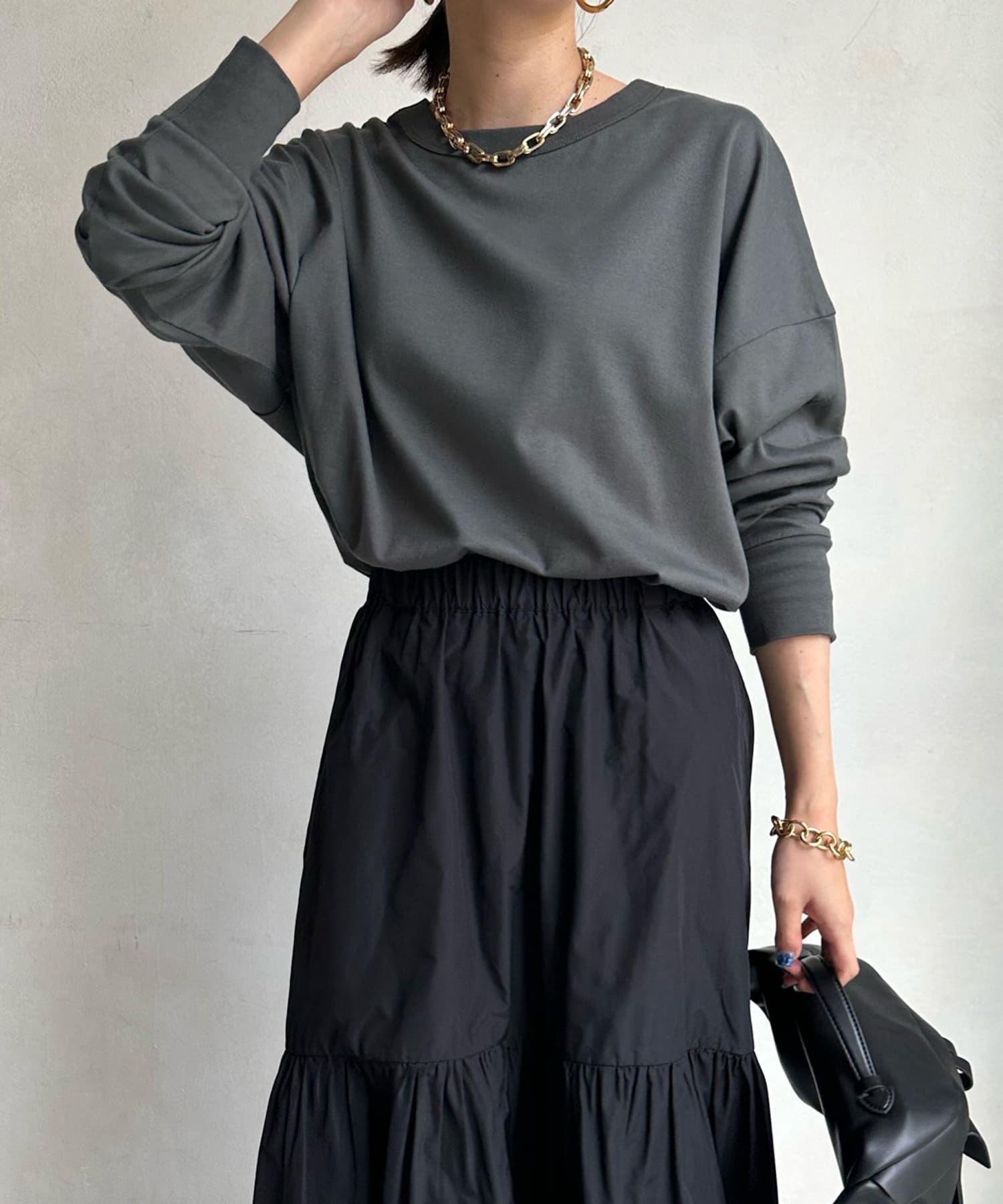 そのまま着てもボトムにインしてもマッチしてくれるので、様々なスタイルに万能ですよ。