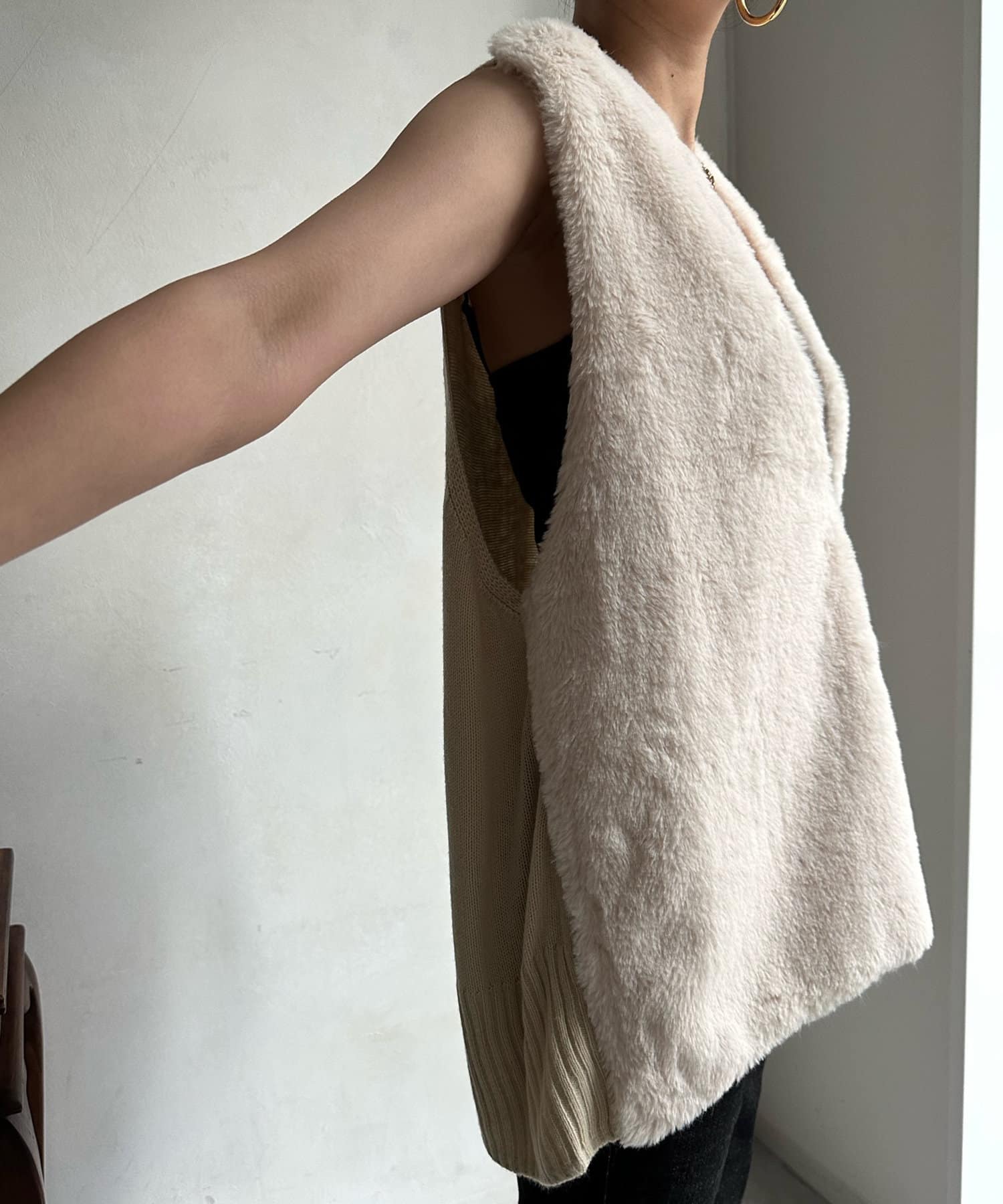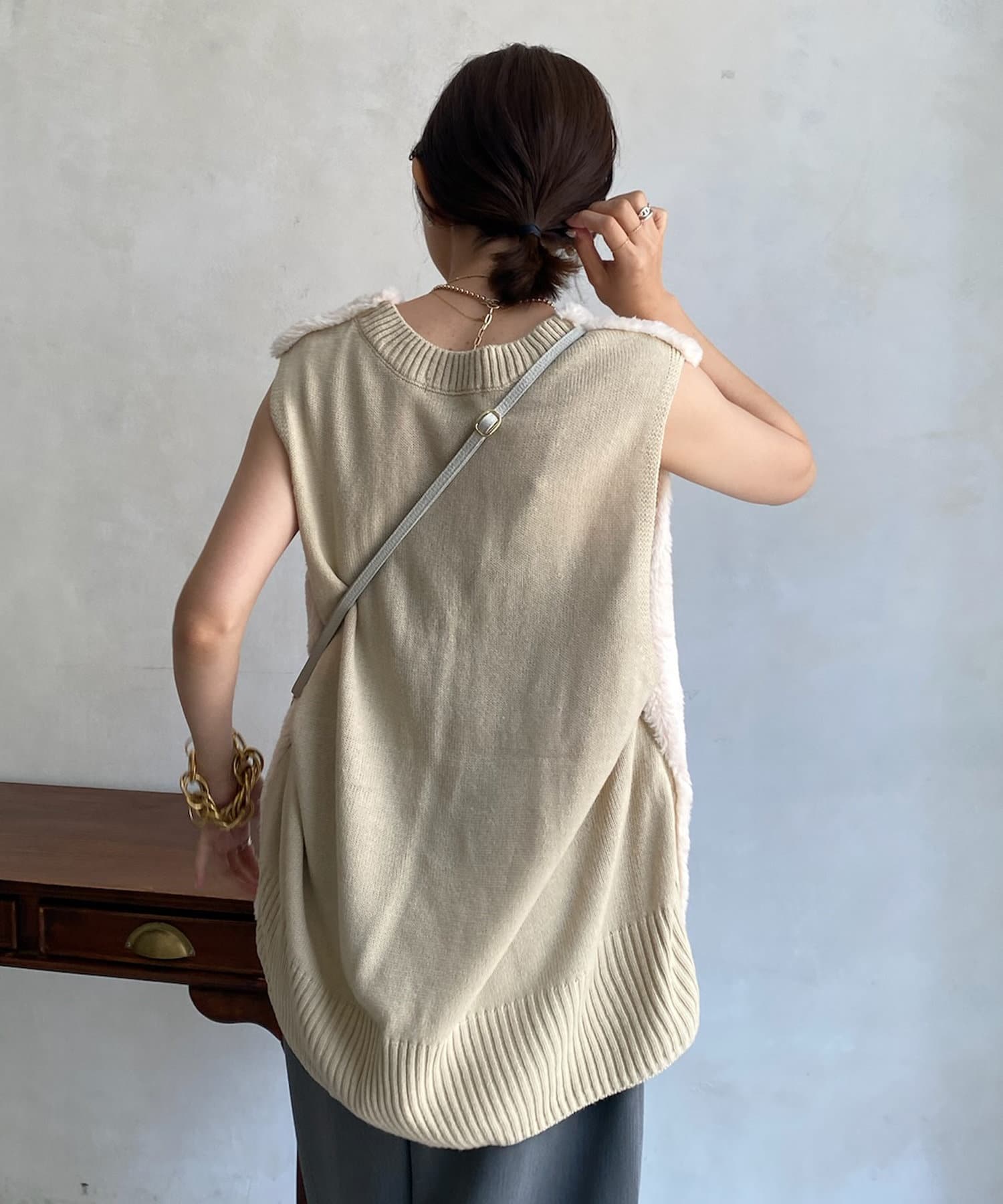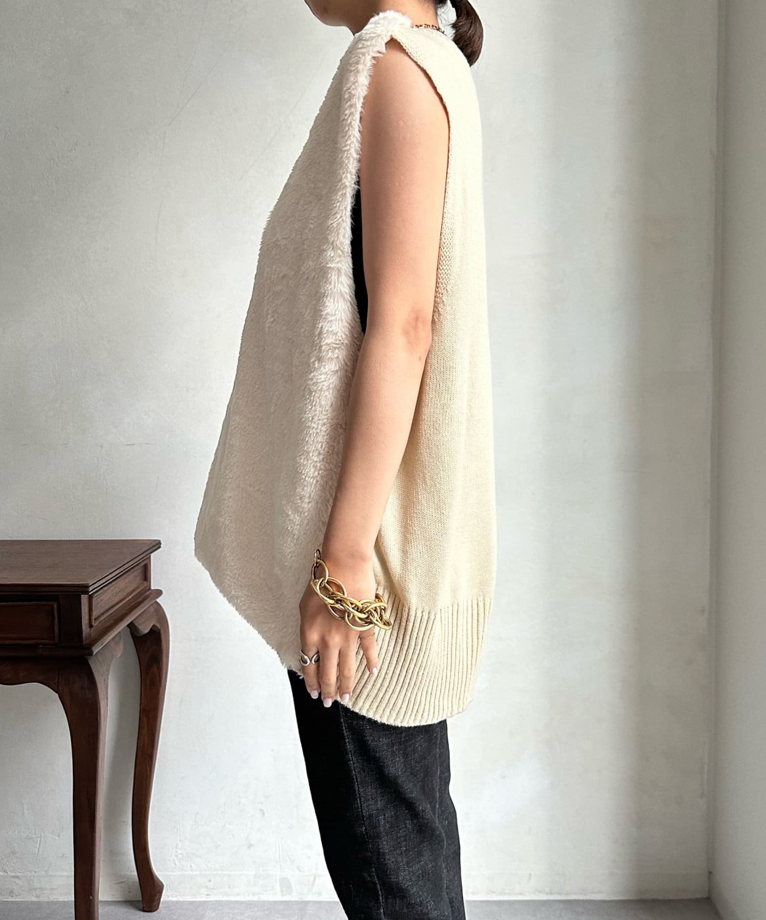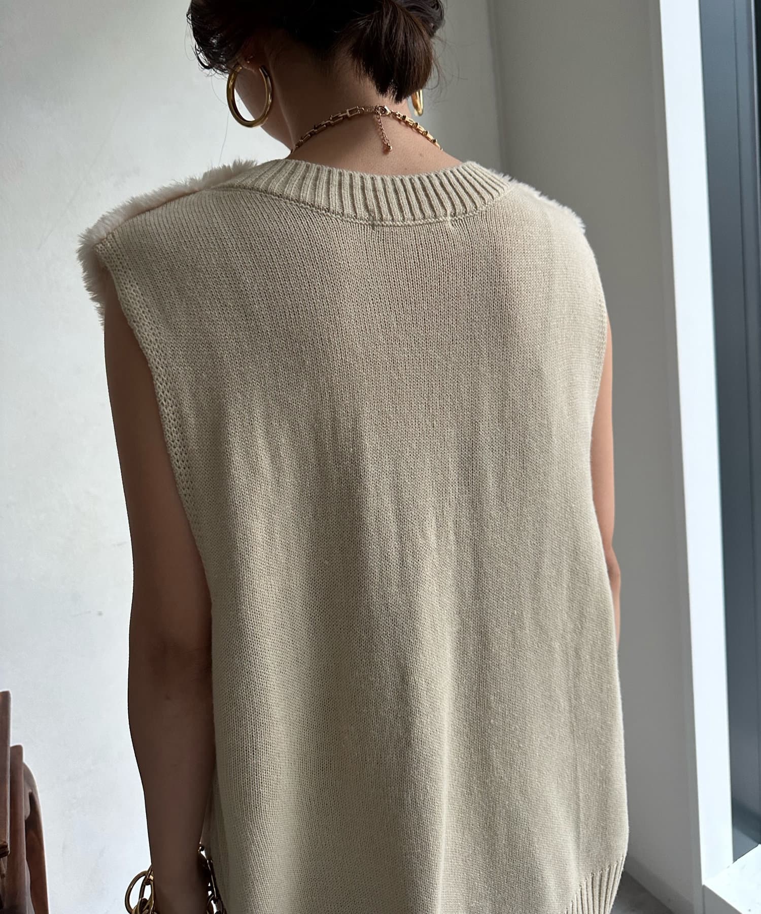 ファーとニットの異素材がドッキングしたベストが登場!
