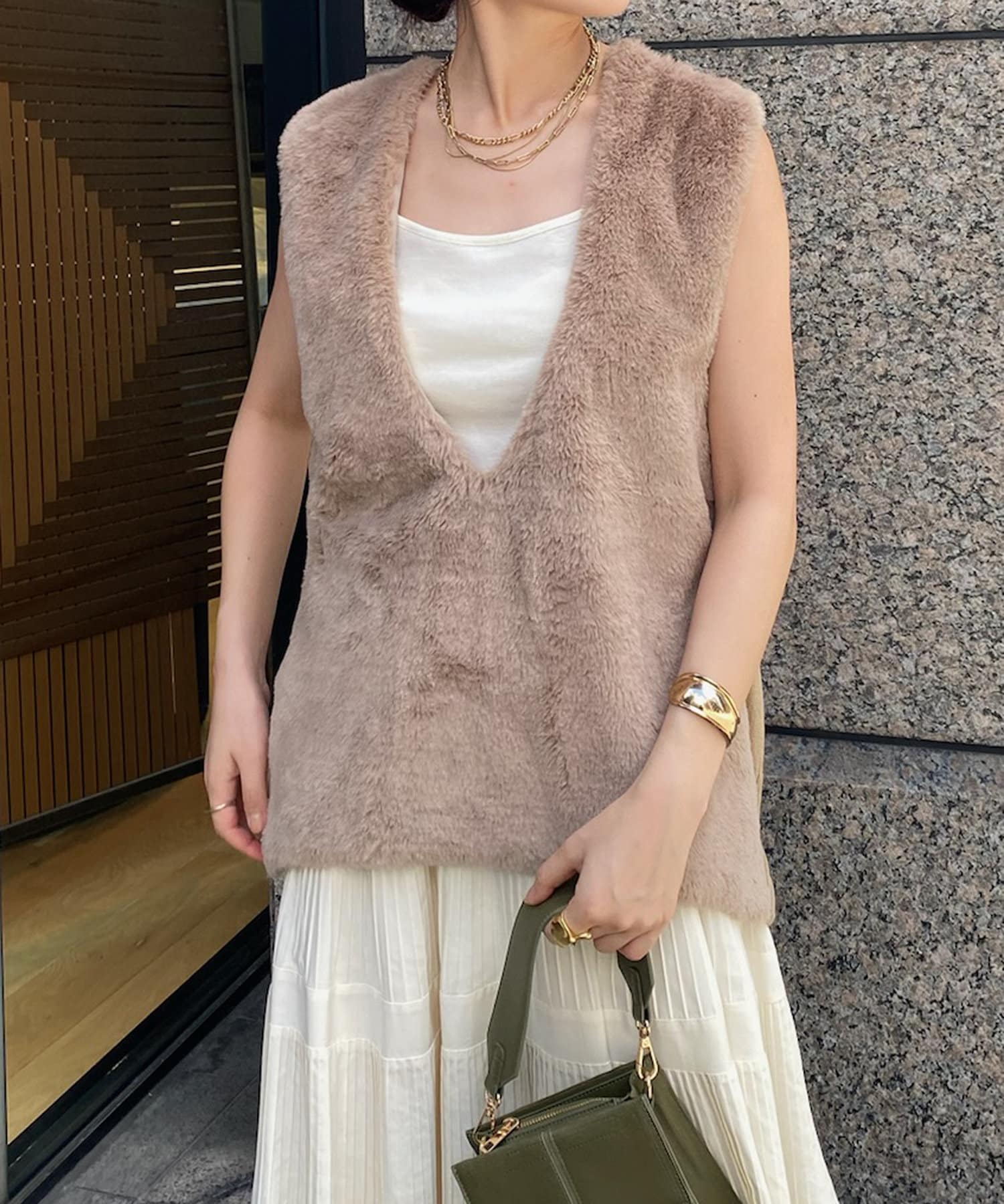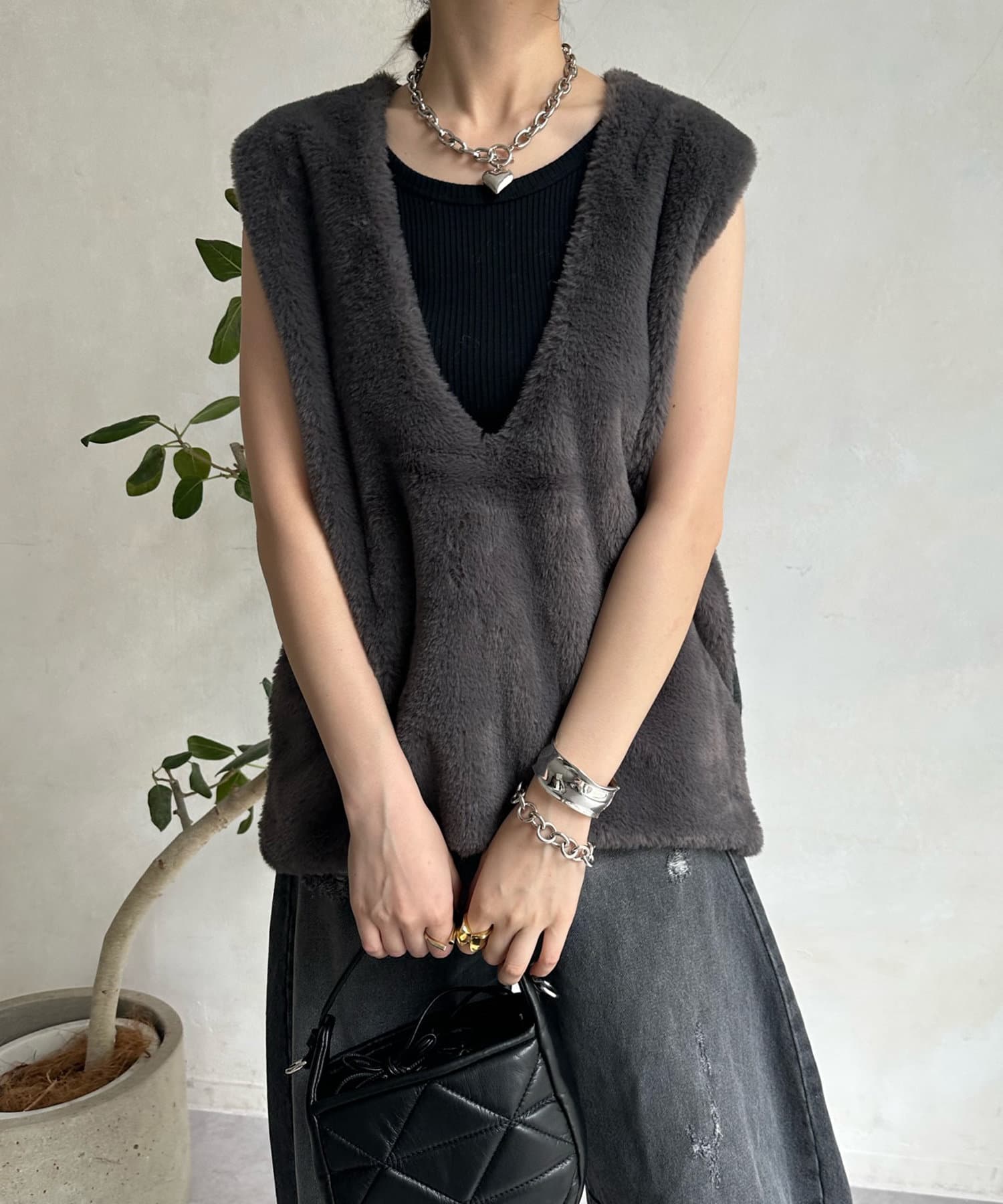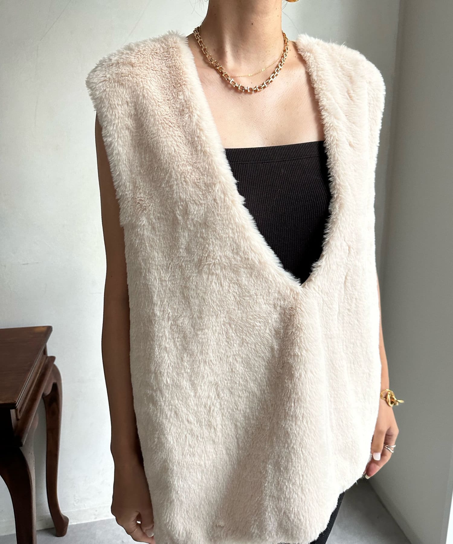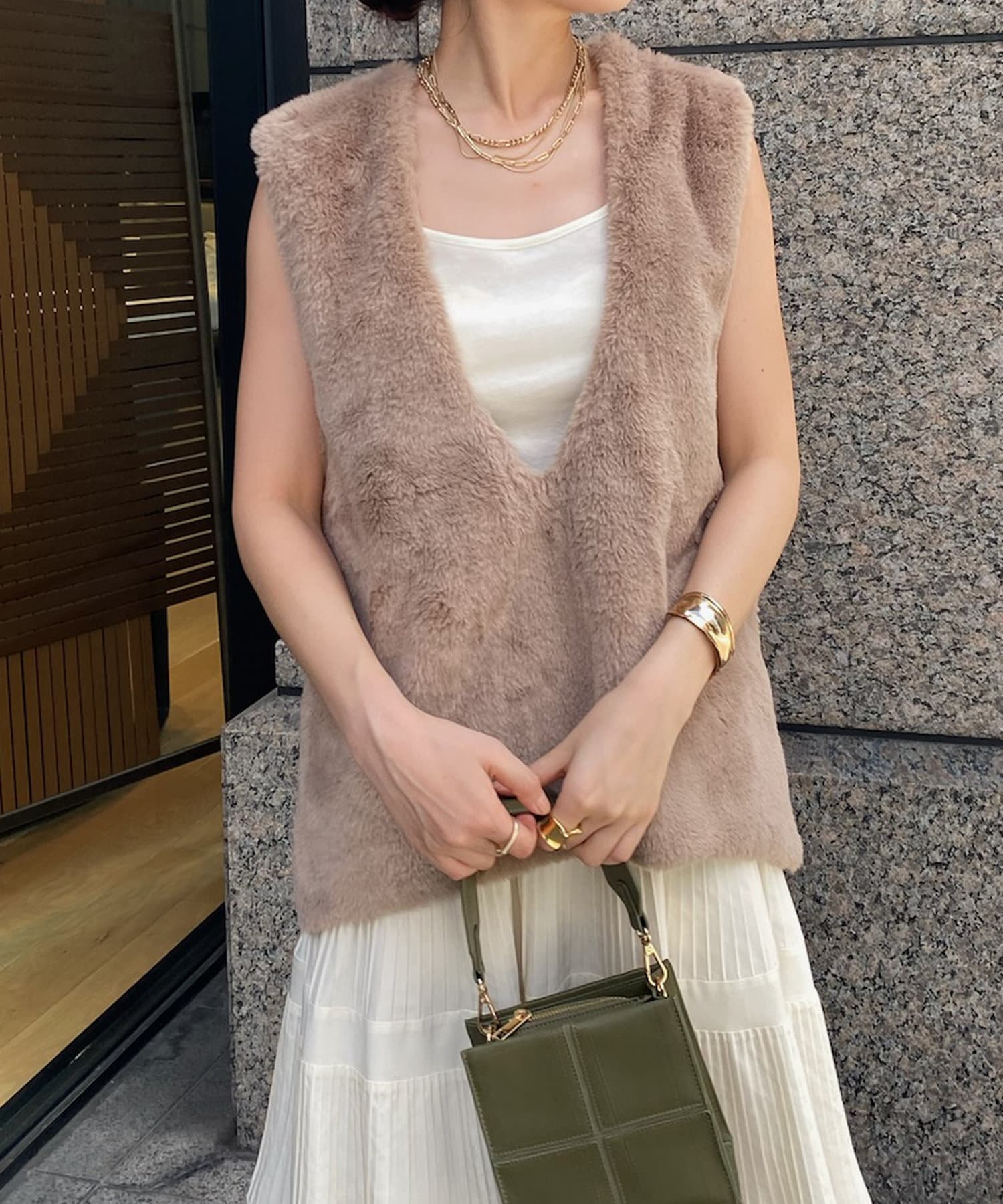 ファーとニットの異素材がドッキングしたベストが登場!