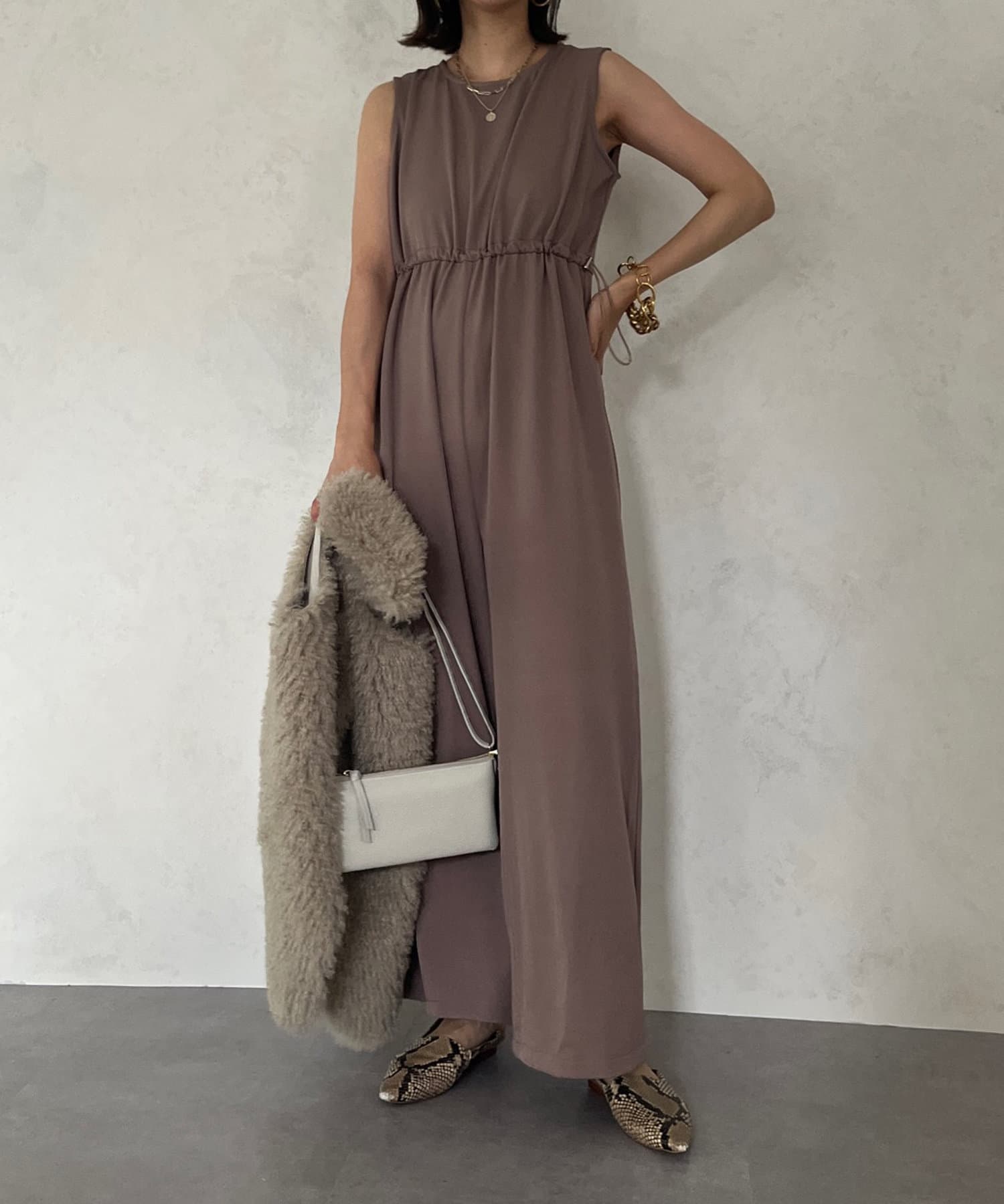体のラインを拾いにくいのも嬉しく、落ち感のある素材が女性らしい印象に仕上がりますよ。