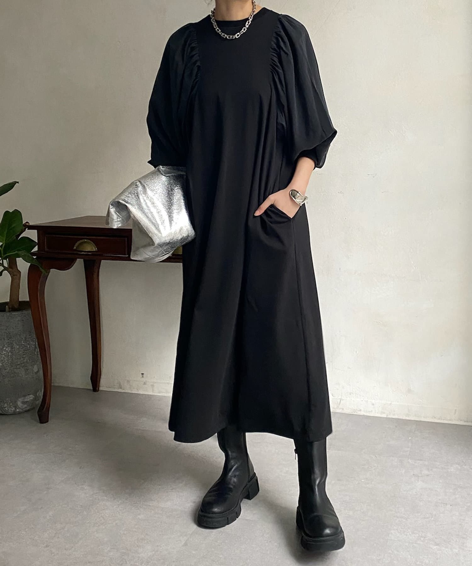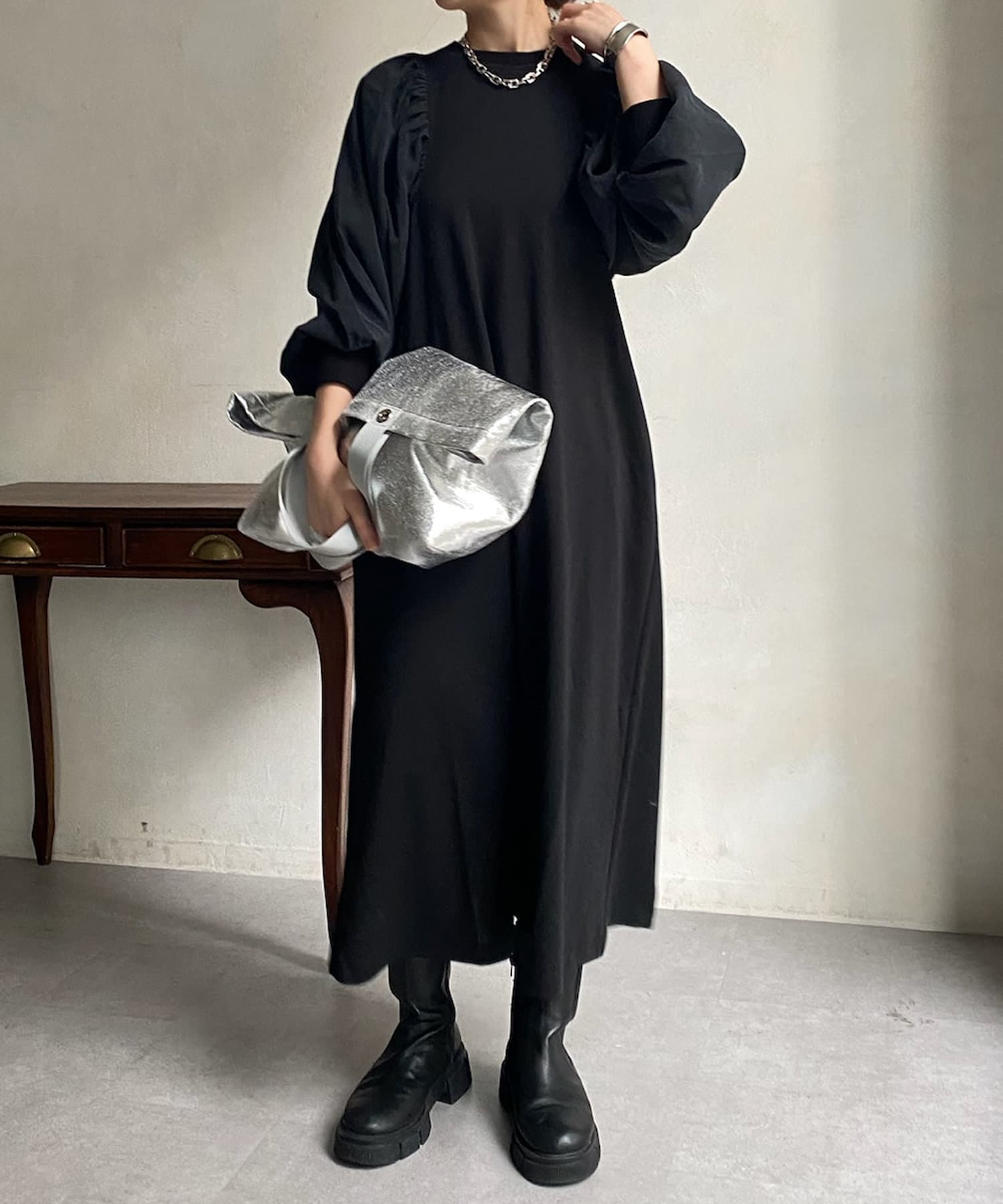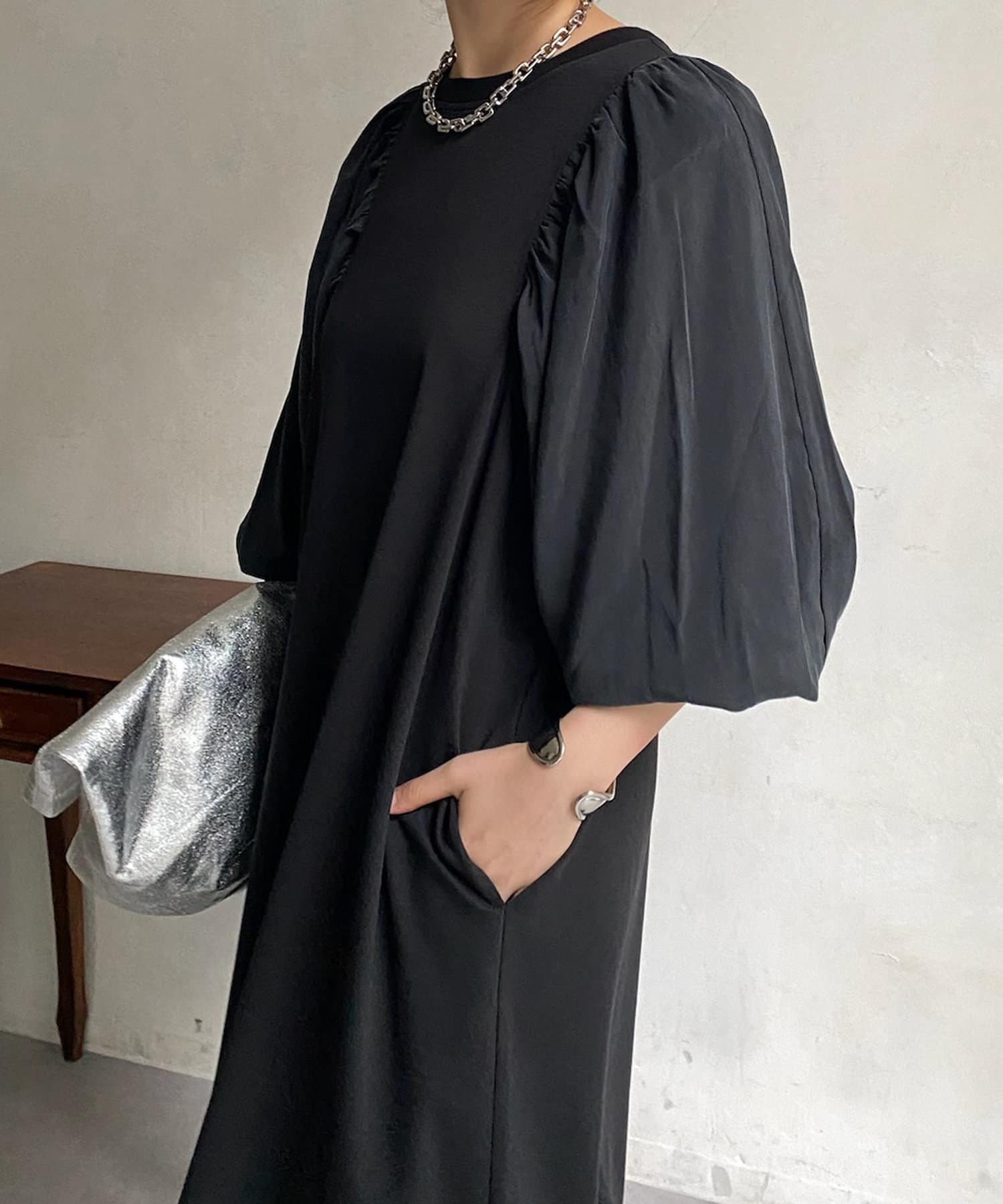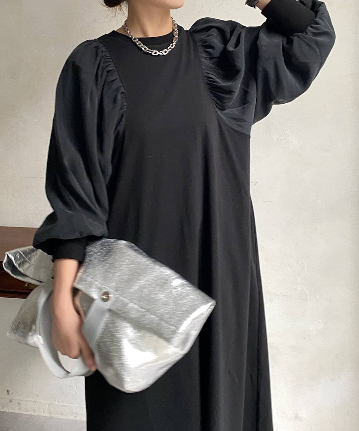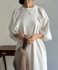 【WEB限定】 ボリューム袖異素材切替ワンピース