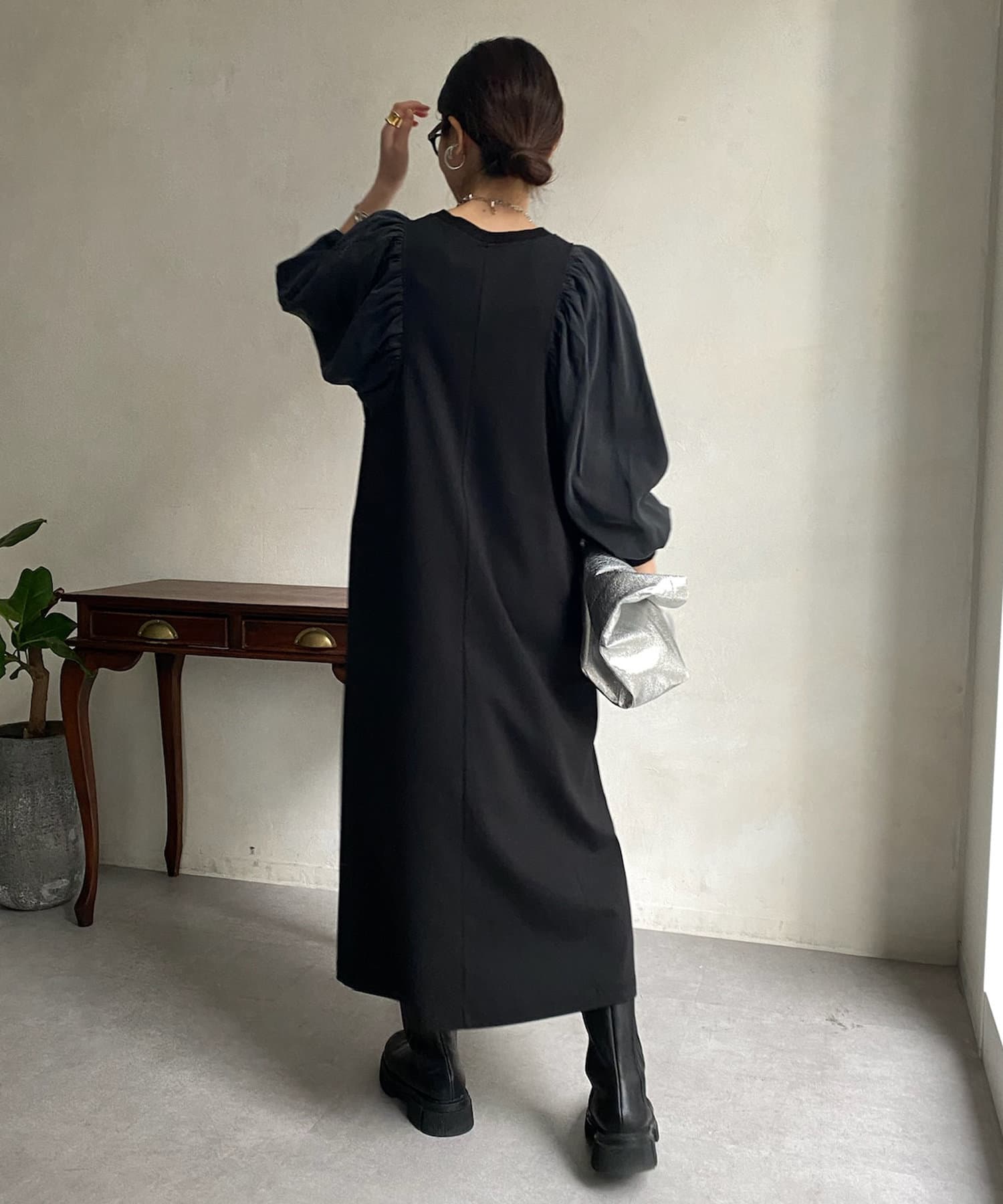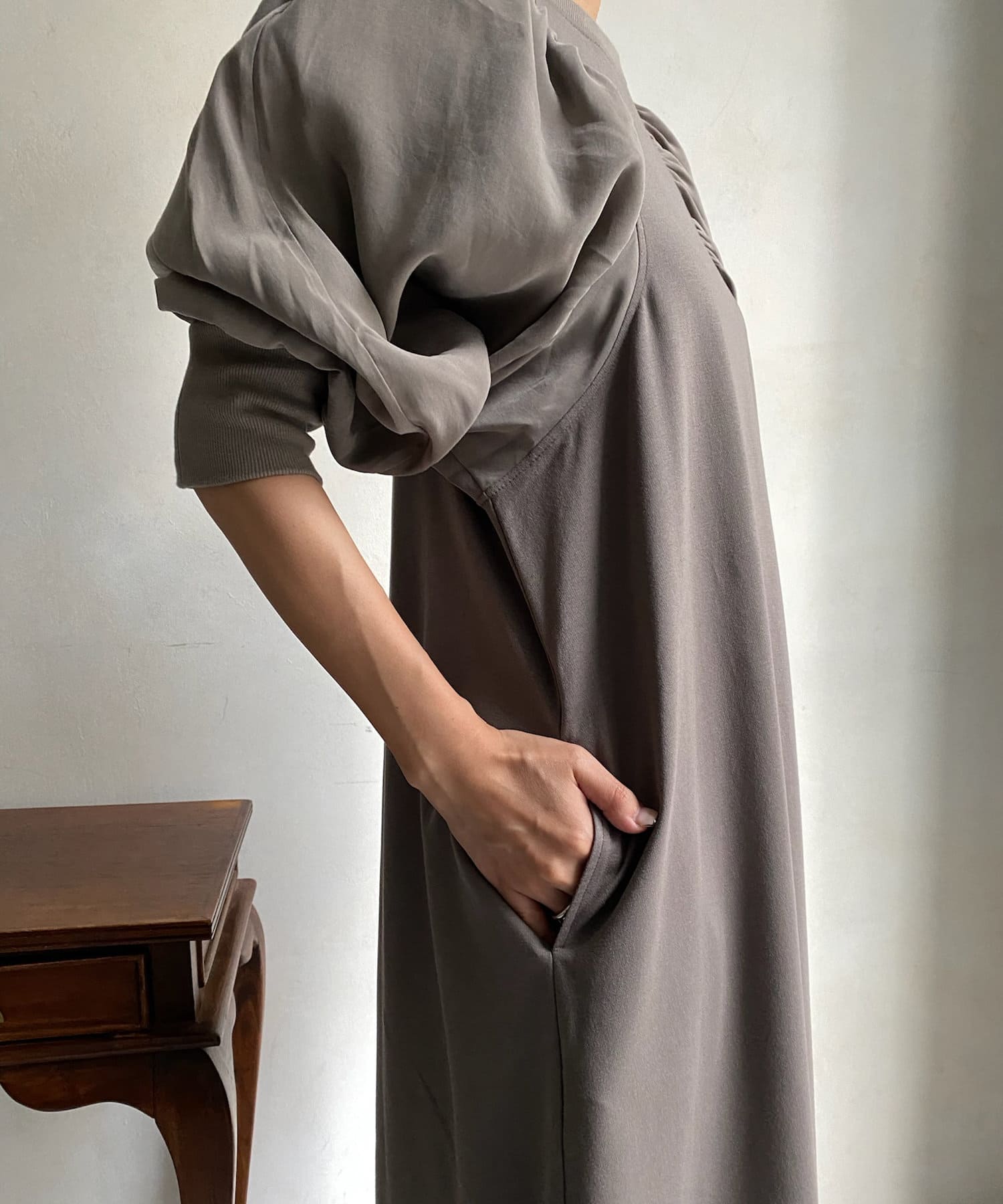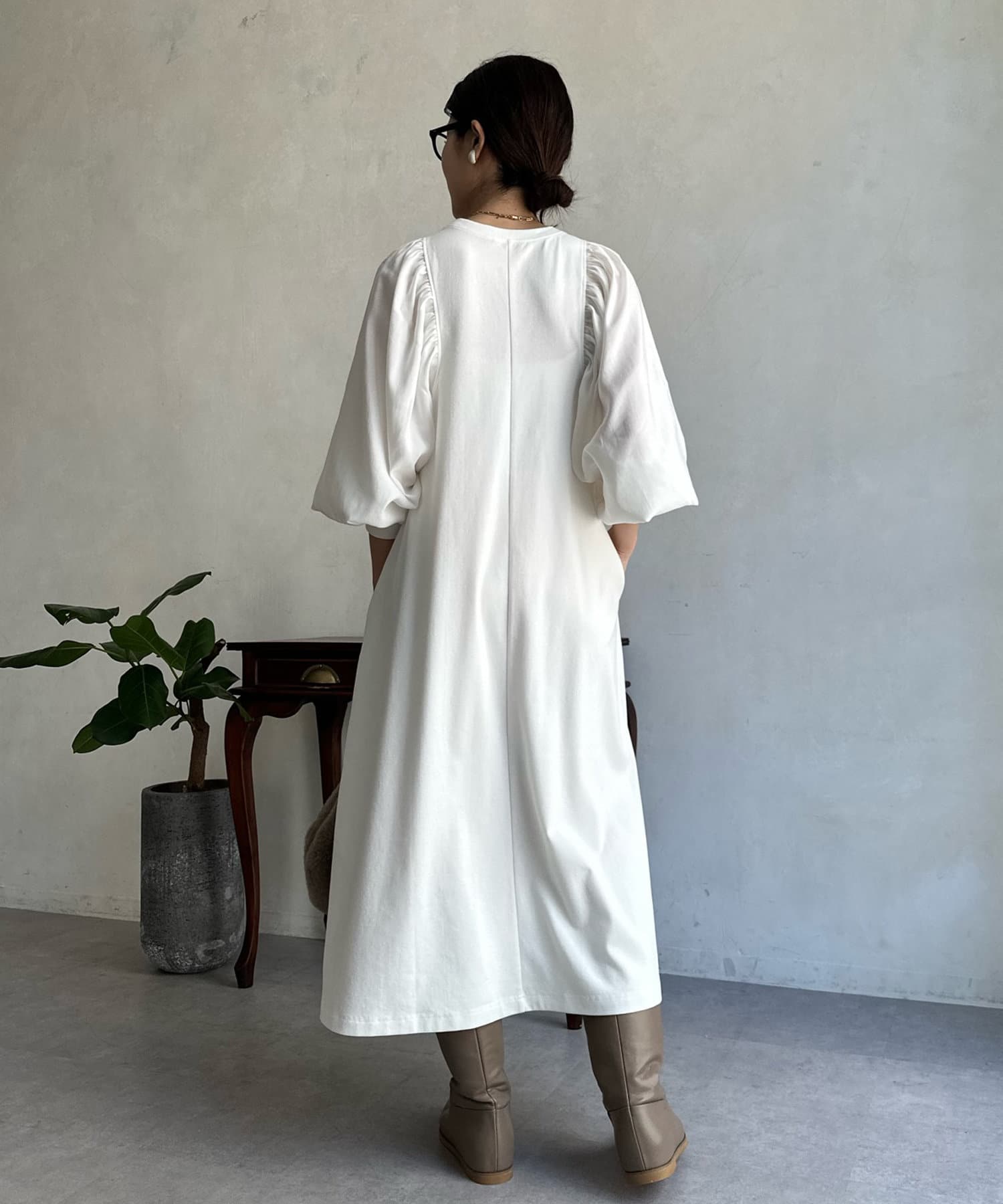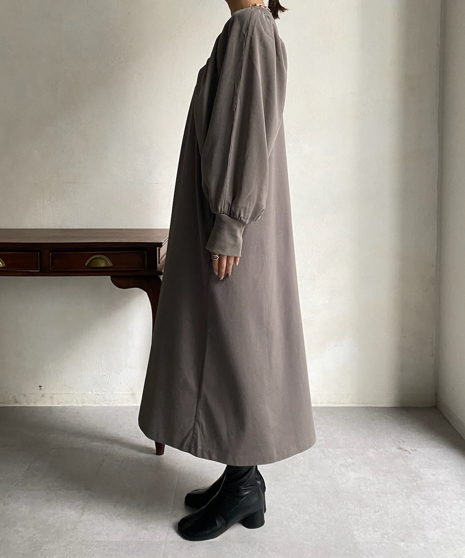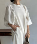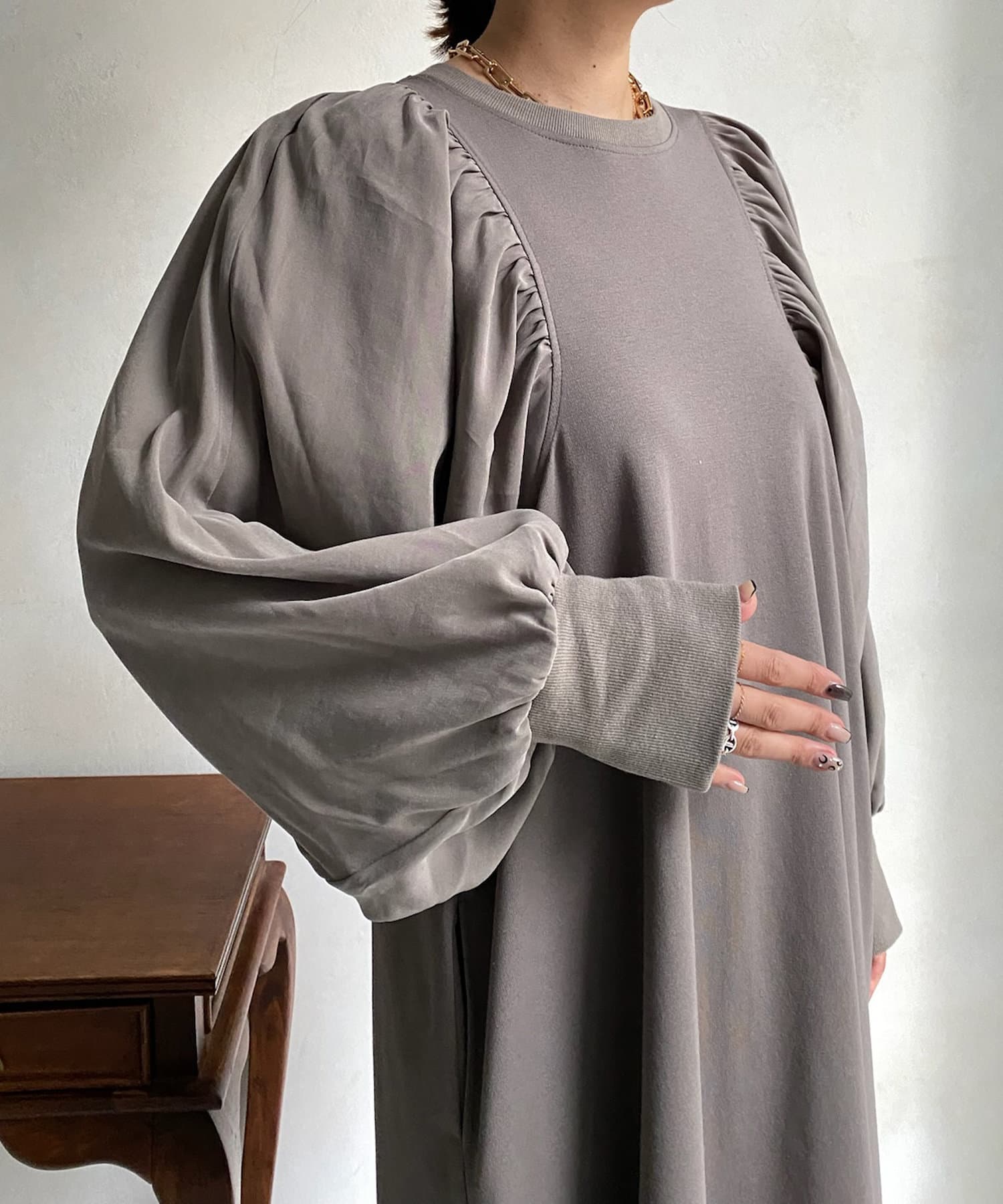 【WEB限定】 ボリューム袖異素材切替ワンピース