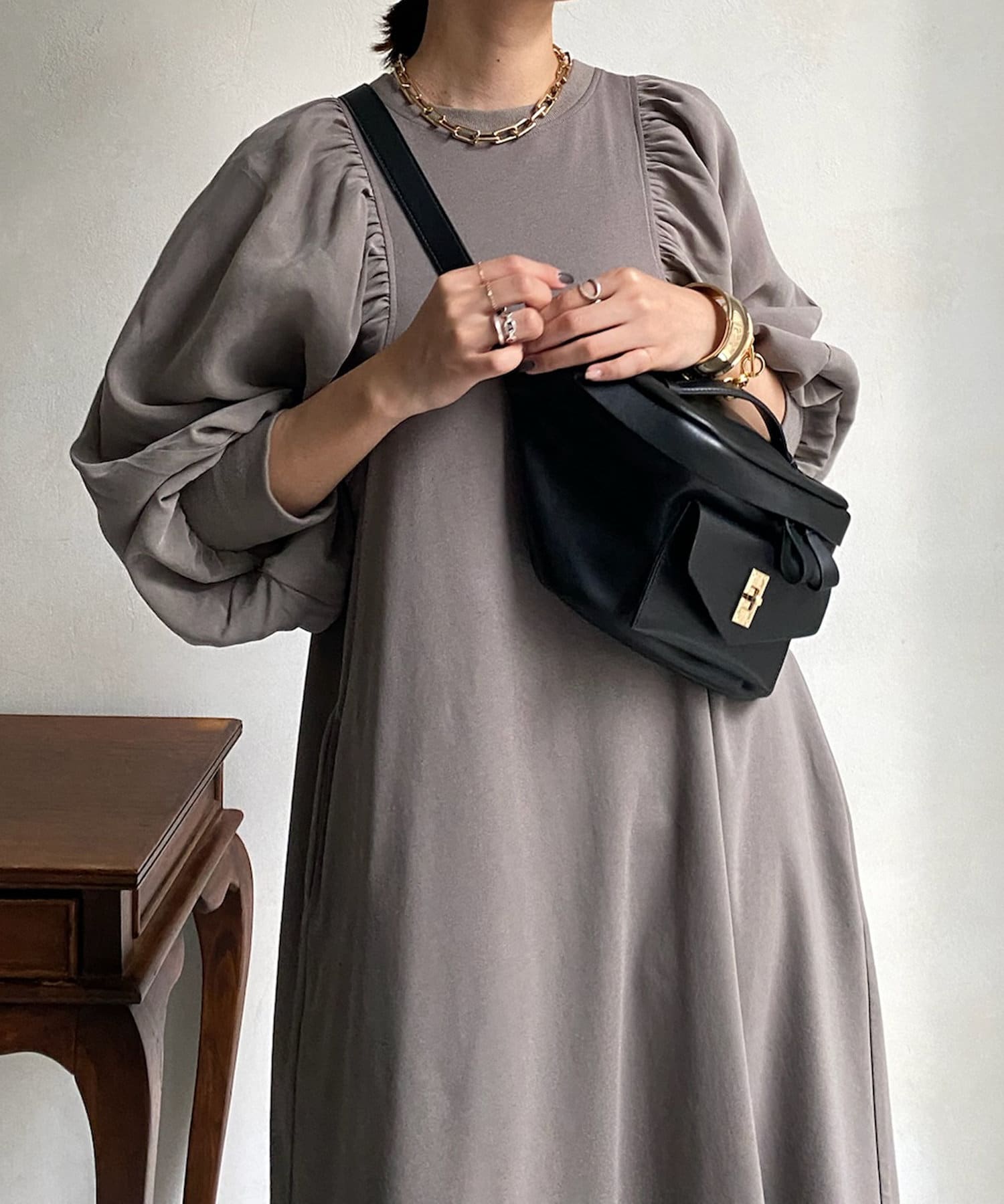 ボリューム感ある異素材の袖が特徴的なワンピース!
