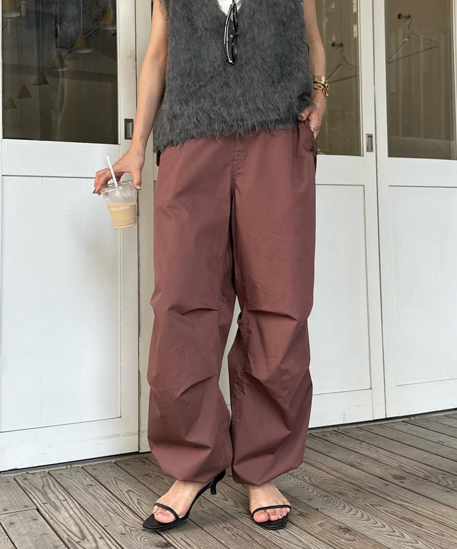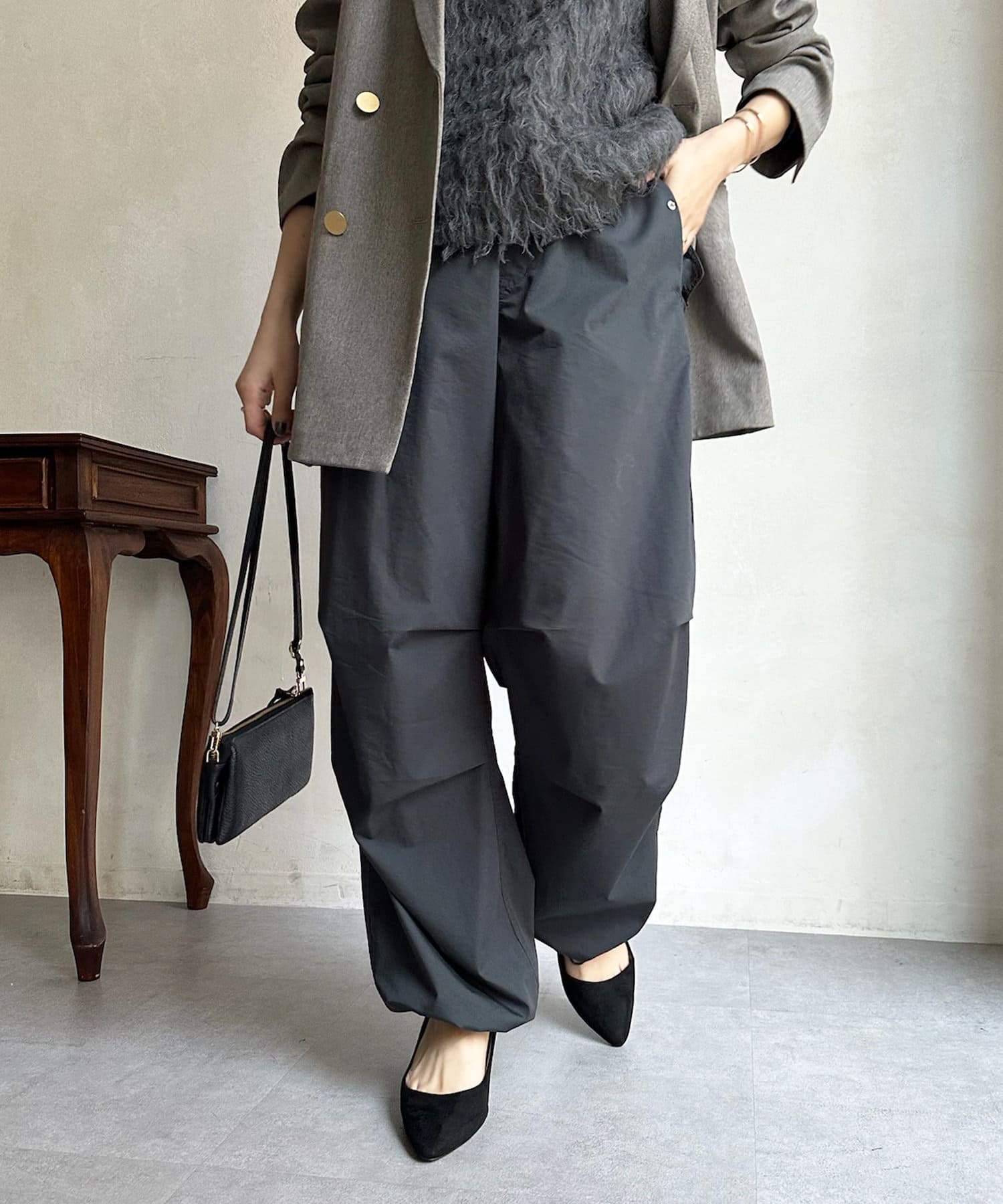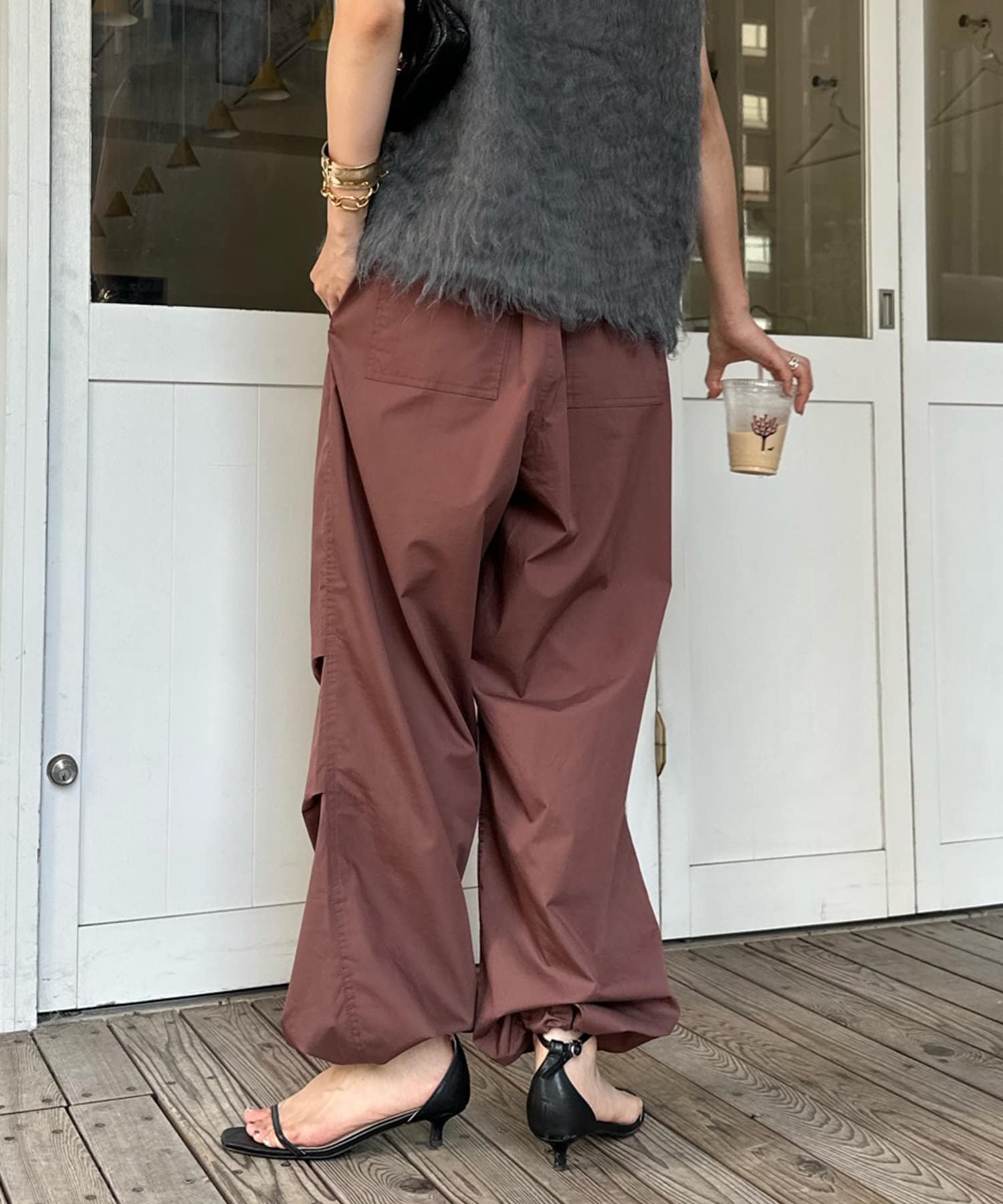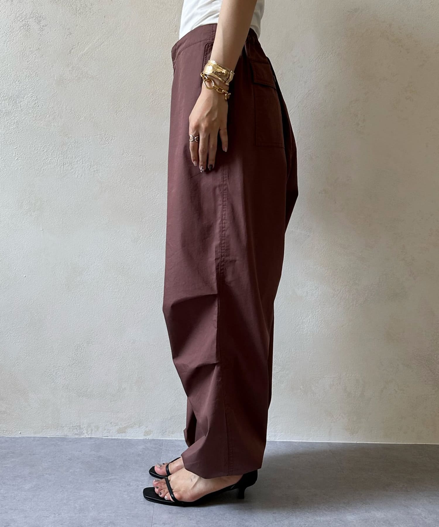 トレンドのパラシュートパンツが、DOUDOUらしく大人に仕上がるデザインで登場。
