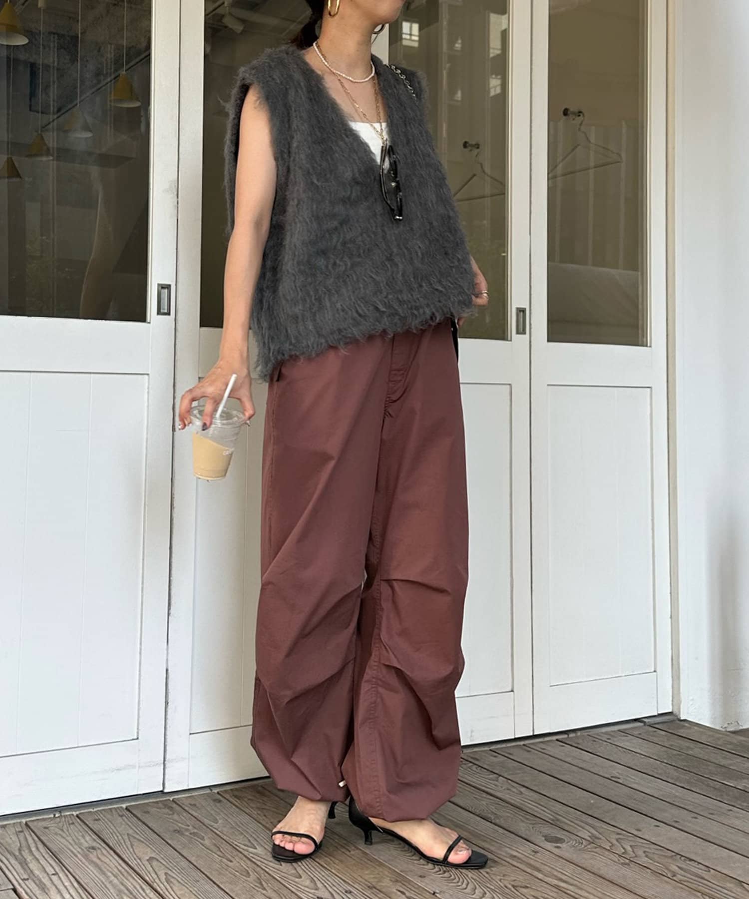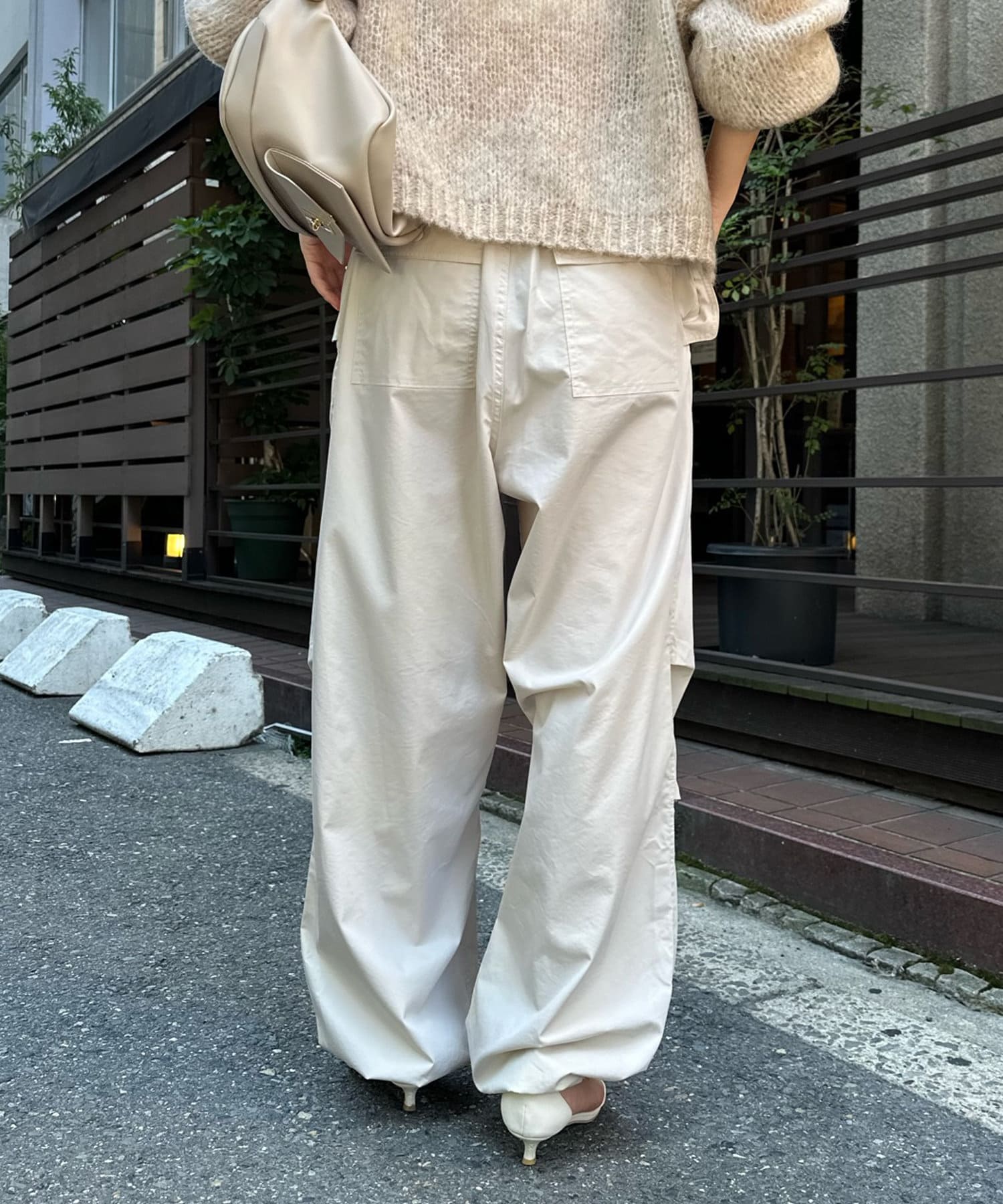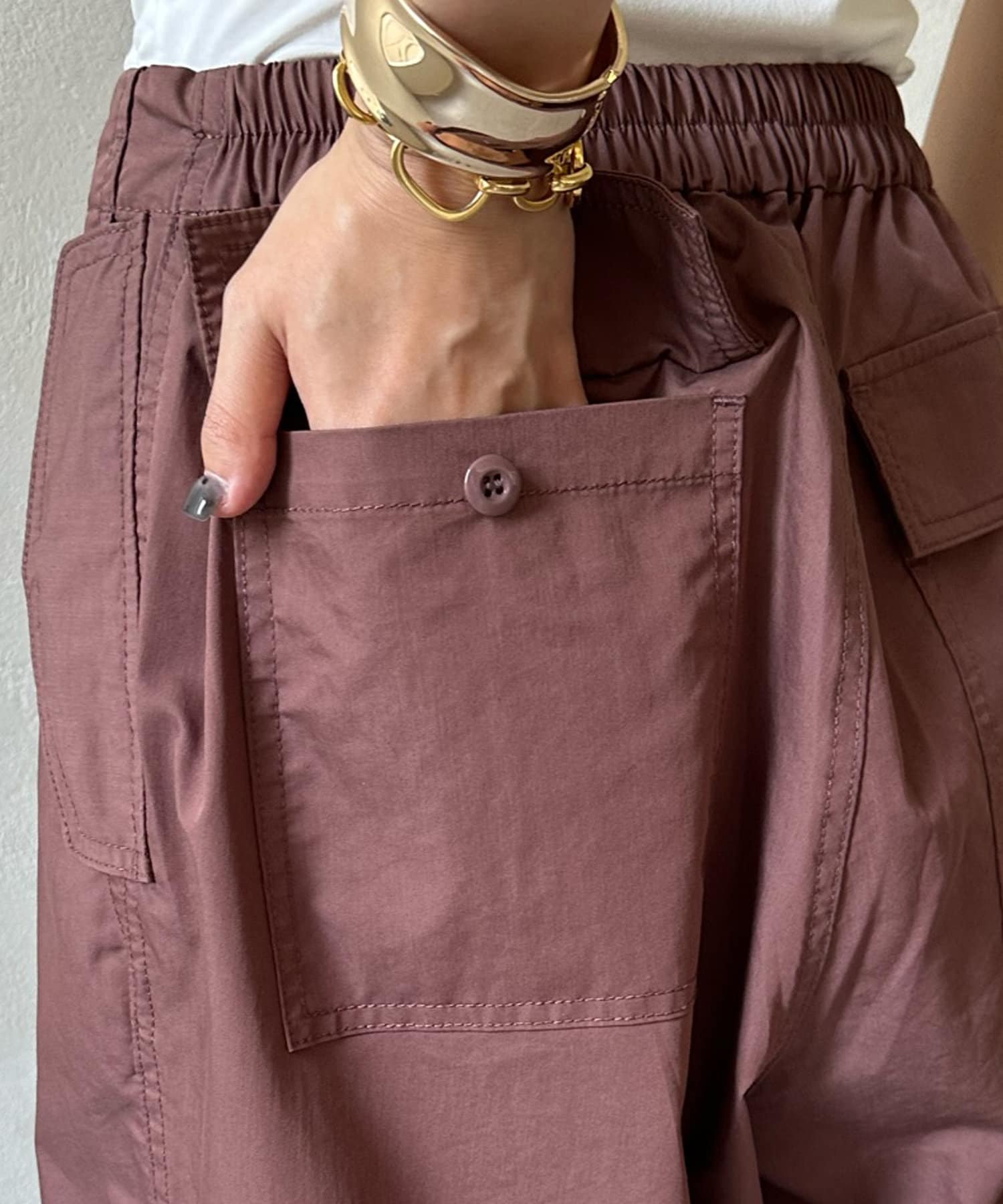 トレンドのパラシュートパンツが、DOUDOUらしく大人に仕上がるデザインで登場。