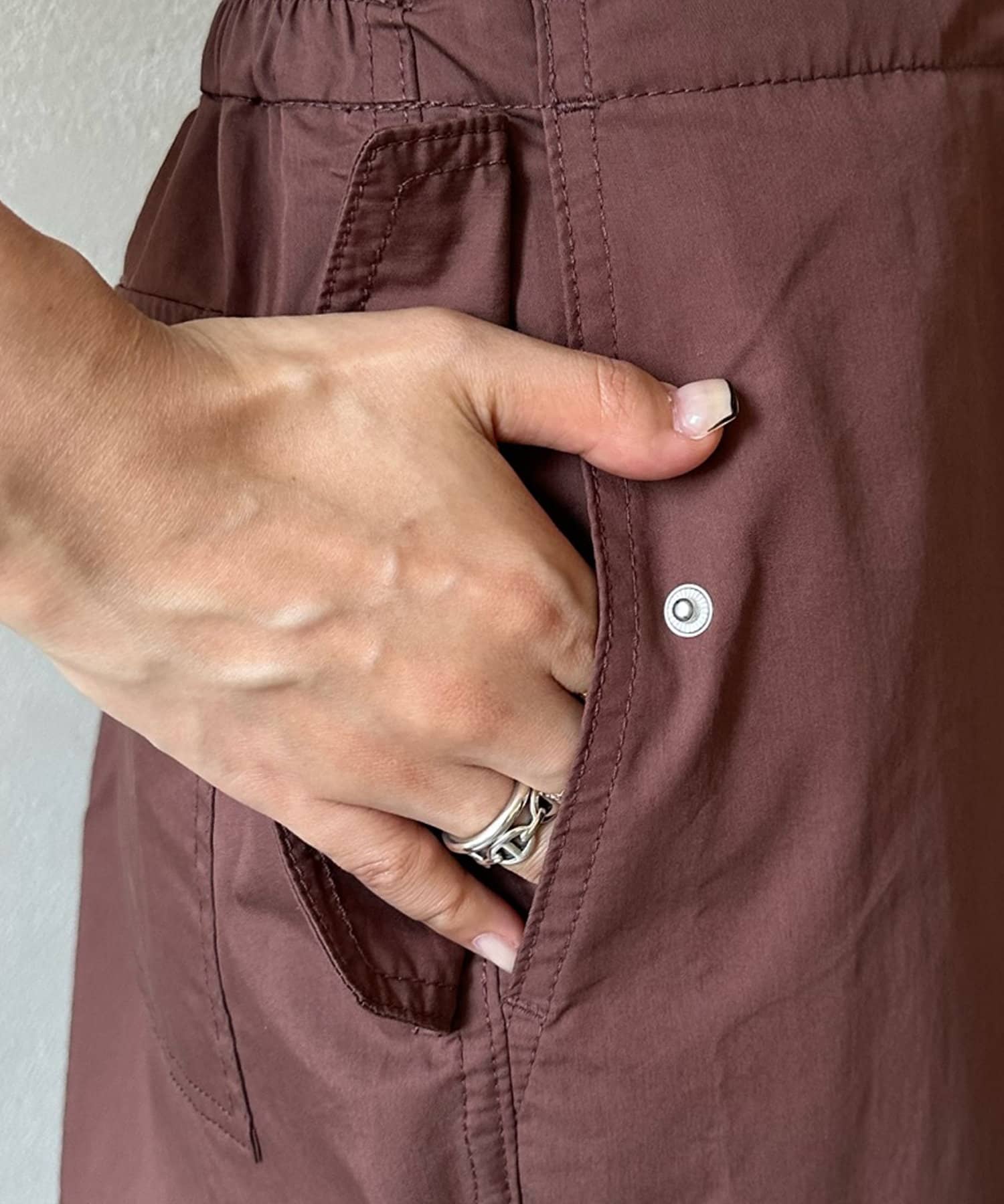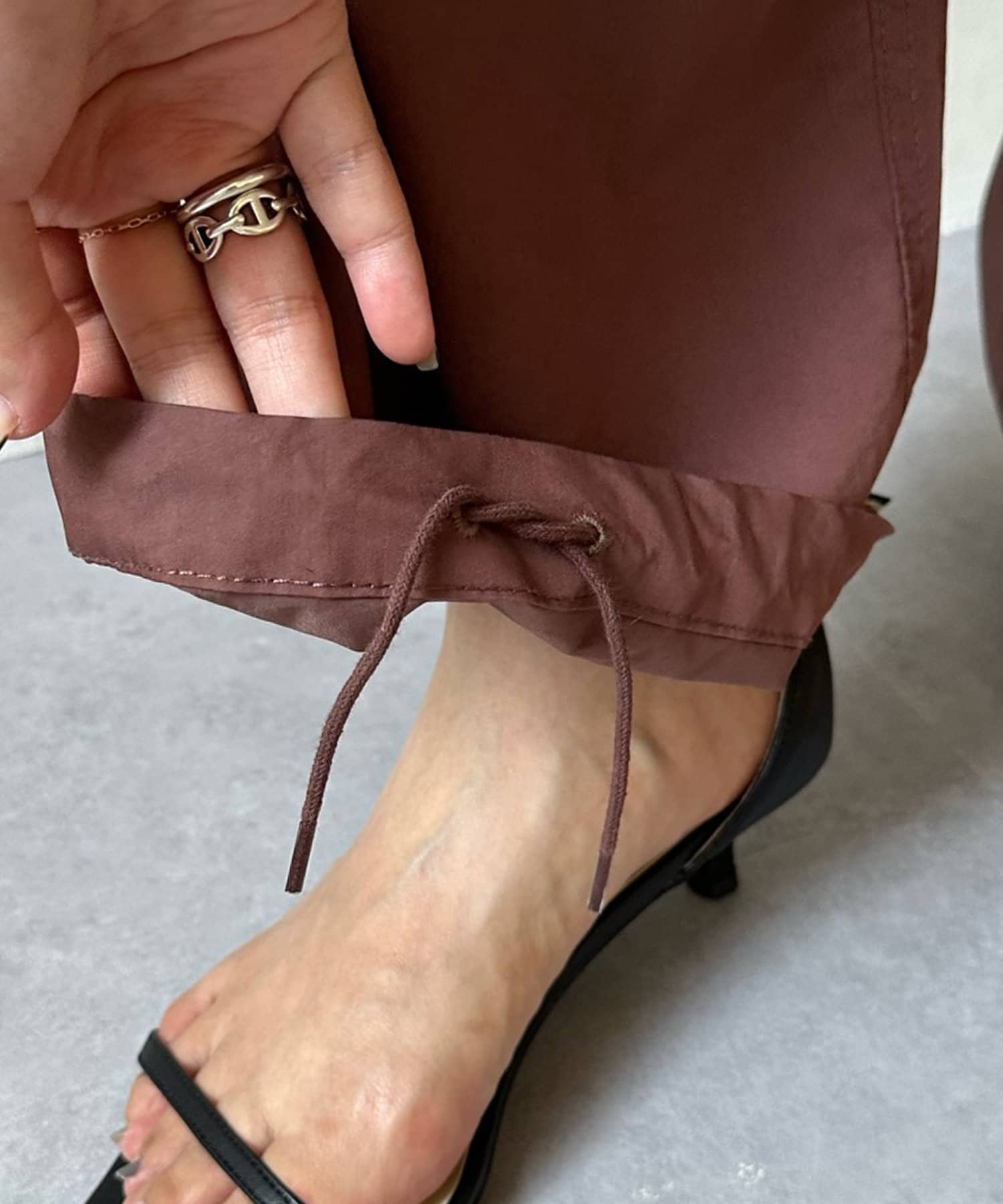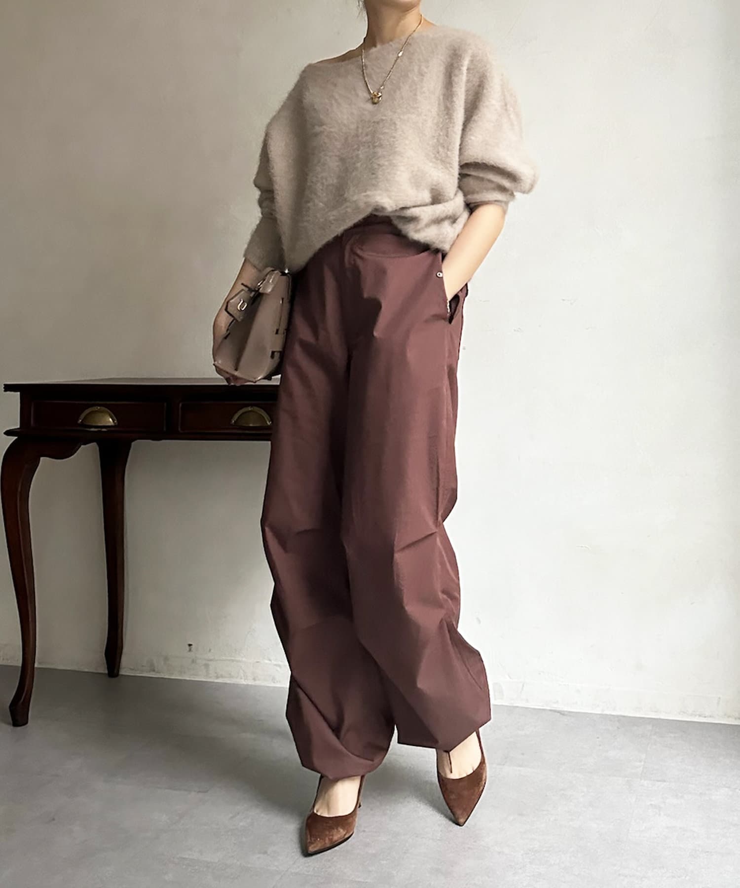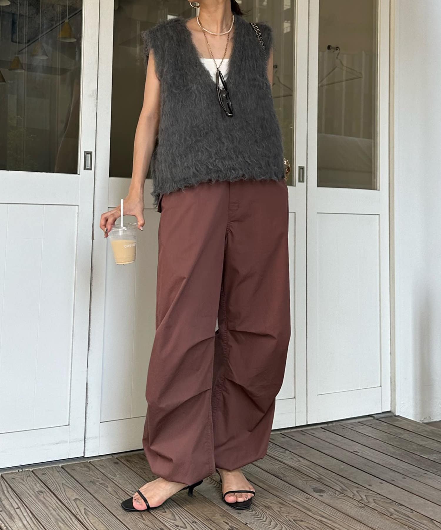 トレンドのパラシュートパンツが、DOUDOUらしく大人に仕上がるデザインで登場。