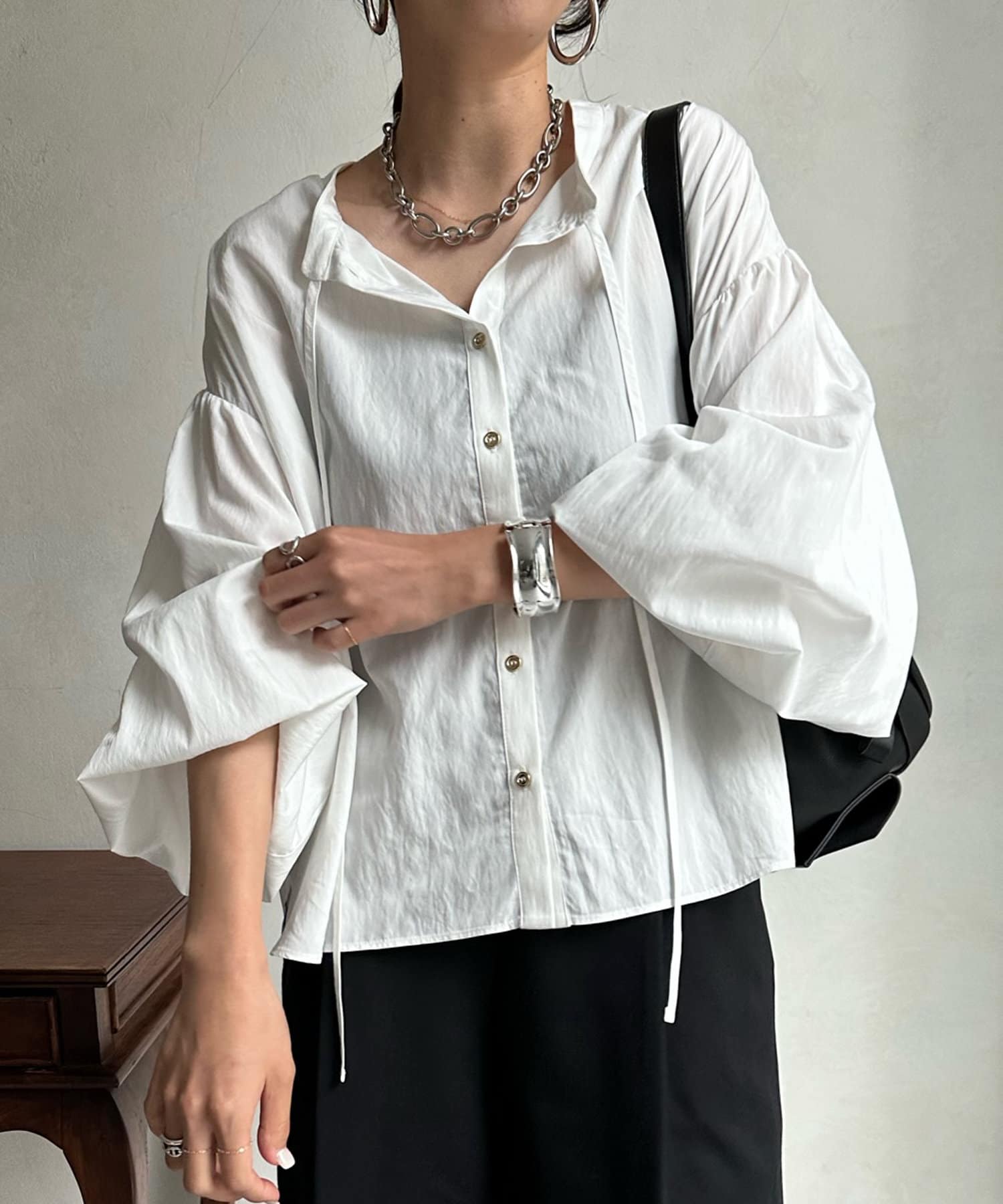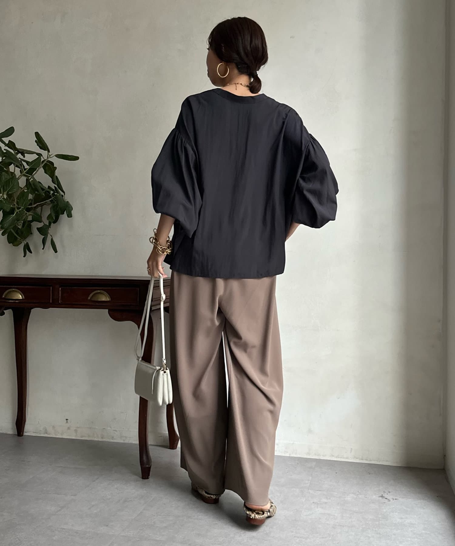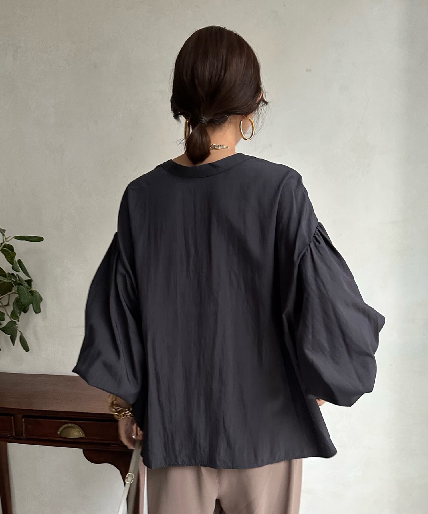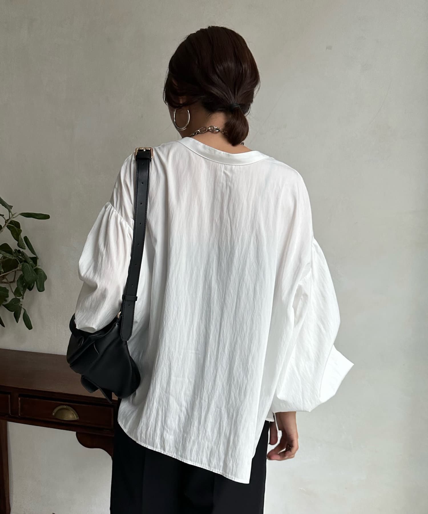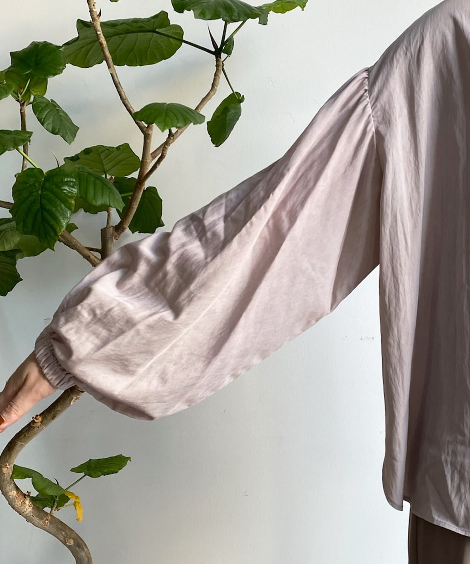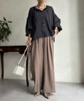 ショルダーラインと袖口にギャザーを寄せ、ボリューム感を作った袖シルエットがポイント。