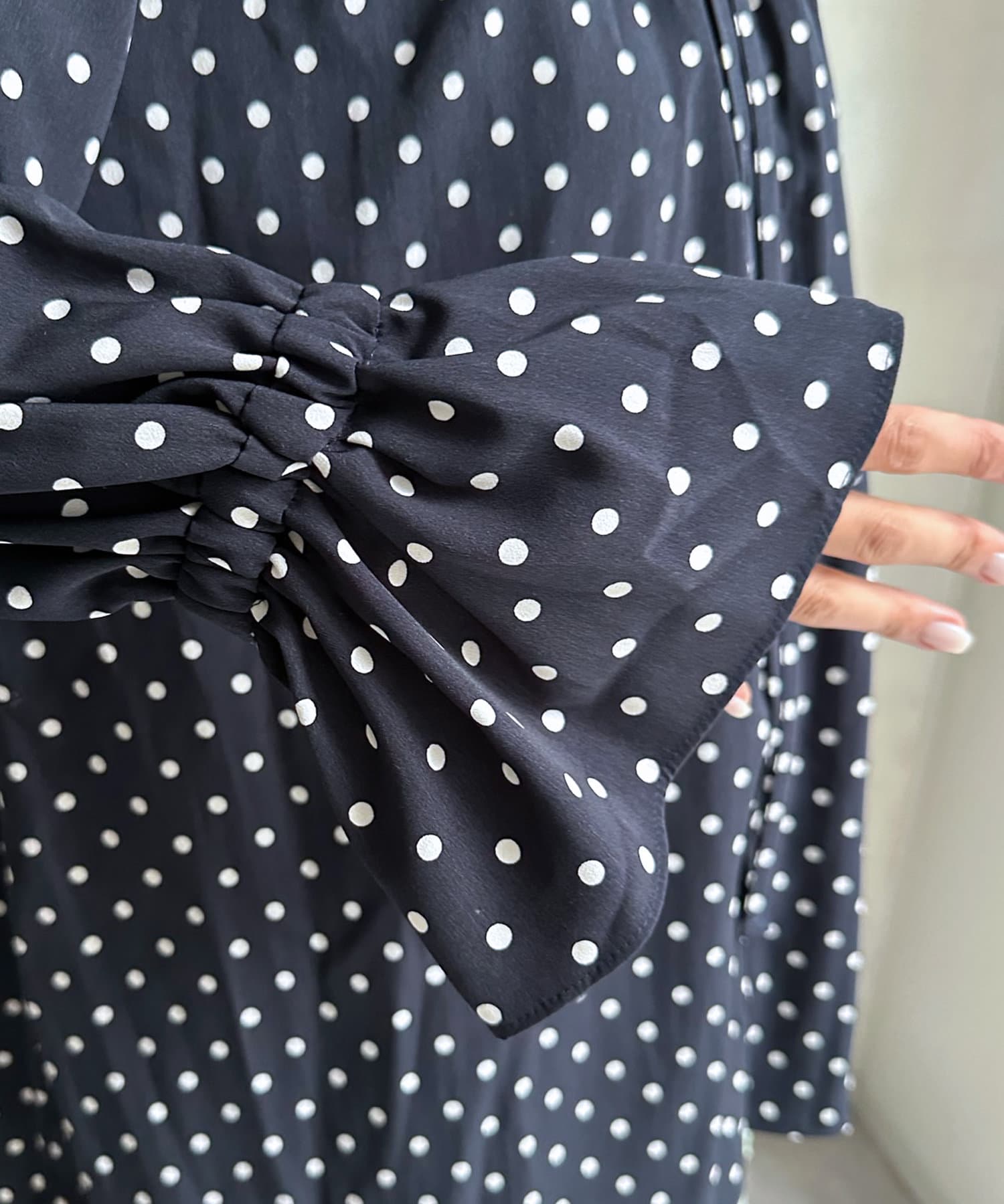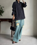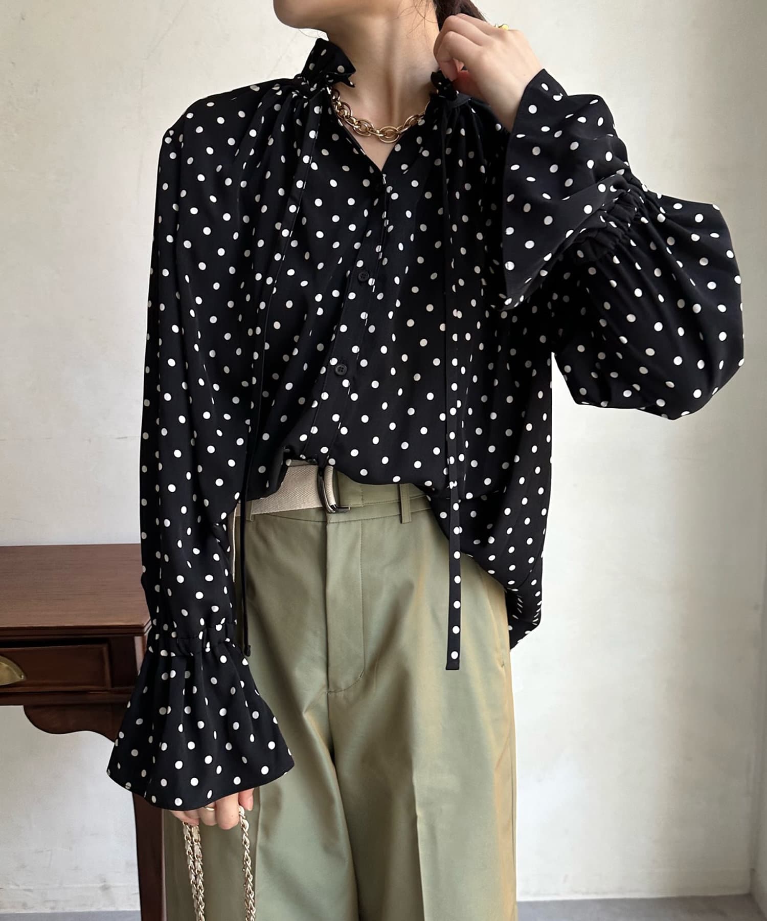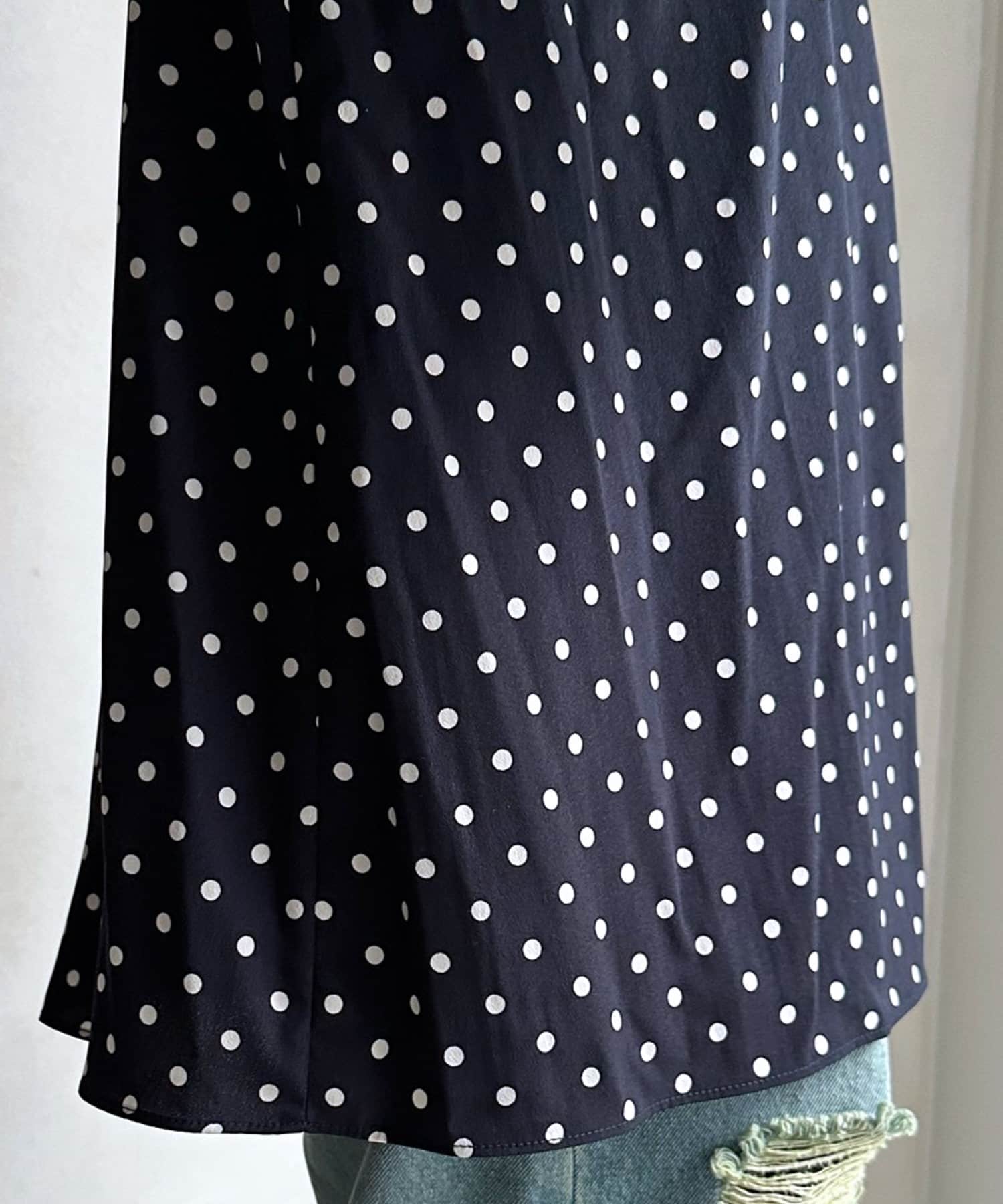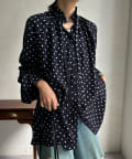 ドットの素材が今季トレンドライクなブラウス。