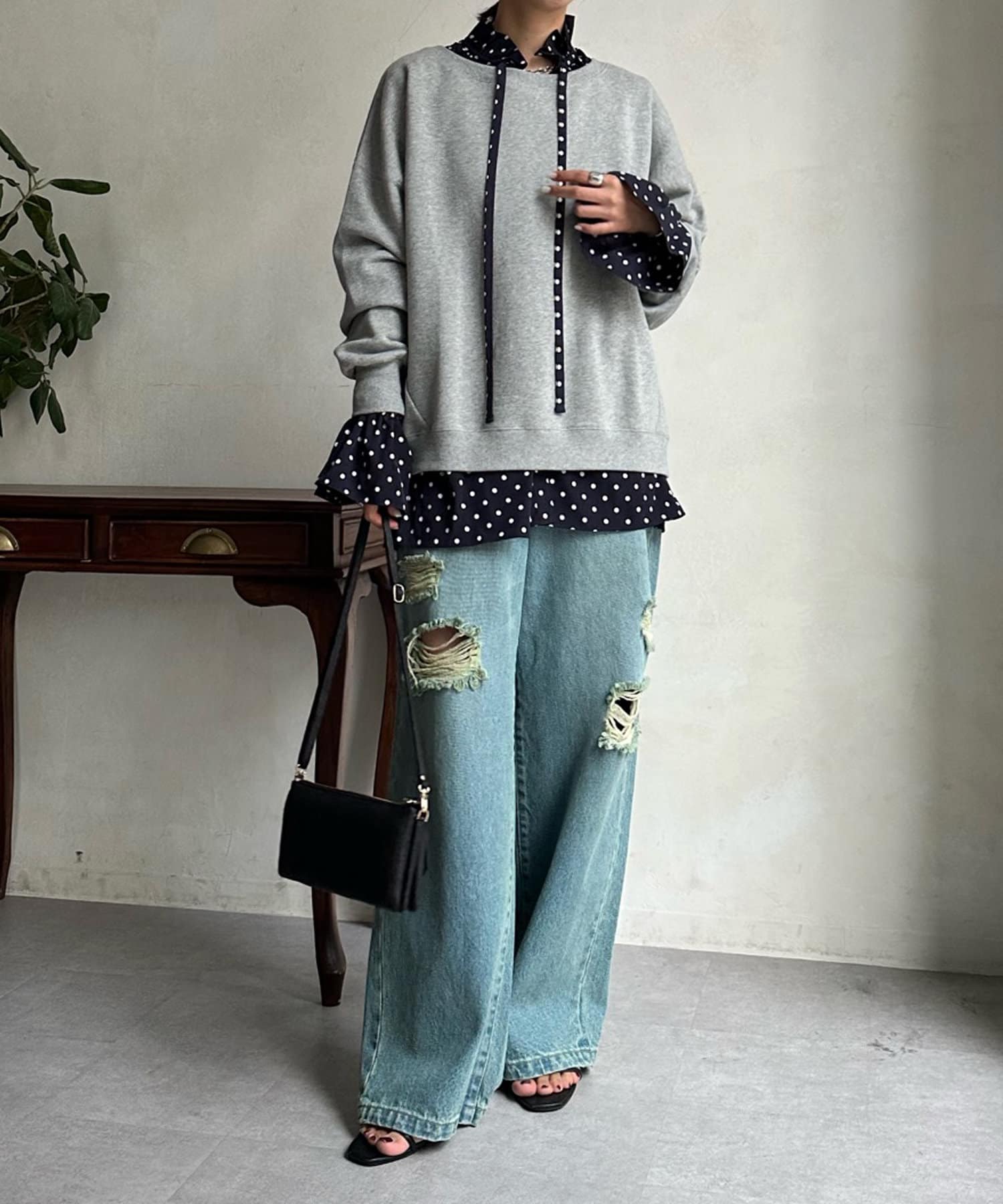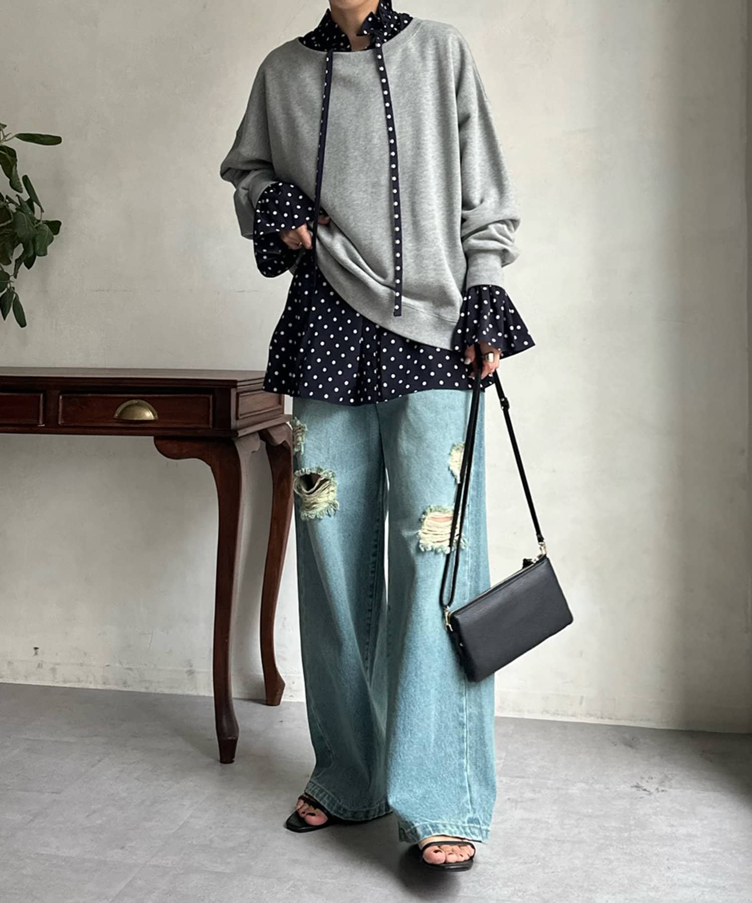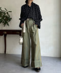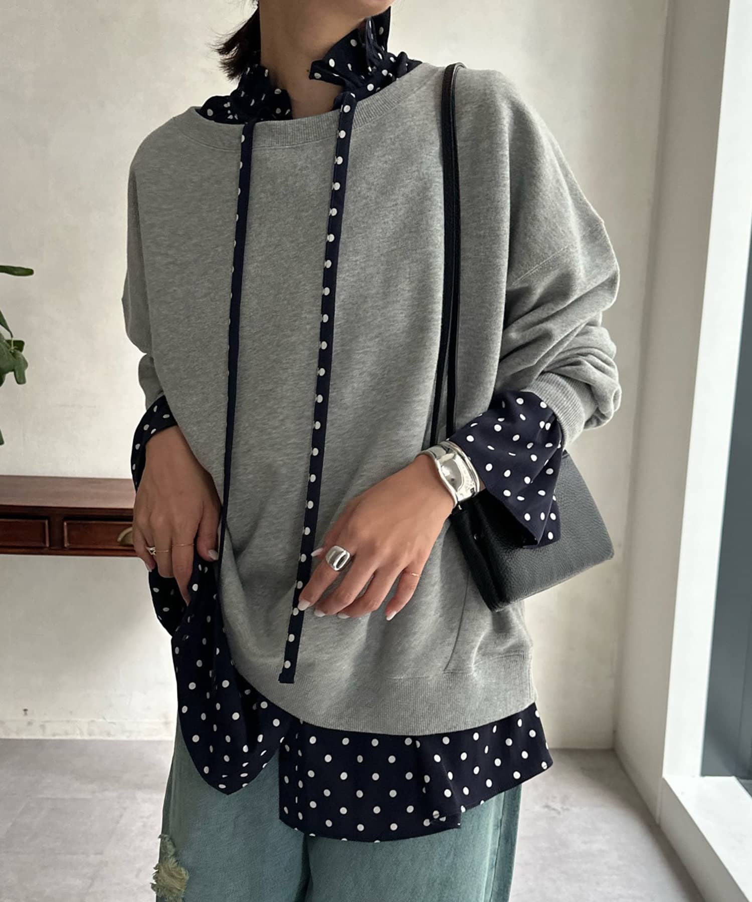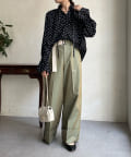 首元をざっくりと開けて、甘くなり過ぎないよう、抜け感をだした着こなしがおすすめです。