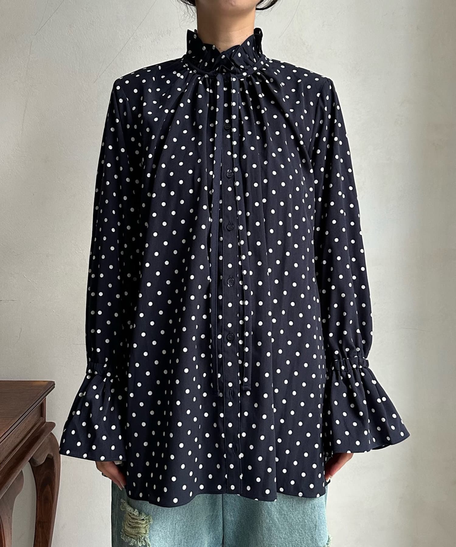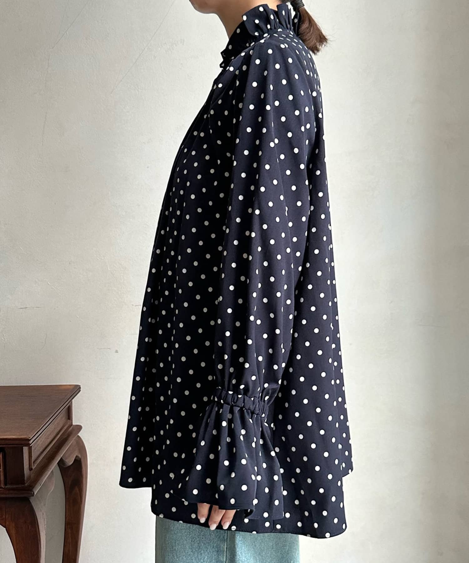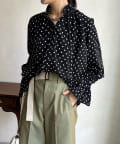 ドットフリルブラウス