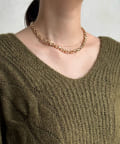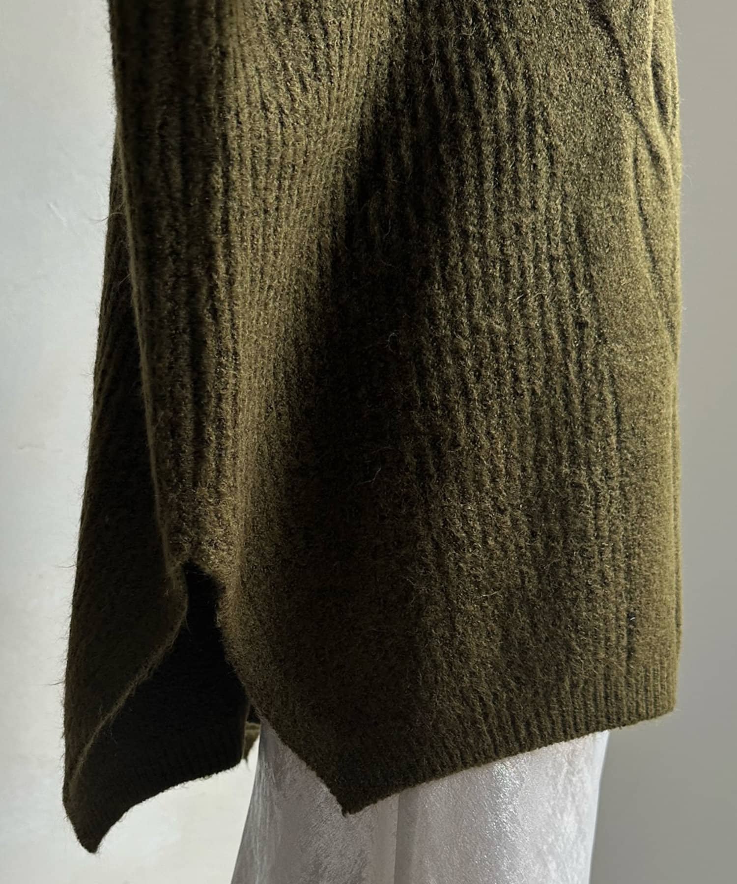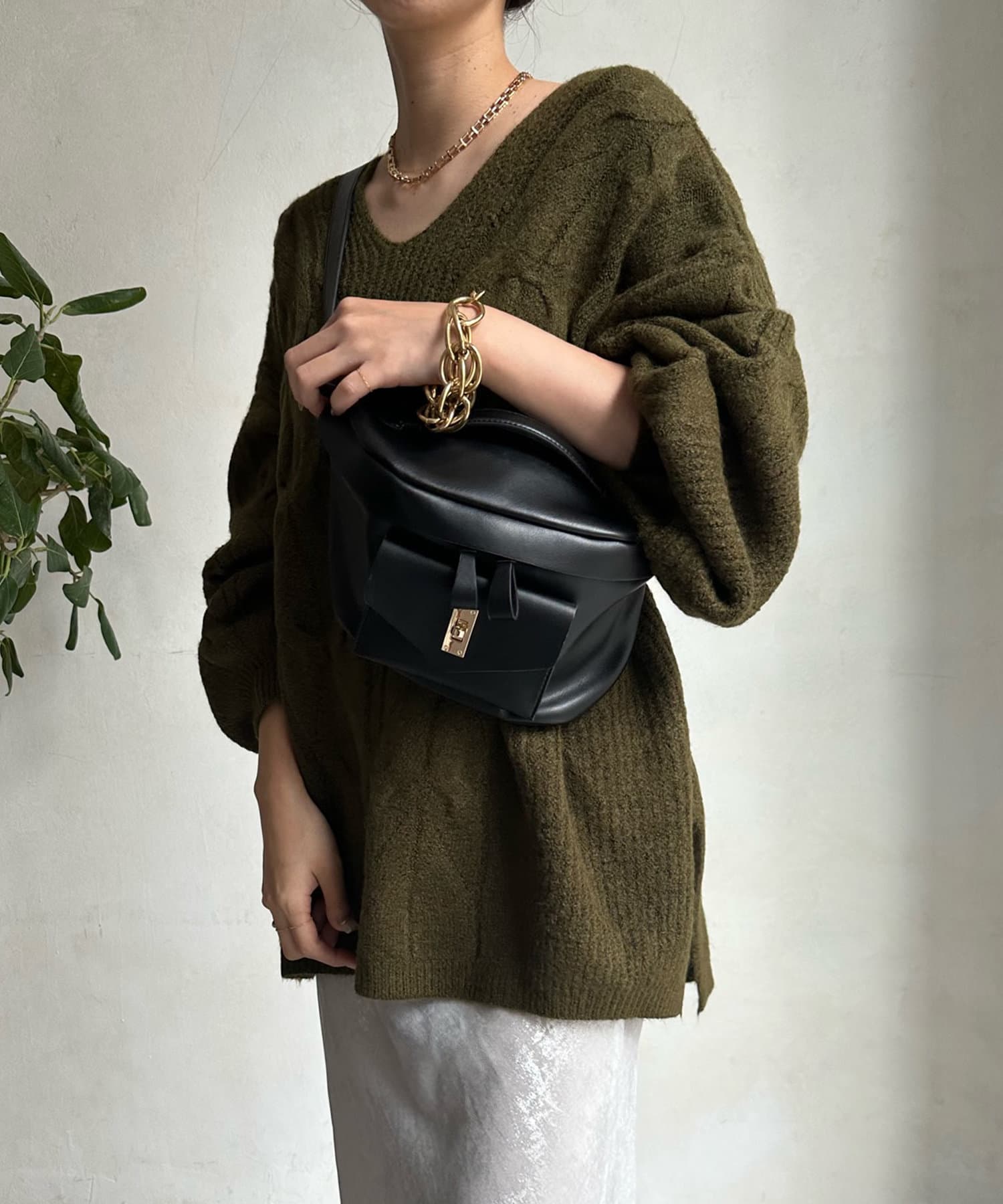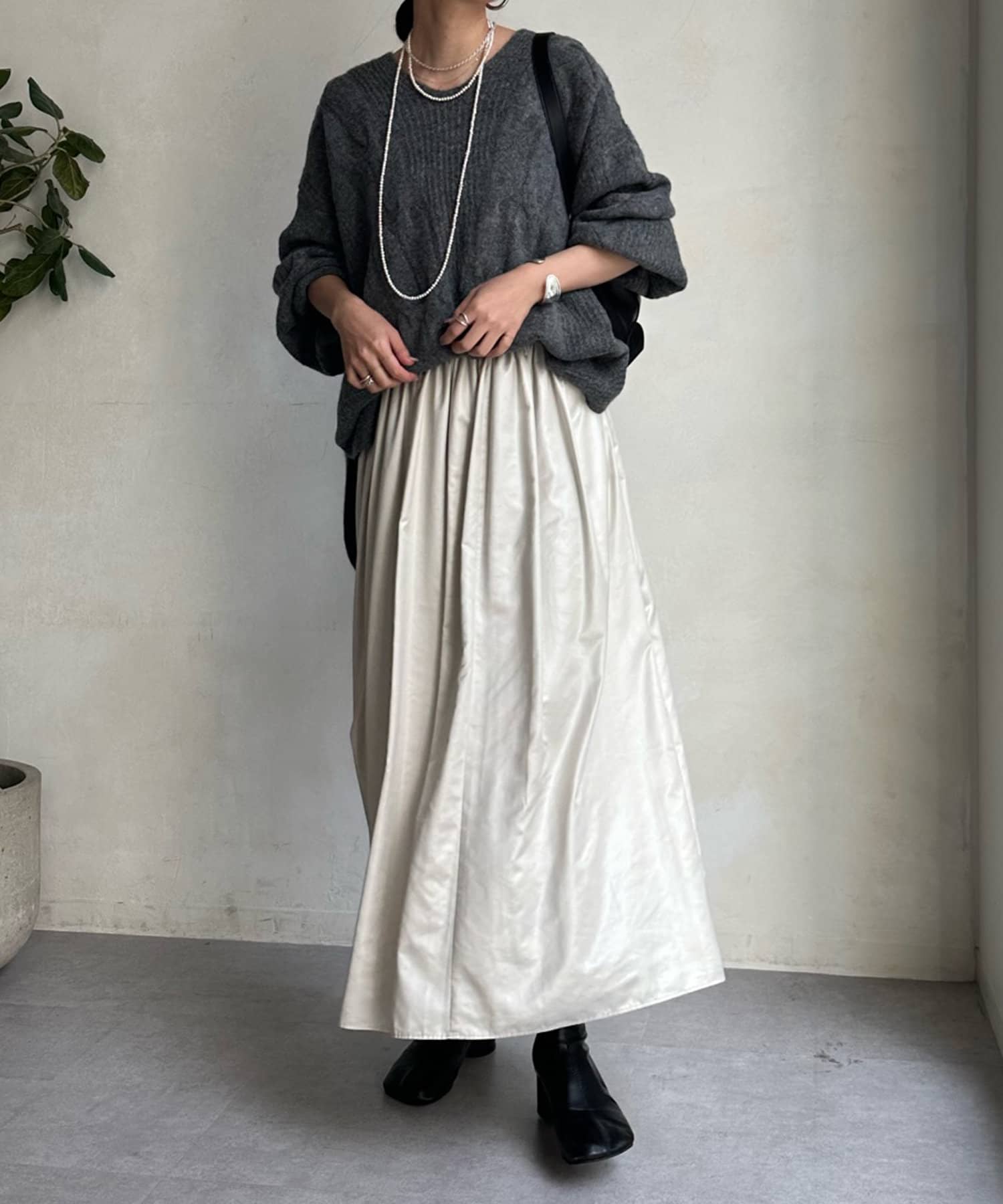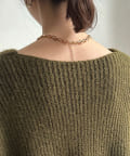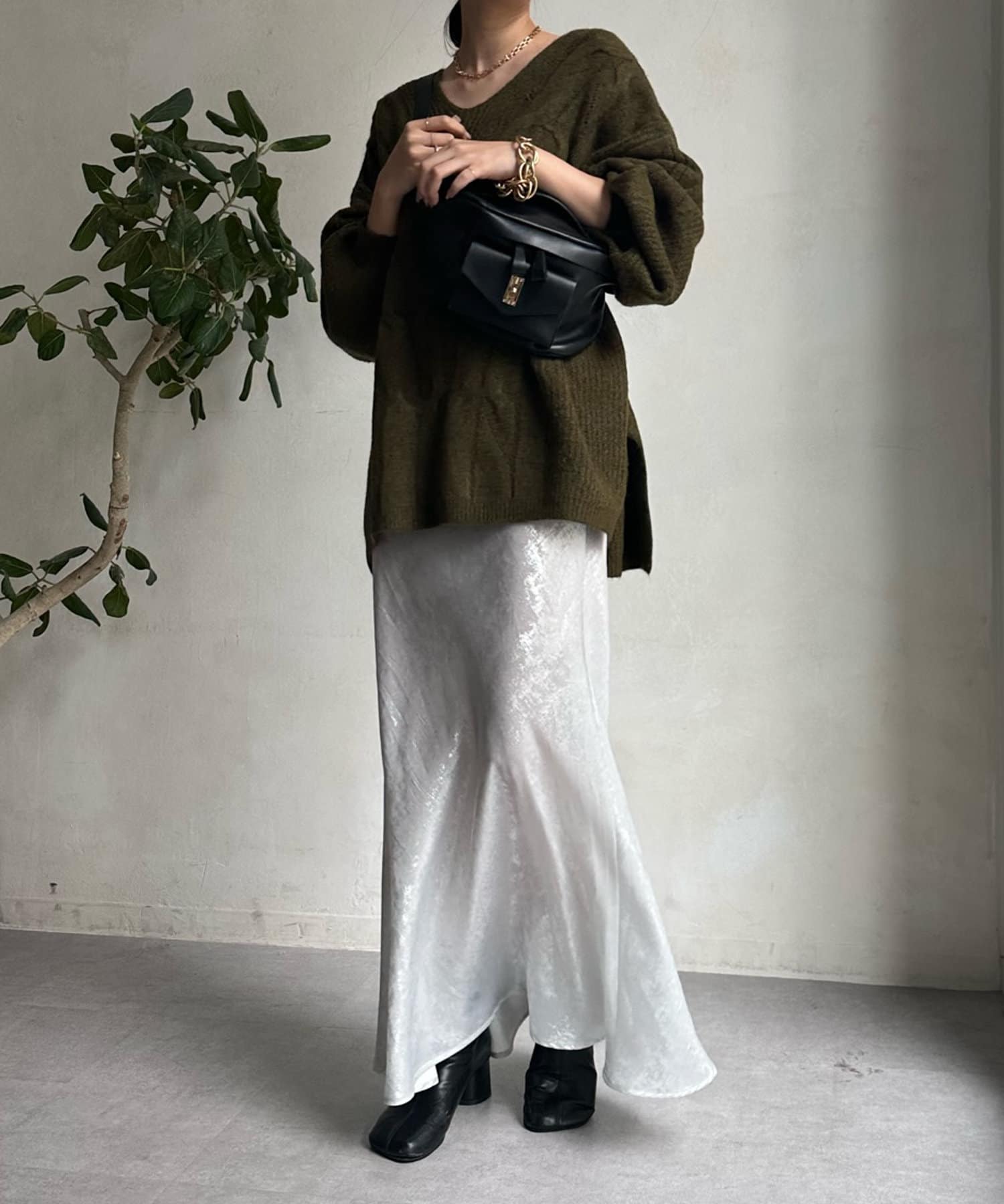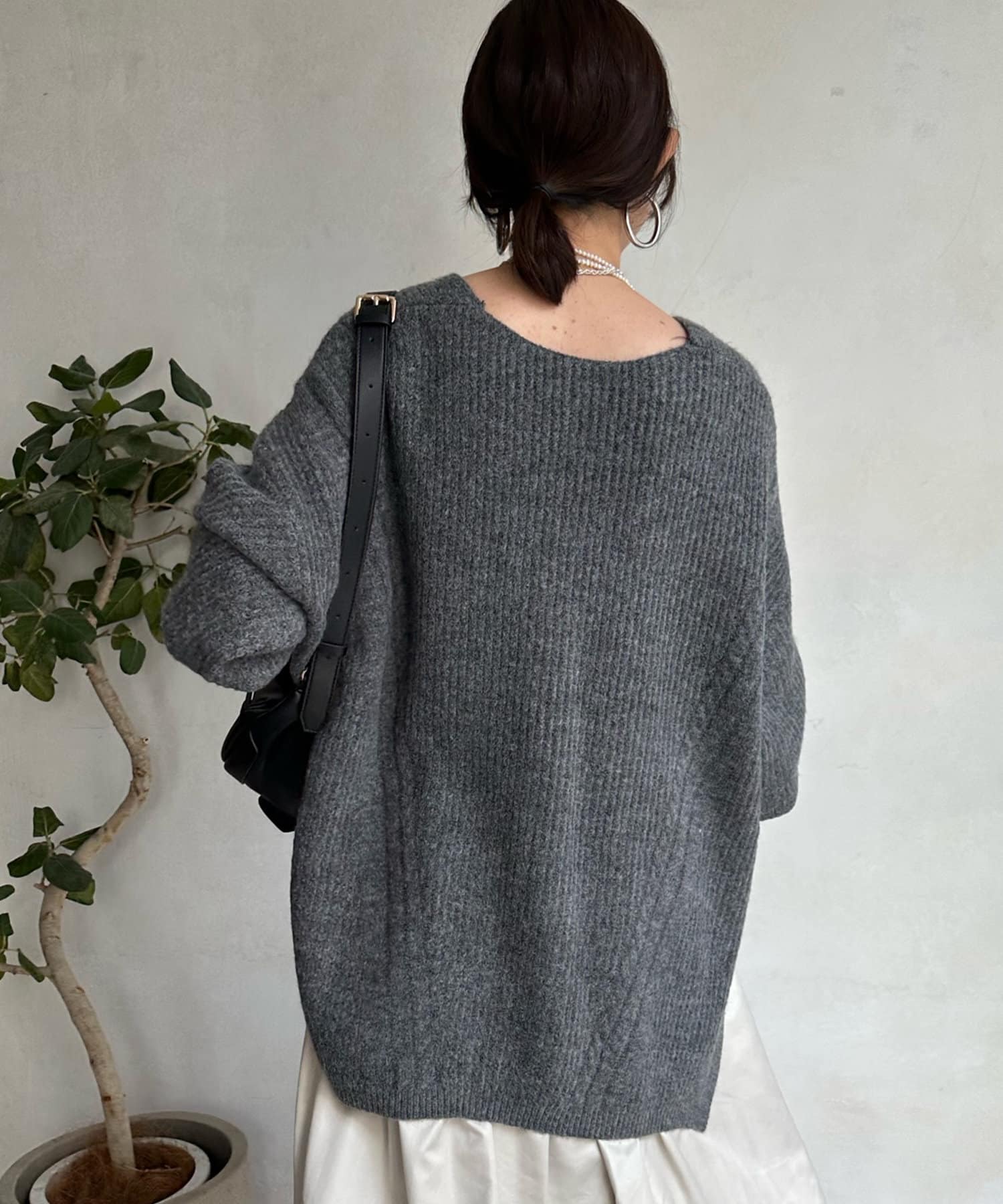 温かみのある大きめのケーブル編みと、抜け感のあるシルエットがかわいいニット。