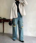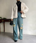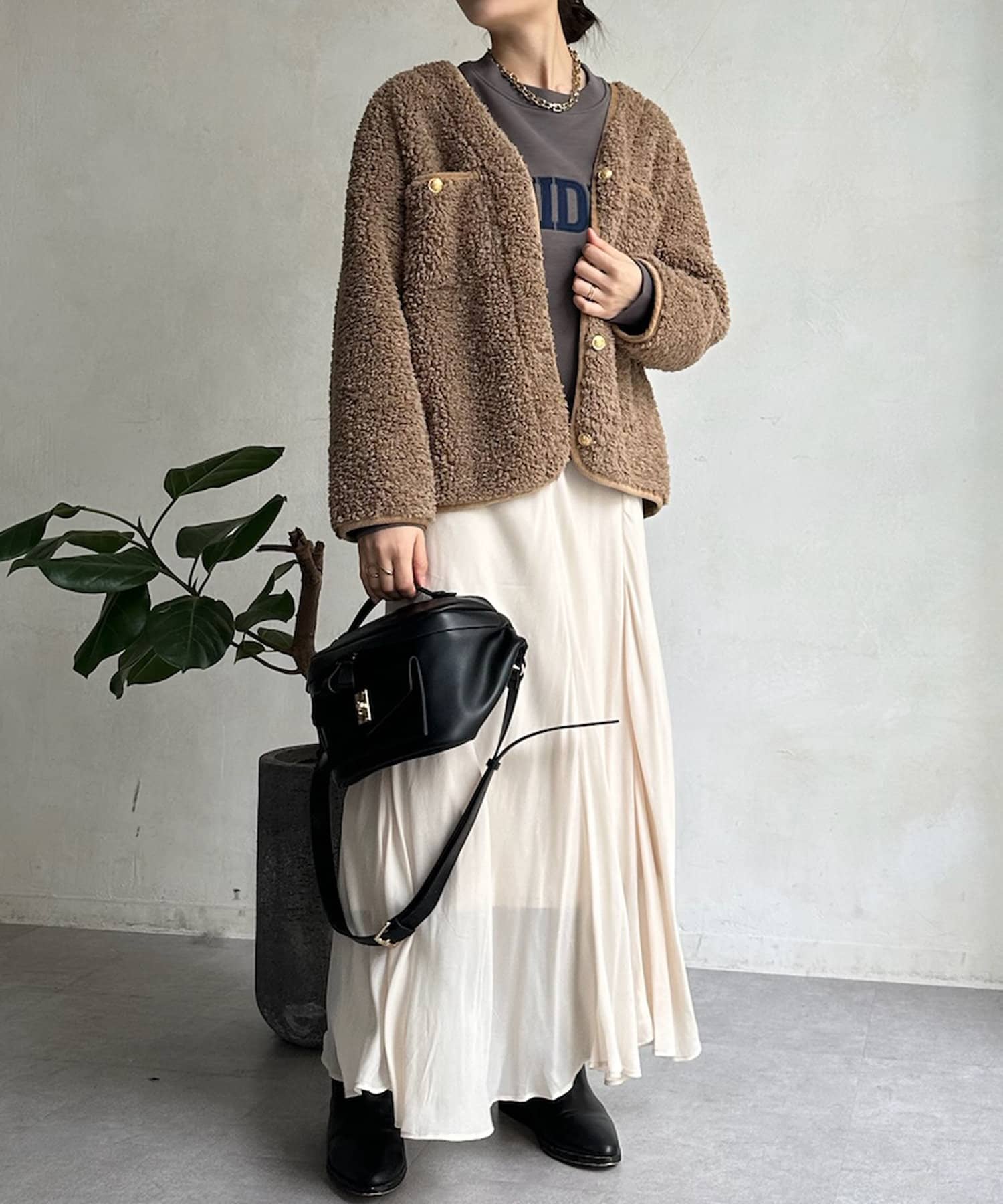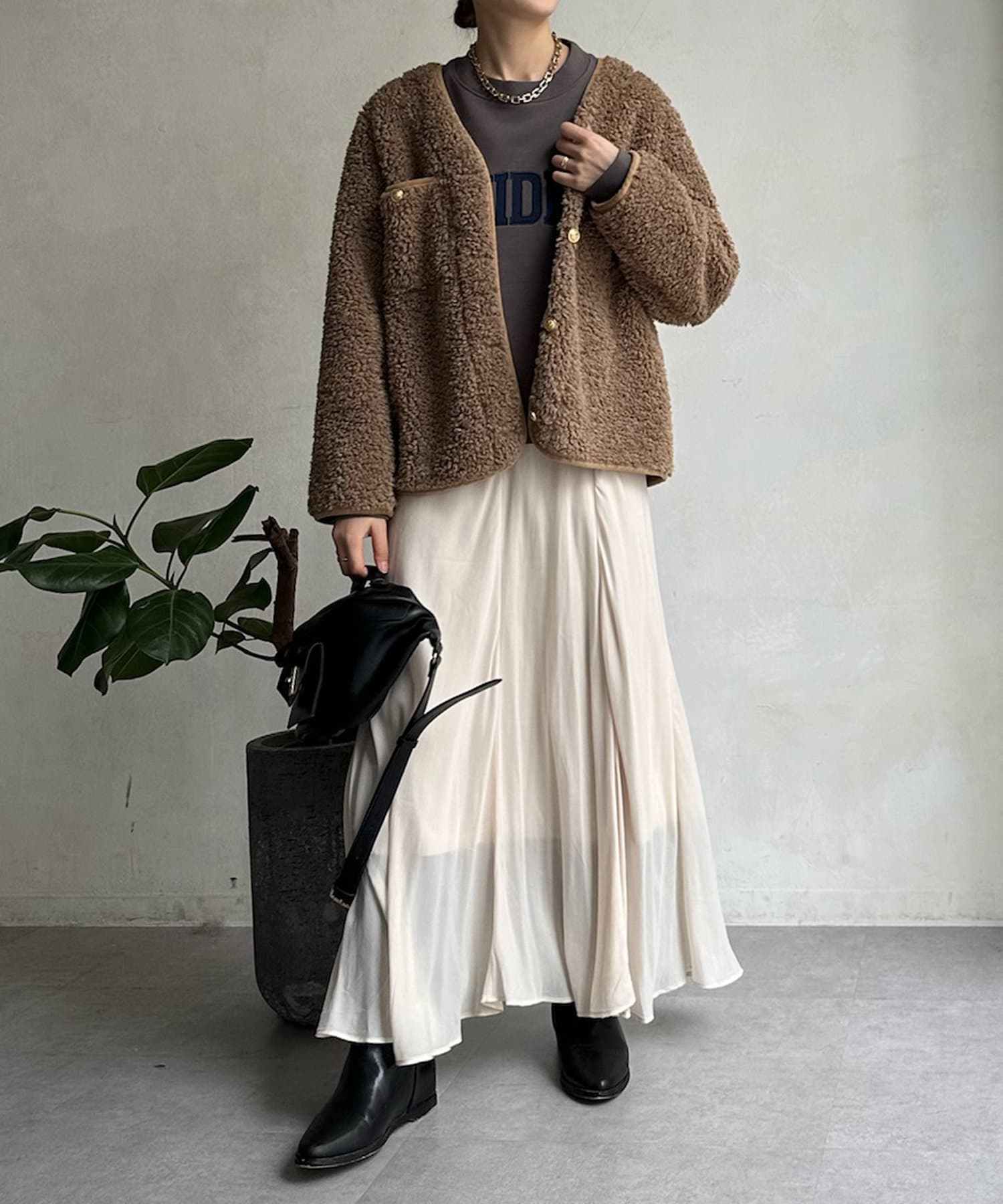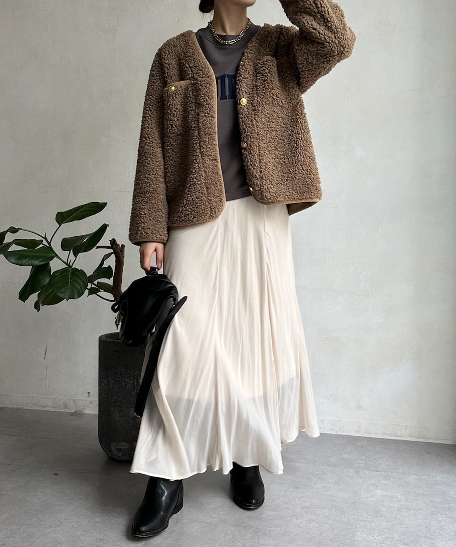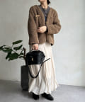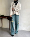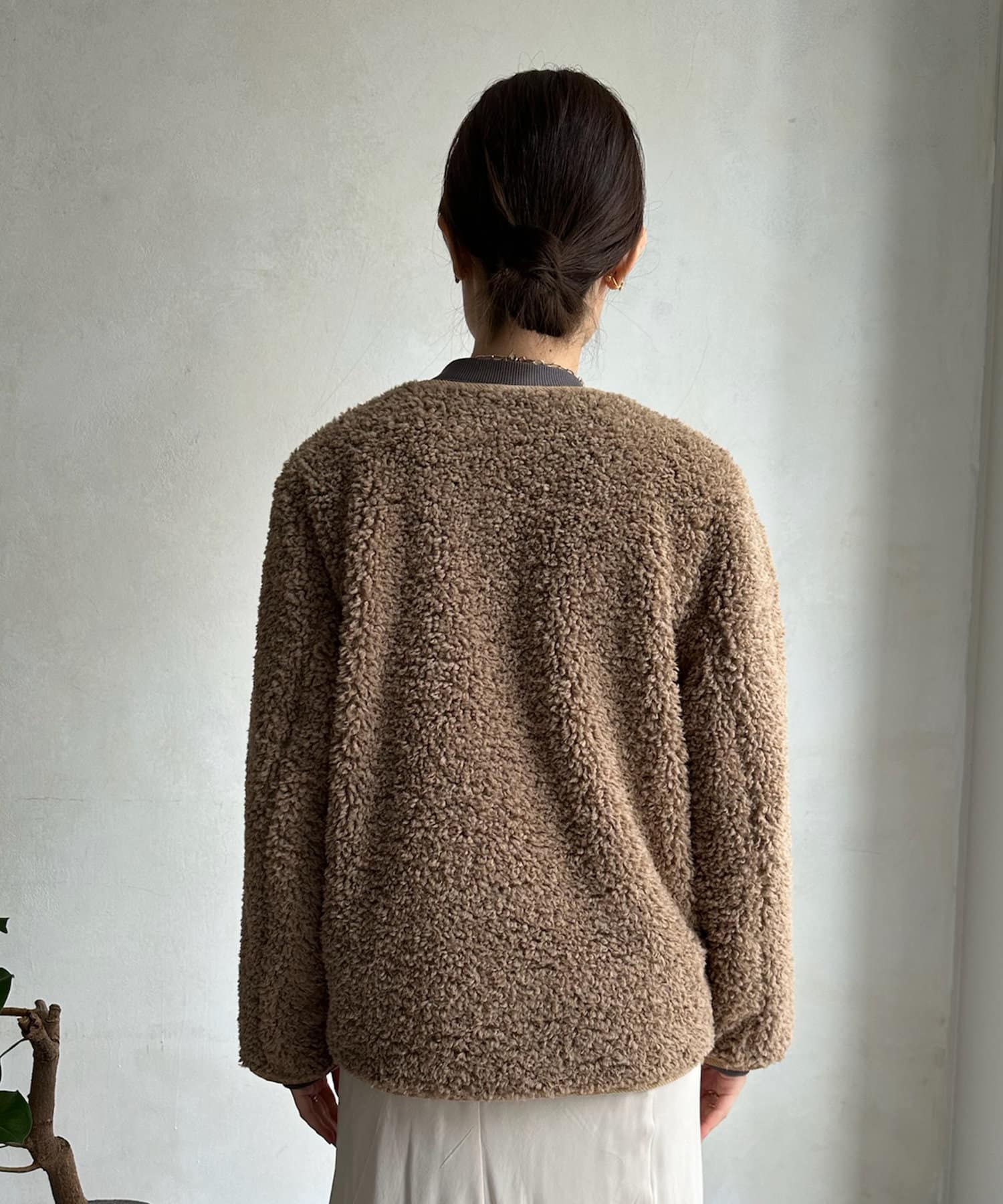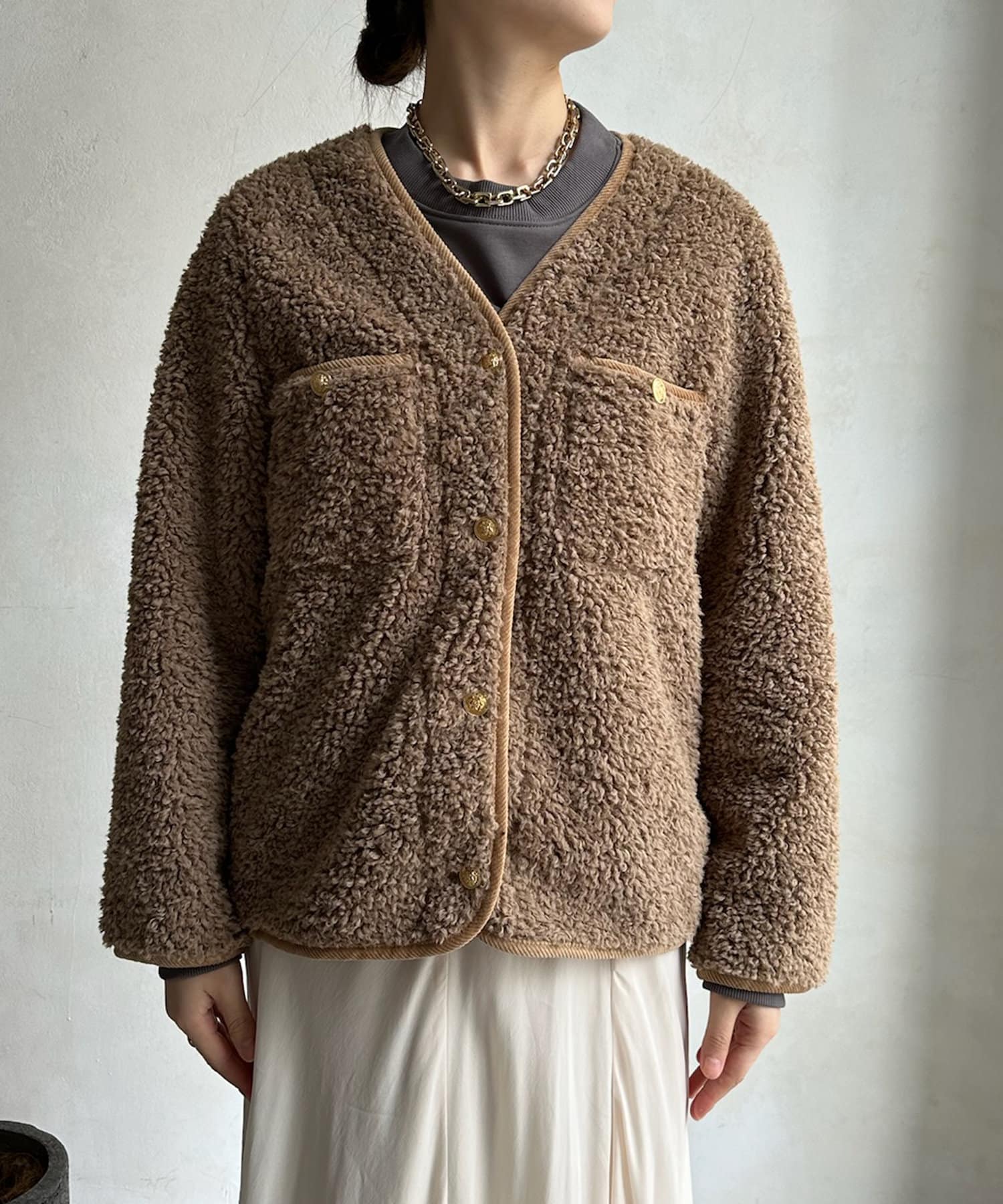 ふわふわとしたカーリーな表面感の素材のフェイクムートンジャケット!