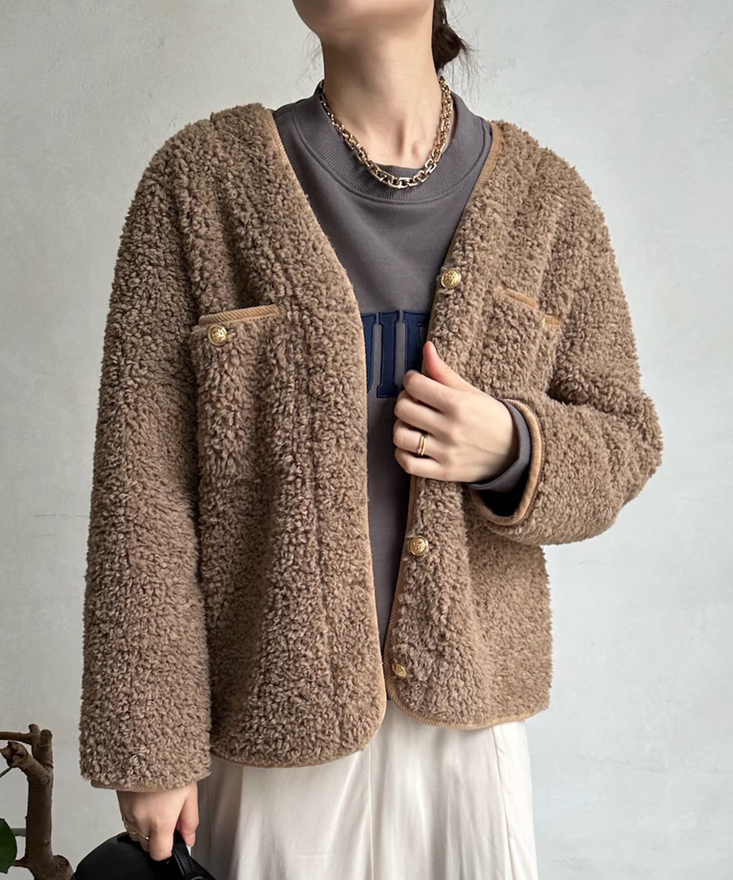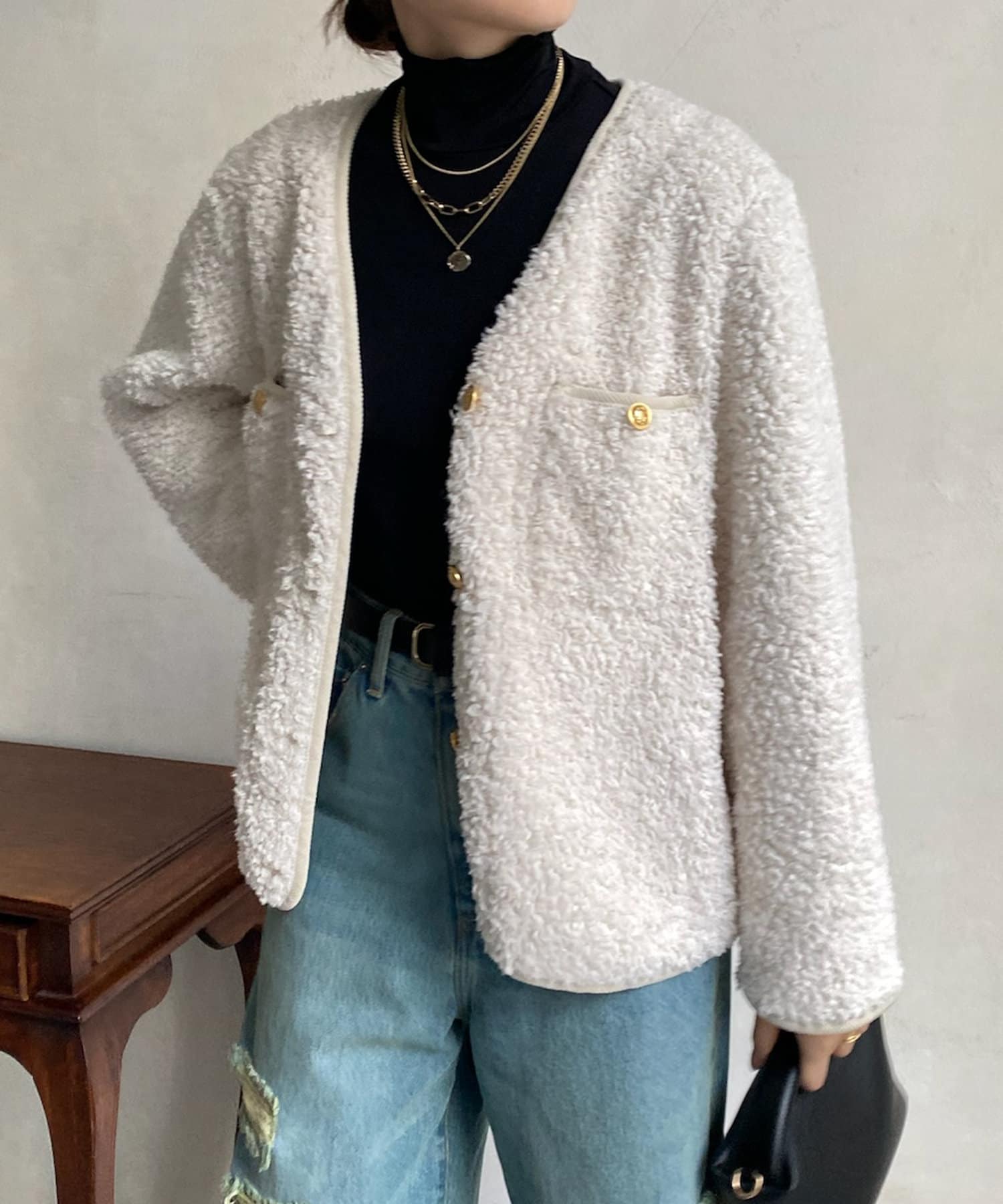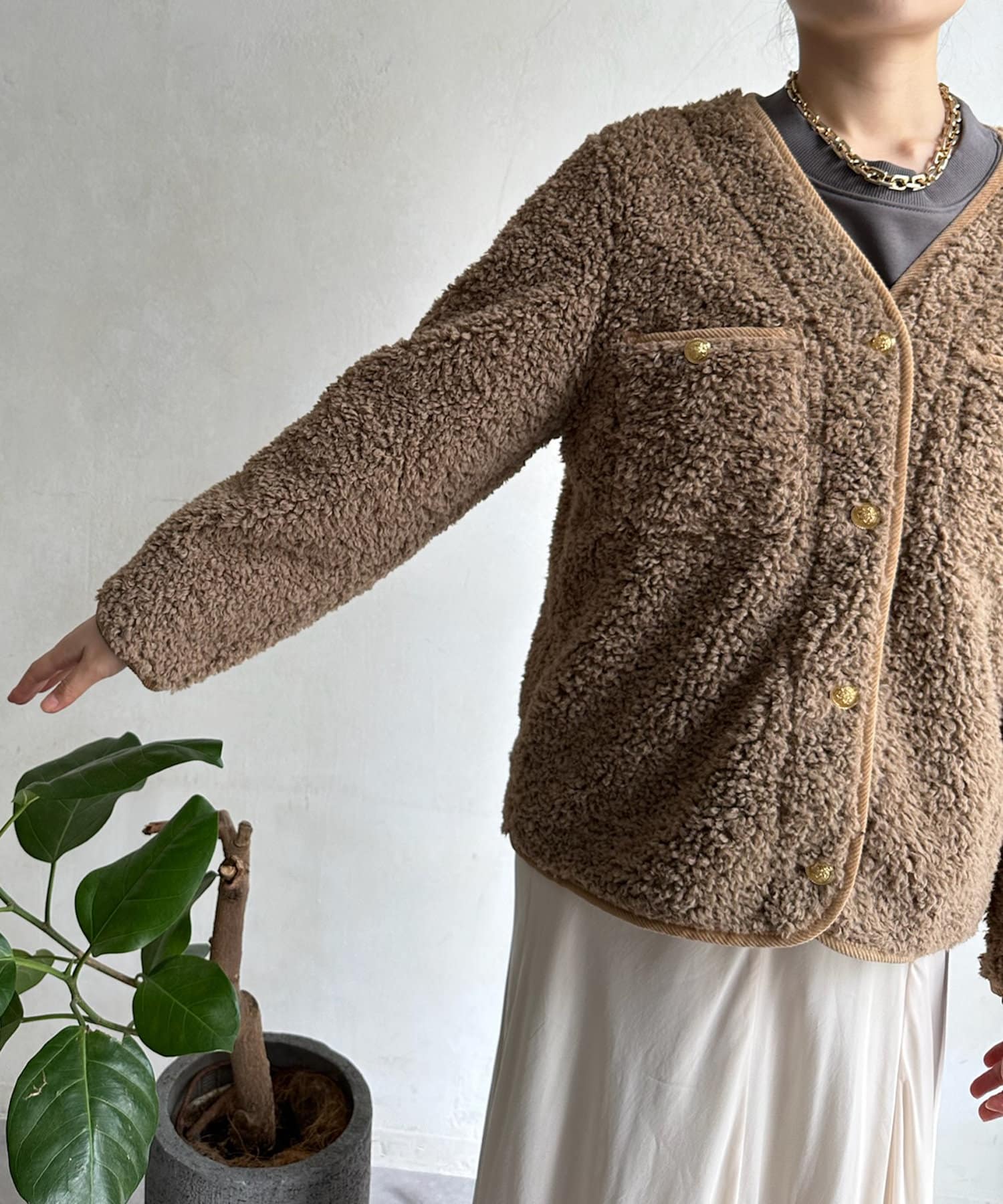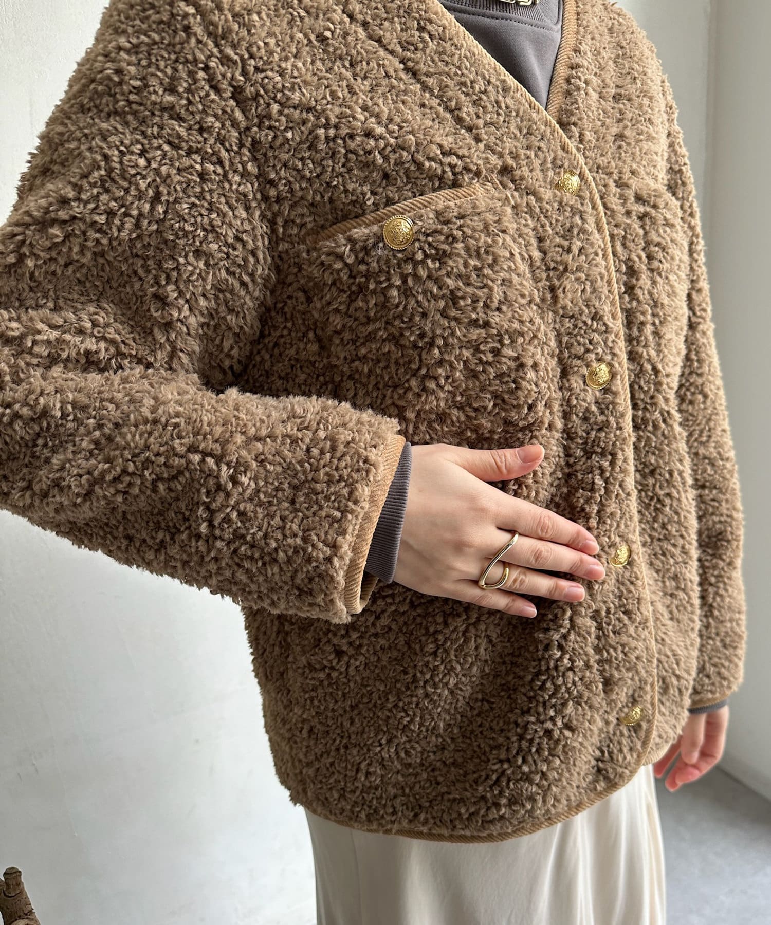 金ボタンがアクセントになった、上品なボアブルゾンです。