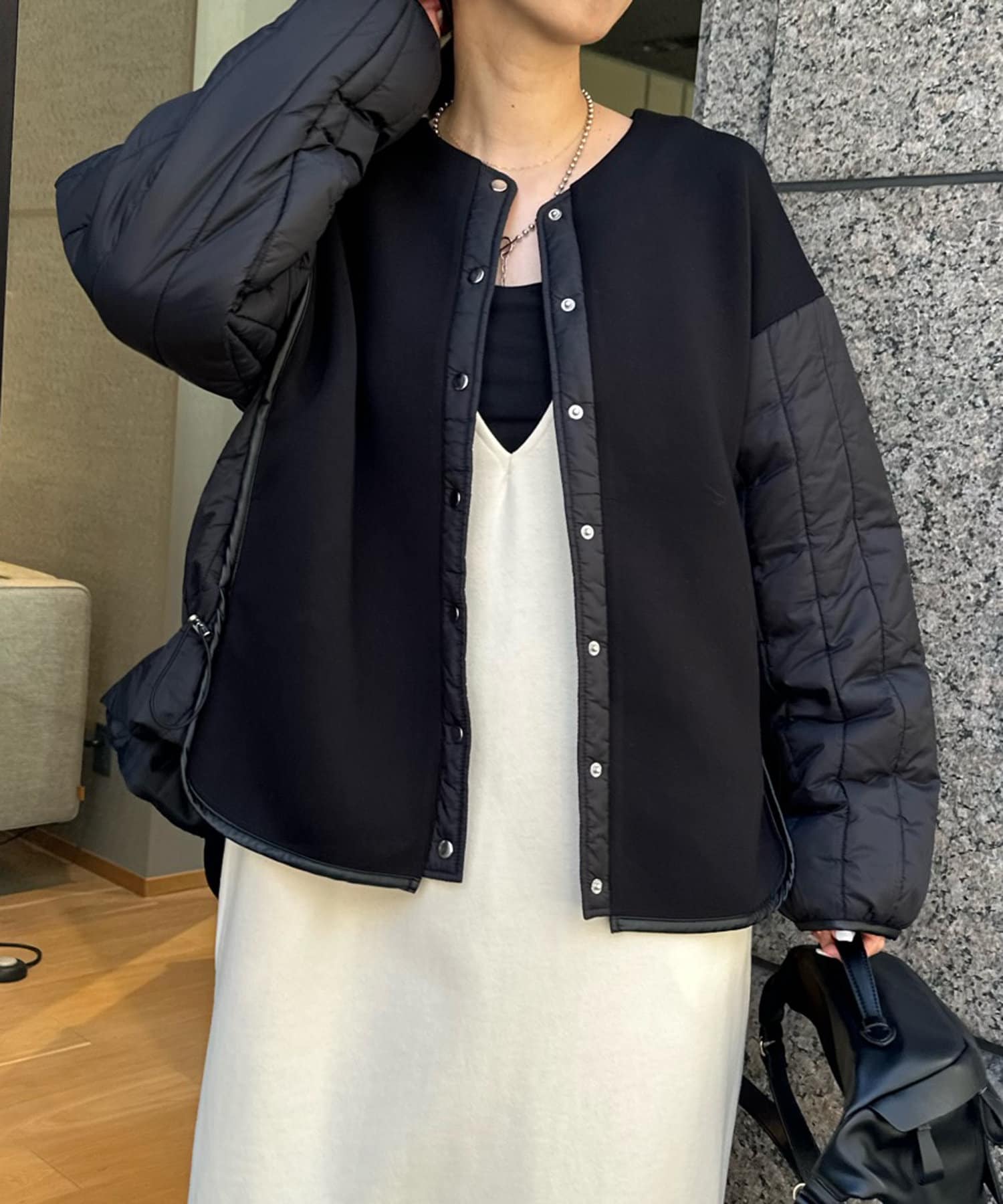 素材が切り替わっているブルゾンにセットでネックウォーマーが付いているアイテムです!