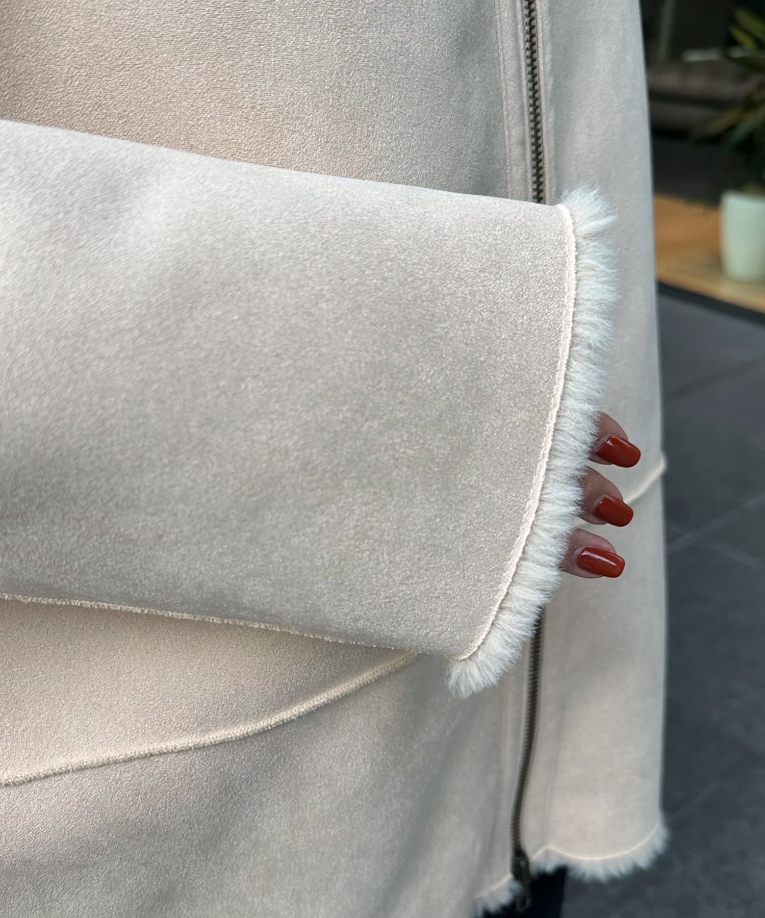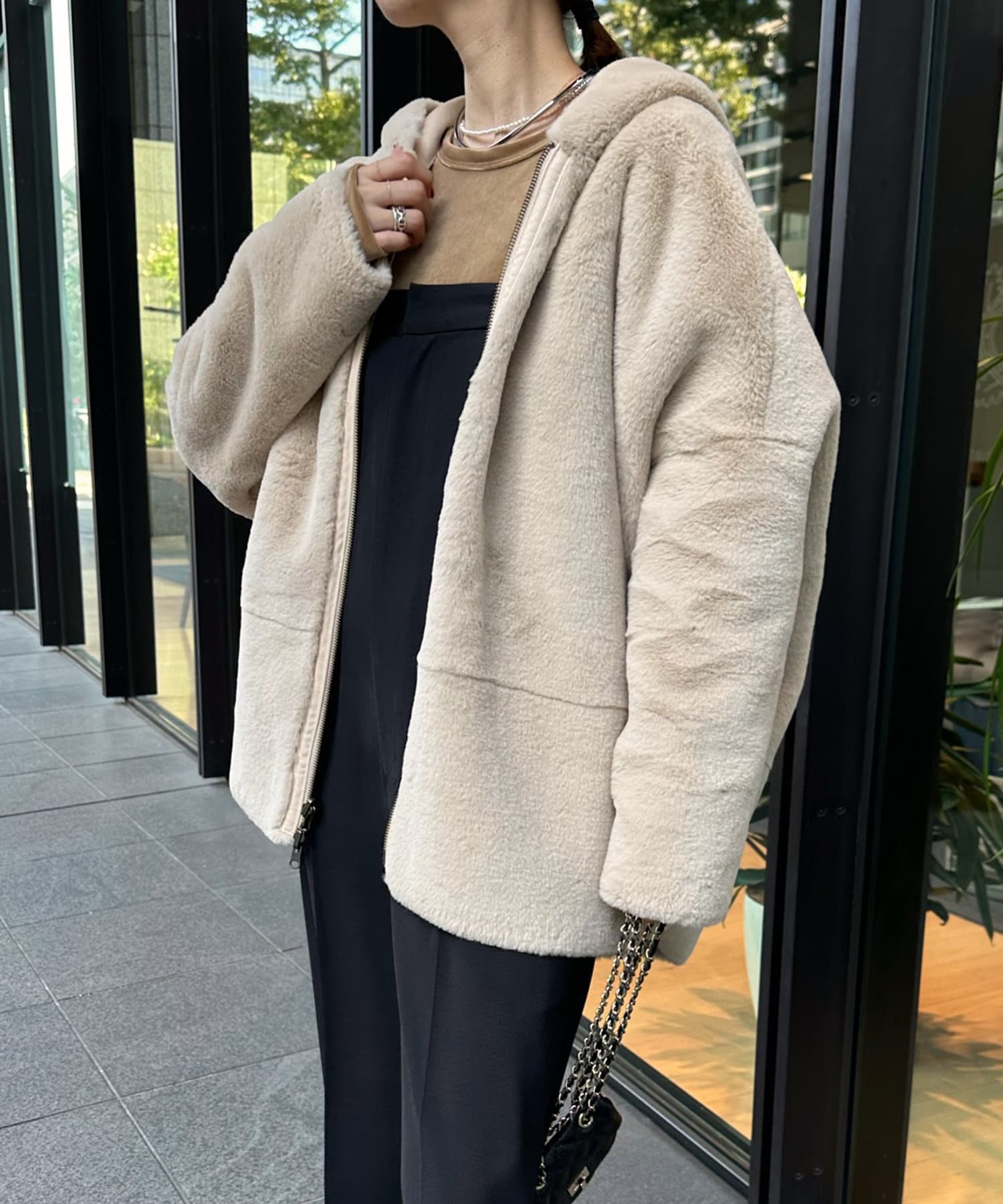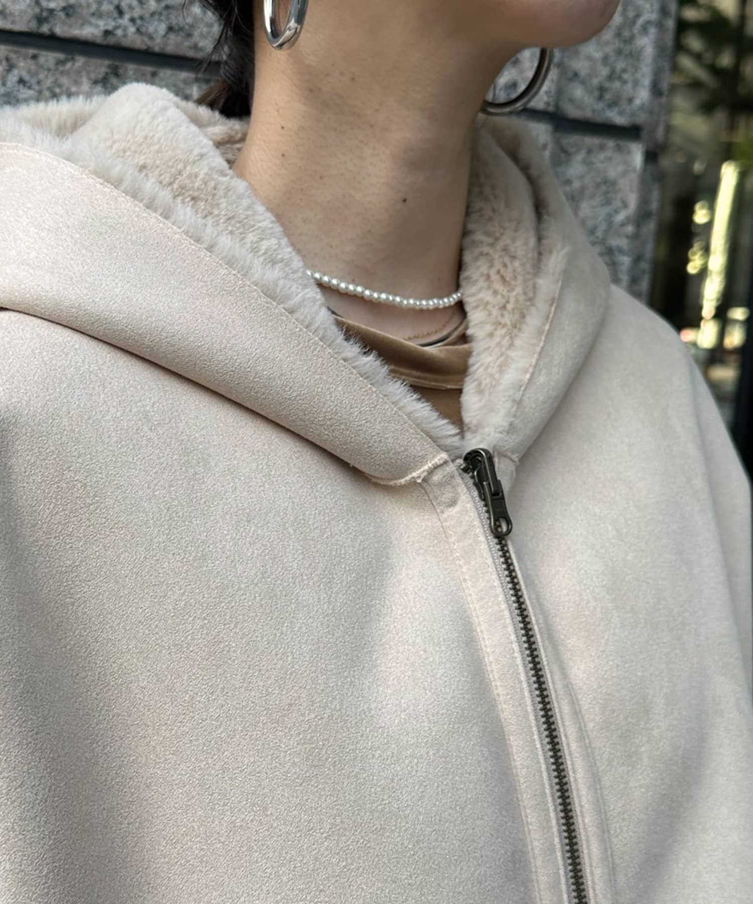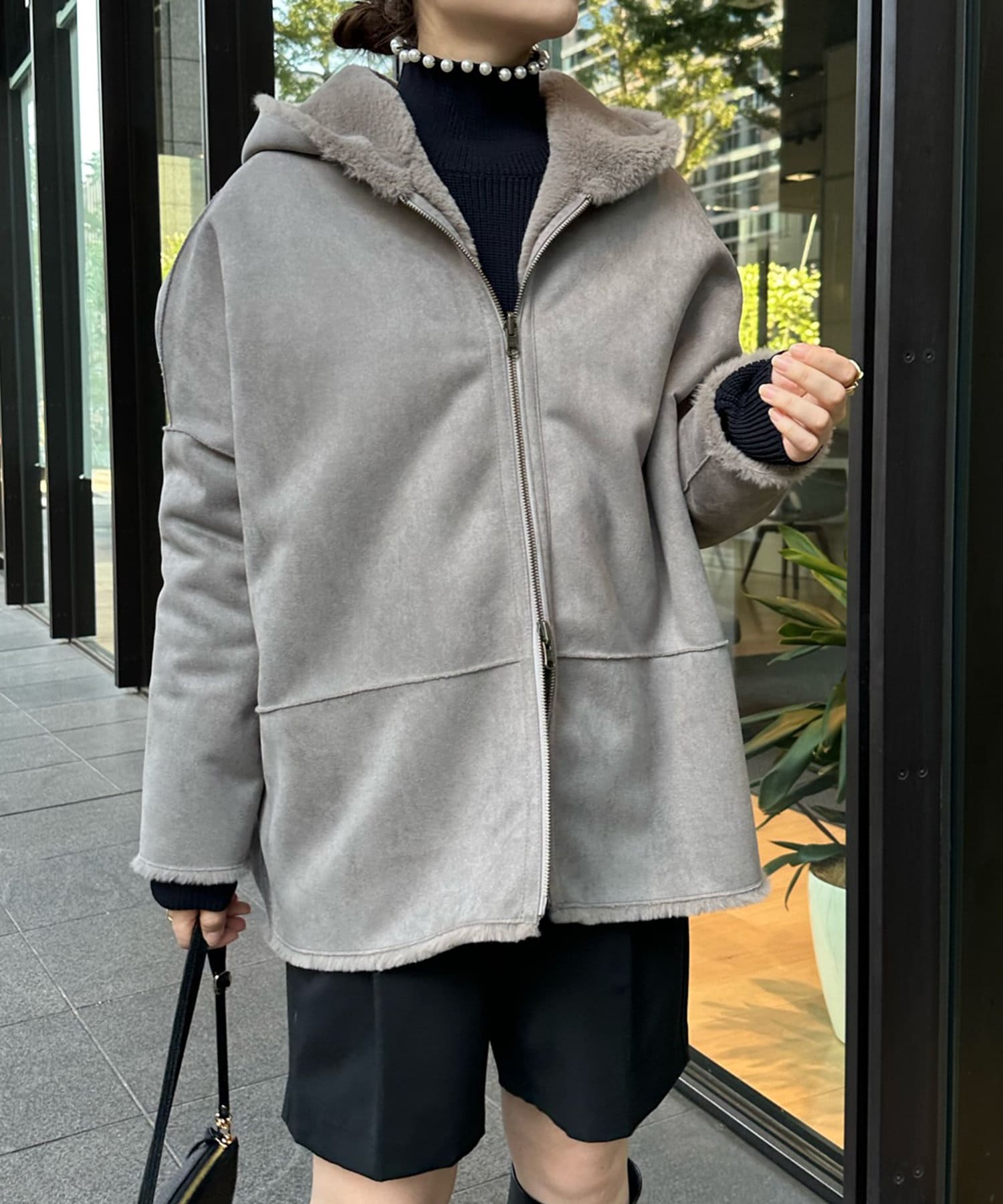手触りのいいファー素材と、スウェードをリバーシブルに仕上げたアウター。