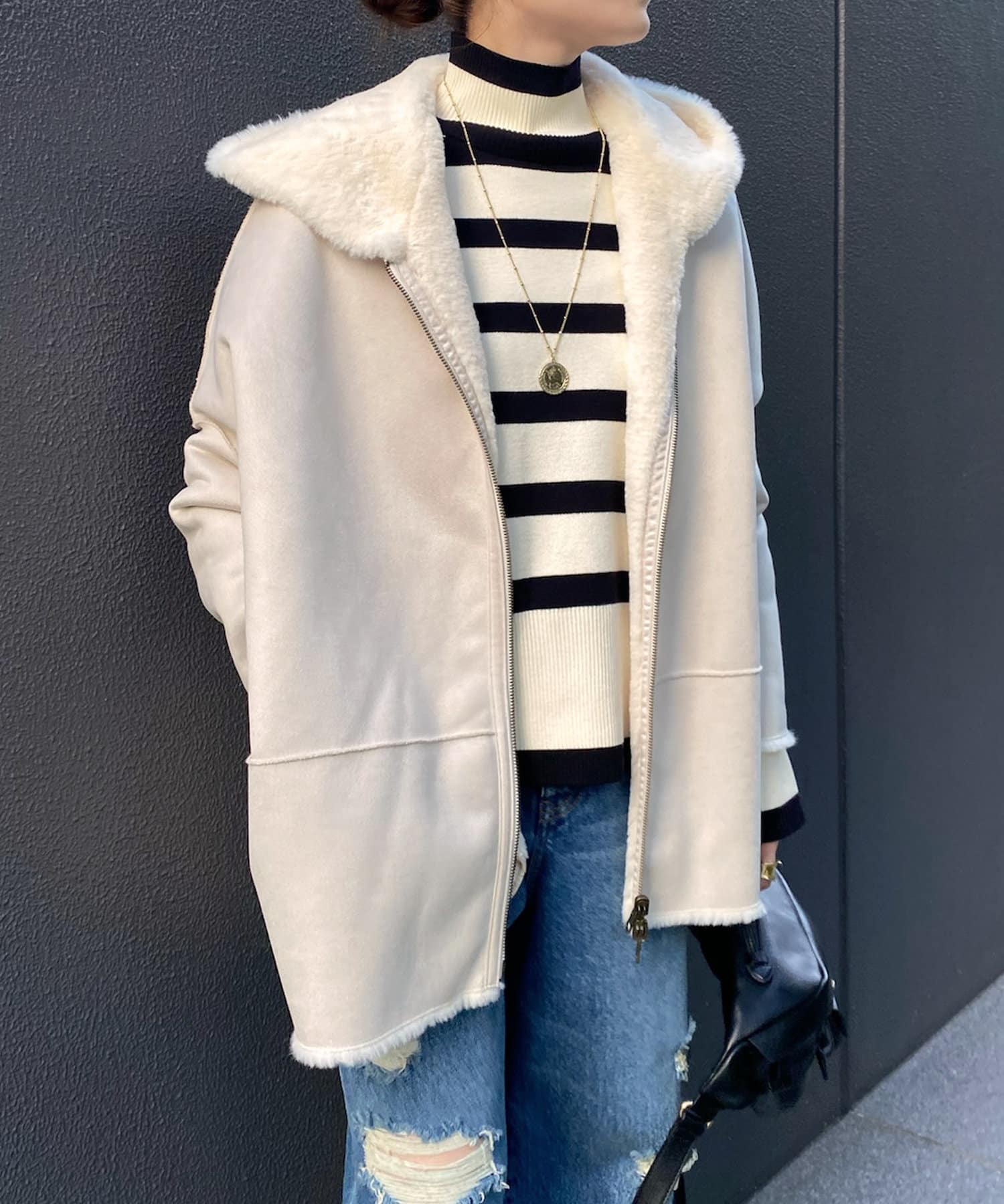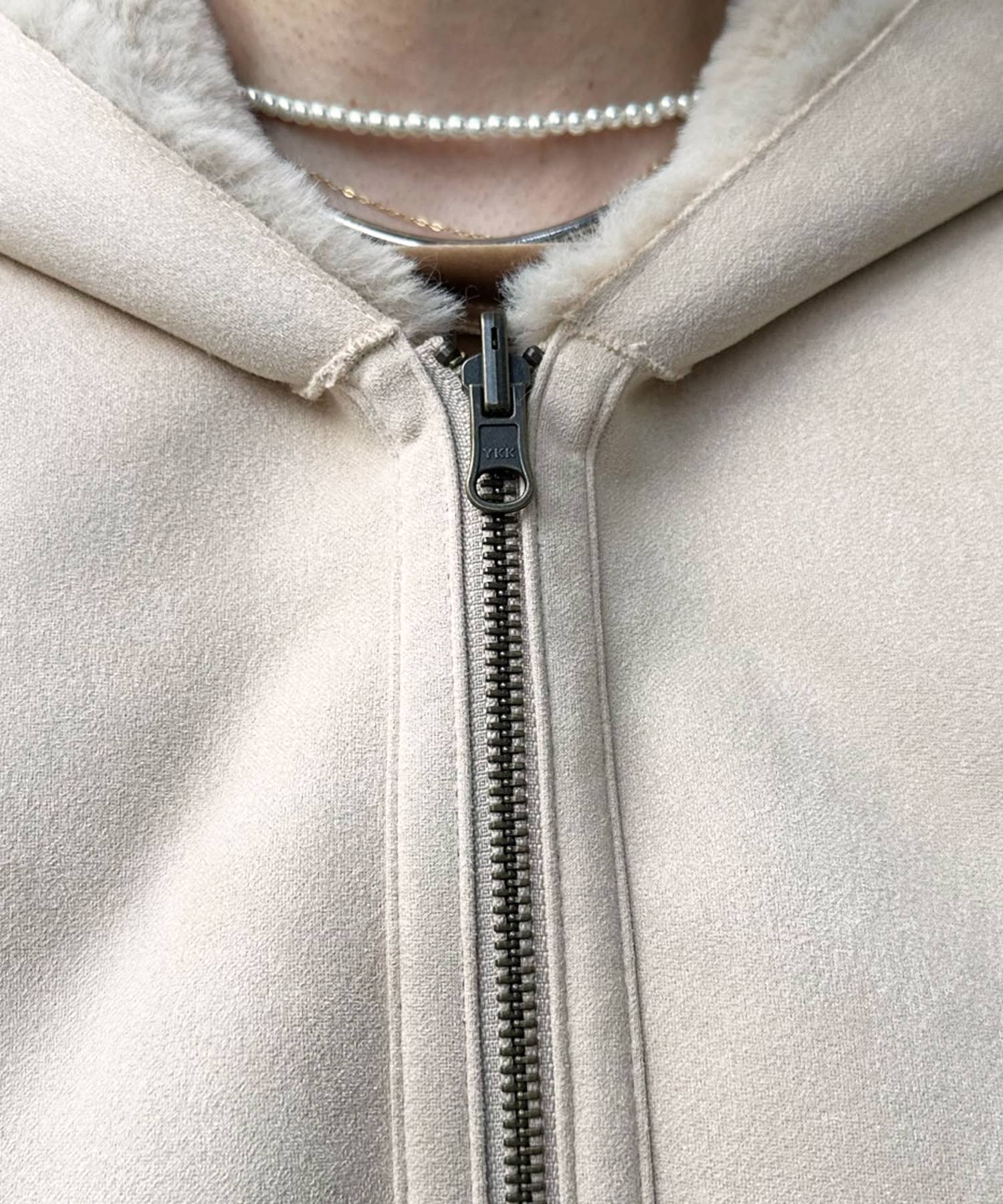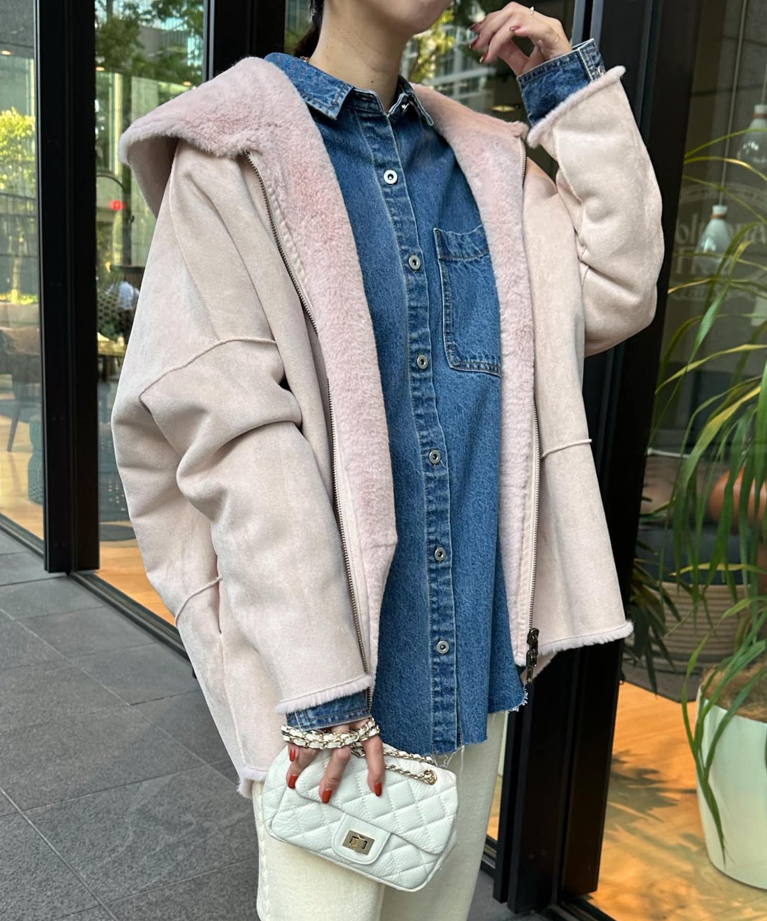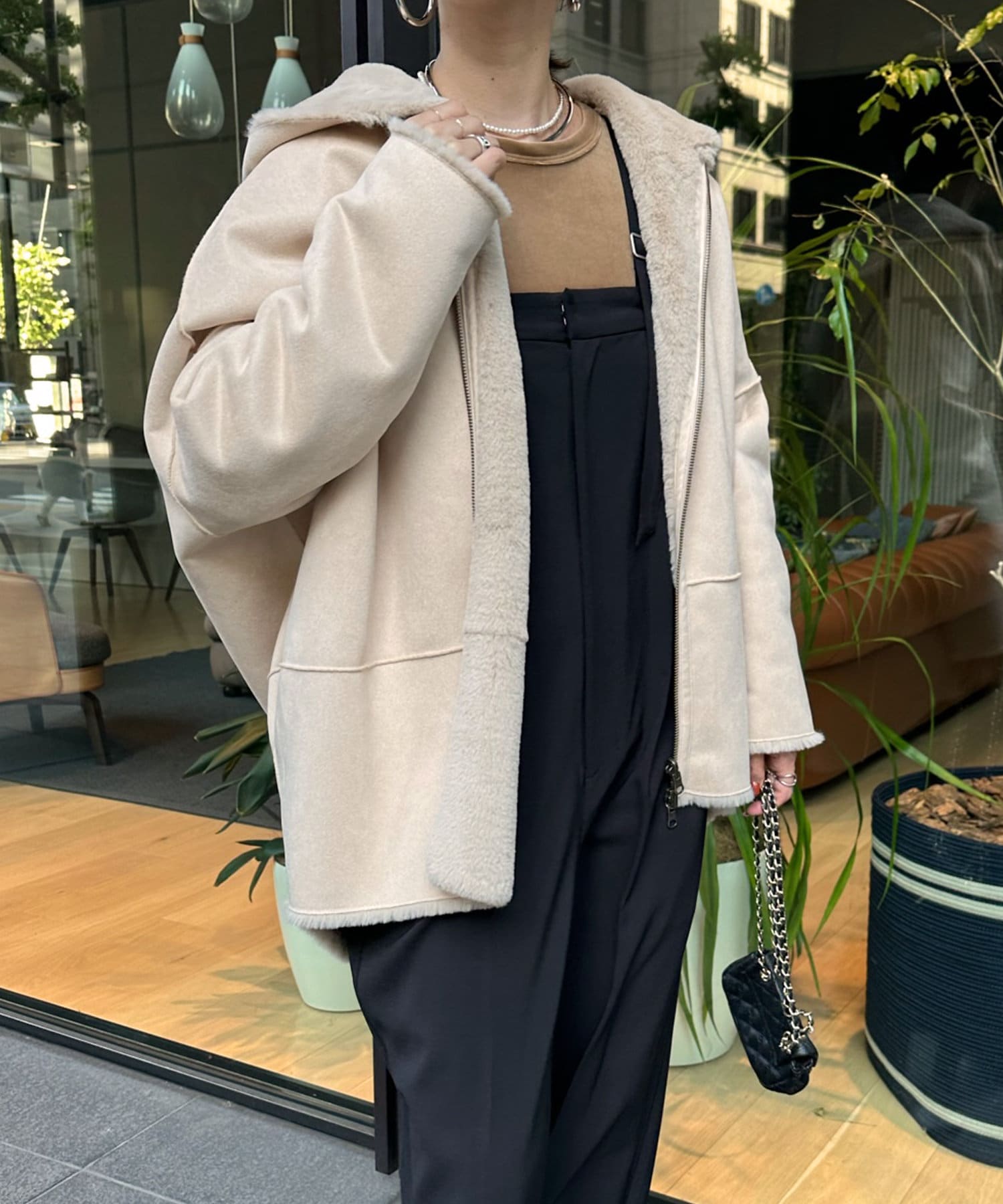 手触りのいいファー素材と、スウェードをリバーシブルに仕上げたアウター。
