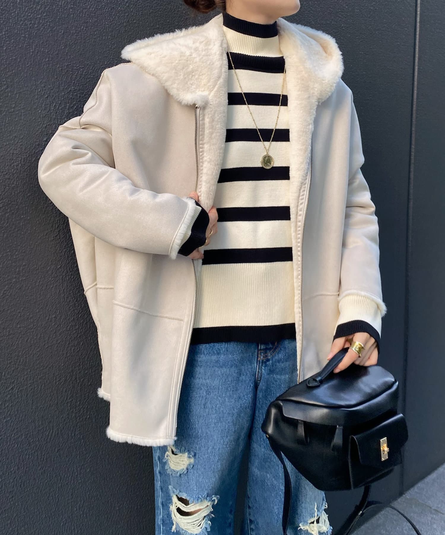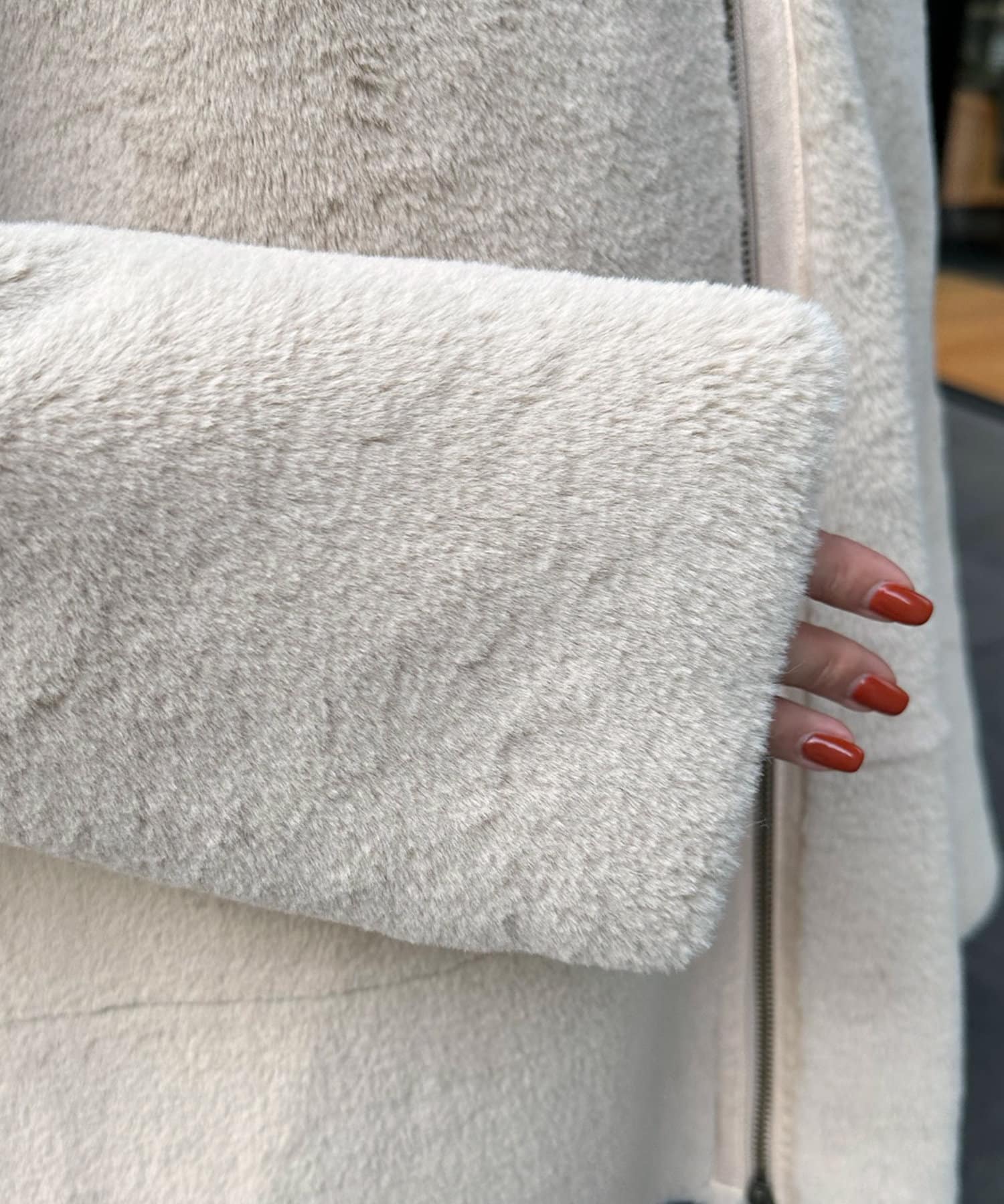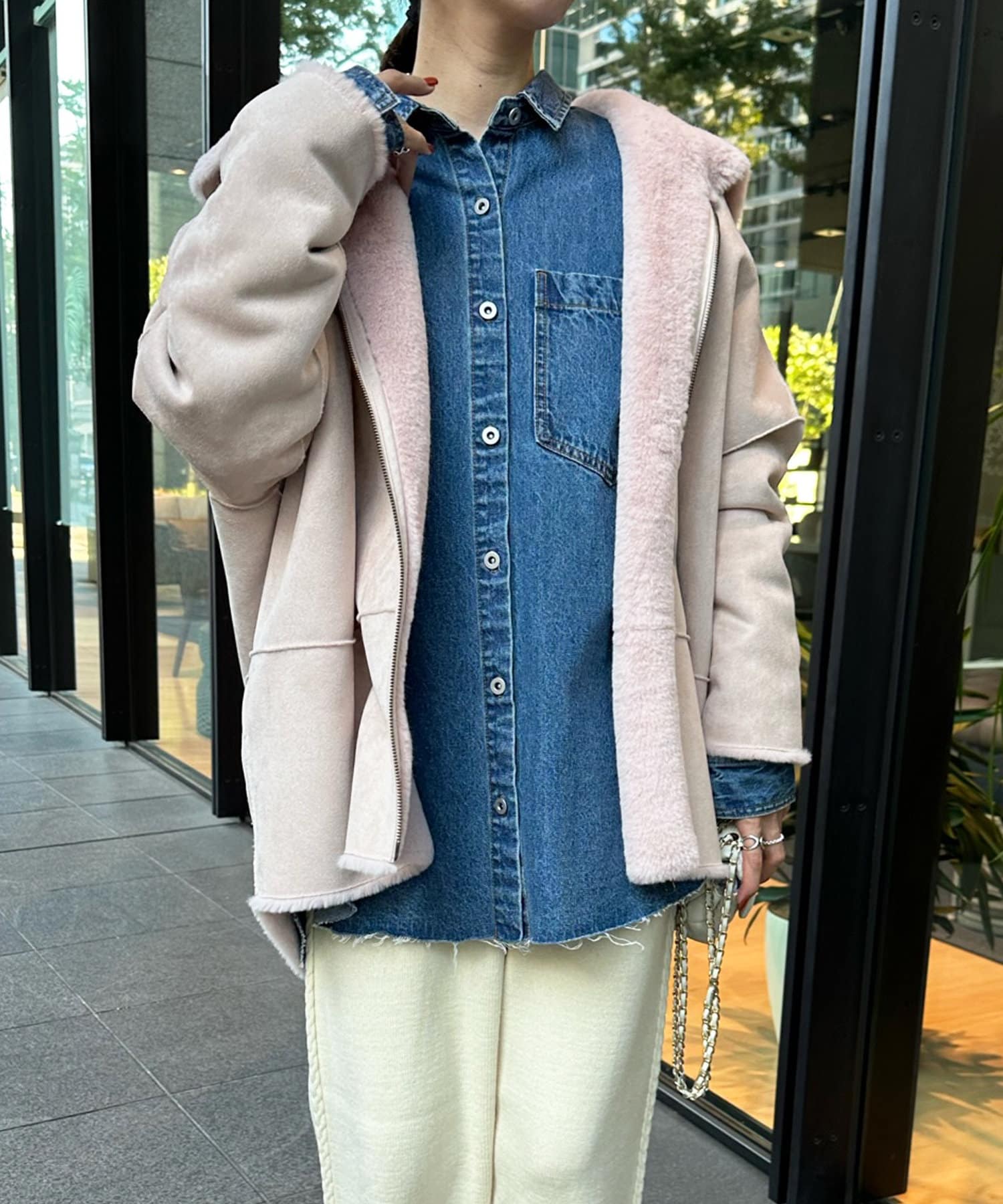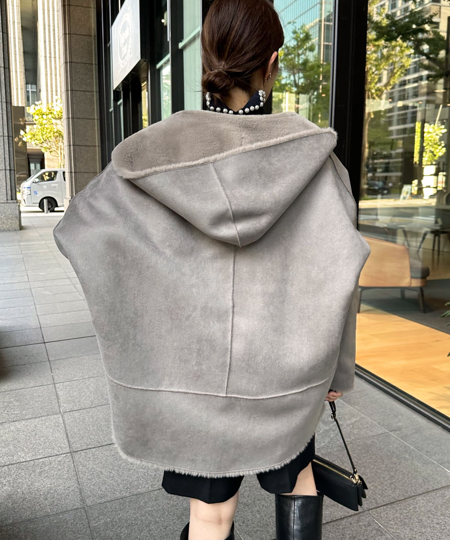 手触りのいいファー素材と、スウェードをリバーシブルに仕上げたアウター。