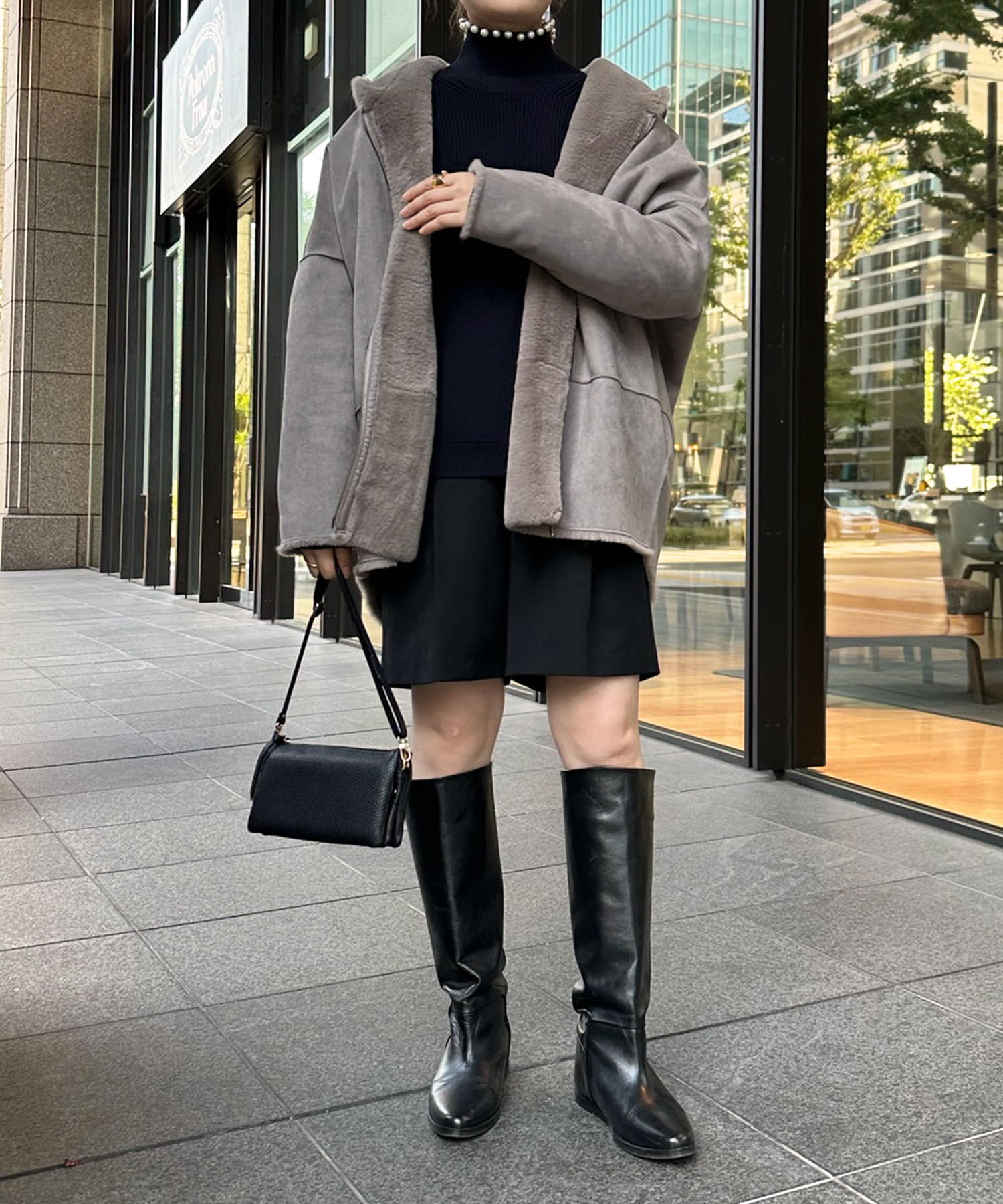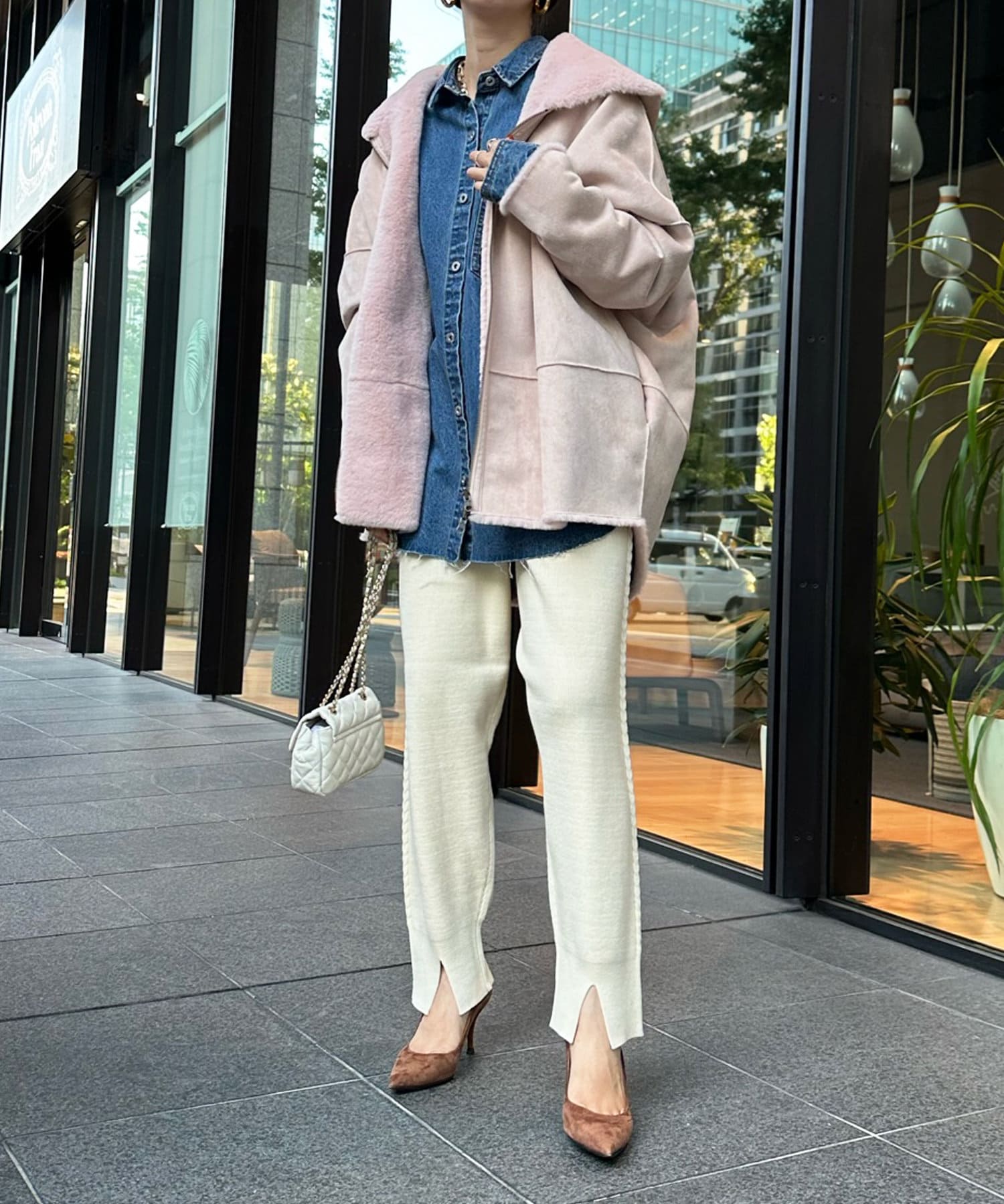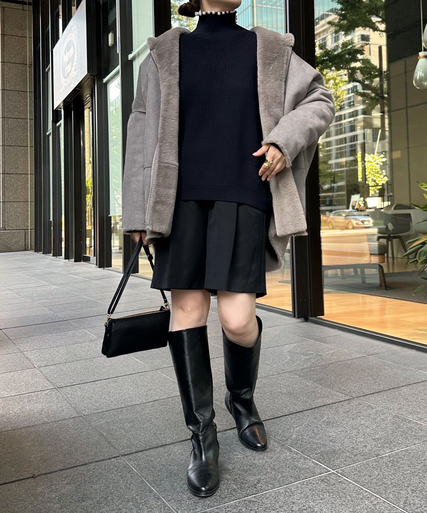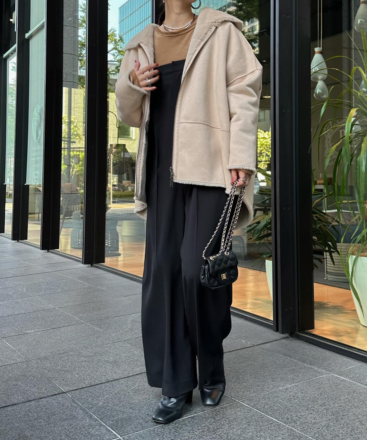 手触りのいいファー素材と、スウェードをリバーシブルに仕上げたアウター。