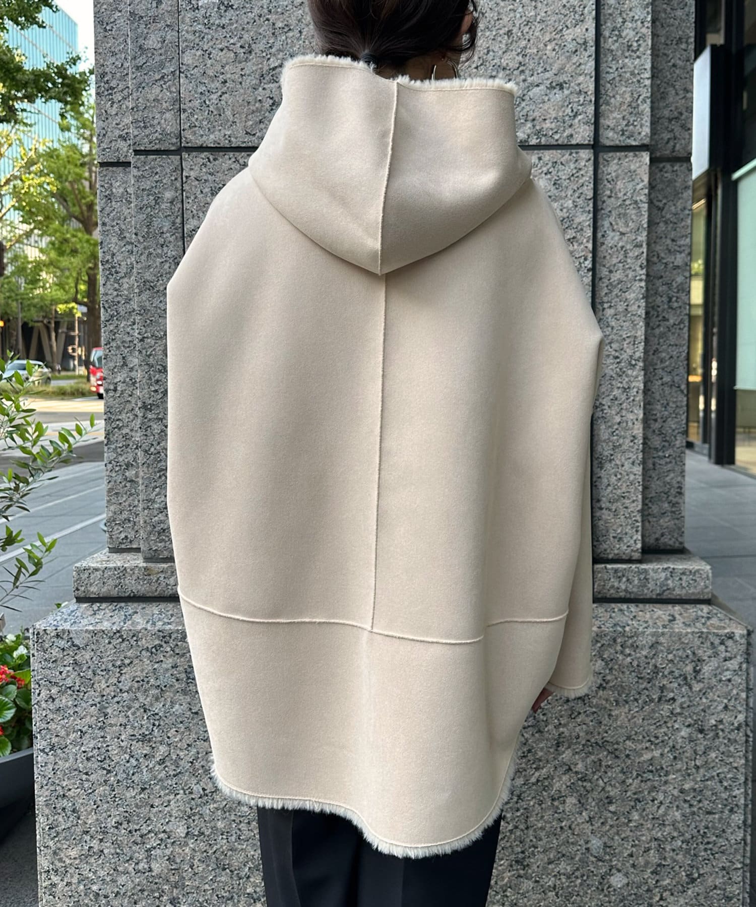 ゆとりのあるシルエットで、羽織ると後ろにたぷっと溜まるシルエットがなんともかわいいポイント。