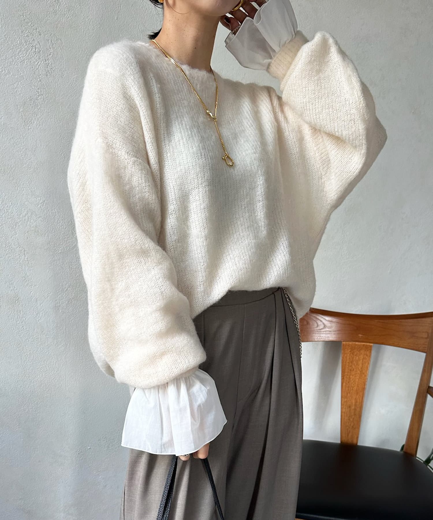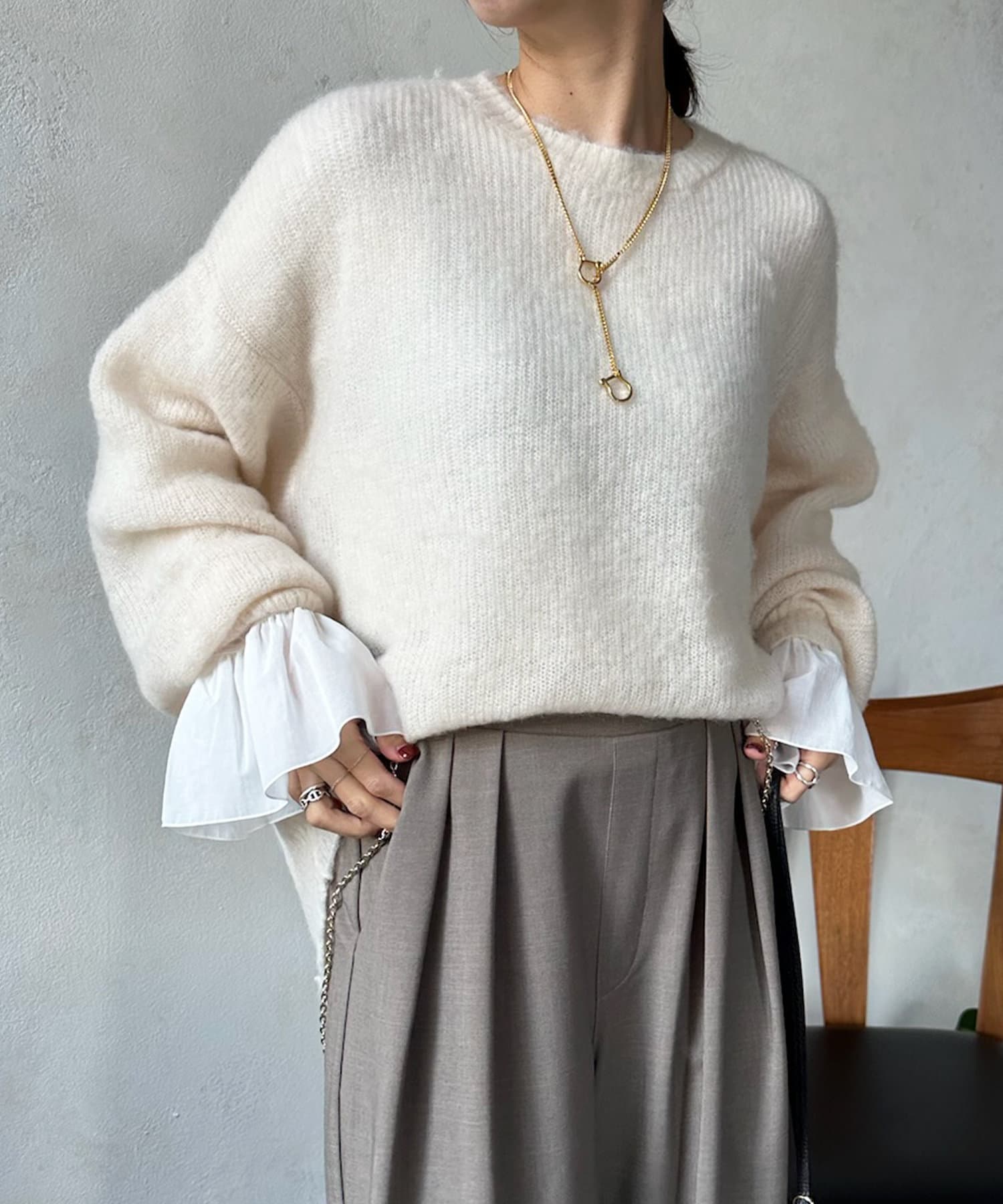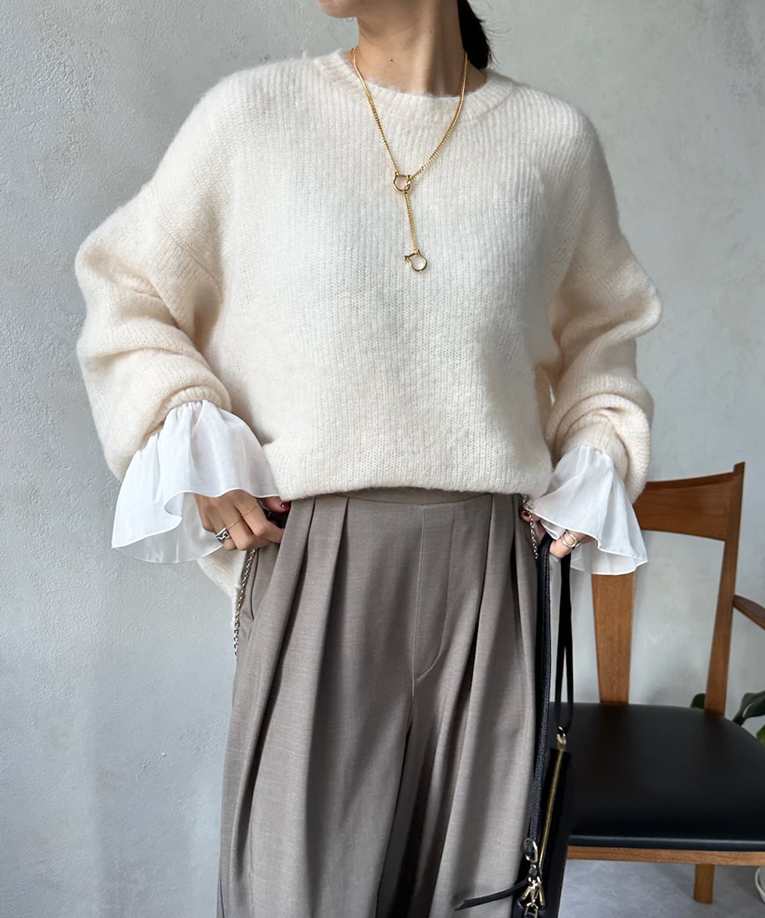 袖口をひらっと広がるシルエットに切り替えることで、華やかな印象をプラスします。
