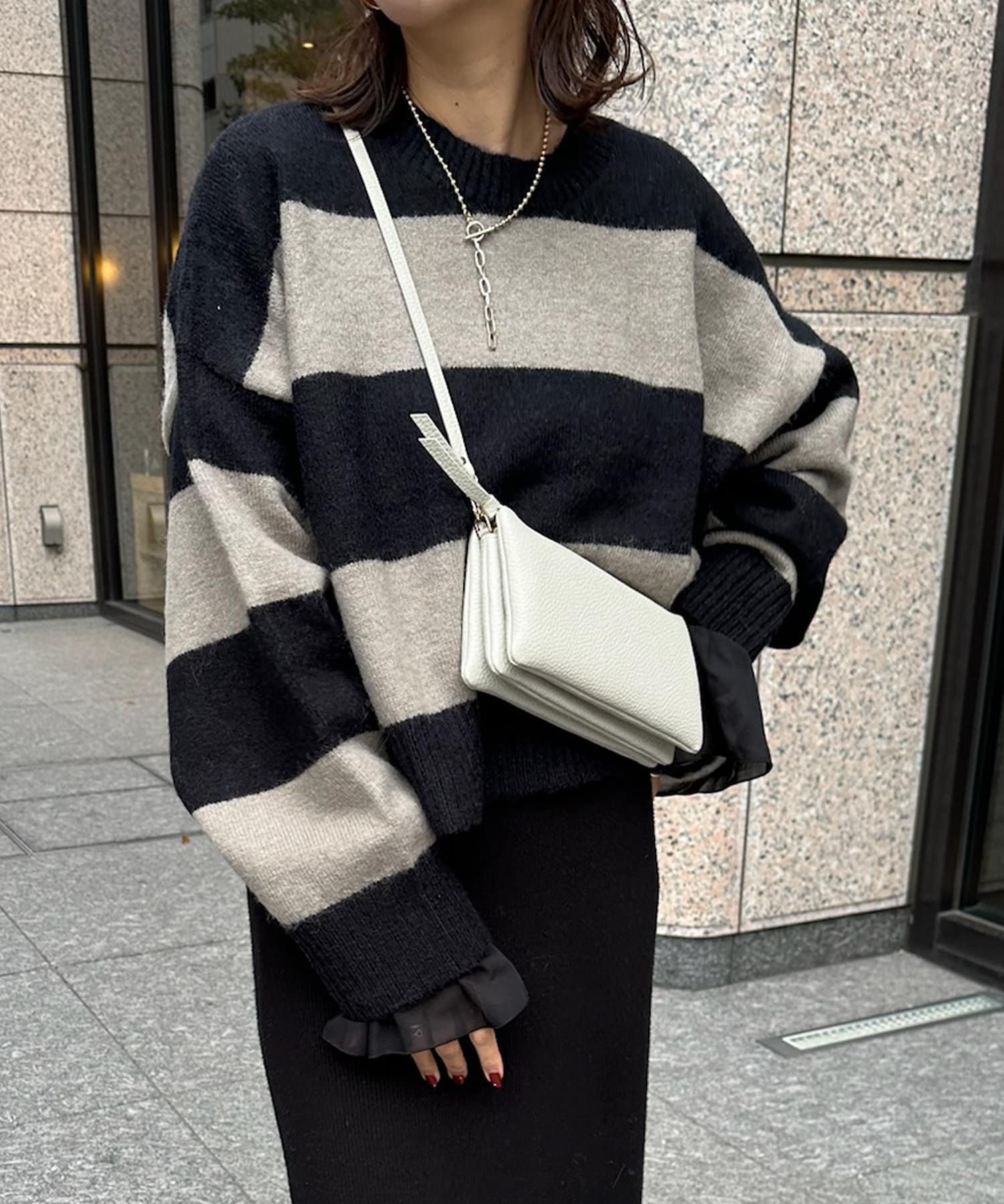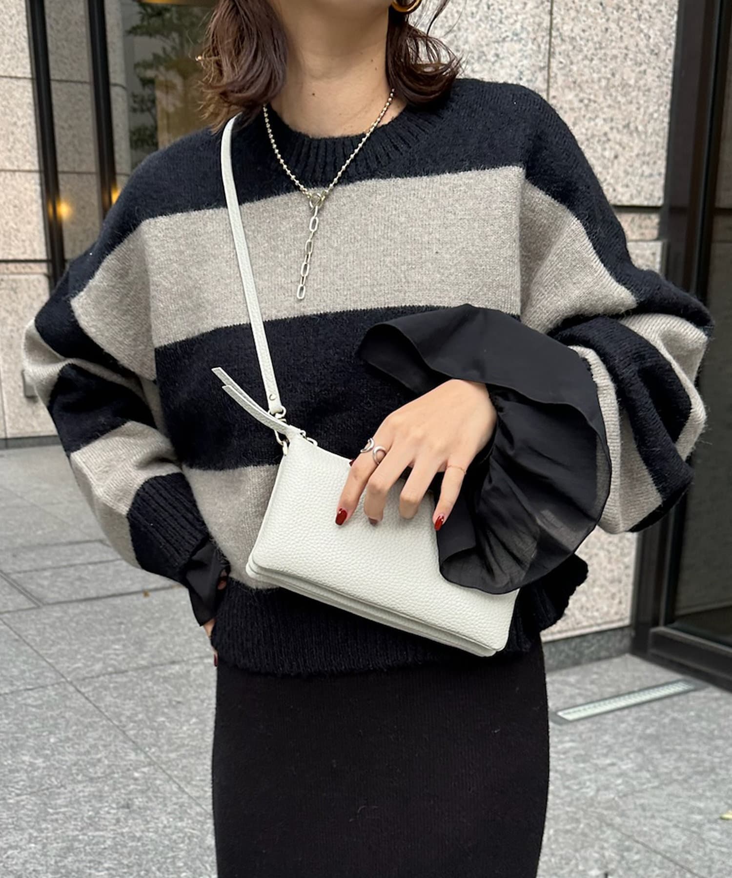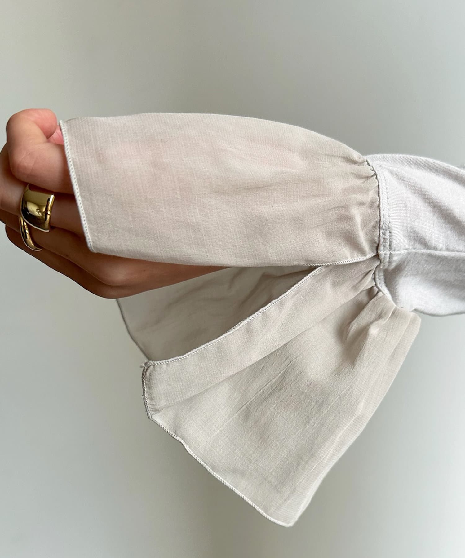 袖口をひらっと広がるシルエットに切り替えることで、華やかな印象をプラスします。