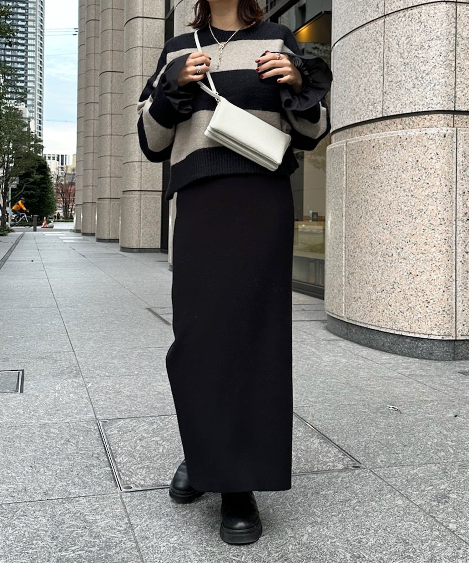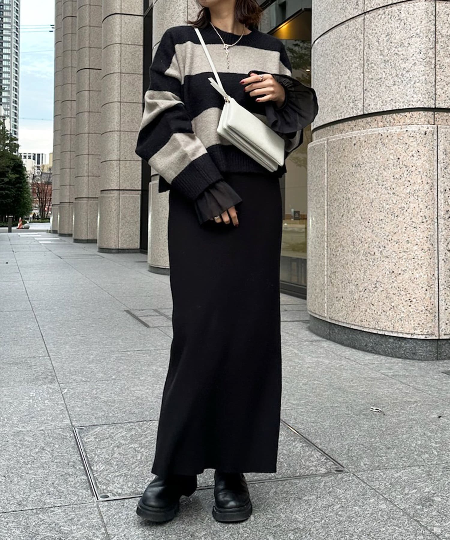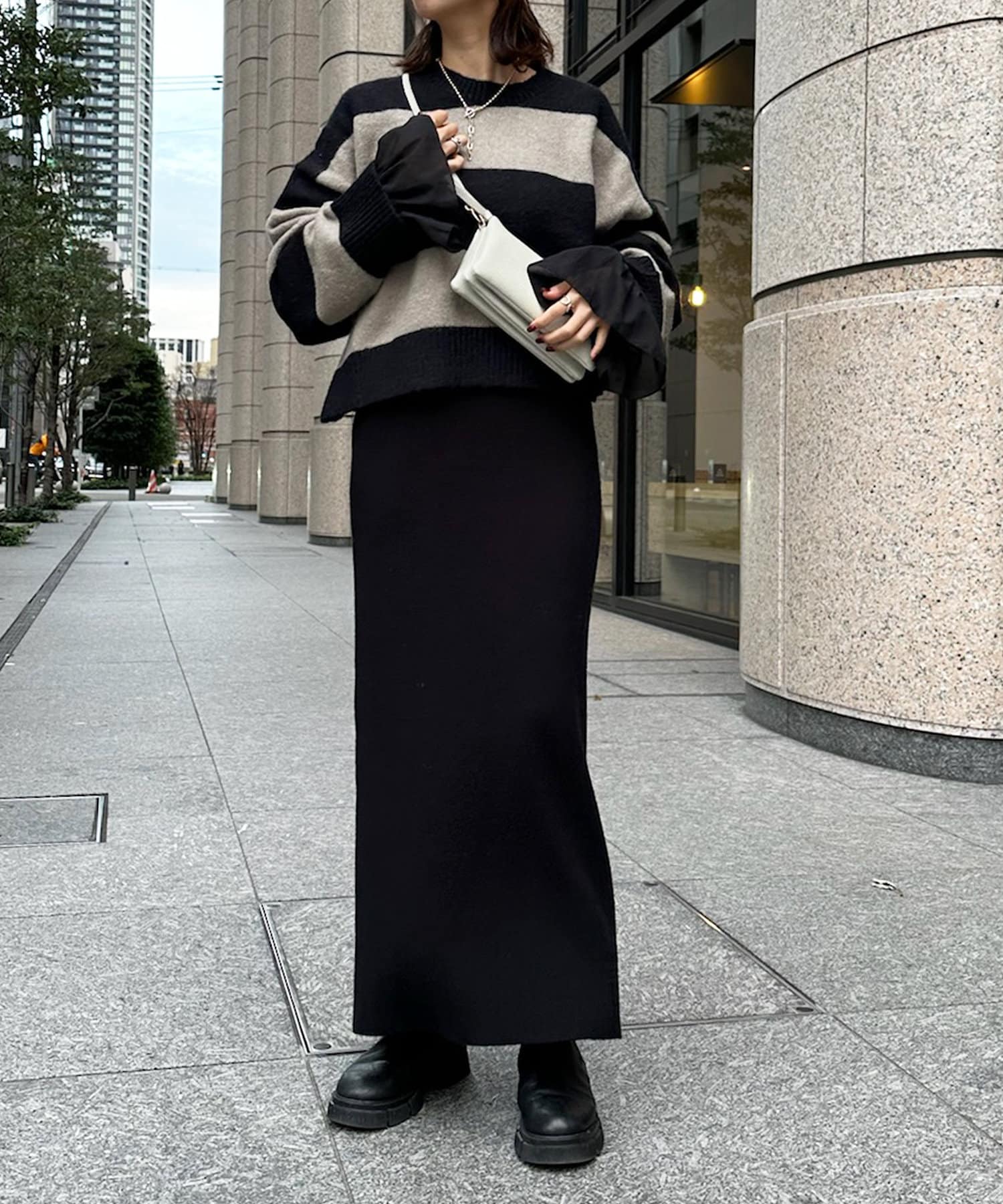 薄手で柔らかく、伸縮性のある素材感がレイヤードにぴったり。