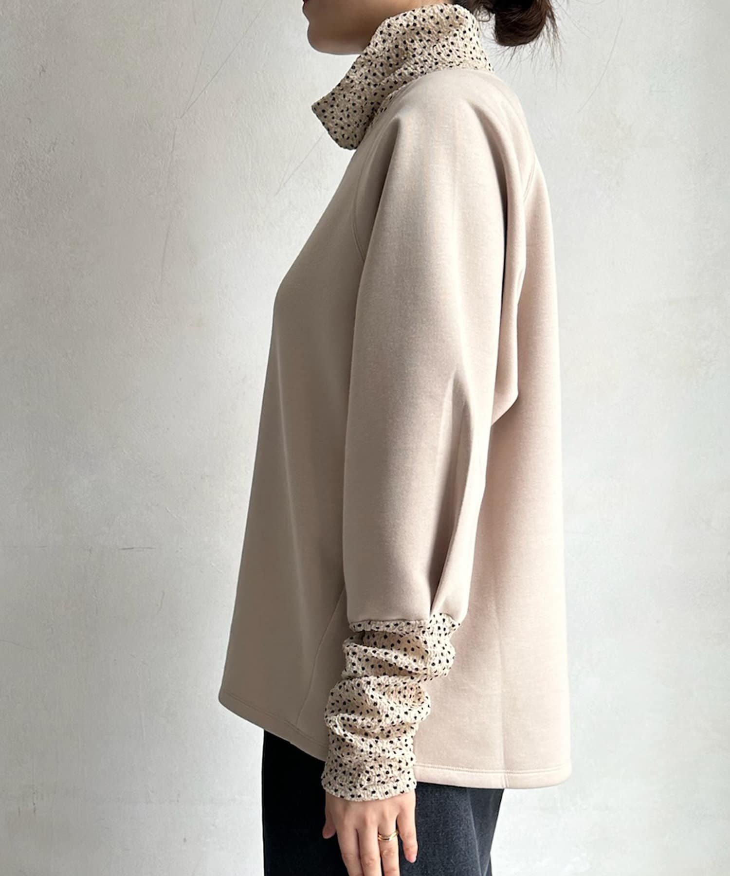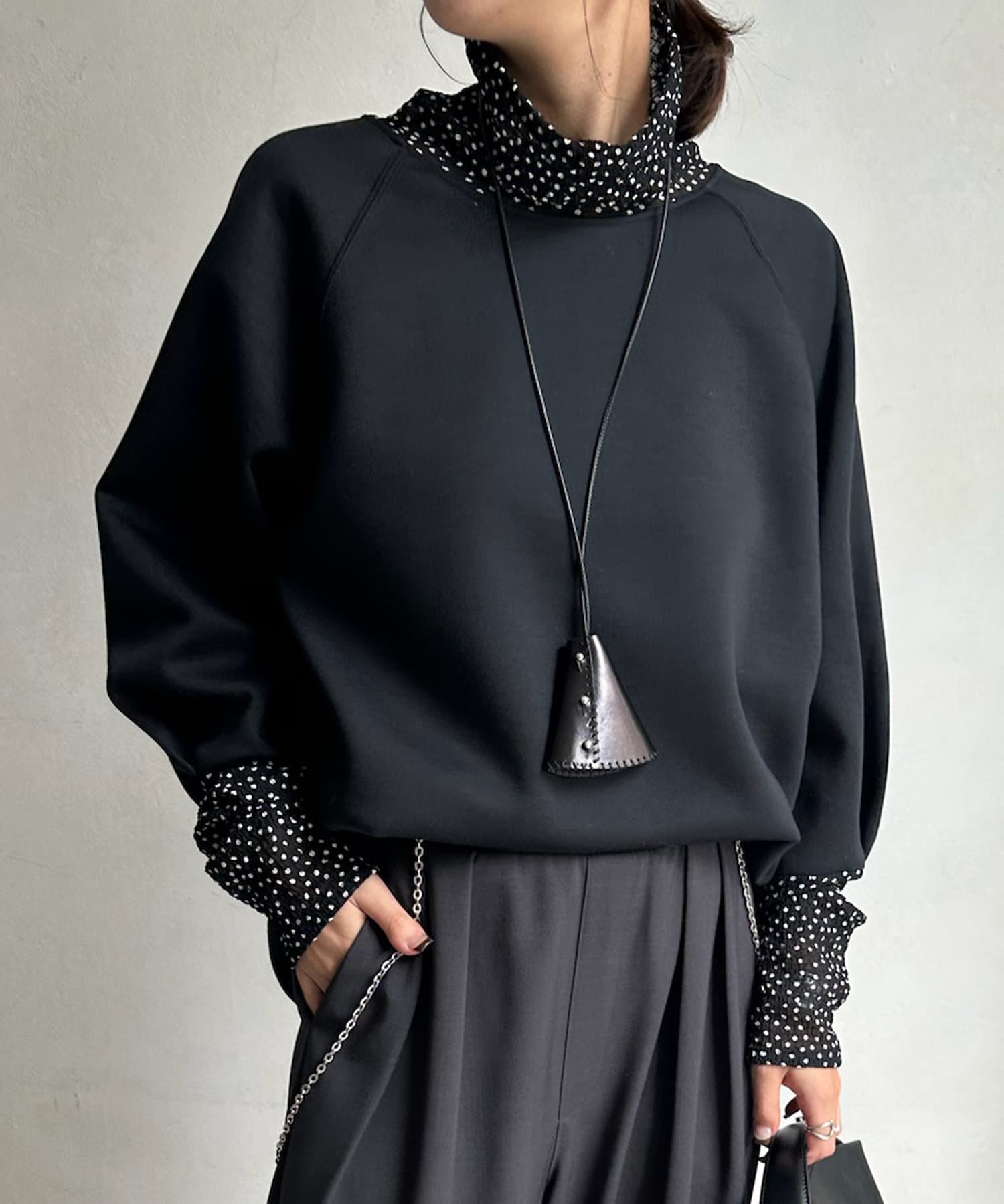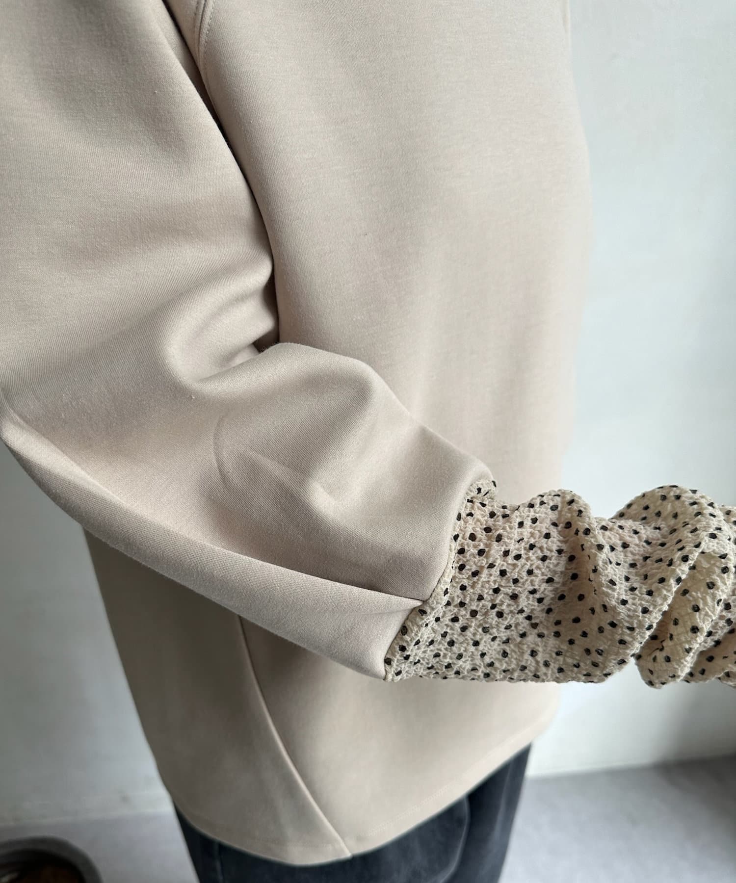 袖とネックの小さめドット柄がアクセントに!